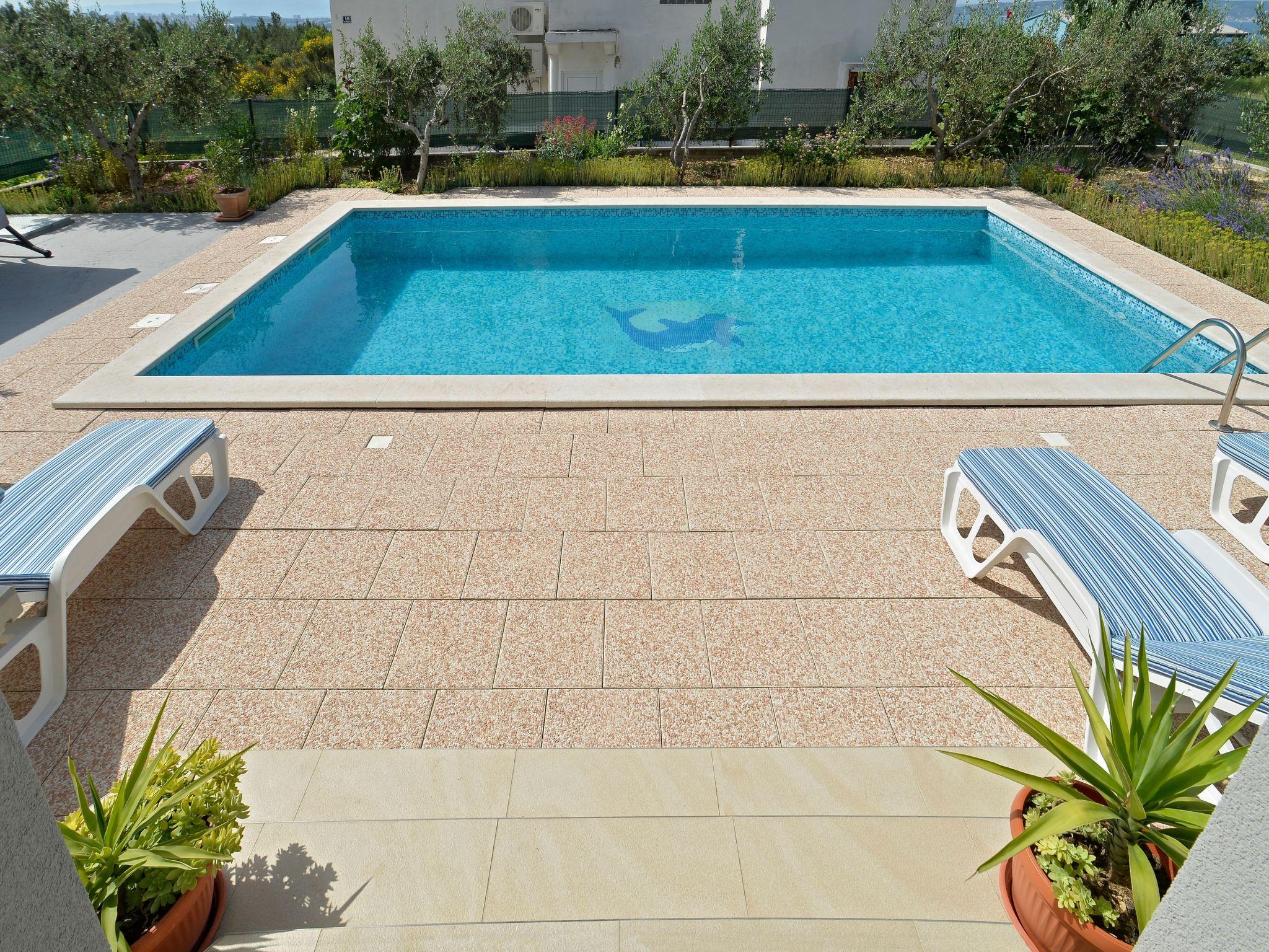 The holiday villa is in a well positioned peaceful area and offers you an exclusive 32 m2 private swimming pool, surrounded by spacious and delightful sun terrace with an olive trees and mediterranian plants, children playground and outdoor barbecue area.