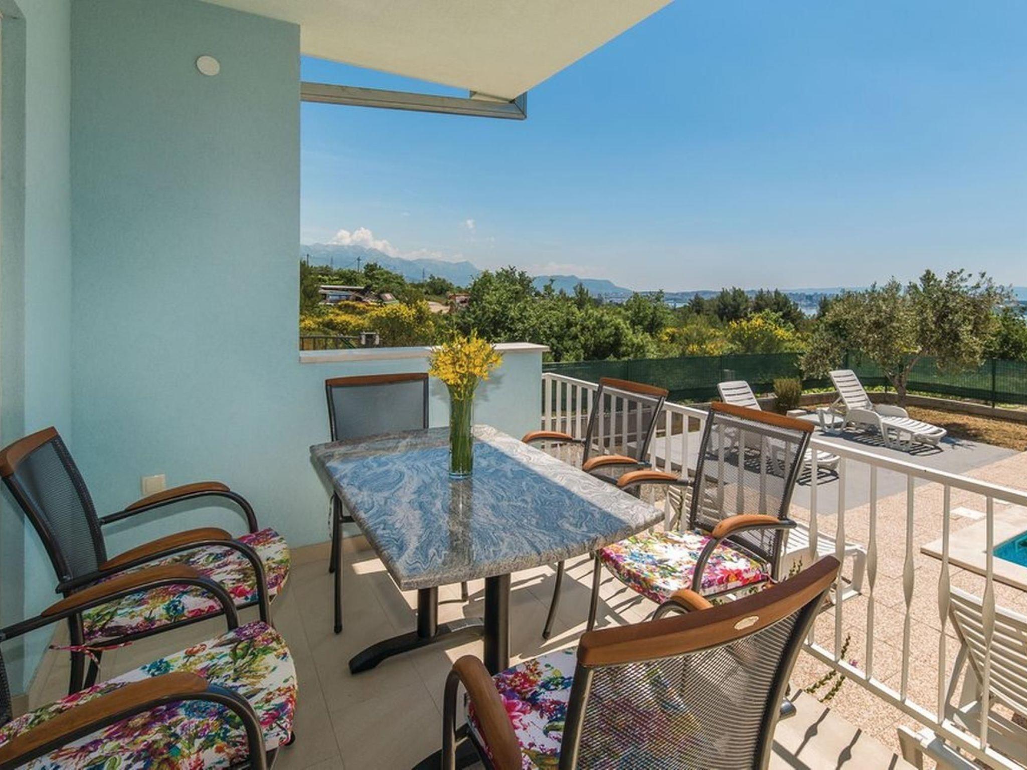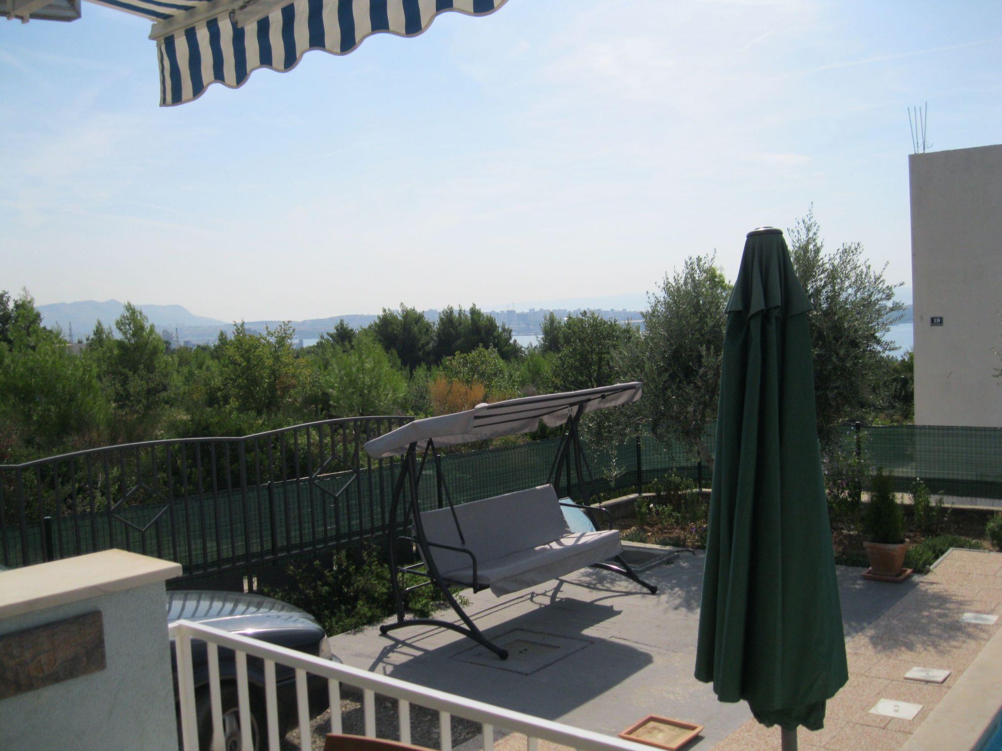 -covered and furnished terrace with view on the swimming pool and city of Split