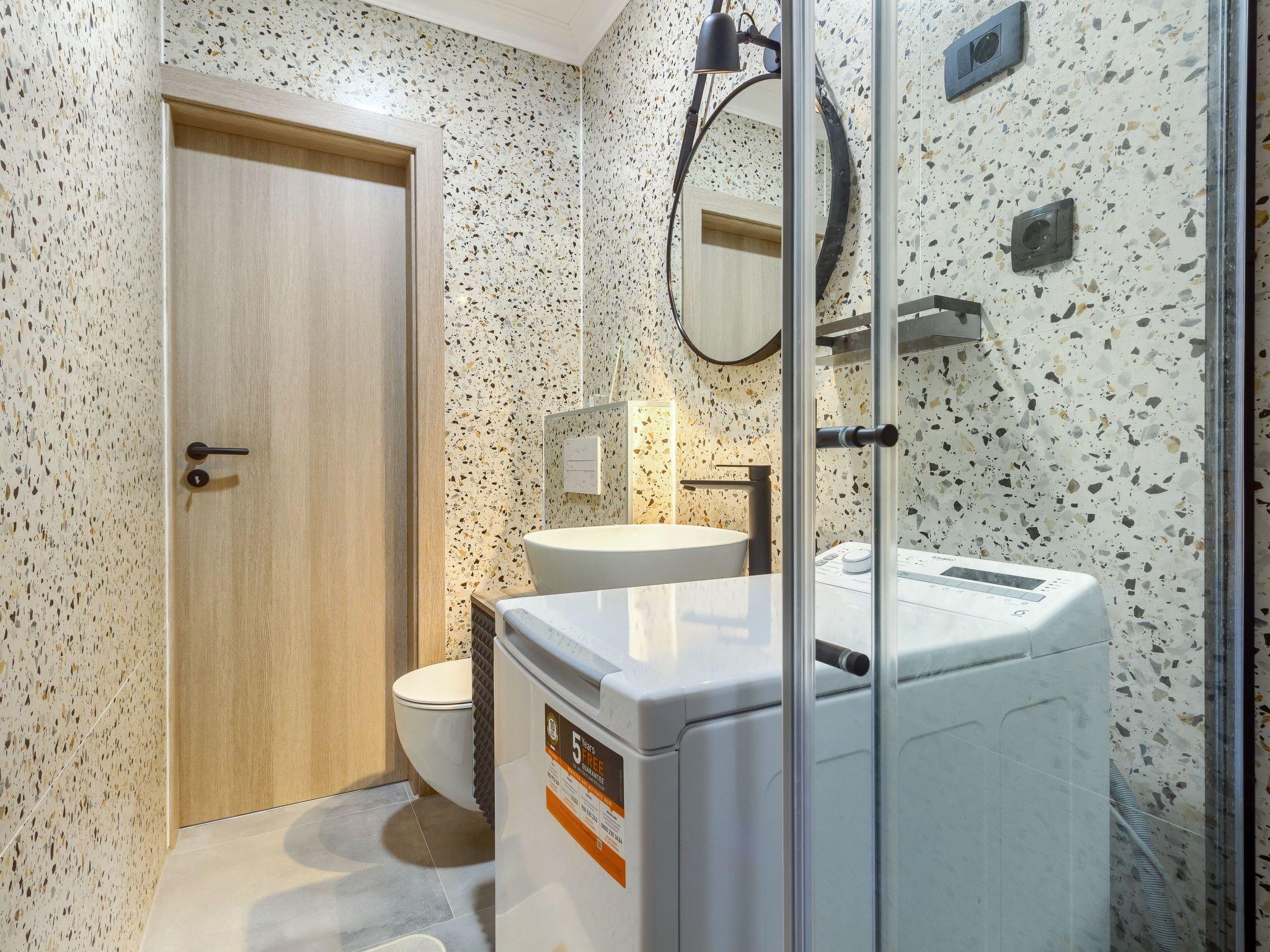 The apartment's location in Kaštel Štafilic places guests in a prime spot to explore the surrounding area. A mere 300m walk brings you to beautiful beaches, while those with pets will appreciate the dog-friendly beach just 500m away. The proximity to both Trogir and Split offers opportunities for cultural excursions and sightseeing, making it an ideal base for both relaxation and adventure.