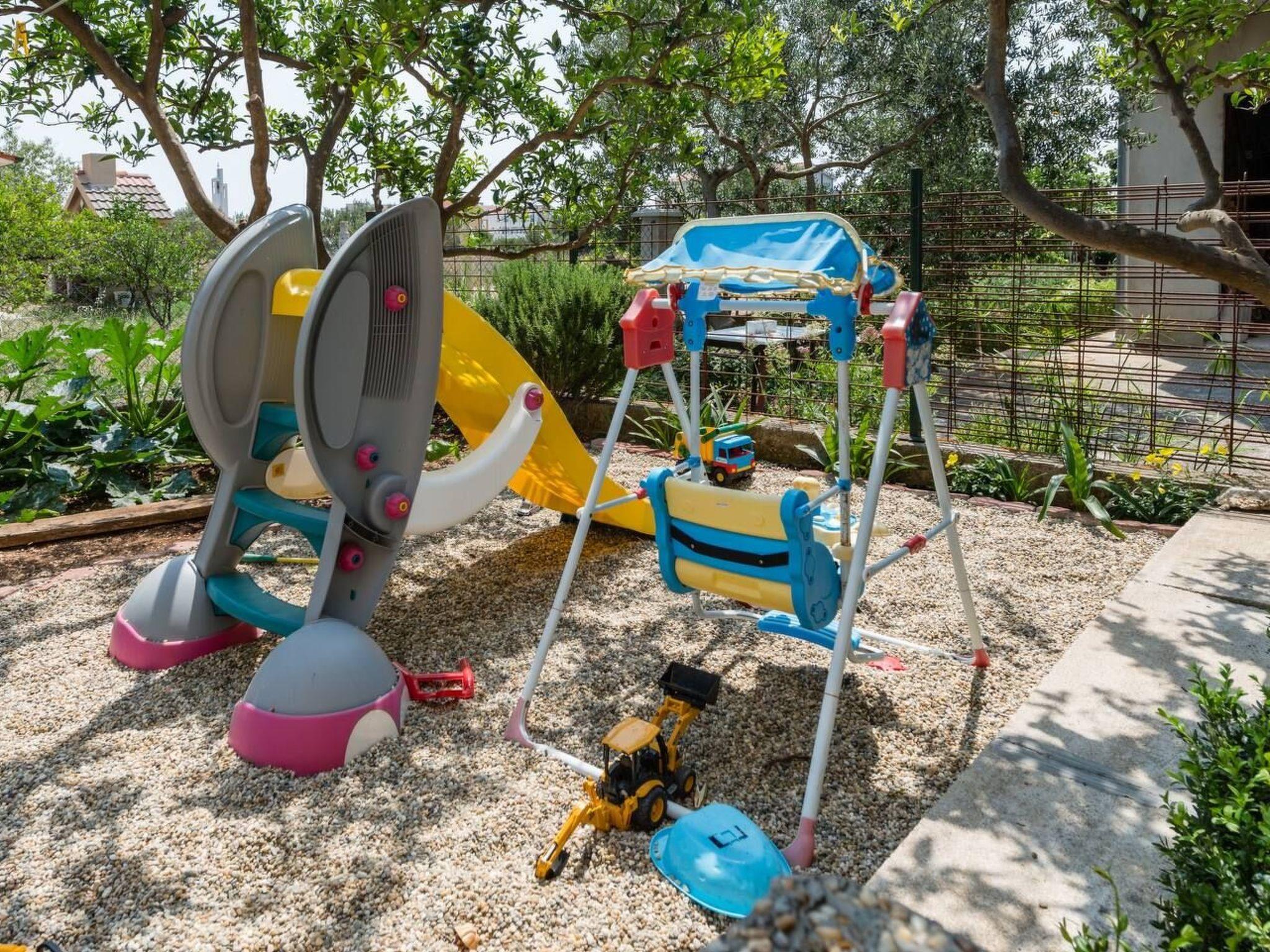 Stepping outside, the apartment boasts a spacious terrace where guests can relax and enjoy the outside air. The garden, available for communal use, is a delightful space where younger guests can find entertainment in the children's playground. This outdoor area is designed to offer a tranquil setting for relaxation and enjoyment throughout your stay.