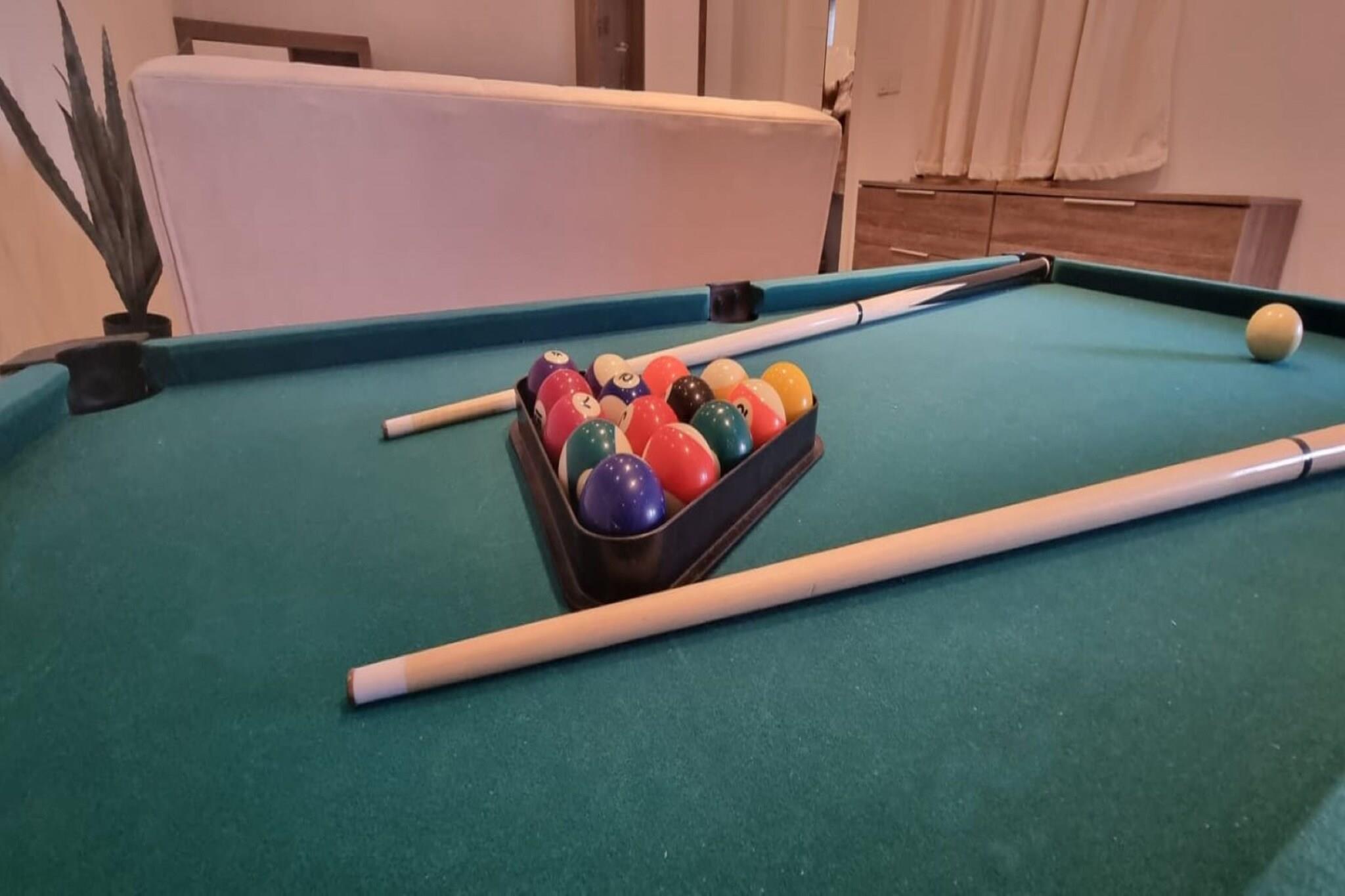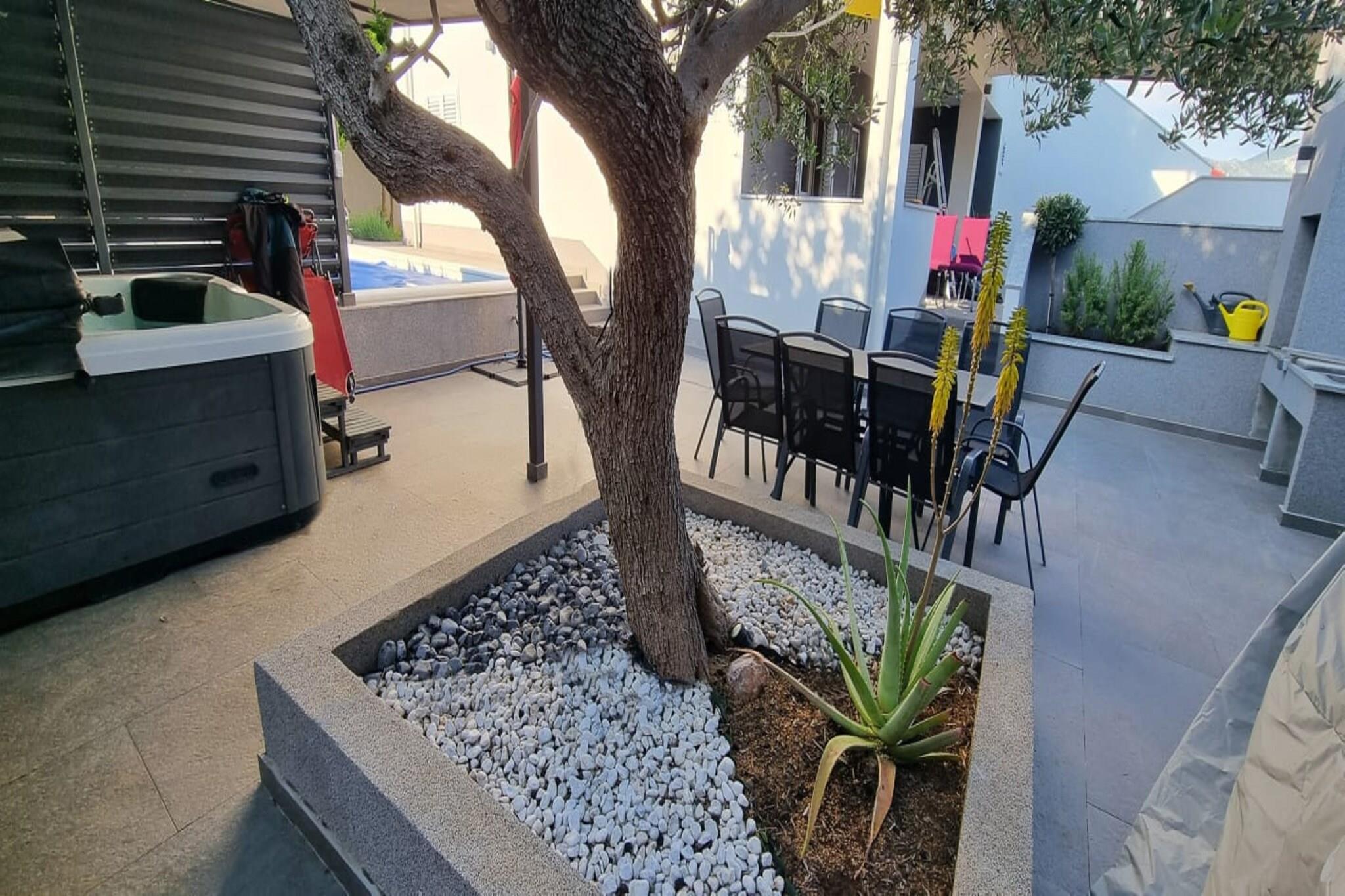 Denne rummelige lejlighed er et ideelt tilflugtssted for familier eller grupper, der tilbyder tre velindrettede soveværelser med plads til op til seks gæster. To værelser har queensize-senge, mens det tredje har en enkeltseng, og en ekstra sovesofa er tilgængelig i opholdsområdet. Ejendommen er kæledyrsvenlig og omfatter en privat have, opvarmet swimmingpool med hydromassage og en udendørs jacuzzi. Gæsterne kan også nyde rekreative faciliteter såsom billard og et legehus for børn. Gratis Wi-Fi, aircondition, parkering på stedet og adgang til Netflix sørger for et behageligt og forbundet ophold. Lejligheden har en bekvem beliggenhed i den fredelige by Kaštel Novi, kun få minutter fra naturskønne strande såsom Bijacka Kaštel. I nærheden finder du lokale favoritter som Ribola Supermarket og Konoba Rudine restaurant til spisning og nødvendigheder. Den historiske by Split, der er kendt for sin romerske arv, er en kort 23-kilometers kørsel væk. Derudover ligger Split Lufthavn kun 6 kilometer fra ejendommen, hvilket gør det nemt for internationale rejsende at få adgang til regionen. Lejligheden er udstyret med et moderne køkken med køleskab, fryser, ovn, mikroovn og opvaskemaskine, perfekt til tilberedning af familiemåltider. En vaskemaskine og tørretumbler sikrer ekstra bekvemmelighed under længere ophold. Udendørsområdet er ideelt til afslapning eller underholdning, med en grillplads, havemøbler og en udendørs bruser. Håndklæder, sengetøj og babyudstyr såsom en vugge og høj stol leveres også uden ekstra omkostninger.
