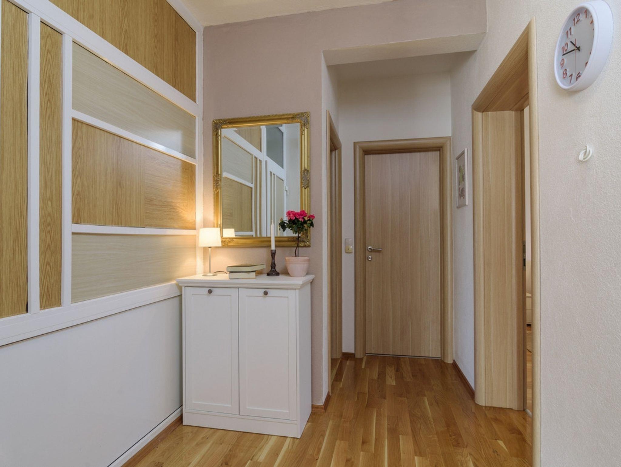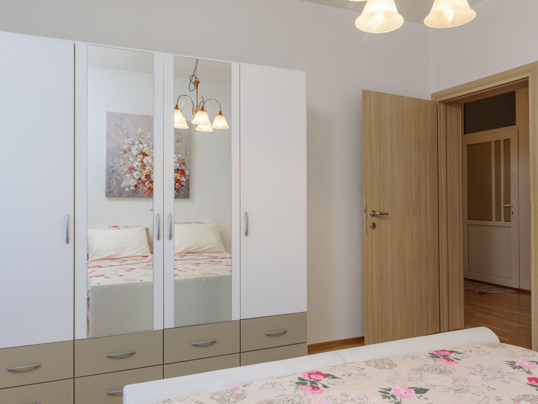 Ferienwohnung bietet Platz für 4 Gäste. Die Betten sind in Schlafzimmern, die es 2 gibt, innerhalb einer Gesamtfläche von 76m2, angeordnet. Die Gäste haben eine eigene Terrasse zur Verfügung, auf der sie in warmen Sommernächten genießen können. Es ist erlaubt, Speisen auf dem Gemeinschafts-Grill vorzubereiten. IM PREIS INBEGRIFFEN: Kurtaxe, Endreinigung, Klimatisierung, Parkplatz, Internet, Kinderbett, Bügeleisen, Bügelbrett, Föhn. VERBINDLICHE ZUSÄTZLICHE KOSTEN: Aufzahlung für Kurzaufenthalte (prozentualer Zuschlag pro Nächtigungsanzahl: 30% - 1, 20% - 2, 10% - 3). UNVERBINDLICHE ZUSÄTZLICHE KOSTEN: Zusatzbett (10,00 € pro Nacht). Die Verfügbarkeit zusätzlicher Dienstleistungen in Ihrem reservierten Termin und die Preise derselben (falls nicht aufgeführt) müssen im Voraus überprüft werden. Zusätzliche Dienstleistungen die in der Zahlungsaufforderung nicht aufgeführt sind werden direkt beim Vermieter bezahlt, angenommen der Gast nutzt auch diese.
