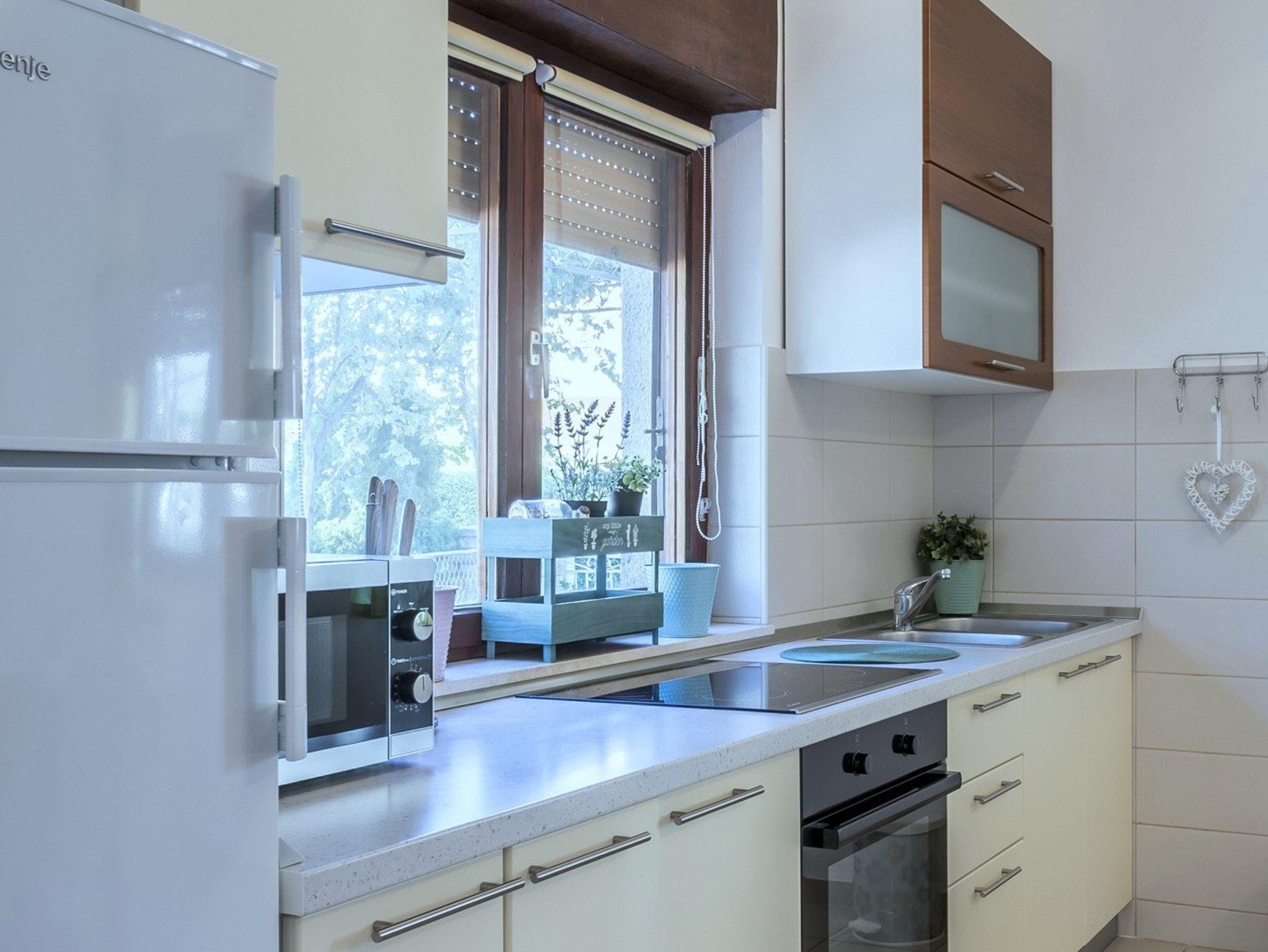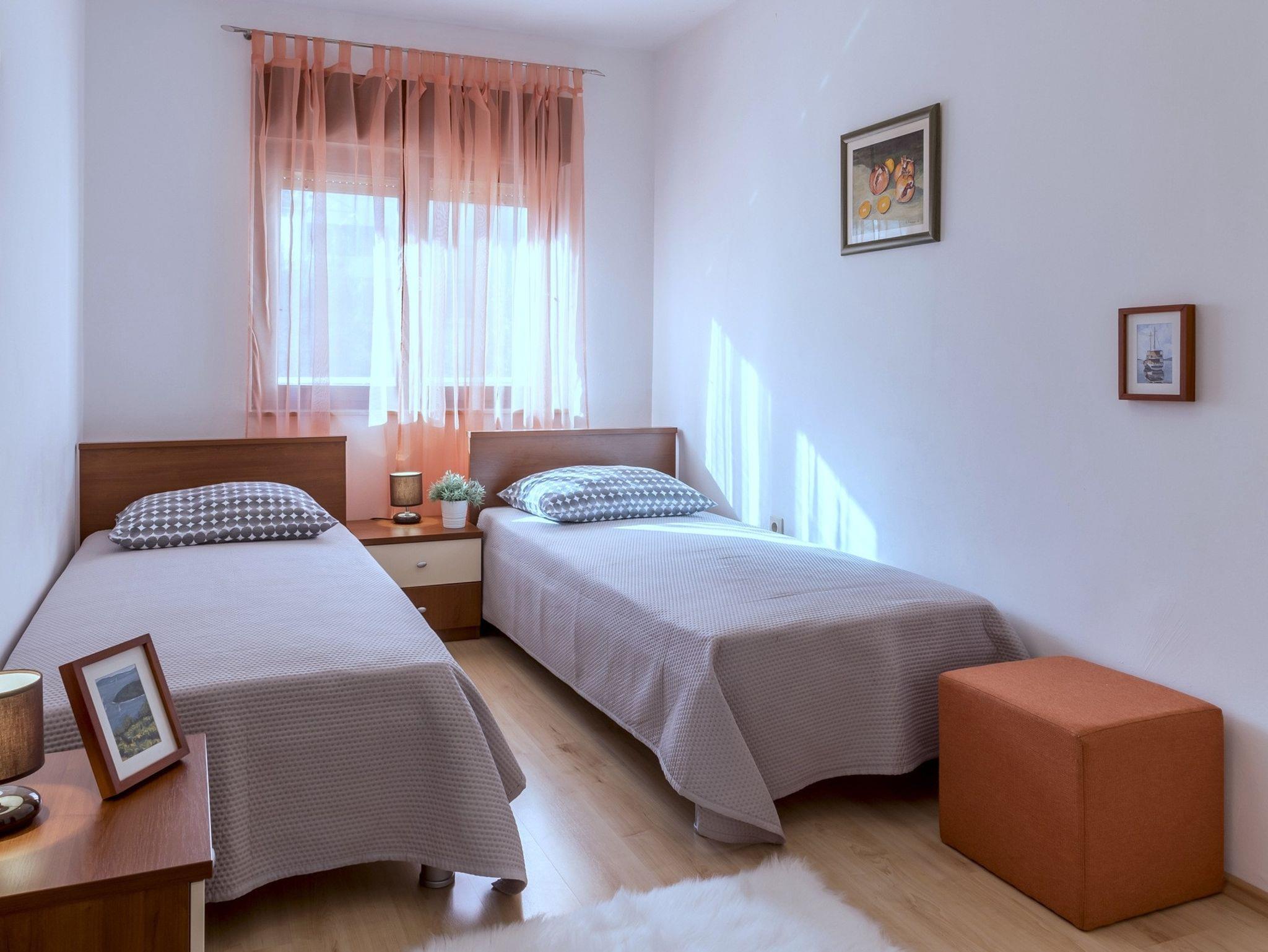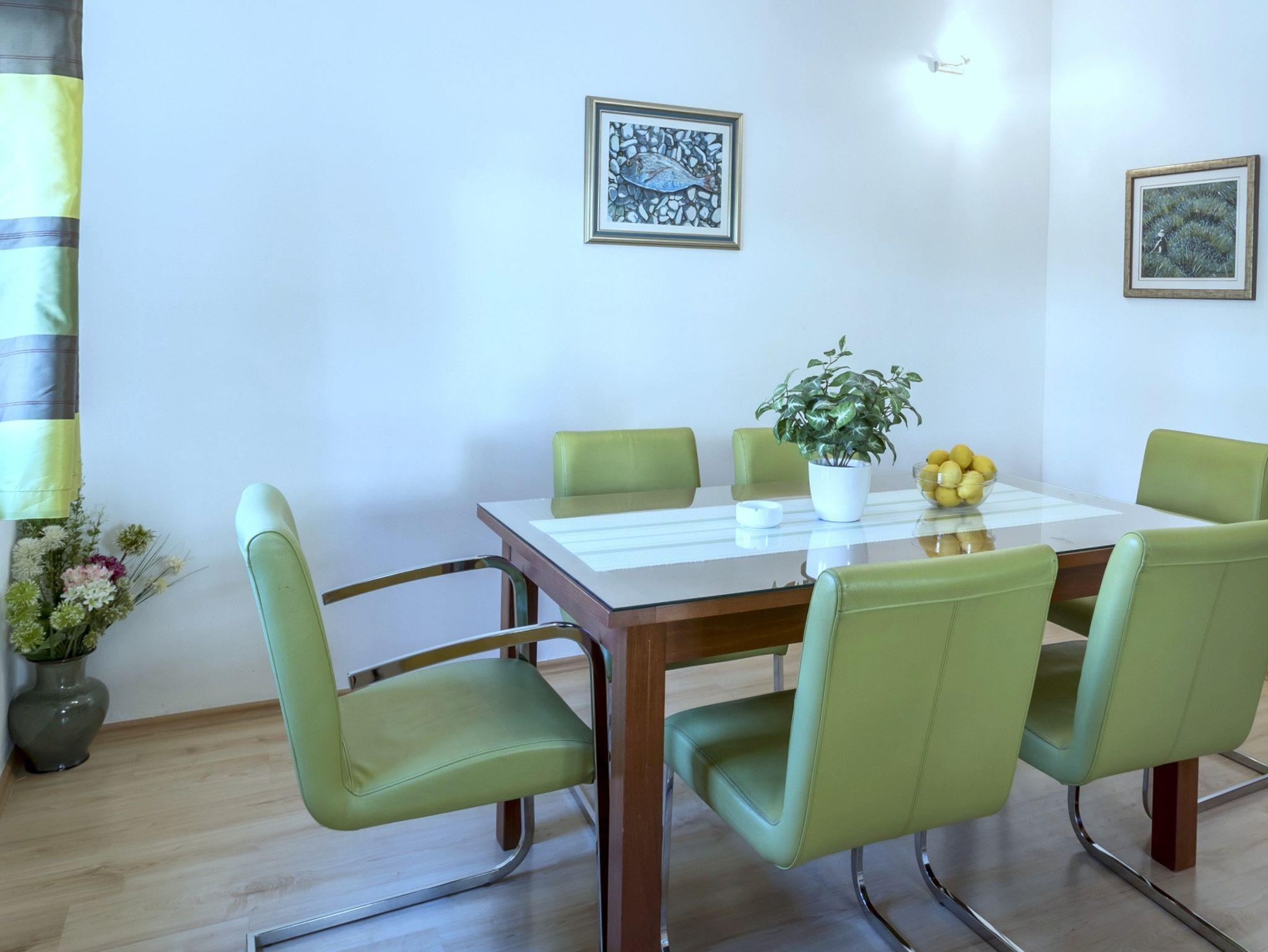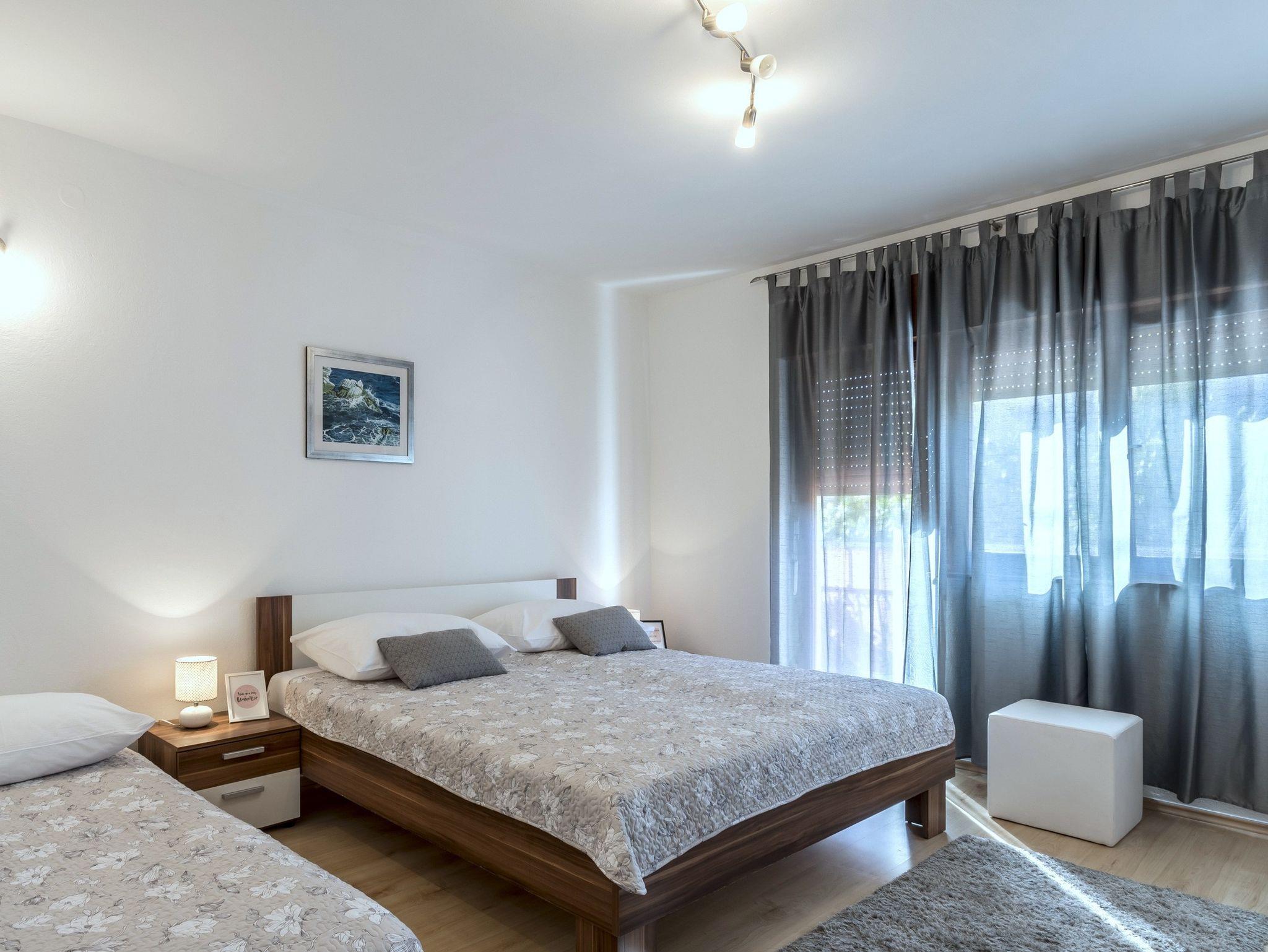 Ferienwohnung bietet Platz für 6 Gäste. Die Betten sind in Schlafzimmern, die es 3 gibt, innerhalb einer Gesamtfläche von 88m2, angeordnet. Die Gäste haben eine eigene Terrasse zur Verfügung, auf der sie in warmen Sommernächten genießen können. Es ist erlaubt, Speisen auf dem Gemeinschafts-Grill vorzubereiten. In der Unterkunftseinheit besteht die Möglichkeit des Mitbringens von Haustieren, und die Dienstleistung ist im Preis der Unterkunft enthalten. IM PREIS INBEGRIFFEN: Kurtaxe, Endreinigung, Klimatisierung, Parkplatz, Internet, Haustiere, Kinderbett, Zusatzbett, Bügeleisen, Bügelbrett, Föhn, tragbarer Grill. Die Verfügbarkeit zusätzlicher Dienstleistungen in Ihrem reservierten Termin und die Preise derselben (falls nicht aufgeführt) müssen im Voraus überprüft werden. Zusätzliche Dienstleistungen die in der Zahlungsaufforderung nicht aufgeführt sind werden direkt beim Vermieter bezahlt, angenommen der Gast nutzt auch diese.