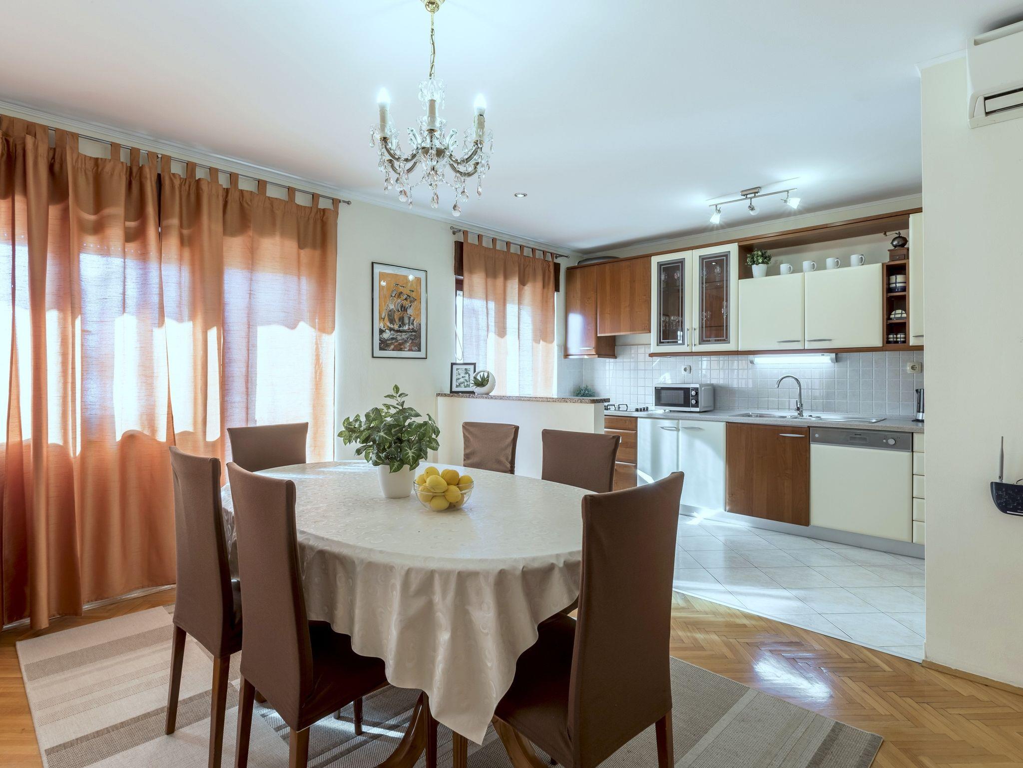 Ferienwohnung bietet Platz für 6 Gäste. Die Betten sind in Schlafzimmern, die es 3 gibt, innerhalb einer Gesamtfläche von 99m2, angeordnet. Die Gäste haben einen eigenen Balkon zur Verfügung, auf der sie in warmen Sommernächten genießen können. Es ist erlaubt, Speisen auf dem Gemeinschafts-Grill vorzubereiten. In der Unterkunftseinheit besteht die Möglichkeit des Mitbringens von Haustieren, und die Dienstleistung ist im Preis der Unterkunft enthalten. IM PREIS INBEGRIFFEN: Kurtaxe, Endreinigung, Klimatisierung, Parkplatz, Internet, Haustiere, Kinderbett, Zusatzbett, Bügeleisen, Bügelbrett, Föhn, tragbarer Grill. Die Verfügbarkeit zusätzlicher Dienstleistungen in Ihrem reservierten Termin und die Preise derselben (falls nicht aufgeführt) müssen im Voraus überprüft werden. Zusätzliche Dienstleistungen die in der Zahlungsaufforderung nicht aufgeführt sind werden direkt beim Vermieter bezahlt, angenommen der Gast nutzt auch diese.