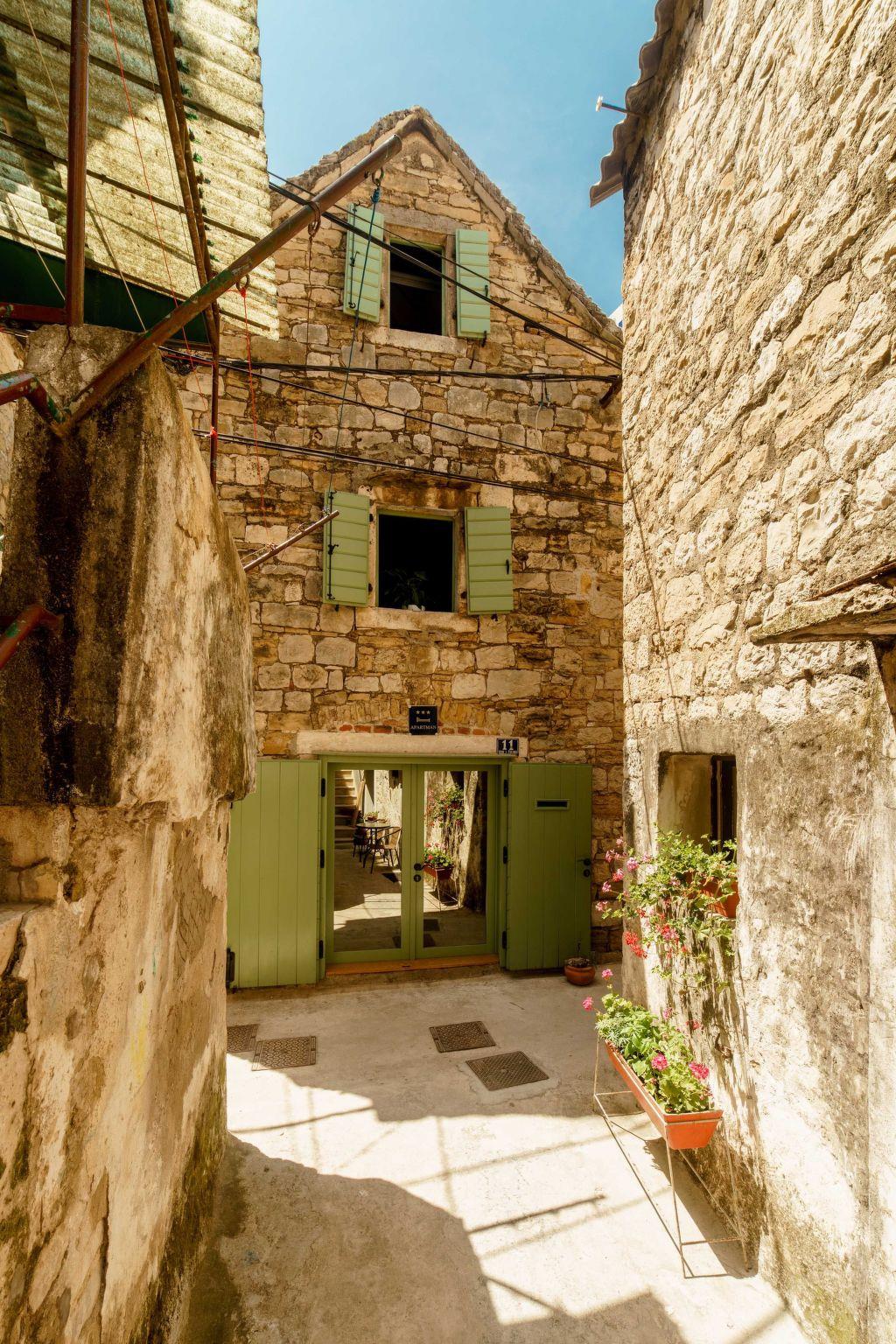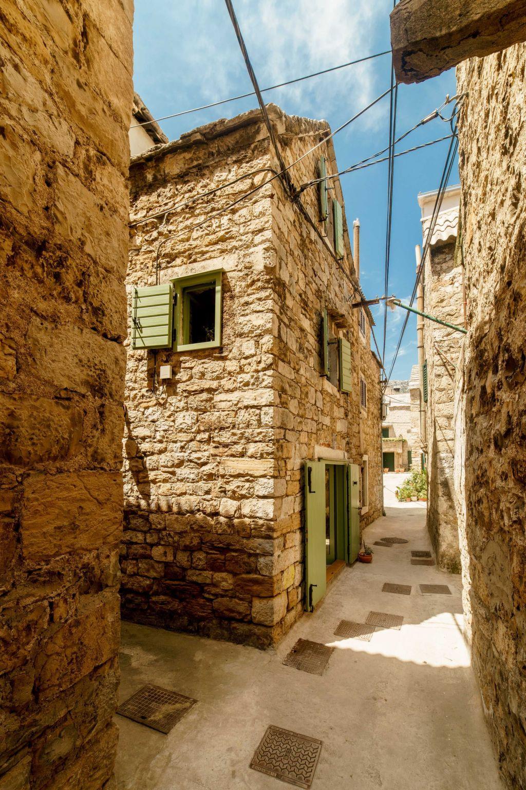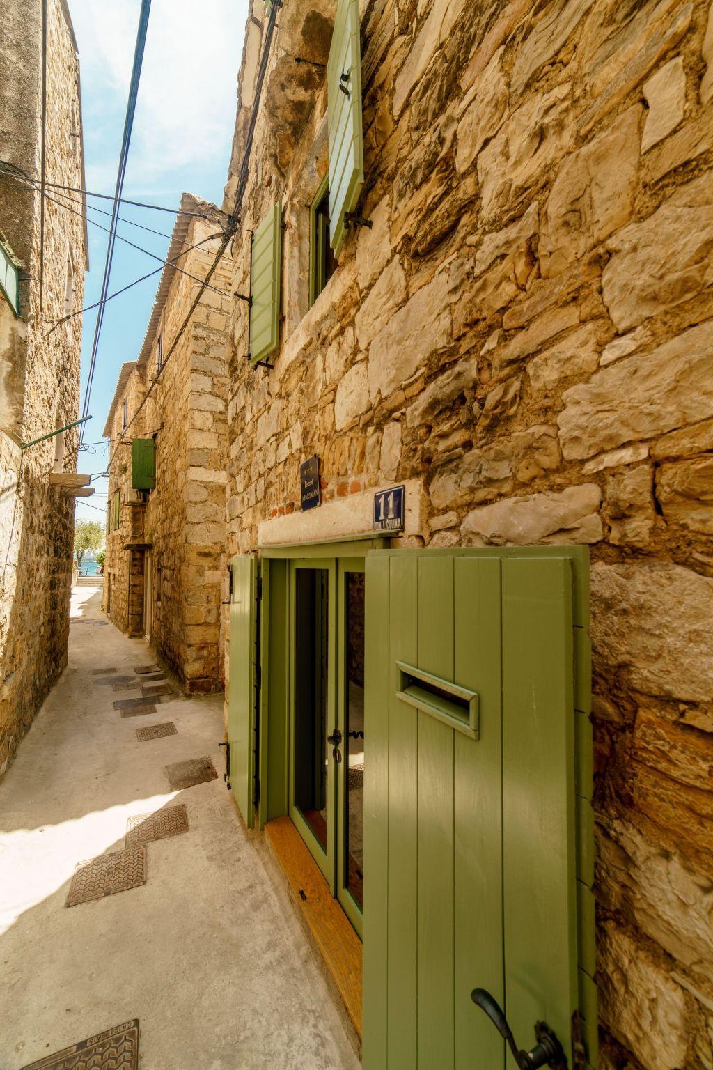 The house has a ground floor (kitchen with all the amenities, dining room and laundry machine), first floor (living room with TV and AC) and second floor (bedroom and bathroom with AC). There is a shared barbecue outside of the house and a place to drink your morning coffee or have a private dinner. All the windows and the main door allow you to look outside but no one can see you inside so privacy is guaranteed night and day. Wi-fi is available in all the rooms. The floors are connected with wooden stairs. All the details in the house are authentic from the different times in the past reflecting Dalmatian way of life. The house was renovated for 12 years and is considered to be a cultural heritage.