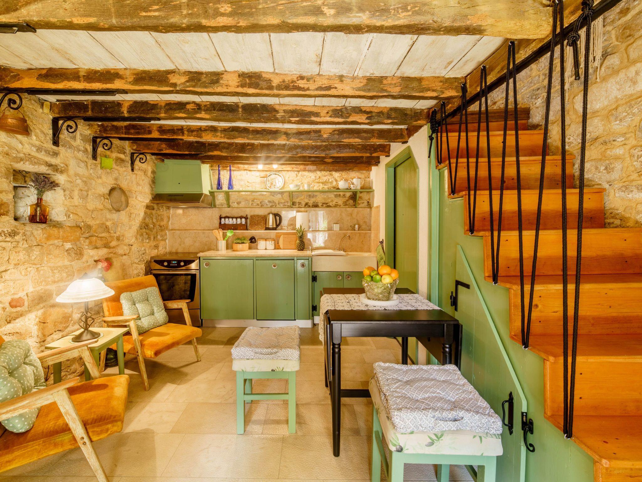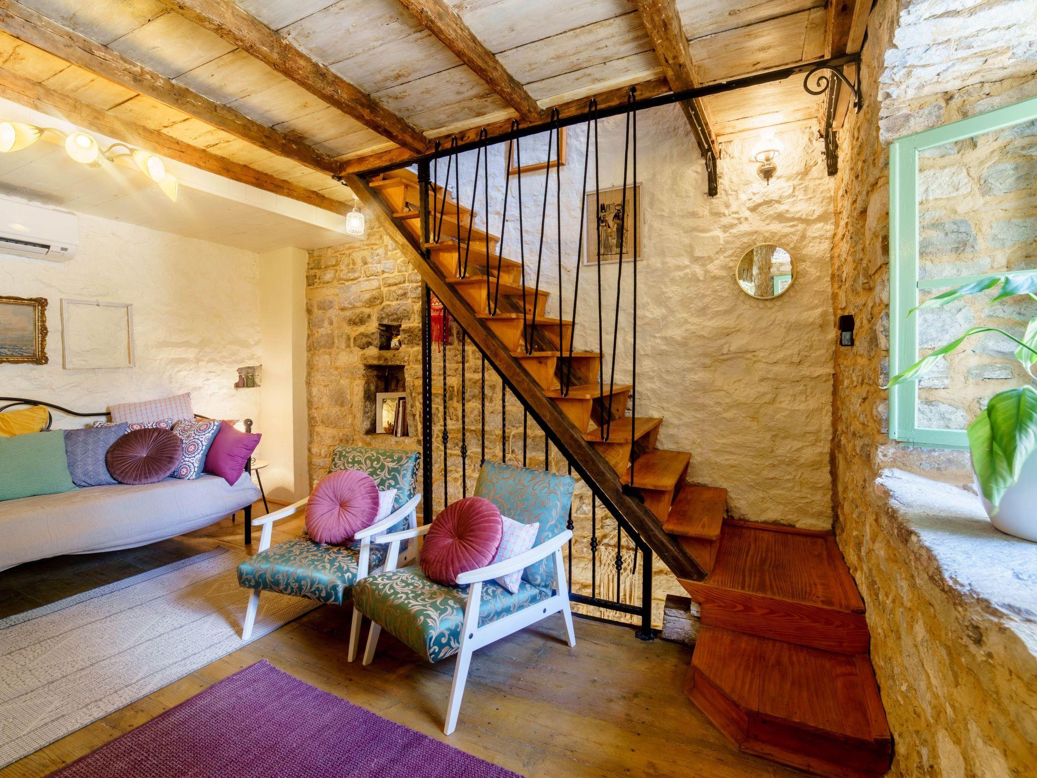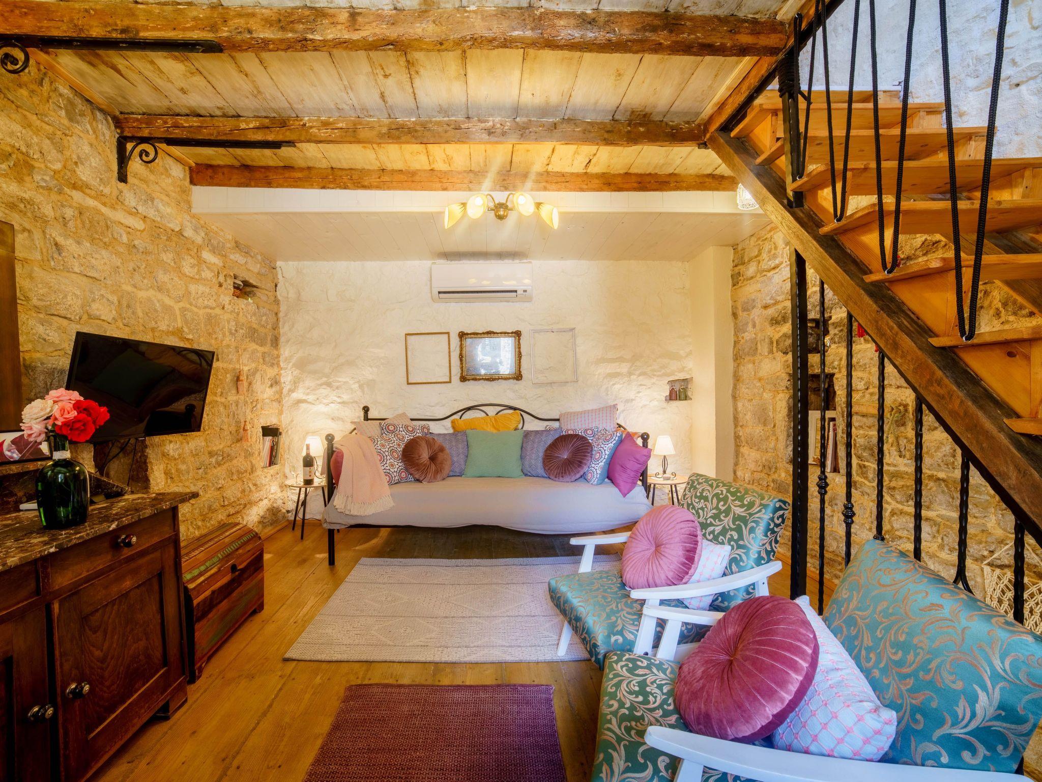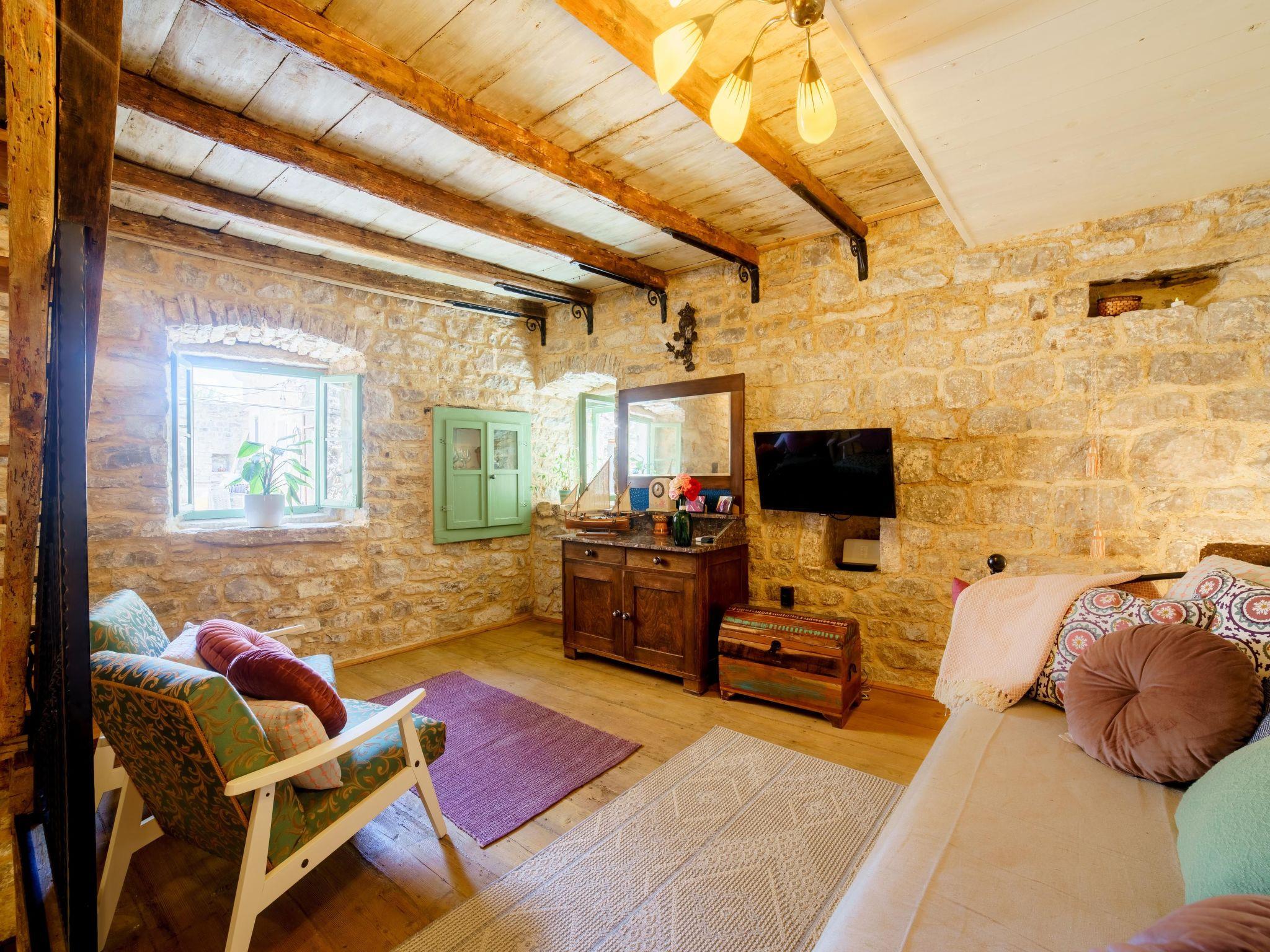 The house has a ground floor (kitchen with all the amenities, dining room and laundry machine), first floor (living room with TV and AC) and second floor (bedroom and bathroom with AC). There is a shared barbecue outside of the house and a place to drink your morning coffee or have a private dinner. All the windows and the main door allow you to look outside but no one can see you inside so privacy is guaranteed night and day. Wi-fi is available in all the rooms. The floors are connected with wooden stairs. All the details in the house are authentic from the different times in the past reflecting Dalmatian way of life. The house was renovated for 12 years and is considered to be a cultural heritage.