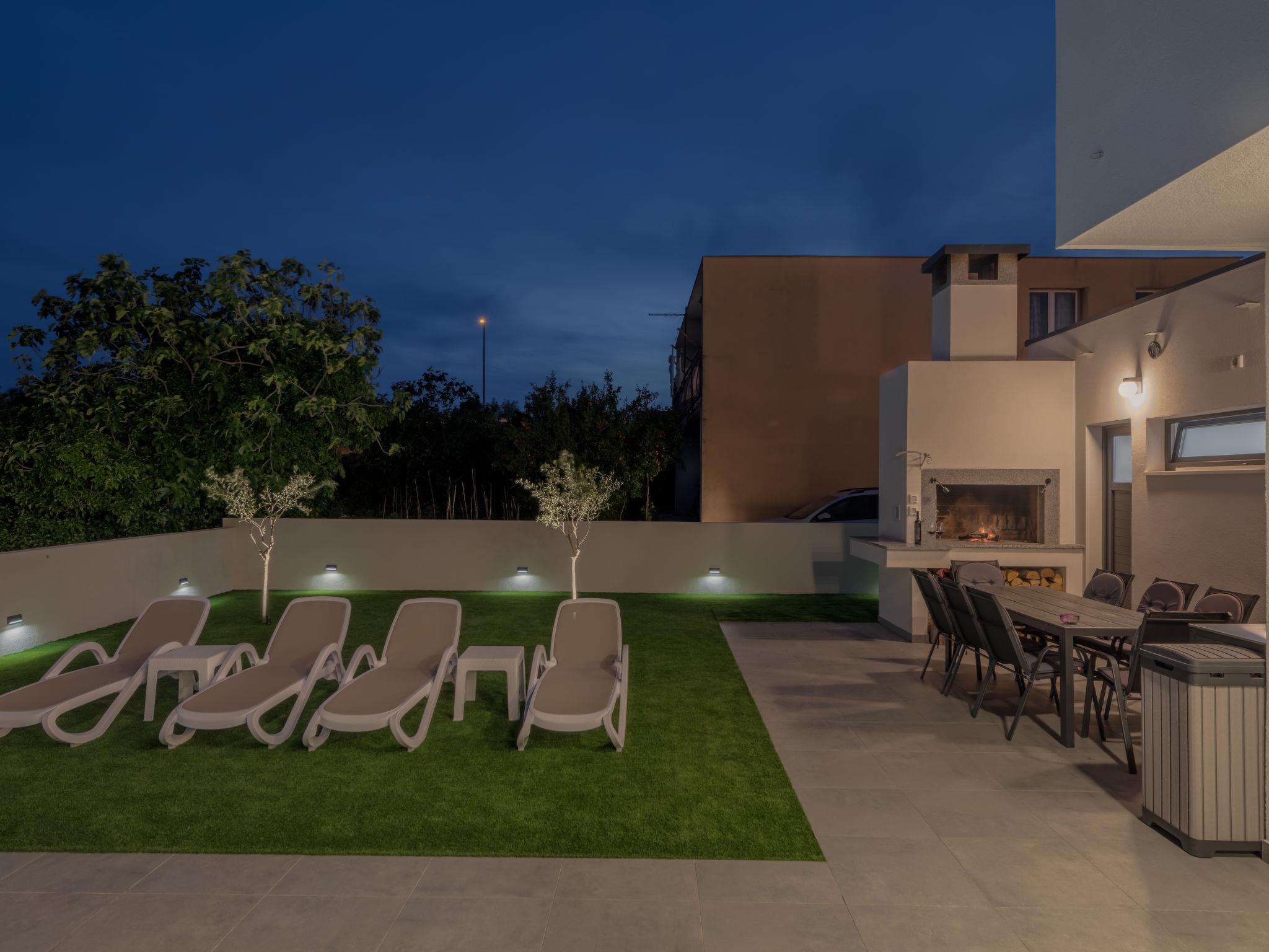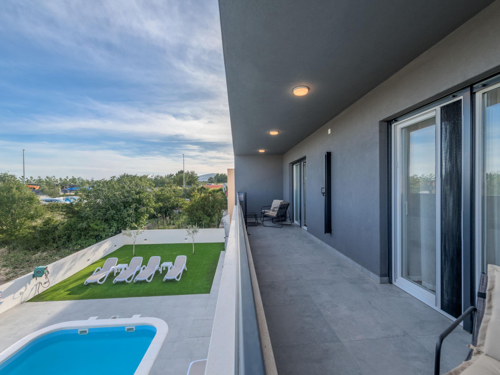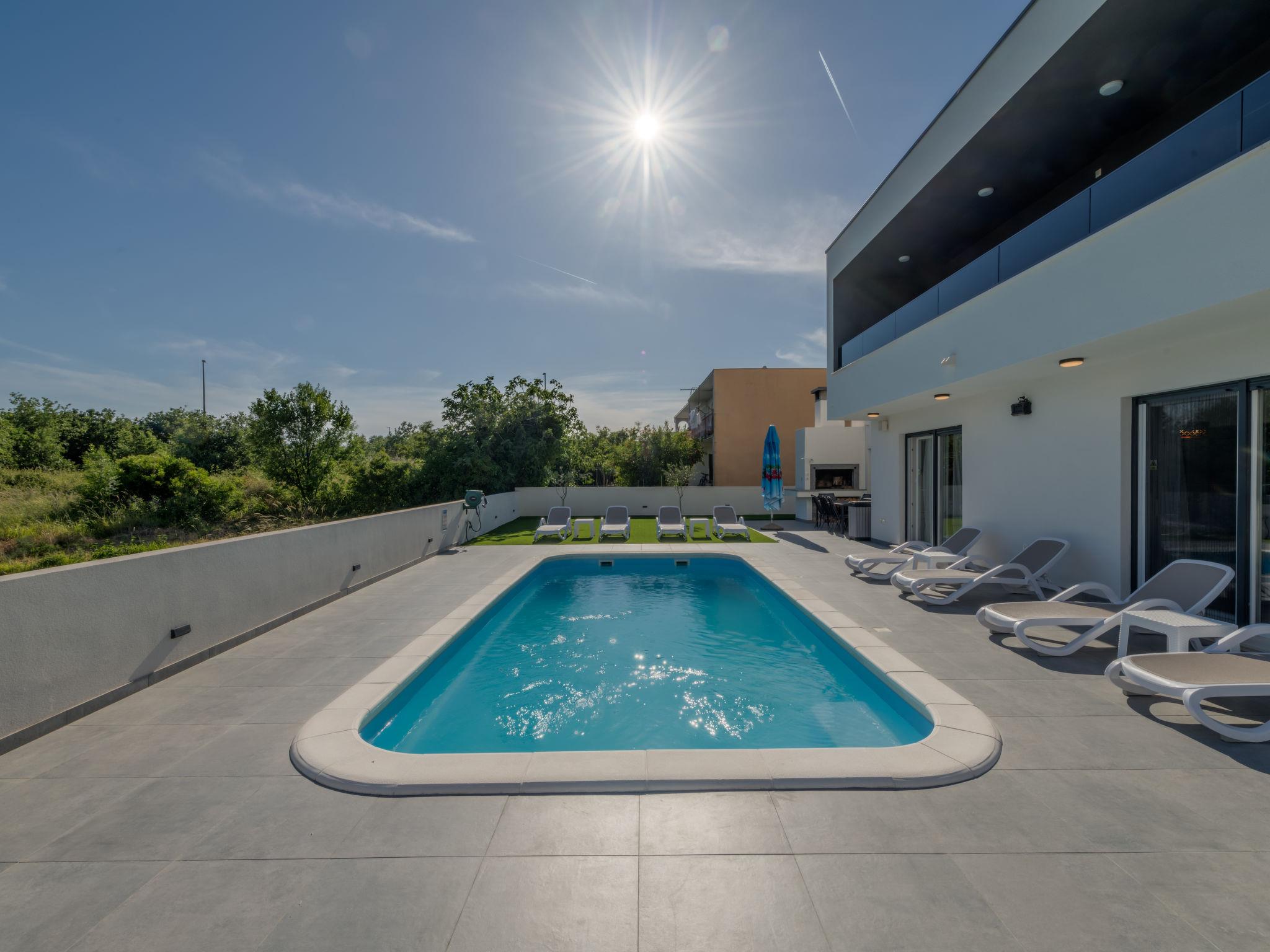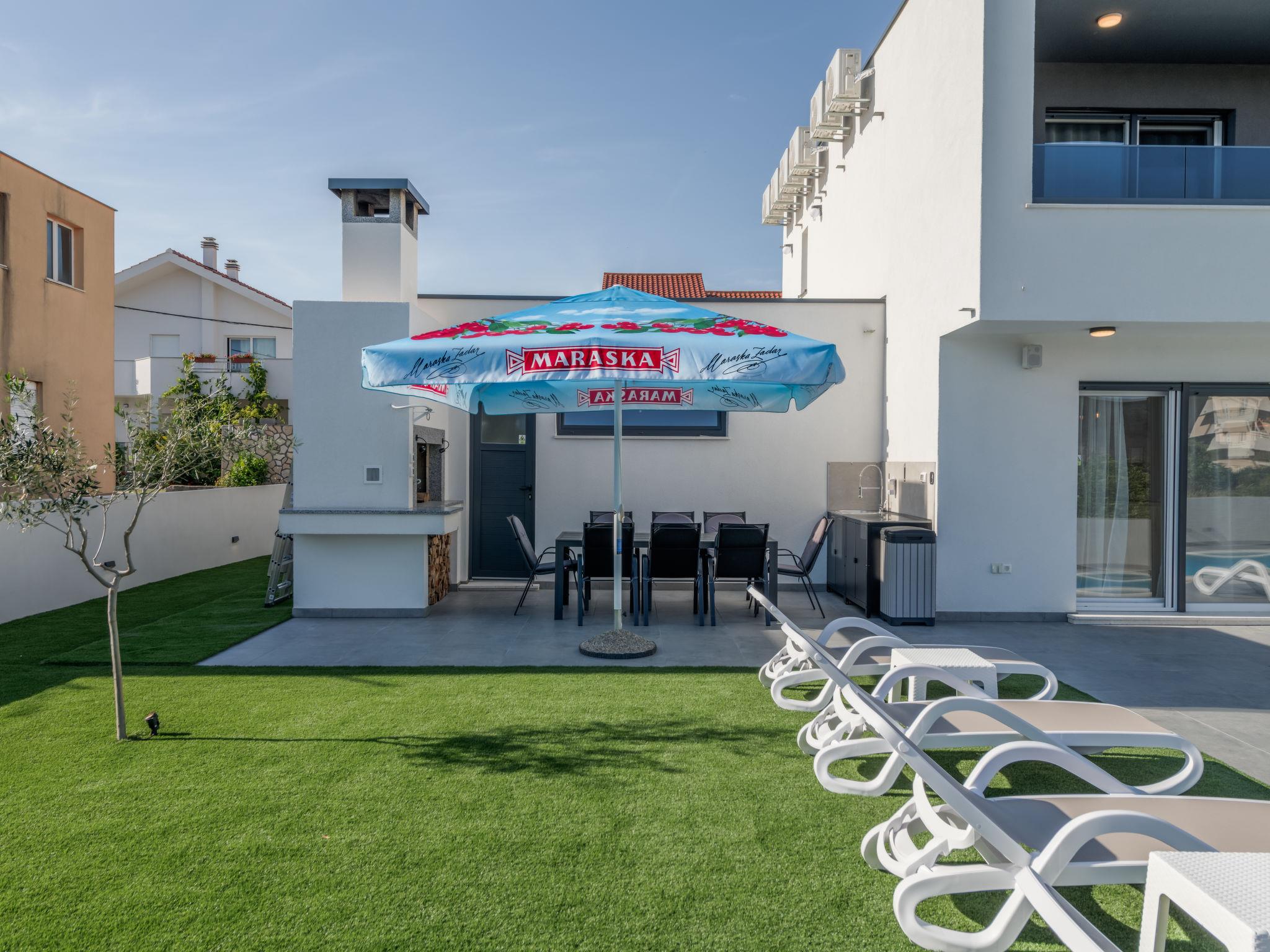 Very modern, beautiful house "Golden strings", 2 storeys, built in 2024. 2.3 km from the centre of Kaštel Novi, 1.3 km from the sea, 1.3 km from the beach, in a cul-de-sac. Private: property 500 m2 (fenced), swimming pool angular, heated (28 m2, depth 145 cm, seasonal availability: 01.Jan. - 31.Dec.) with internal staircase. WC in the pool area, outdoor shower, terrace (100 m2), garden furniture, barbecue, pool maintenance by the owner/gardener. In the house: internet access, washing machine, tumble dryer. Parking (for 4 cars) at the house on the premises, single garage. Supermarket 600 m, restaurant 2.1 km, café 2.1 km, bus stop 500 m, pebble beach 1.3 km. Please note: airfield close by 3.3 km from the property. Neighbourhood highly sensitive to noise. Quietness and good behaviour expected.