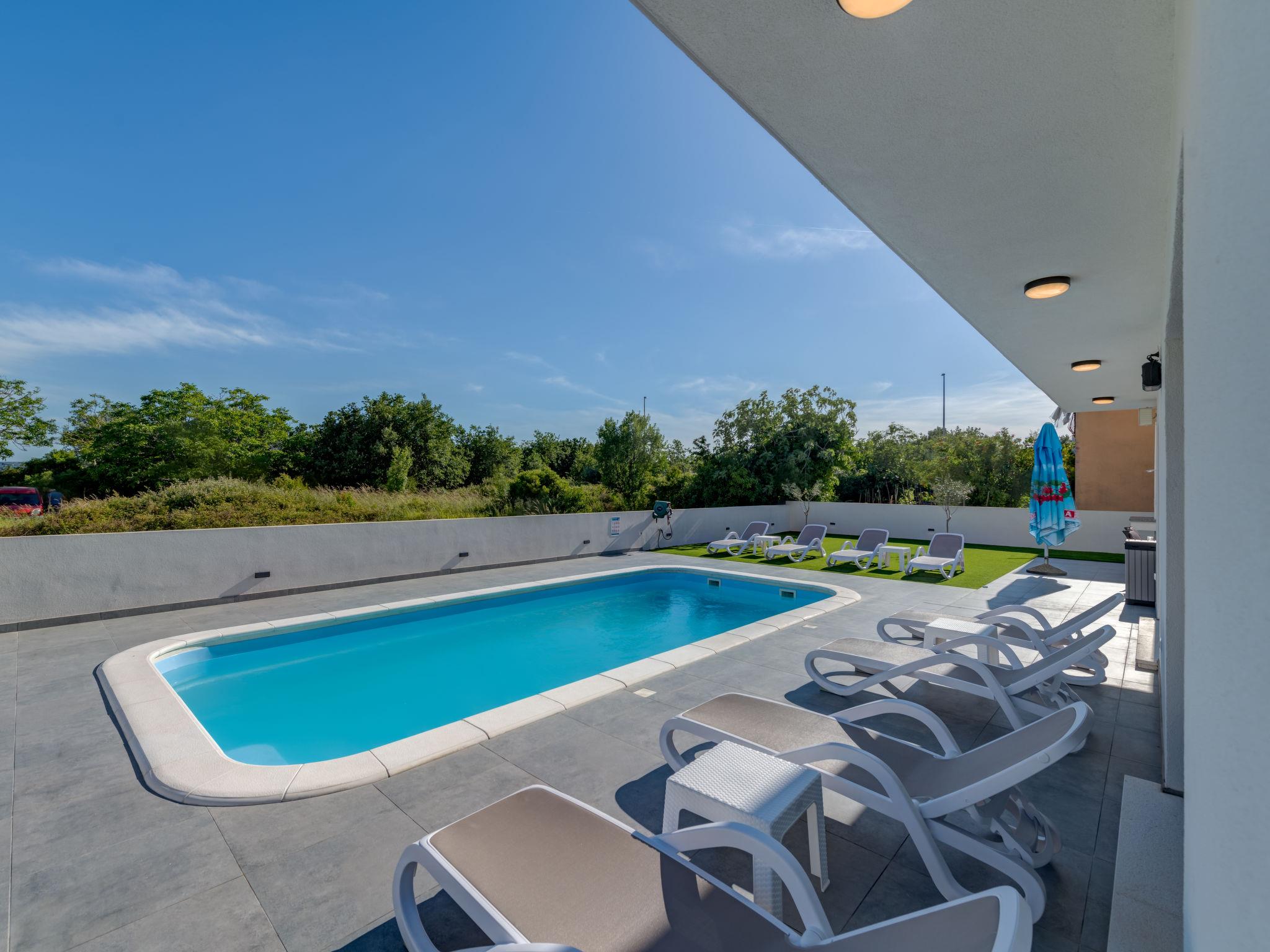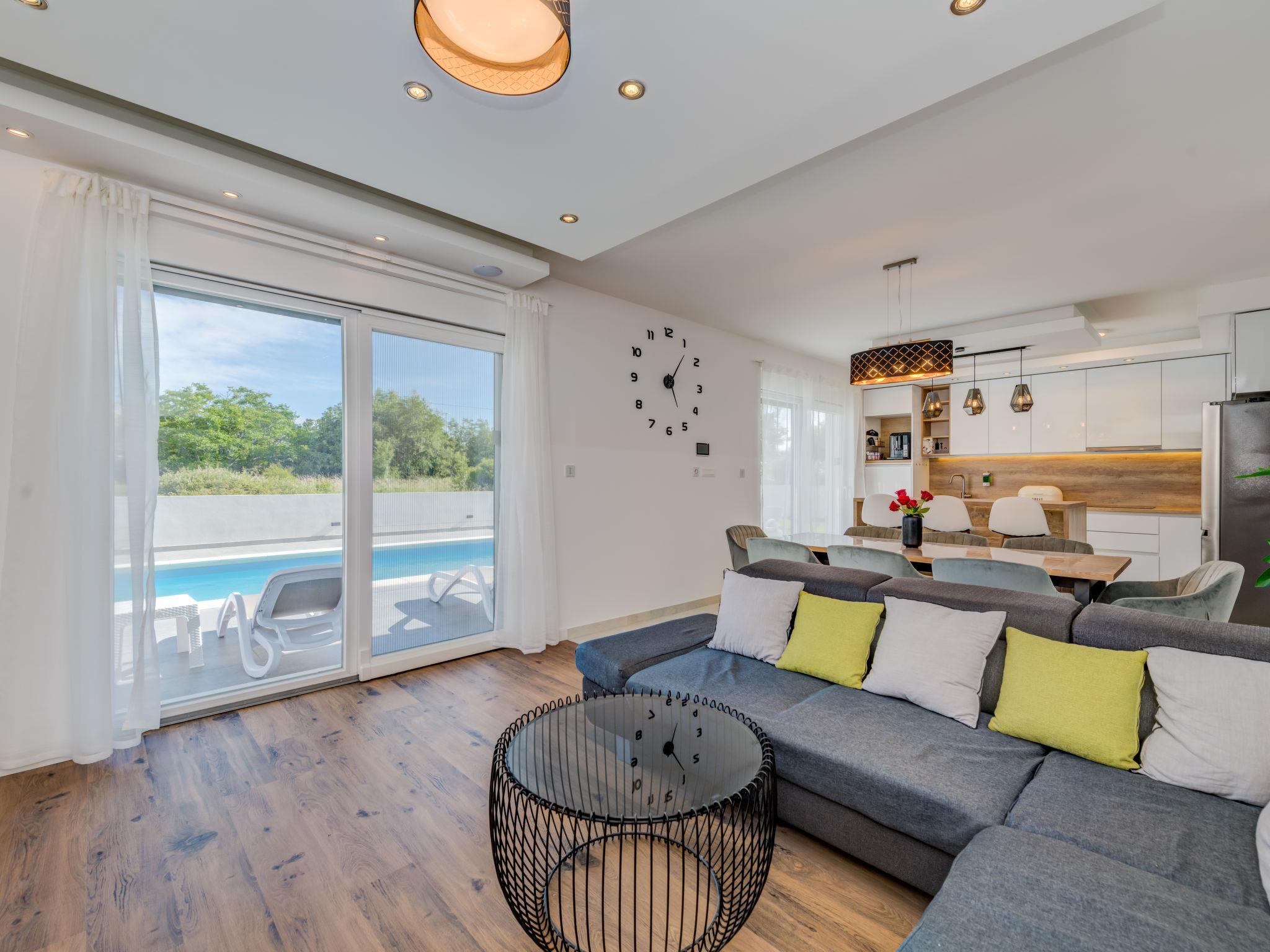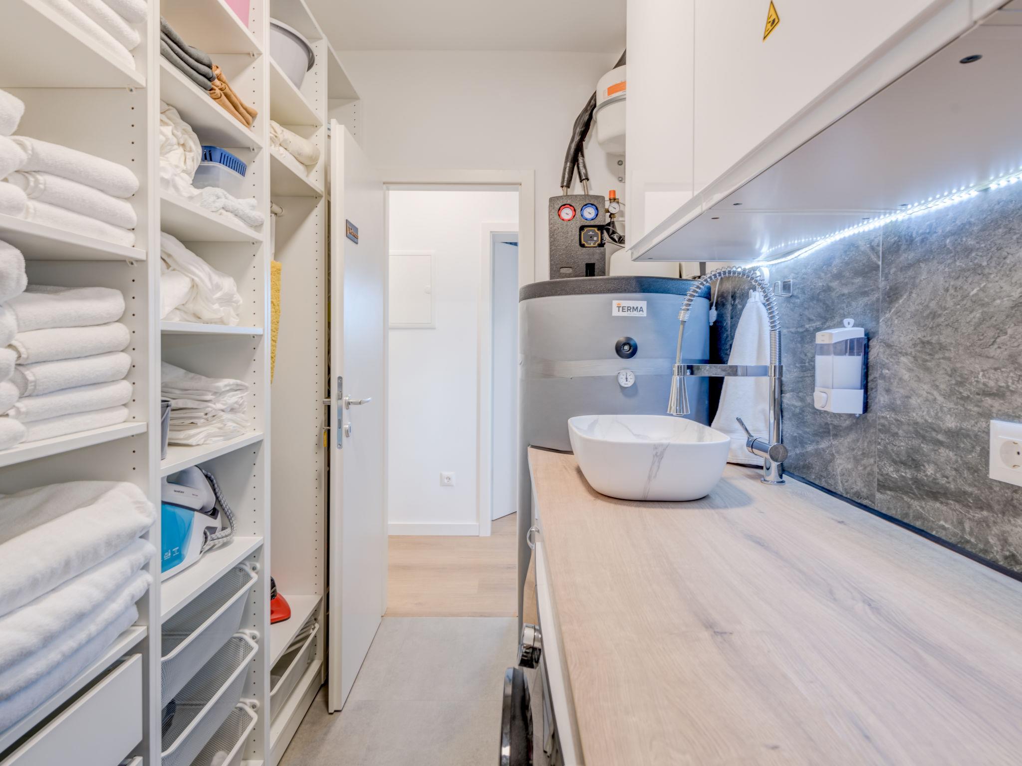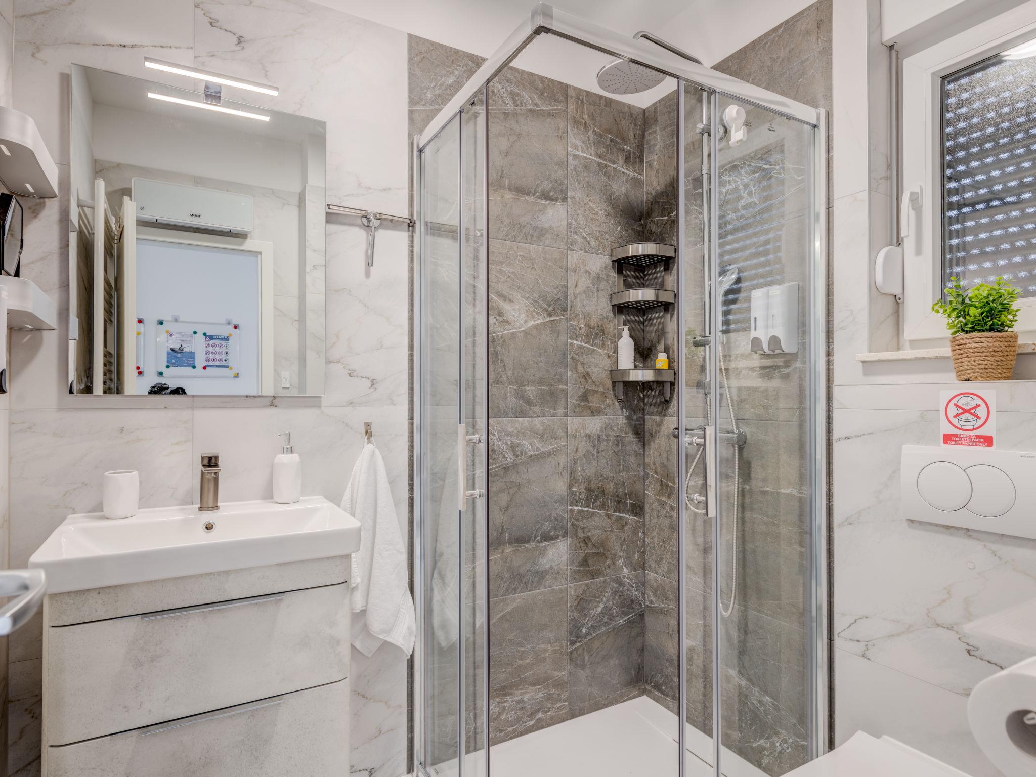 Very modern, beautiful house "Golden strings", 2 storeys, built in 2024. 2.3 km from the centre of Kaštel Novi, 1.3 km from the sea, 1.3 km from the beach, in a cul-de-sac. Private: property 500 m2 (fenced), swimming pool angular, heated (28 m2, depth 145 cm, seasonal availability: 01.Jan. - 31.Dec.) with internal staircase. WC in the pool area, outdoor shower, terrace (100 m2), garden furniture, barbecue, pool maintenance by the owner/gardener. In the house: internet access, washing machine, tumble dryer. Parking (for 4 cars) at the house on the premises, single garage. Supermarket 600 m, restaurant 2.1 km, café 2.1 km, bus stop 500 m, pebble beach 1.3 km. Please note: airfield close by 3.3 km from the property. Neighbourhood highly sensitive to noise. Quietness and good behaviour expected.