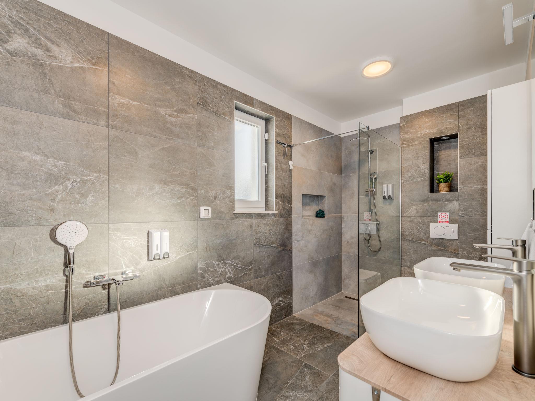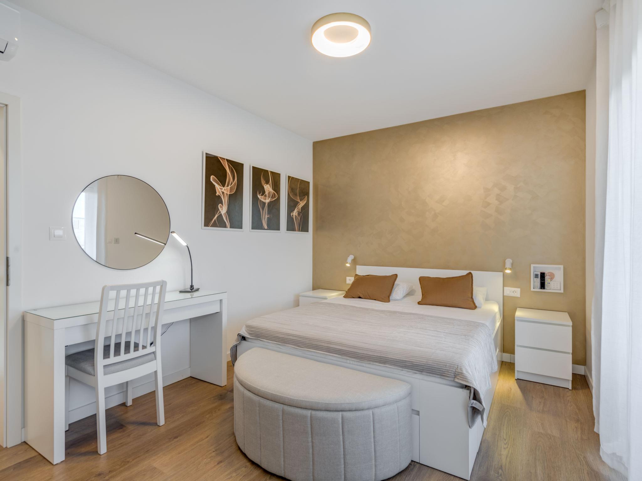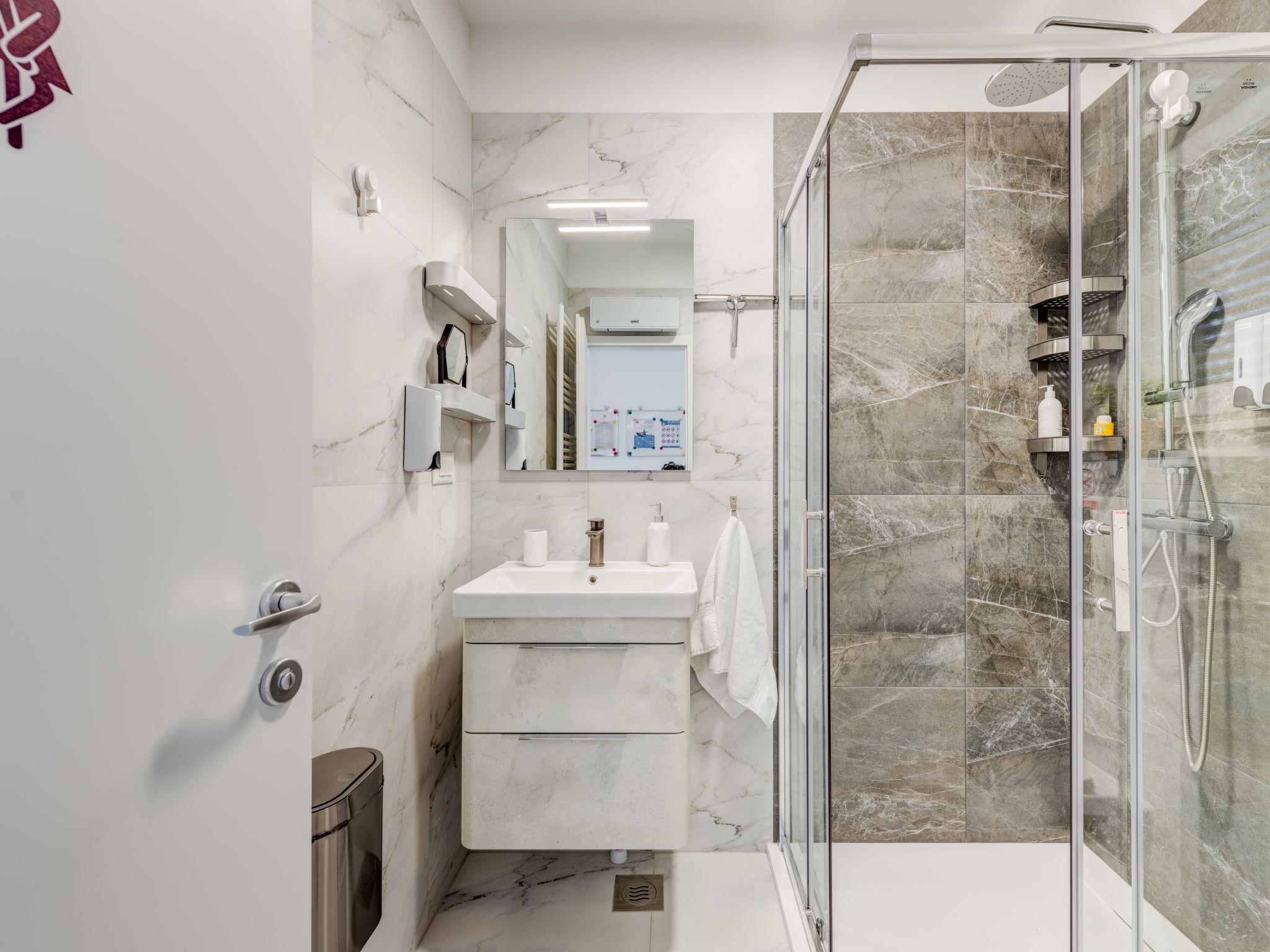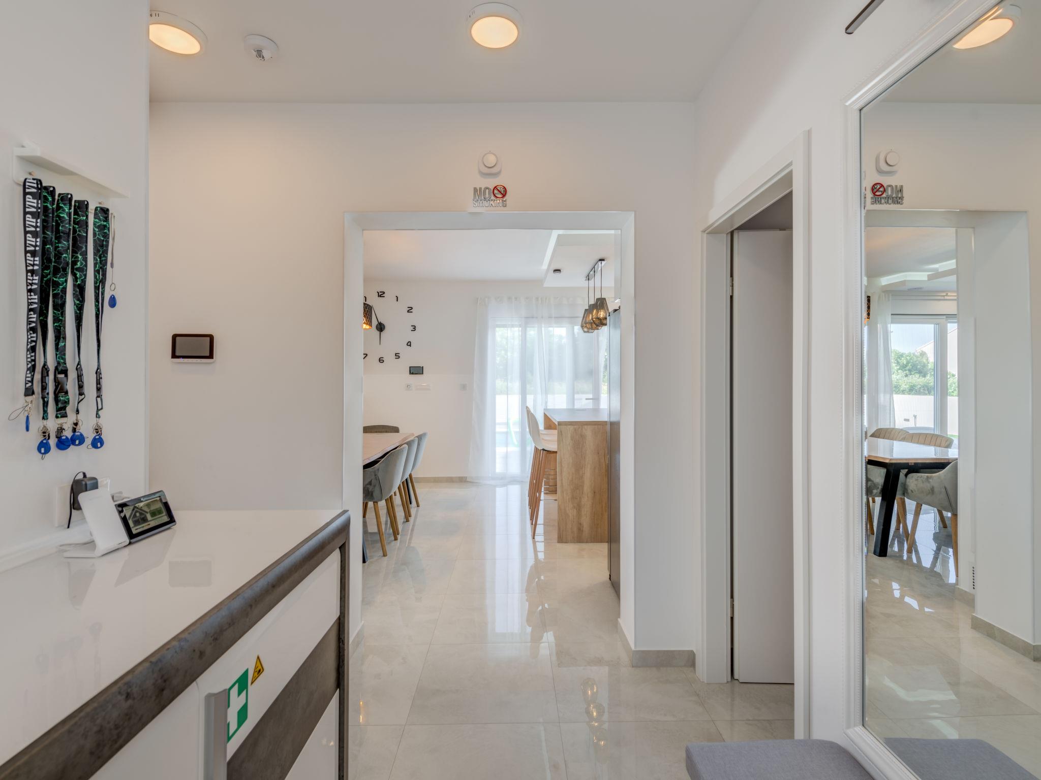 Very modern, beautiful house "Golden strings", 2 storeys, built in 2024. 2.3 km from the centre of Kaštel Novi, 1.3 km from the sea, 1.3 km from the beach, in a cul-de-sac. Private: property 500 m2 (fenced), swimming pool angular, heated (28 m2, depth 145 cm, seasonal availability: 01.Jan. - 31.Dec.) with internal staircase. WC in the pool area, outdoor shower, terrace (100 m2), garden furniture, barbecue, pool maintenance by the owner/gardener. In the house: internet access, washing machine, tumble dryer. Parking (for 4 cars) at the house on the premises, single garage. Supermarket 600 m, restaurant 2.1 km, café 2.1 km, bus stop 500 m, pebble beach 1.3 km. Please note: airfield close by 3.3 km from the property. Neighbourhood highly sensitive to noise. Quietness and good behaviour expected.