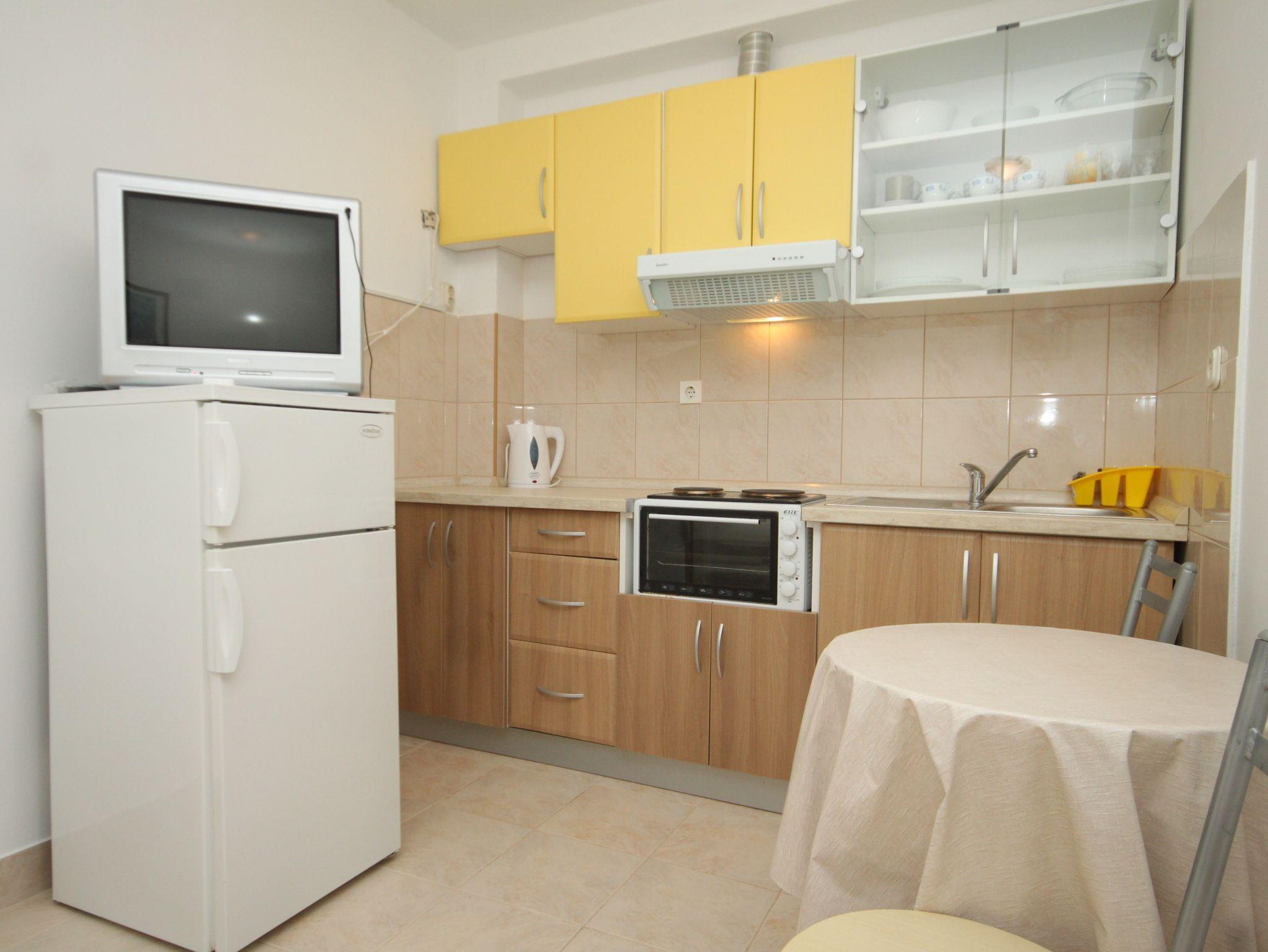 Ferienwohnung bietet Platz für 3 Gäste. Die Betten sind in Schlafzimmern, die es 1 gibt, und in Wohnzimmer, innerhalb einer Gesamtfläche von 24m2, angeordnet. Die Gäste haben eine eigene Terrasse zur Verfügung, auf der sie in warmen Sommernächten genießen können. Das Apartment bietet Meerblick. Es ist erlaubt, Speisen auf dem Gemeinschafts-Grill vorzubereiten. In der Unterkunftseinheit besteht die Möglichkeit des Mitbringens von Haustieren gegen Aufpreis. IM PREIS INBEGRIFFEN: Kurtaxe, Endreinigung, Klimatisierung, Parkplatz, Internet, Wäschewaschen, Bootsanlegeplatz, Bügeleisen, Bügelbrett, Föhn. VERBINDLICHE ZUSÄTZLICHE KOSTEN: Aufzahlung für Kurzaufenthalte (prozentualer Zuschlag pro Nächtigungsanzahl: 30% - 1, 20% - 2, 10% - 3). UNVERBINDLICHE ZUSÄTZLICHE KOSTEN: Haustiere (10,00 € pro Nacht). Die Verfügbarkeit zusätzlicher Dienstleistungen in Ihrem reservierten Termin und die Preise derselben (falls nicht aufgeführt) müssen im Voraus überprüft werden. Zusätzliche Dienstleistungen die in der Zahlungsaufforderung nicht aufgeführt sind werden direkt beim Vermieter bezahlt, angenommen der Gast nutzt auch diese.