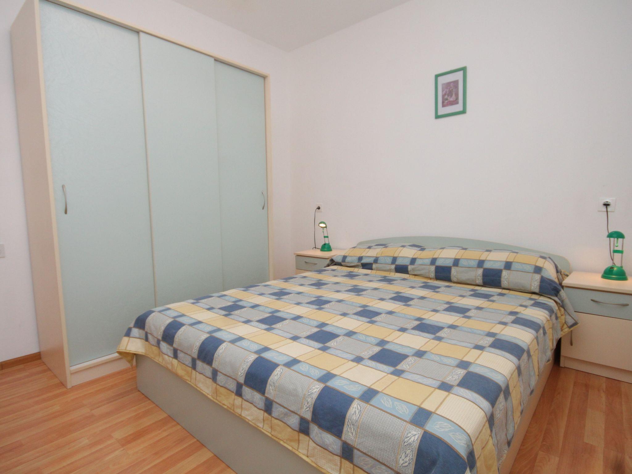 Ferienwohnung bietet Platz für 4 Gäste. Die Betten sind in Schlafzimmern, die es 2 gibt, innerhalb einer Gesamtfläche von 30m2, angeordnet. Die Gäste haben eine eigene Terrasse zur Verfügung, auf der sie in warmen Sommernächten genießen können. Das Apartment bietet Meerblick. Es ist erlaubt, Speisen auf dem Gemeinschafts-Grill vorzubereiten. In der Unterkunftseinheit besteht die Möglichkeit des Mitbringens von Haustieren gegen Aufpreis. IM PREIS INBEGRIFFEN: Kurtaxe, Endreinigung, Klimatisierung, Parkplatz, Internet, Wäschewaschen, Bootsanlegeplatz, Bügeleisen, Bügelbrett, Föhn. VERBINDLICHE ZUSÄTZLICHE KOSTEN: Aufzahlung für Kurzaufenthalte (prozentualer Zuschlag pro Nächtigungsanzahl: 30% - 1, 20% - 2, 10% - 3). UNVERBINDLICHE ZUSÄTZLICHE KOSTEN: Haustiere (10,00 € pro Nacht). Die Verfügbarkeit zusätzlicher Dienstleistungen in Ihrem reservierten Termin und die Preise derselben (falls nicht aufgeführt) müssen im Voraus überprüft werden. Zusätzliche Dienstleistungen die in der Zahlungsaufforderung nicht aufgeführt sind werden direkt beim Vermieter bezahlt, angenommen der Gast nutzt auch diese.