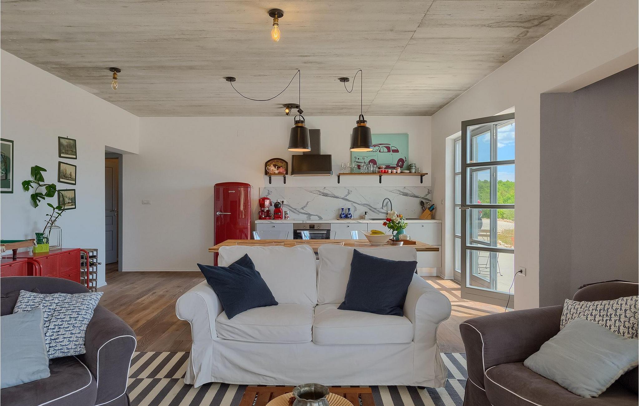 Villa Casa Peru er en dejlig villa beliggende i den lille landsby Kurili. Denne charmerende villa kan nemt rumme en familie på 6 i 3 soveværelser, alle med dobbeltsenge. I stueetagen af villa Casa Peru kommer du ind i en åben-koncept stue med et fuldt udstyret køkken, som strækker sig udendørs til terrassen med en udendørs spiseplads og en pool. I stueetagen finder du udover køkkenet og stuen et af soveværelserne med eget badeværelse med bruser og separat toilet. Køkkenet er udstyret med alt hvad du måtte have brug for - kaffemaskine, ovn, brødrister, mikroovn osv. og stuen har et spisebord til 6 og en dejlig pejs. På første sal finder du de resterende 2 soveværelser med ensuite badeværelser med bruser. Begge soveværelser har store glasdøre, der åbner ud til den lille balkon med udsigt over poolen. Hvis du foretrækker at spise udendørs, har du mulighed for at spise på terrassen med et spisebord, der kan rumme 8 gæster. De sommerdage, hvor du føler dig doven og gerne vil nyde solen, kan du slappe af ved en af liggestolene ved poolen. Der er også en sauna til din rådighed. Parkeringspladsen tilbyder plads til op til 4 biler. Denne villa er beliggende i den lille landsby Kurili, som er beliggende i kommunen Kanfanar, i den indre del af Istrien. Udover at være berømt for de middelalderlige ruiner af Dvigrad, Lim-bugtens uberørte natur og adskillige arkæologiske steder, betragtes denne region som hjemstedet for den istriske okse, et engang næsten truet dyr og for fuzi - dronningen af istriens pasta. Istrien okse og fuzi er en central del af Kanfanars største begivenhed - Jakovlje, hvor du kan opleve Istrien, som det engang var.
