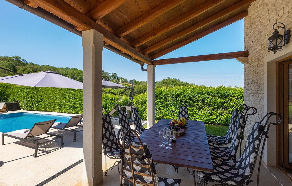 Kan du lide charmen ved rustikke stenvillaer, og alligevel vil du ikke undvære et moderne boligdesign? Så er Villa Vito Rovinj lige noget for dig. På i alt tre etager tilbyder denne villa plads til op til 8 personer og er ideel til en afslappende ferie. Villa Vito Rovinj er et charmerende istrisk landsted, som er blevet indrettet med kærlighed for detaljer. Materialer af høj kvalitet og en raffineret dekoration skaber en rolig atmosfære, der inviterer dig til at flygte fra hverdagens stress. På villaens første sal er der rummelig opholds- og spisestue med lyst køkken, soveværelse med dobbeltseng og badeværelse. På anden sal er der yderligere tre soveværelser, hvoraf to har en dobbeltseng i hvert værelse. Det ene værelse er udstyret med to enkeltsenge. Et rummeligt badeværelse fuldender anden sal. Et særligt højdepunkt kan findes i villaens kælder. Det rummelige underholdningsområde med massivt bord og ekstra køkken inviterer dig til at blive hængende. Nyd sociale aftener der med familie eller venner ved pejsen eller billardbordet. For sportsentusiaster er der også et fitnessområde i kælderen. Gæster, der nyder udendørs sport, vil helt sikkert nyde Villa Vito Rovinjs beliggenhed. Oplev de rolige og grønne omgivelser til fods og slap bagefter af i den private pool eller på en af de mange liggestole. Denne ejendom er beliggende i den centrale del af halvøen Istrien, nær den smukke by Rovinj. Den gamle arkitektur i Rovinj og de omkringliggende landsbyer er velbevaret, og oliven dominerer dette område med varmt middelhavsklima. Rovinj og det omkringliggende landskab er velkendt, ikke kun for sin historiske og kulturelle arv, men for fremragende og ægte istrisk køkken. Istrien er et unikt og fortryllet sted, der har budt velkommen til besøgende og bosættere fra alle dele af verden, så længe vi har nedtegnet historie. Byen Pula med dets romerske amfiteater og Brijuni nationalpark med en 18-hullers golfbane ligger kun 30 minutters kørsel derfra. Gode restauranter og taverner kan findes på kun en kort køretur i alle retninger. Det er et fantastisk sted at nyde maden, historien og trods alt at slappe af. Temperaturen i den opvarmede swimmingpool er afhængig af eksterne faktorer, herunder vejrforhold, og som sådan kan temperaturen på vandet ikke garanteres.