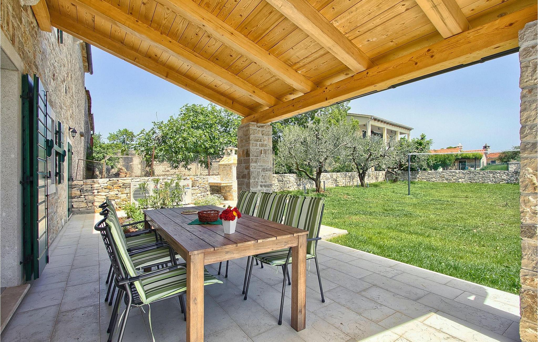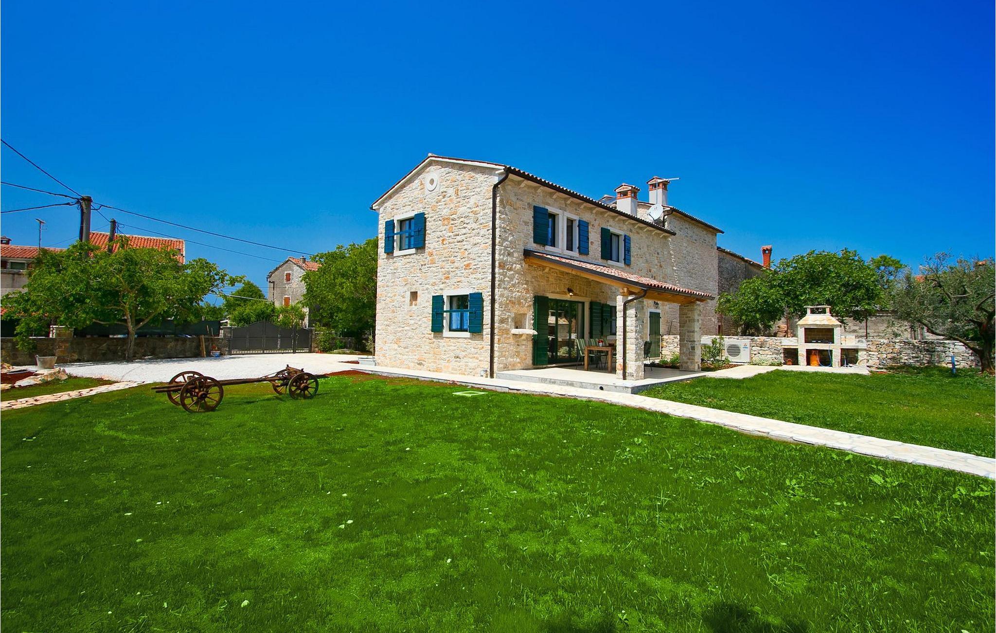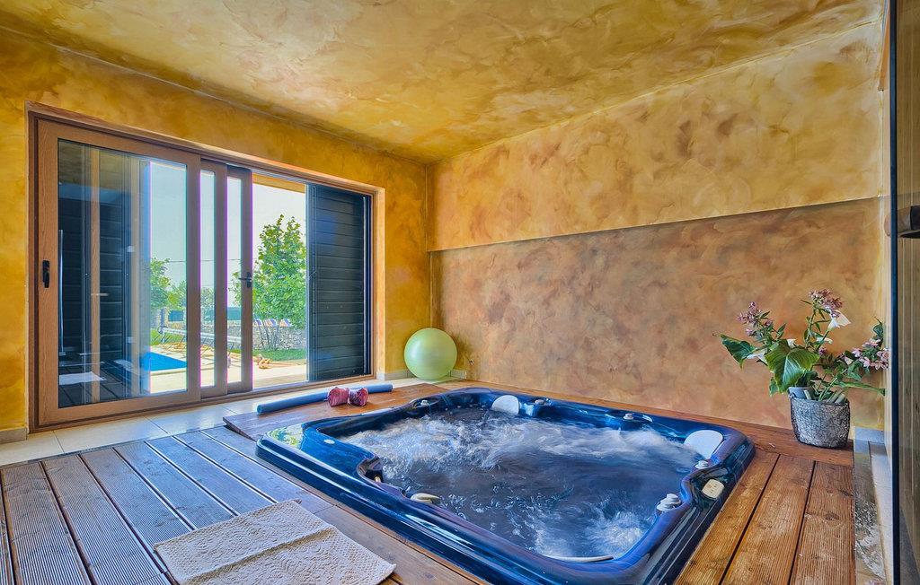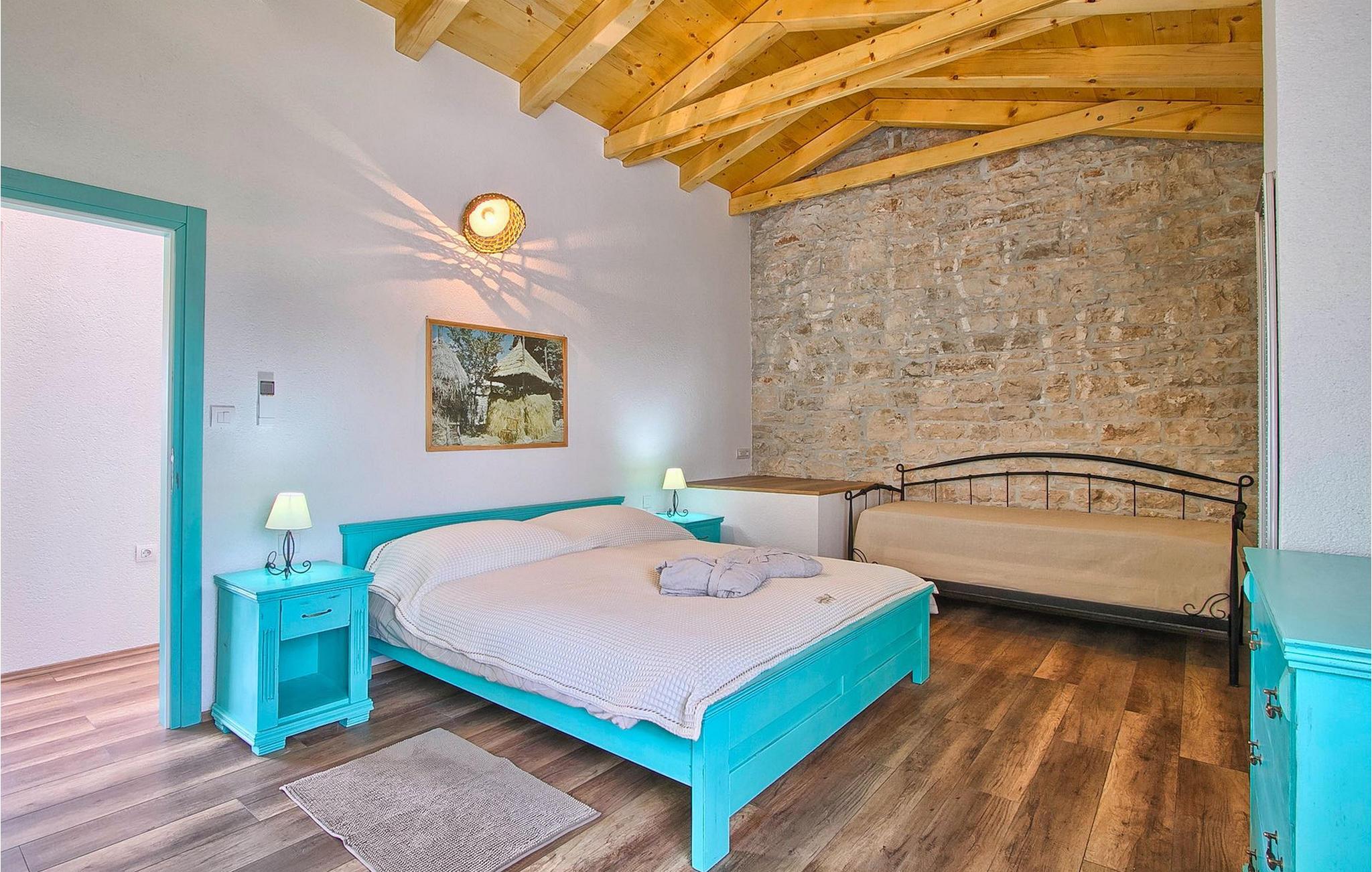 Die Villa Soricevi Dvori besteht aus zwei Doppelhaushälften, die zusammen vermietet werden. Das Haus befindet sich auf einem 1000 m2 großen Grundstück und bietet Platz für bis zu 12 Personen (4+2 pro Haus). Die Villa verfügt über einen großen Garten mit zwei Tischen für 6 Personen, die zum Essen im Freien zusammengestellt werden können, sowie zwei Außenkaminen. Das Highlight des Gartens ist der große private Pool mit Sonnenschirmen und Sonnenliegen - perfekt zum Entspannen! Wenn Sie sportlich aktiv sein möchten, gibt es im Garten ein Volleyball- und Badmintonfeld. Kinder haben ihren eigenen Bereich auf dem Spielplatz mit Schaukeln und Rutsche. Wenn Sie die Umgebung auf zwei Rädern erkunden möchten, stehen Ihnen 8 Fahrräder zur Verfügung. Es gibt auch ein separates Gebäude im Garten, wo sich der Wellnessbereich befindet. Es besteht aus einem schönen Innenjacuzzi, einer Dusche, Liegestühlen und einer Finnischen Sauna. Was den Innenraum betrifft, so sind alle Zimmer klimatisiert, mit Möbeln im Shabby-Chic-Stil eingerichtet und mit allen Haushaltsgeräten ausgestattet. Im Erdgeschoss verfügt jedes der Doppelhaushälften über eine Küche, ein Esszimmer mit einem Tisch für 6 Personen und ein schönes Wohnzimmer mit Kamin. Es gibt auch eine separate Toilette in jedem Teil. Im ersten Haus führt die Innentreppe in den ersten und zweiten Stock, wo sich zwei Schlafzimmer befinden. Im ersten Stock finden Sie ein Schlafzimmer mit schöner privater Terrasse. Die Innentreppe im zweiten Haus führt in den ersten Stock, wo sich zwei Schlafzimmer befinden. Vom Korridor im ersten Stock haben Sie Zugang zur überdachten Terrasse. Alle 4 Schlafzimmer verfügen über ein eigenes Badezimmer mit Dusche, einen Komfort, den Gäste gerne genießen. Wenn Sie von einem idyllischen Familienurlaub in Istrien träumen, sind Sie hier genau richtig.Villa Soricevi Dvori befindet sich in Barat, einem Dorf an den Hängen des Lim-Tals und nahe Kanafanar. Umgeben von Feldern, Olivenhainen, Weinbergen auf der typischen roten Erde, und Eichenwäldern. Barat ist der ideale Ort für einen Urlaub. Auf einer Höhe von 290 m, fernab von geschäftigem Treiben, bietet es saubere Luft und Ruhe. Barat liegt auf der südwestlichen Seite der Halbinsel, in der Nähe der istrischen Y Autobahn, auf der Sie in weniger als einer halben Stunde alle wichtigen Ziele in Istrien erreichen- Pula, Rovinj, Porec und andere Städte. Nahe Barat liegt Dvigrad, die Ruine einer verlassenen mittelalterlichen Stadt.