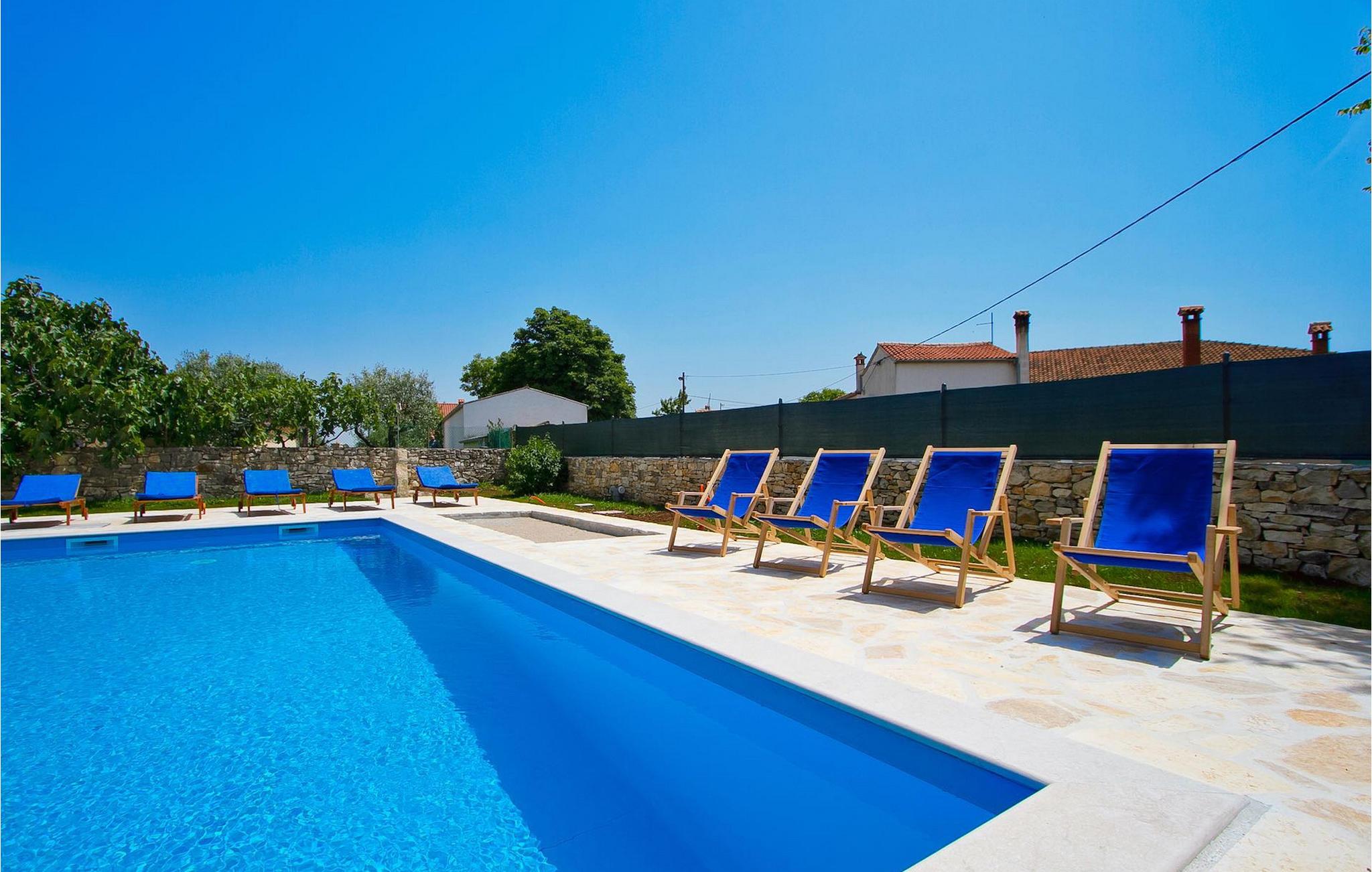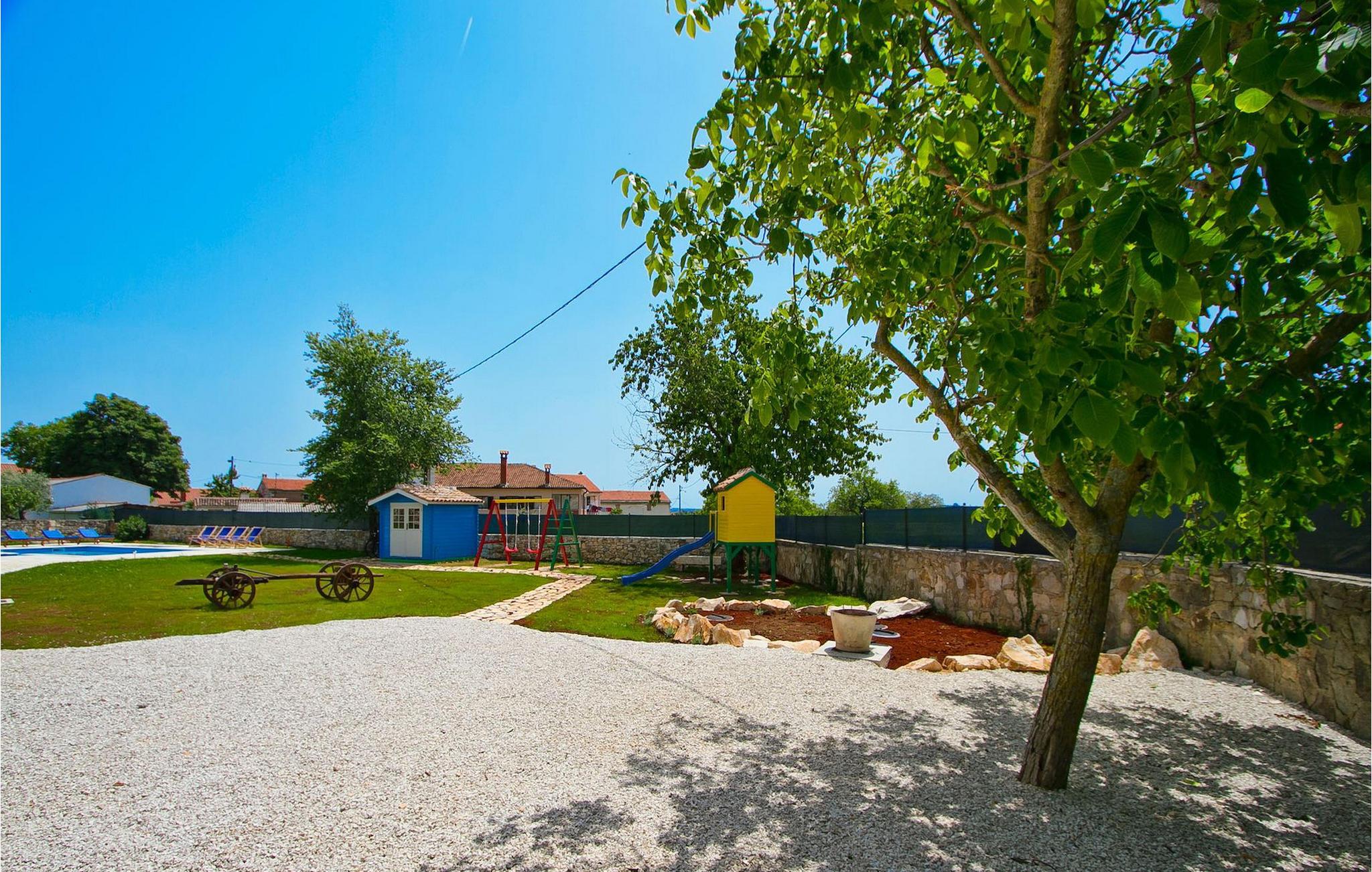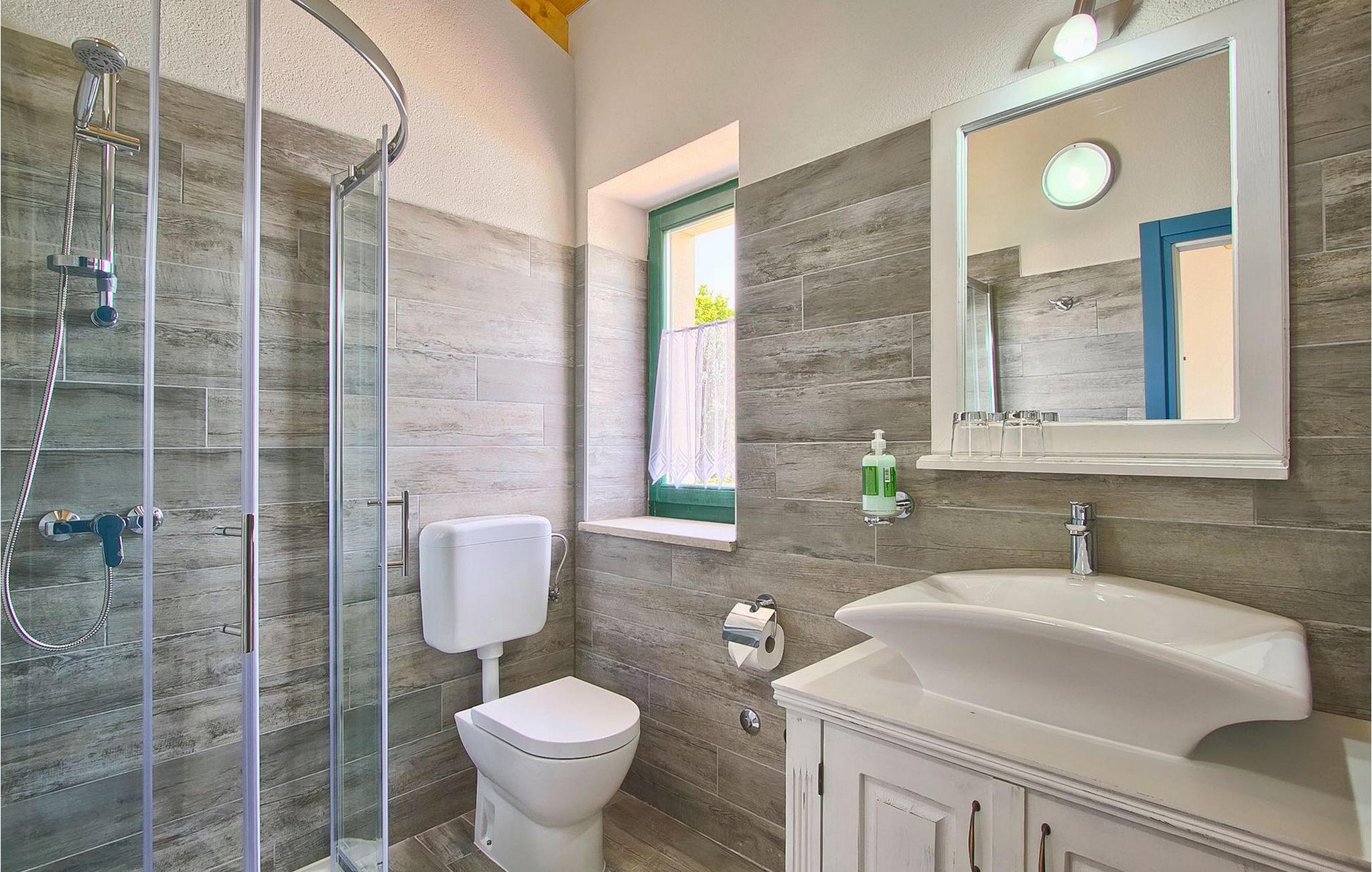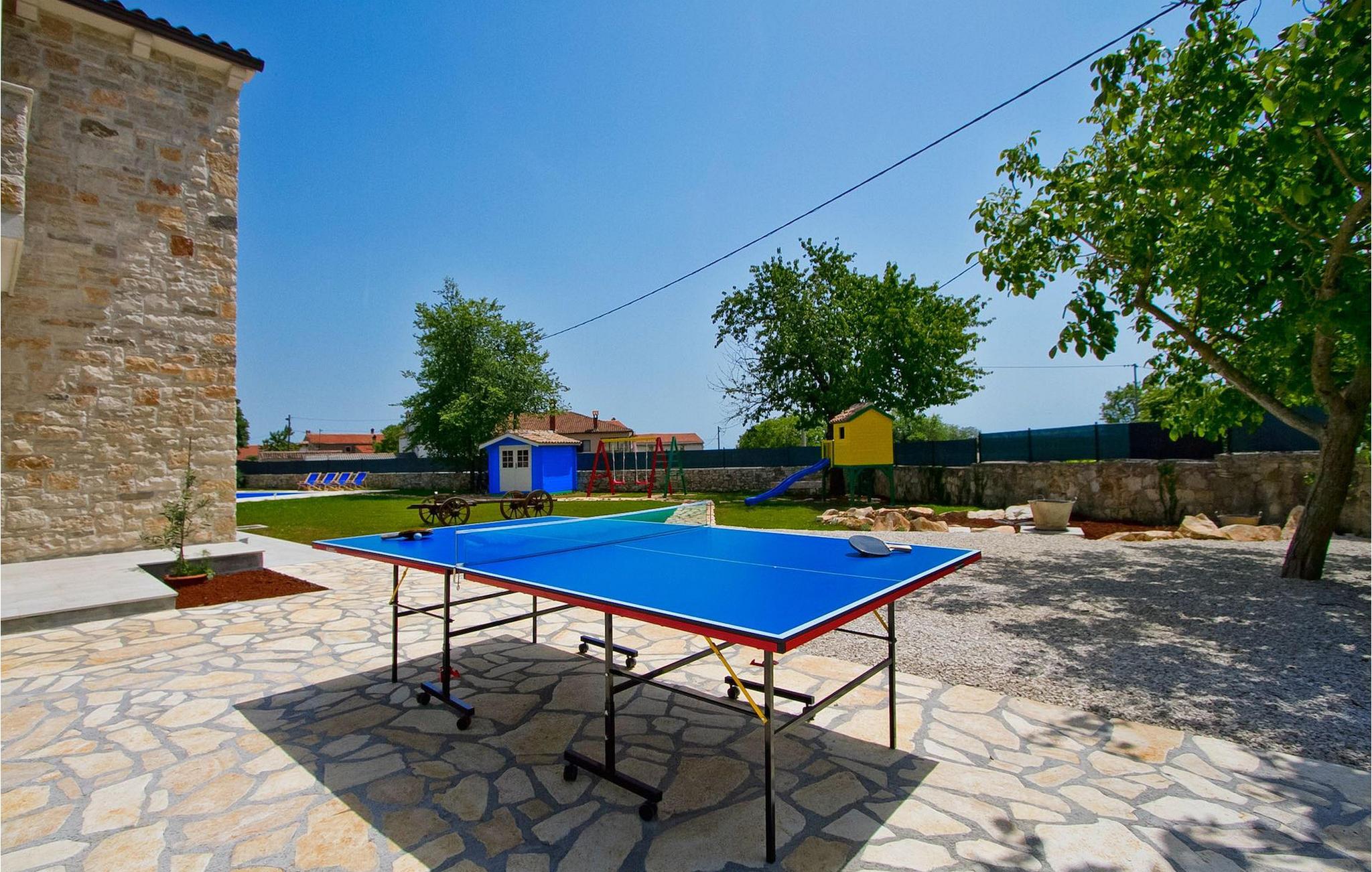 Die Villa Soricevi Dvori besteht aus zwei Doppelhaushälften, die zusammen vermietet werden. Das Haus befindet sich auf einem 1000 m2 großen Grundstück und bietet Platz für bis zu 12 Personen (4+2 pro Haus). Die Villa verfügt über einen großen Garten mit zwei Tischen für 6 Personen, die zum Essen im Freien zusammengestellt werden können, sowie zwei Außenkaminen. Das Highlight des Gartens ist der große private Pool mit Sonnenschirmen und Sonnenliegen - perfekt zum Entspannen! Wenn Sie sportlich aktiv sein möchten, gibt es im Garten ein Volleyball- und Badmintonfeld. Kinder haben ihren eigenen Bereich auf dem Spielplatz mit Schaukeln und Rutsche. Wenn Sie die Umgebung auf zwei Rädern erkunden möchten, stehen Ihnen 8 Fahrräder zur Verfügung. Es gibt auch ein separates Gebäude im Garten, wo sich der Wellnessbereich befindet. Es besteht aus einem schönen Innenjacuzzi, einer Dusche, Liegestühlen und einer Finnischen Sauna. Was den Innenraum betrifft, so sind alle Zimmer klimatisiert, mit Möbeln im Shabby-Chic-Stil eingerichtet und mit allen Haushaltsgeräten ausgestattet. Im Erdgeschoss verfügt jedes der Doppelhaushälften über eine Küche, ein Esszimmer mit einem Tisch für 6 Personen und ein schönes Wohnzimmer mit Kamin. Es gibt auch eine separate Toilette in jedem Teil. Im ersten Haus führt die Innentreppe in den ersten und zweiten Stock, wo sich zwei Schlafzimmer befinden. Im ersten Stock finden Sie ein Schlafzimmer mit schöner privater Terrasse. Die Innentreppe im zweiten Haus führt in den ersten Stock, wo sich zwei Schlafzimmer befinden. Vom Korridor im ersten Stock haben Sie Zugang zur überdachten Terrasse. Alle 4 Schlafzimmer verfügen über ein eigenes Badezimmer mit Dusche, einen Komfort, den Gäste gerne genießen. Wenn Sie von einem idyllischen Familienurlaub in Istrien träumen, sind Sie hier genau richtig.Villa Soricevi Dvori befindet sich in Barat, einem Dorf an den Hängen des Lim-Tals und nahe Kanafanar. Umgeben von Feldern, Olivenhainen, Weinbergen auf der typischen roten Erde, und Eichenwäldern. Barat ist der ideale Ort für einen Urlaub. Auf einer Höhe von 290 m, fernab von geschäftigem Treiben, bietet es saubere Luft und Ruhe. Barat liegt auf der südwestlichen Seite der Halbinsel, in der Nähe der istrischen Y Autobahn, auf der Sie in weniger als einer halben Stunde alle wichtigen Ziele in Istrien erreichen- Pula, Rovinj, Porec und andere Städte. Nahe Barat liegt Dvigrad, die Ruine einer verlassenen mittelalterlichen Stadt.