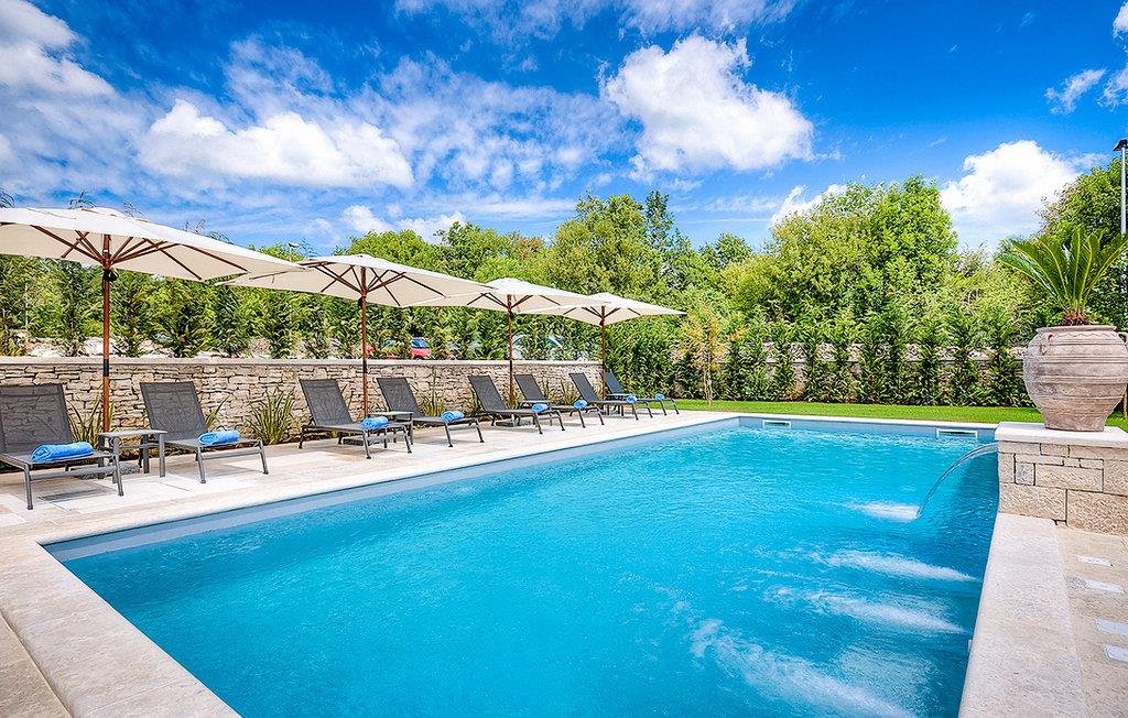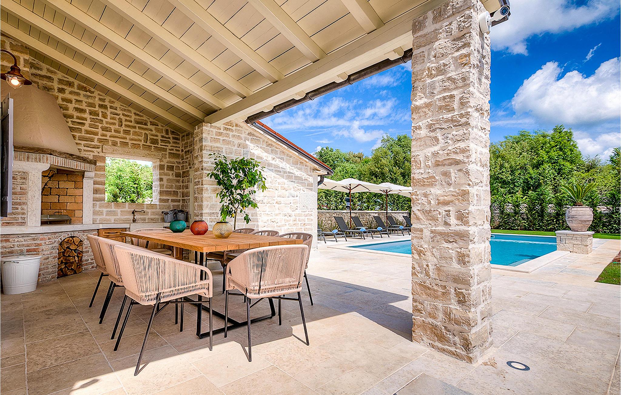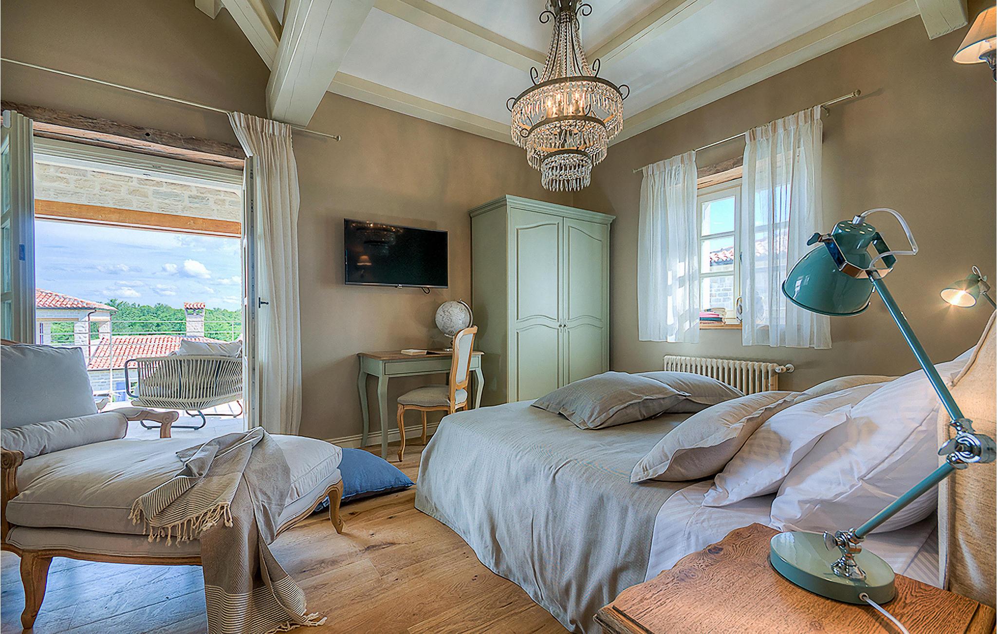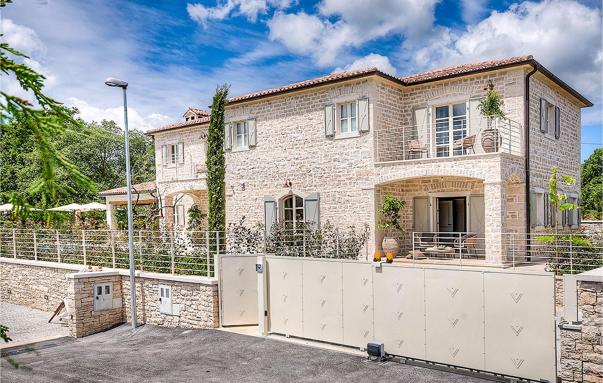 Denne smukke villa, sammen med Villa Nevia, Villa Elli og Villa Elena, ligger i et luksusprojekt med 5600 m2 privat jord, der tilbyder gæsterne af disse 4 villaer en økologisk have med årstidens grøntsager, udendørs fitness, 2 tennisbaner, 2 petanquebaner, samt baner til håndbold, fodbold, basketball og volleyball. For en ægte istrisk fornemmelse er der også 3 boskariner, hvide grå langhornede istriske kvæg, et symbol på regionen. Elegant, sofistikeret og fremragende beliggende midt i det maleriske istriske landskab, men alligevel inden for rækkevidde af solrige strande og livlige badebyer, tilbyder Villa Zoe luksuriøs indkvartering, hvor du øjeblikkeligt kan slappe af og nyde hvert minut af din ferie. Stueetagen er udelukkende dedikeret til overdådig bolig, med et vidunderligt langt rum opdelt af en buegang i opholds- og spise-/madlavningsområder med franske døre, der bringer overfloden af varmt istrisk lys indenfor. Fritlagt murværk, bjælkelofter og en smuk åben pejs skaber en varm og behagelig atmosfære, mens en blanding af moderne og vintage møbler og udsøgt indretning giver dig komfort af høj kvalitet. De fire stilfuldt designede soveværelser er fordelt over den øverste etage, mens stueetagen åbner direkte til det indbydende private poolområde, som udgør et fantastisk sted at slappe af og slappe af, herunder en dejlig, overdækket, autentisk grill med et spisebord, der gør en vidunderligt tilbagetog fra solen eller det perfekte sted at nyde dine udendørs måltider. Du vil aldrig mangle ting at gøre og steder at besøge, hvilket gør denne smukke villa til en god base for din ferie i Istrien. Villa Zoe er beliggende i den centrale del af halvøen Istrien, nær den lille by Kanfanar. Den gamle arkitektur i byen og de omkringliggende landsbyer er velbevaret, og vinmarker og oliven dominerer dette område med varmt middelhavsklima. Kanfanar og dets omkringliggende landskab er kendt, ikke kun for deres historiske og kulturelle arv, men for ægte istrisk køkken. Istrien er et unikt og fortryllet sted, der har budt velkommen til besøgende og bosættere fra alle dele af verden, så længe vi har nedtegnet historie. Byen Pula med dets romerske amfiteater og Brijuni nationalpark med en 18-hullers golfbane ligger kun 30 minutters kørsel derfra. Det er et fantastisk sted at nyde maden, historien og trods alt at slappe af. En bil anbefales.