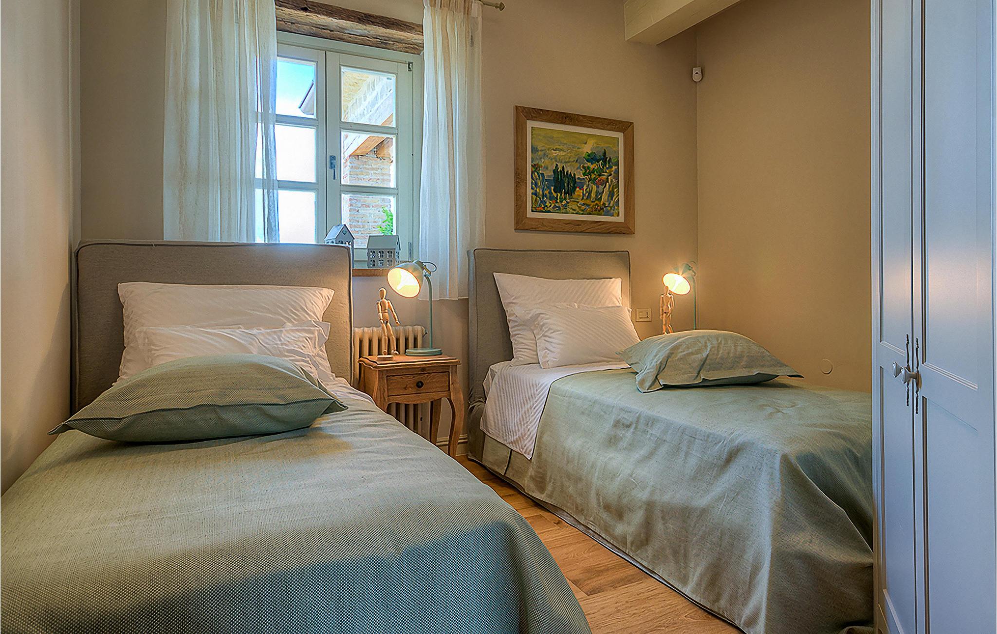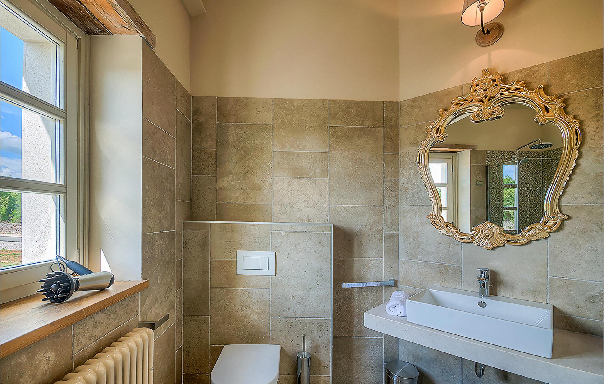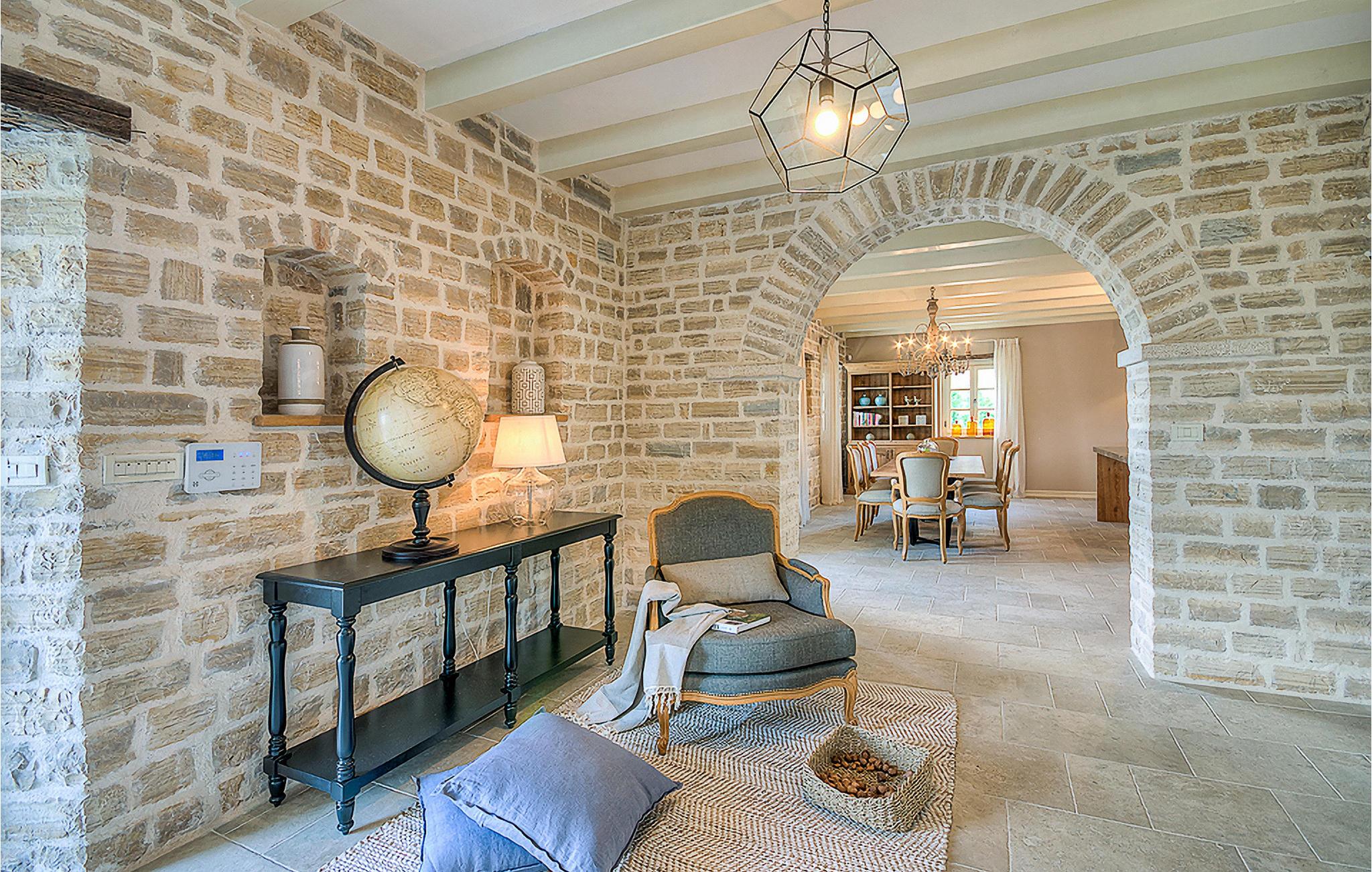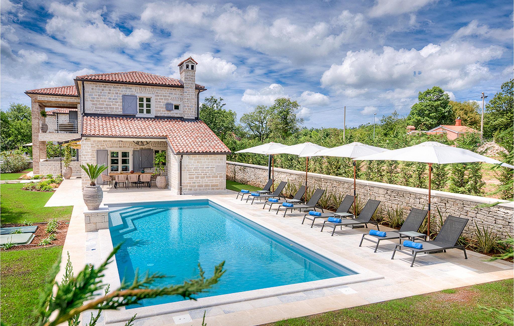 Denne smukke villa, sammen med Villa Nevia, Villa Elli og Villa Elena, ligger i et luksusprojekt med 5600 m2 privat jord, der tilbyder gæsterne af disse 4 villaer en økologisk have med årstidens grøntsager, udendørs fitness, 2 tennisbaner, 2 petanquebaner, samt baner til håndbold, fodbold, basketball og volleyball. For en ægte istrisk fornemmelse er der også 3 boskariner, hvide grå langhornede istriske kvæg, et symbol på regionen. Elegant, sofistikeret og fremragende beliggende midt i det maleriske istriske landskab, men alligevel inden for rækkevidde af solrige strande og livlige badebyer, tilbyder Villa Zoe luksuriøs indkvartering, hvor du øjeblikkeligt kan slappe af og nyde hvert minut af din ferie. Stueetagen er udelukkende dedikeret til overdådig bolig, med et vidunderligt langt rum opdelt af en buegang i opholds- og spise-/madlavningsområder med franske døre, der bringer overfloden af varmt istrisk lys indenfor. Fritlagt murværk, bjælkelofter og en smuk åben pejs skaber en varm og behagelig atmosfære, mens en blanding af moderne og vintage møbler og udsøgt indretning giver dig komfort af høj kvalitet. De fire stilfuldt designede soveværelser er fordelt over den øverste etage, mens stueetagen åbner direkte til det indbydende private poolområde, som udgør et fantastisk sted at slappe af og slappe af, herunder en dejlig, overdækket, autentisk grill med et spisebord, der gør en vidunderligt tilbagetog fra solen eller det perfekte sted at nyde dine udendørs måltider. Du vil aldrig mangle ting at gøre og steder at besøge, hvilket gør denne smukke villa til en god base for din ferie i Istrien. Villa Zoe er beliggende i den centrale del af halvøen Istrien, nær den lille by Kanfanar. Den gamle arkitektur i byen og de omkringliggende landsbyer er velbevaret, og vinmarker og oliven dominerer dette område med varmt middelhavsklima. Kanfanar og dets omkringliggende landskab er kendt, ikke kun for deres historiske og kulturelle arv, men for ægte istrisk køkken. Istrien er et unikt og fortryllet sted, der har budt velkommen til besøgende og bosættere fra alle dele af verden, så længe vi har nedtegnet historie. Byen Pula med dets romerske amfiteater og Brijuni nationalpark med en 18-hullers golfbane ligger kun 30 minutters kørsel derfra. Det er et fantastisk sted at nyde maden, historien og trods alt at slappe af. En bil anbefales.