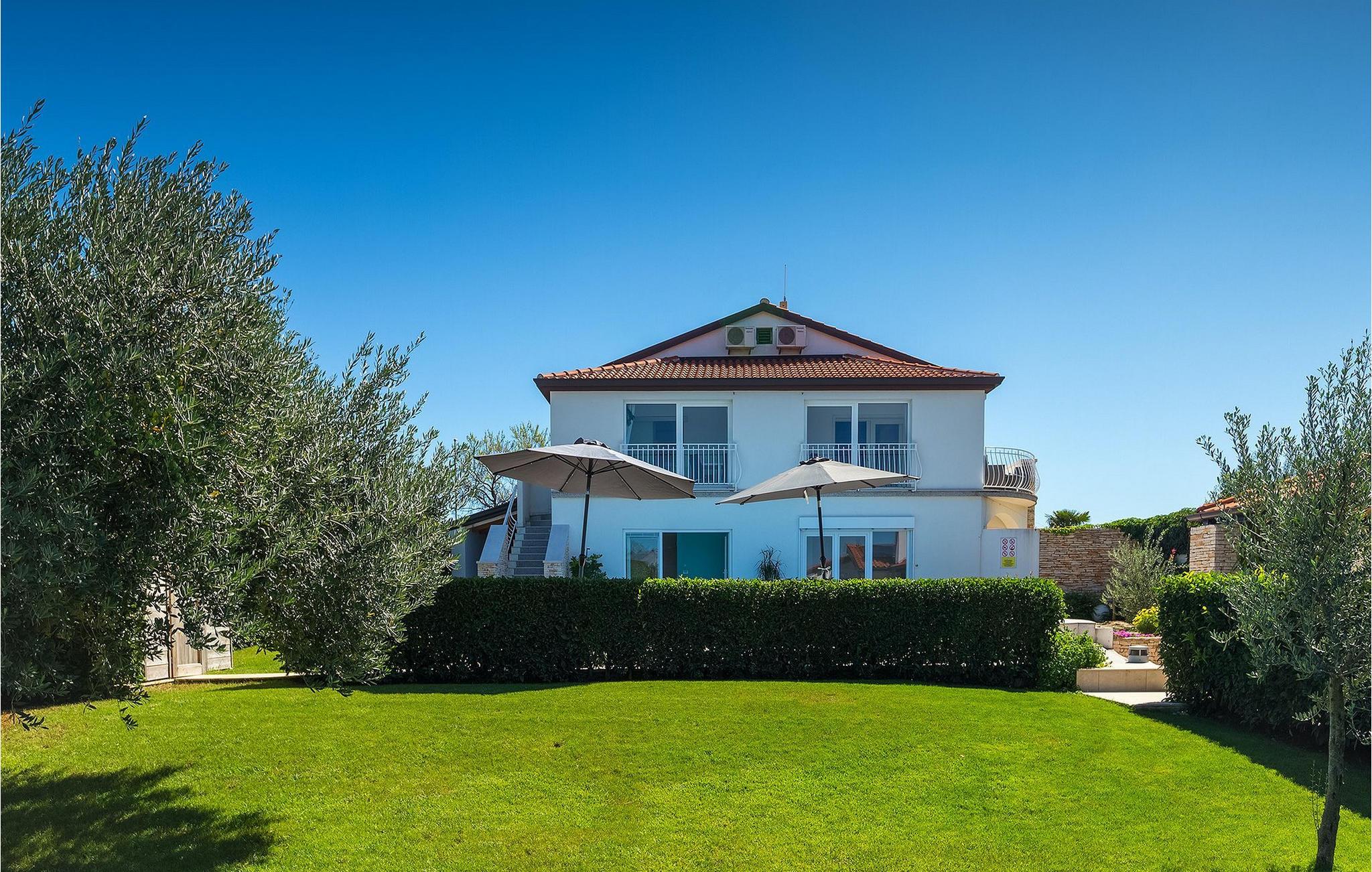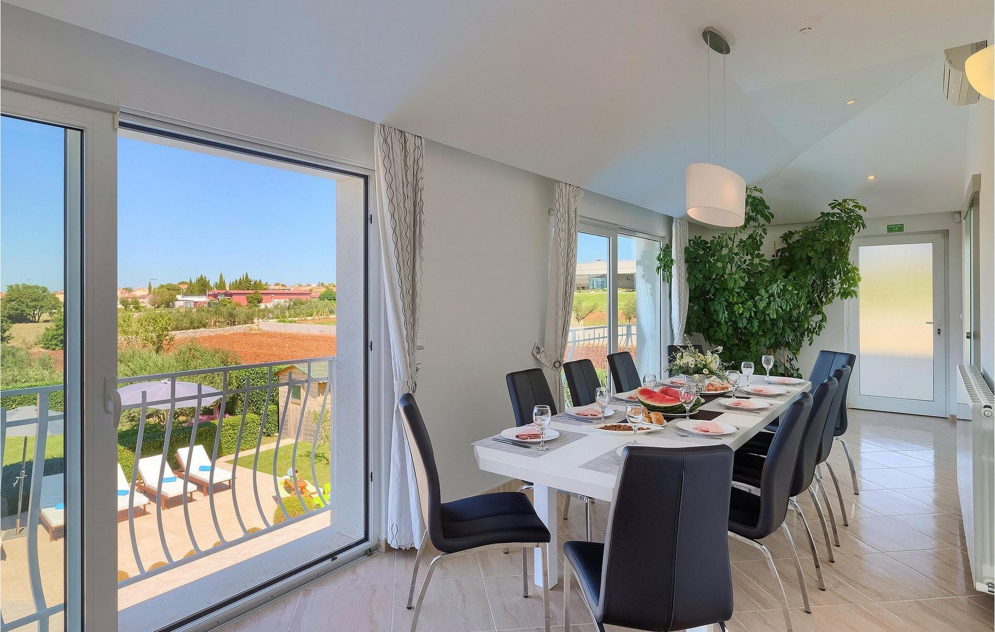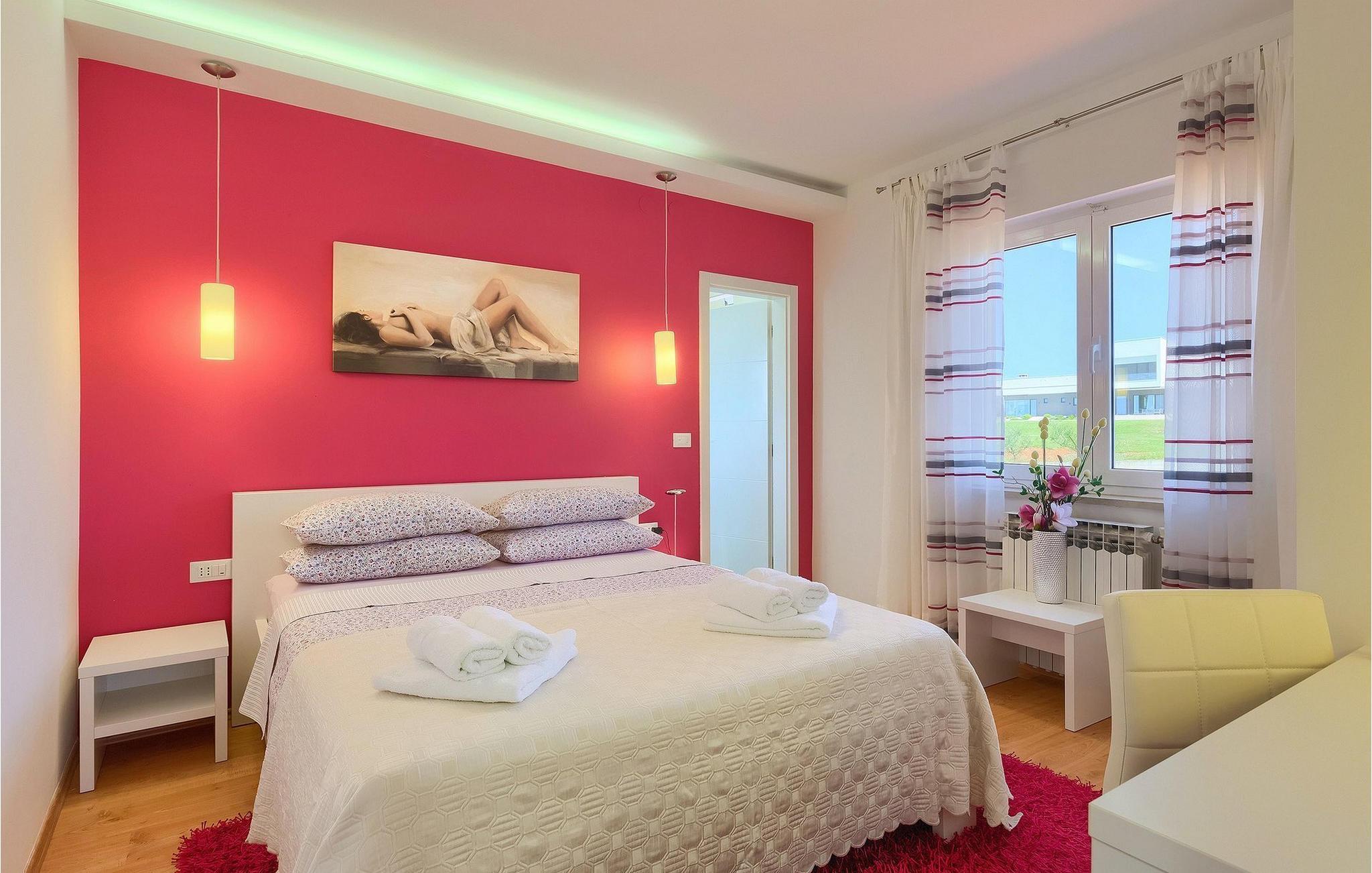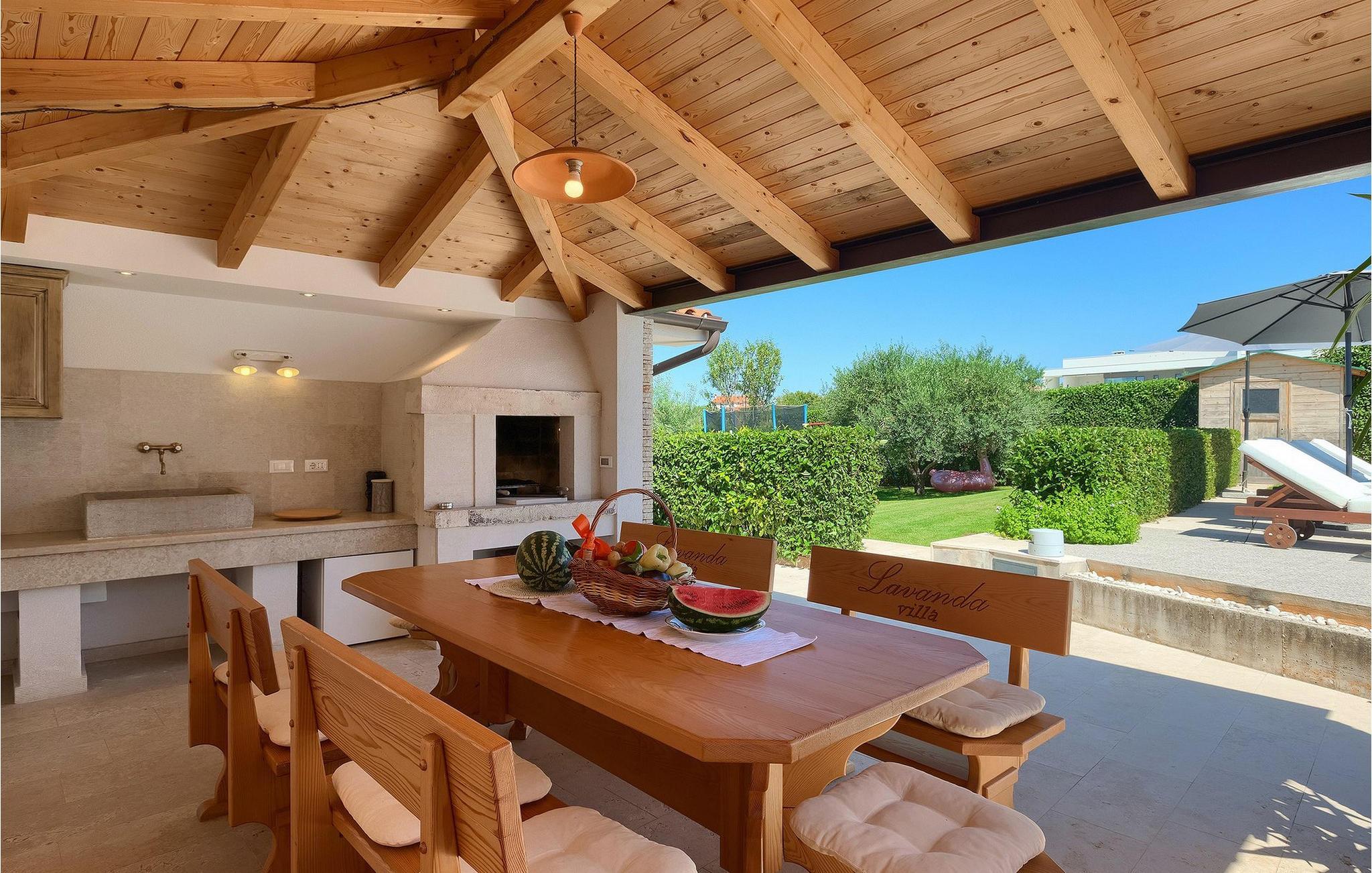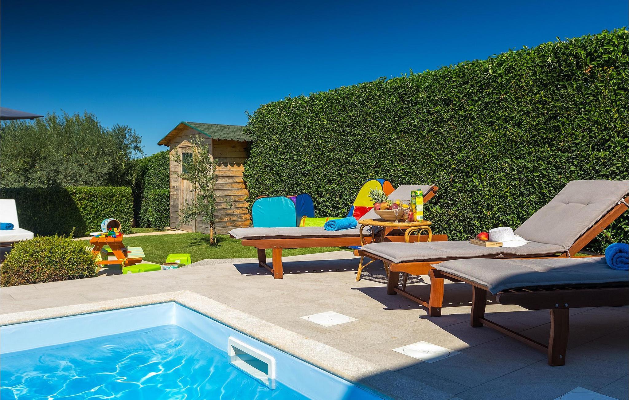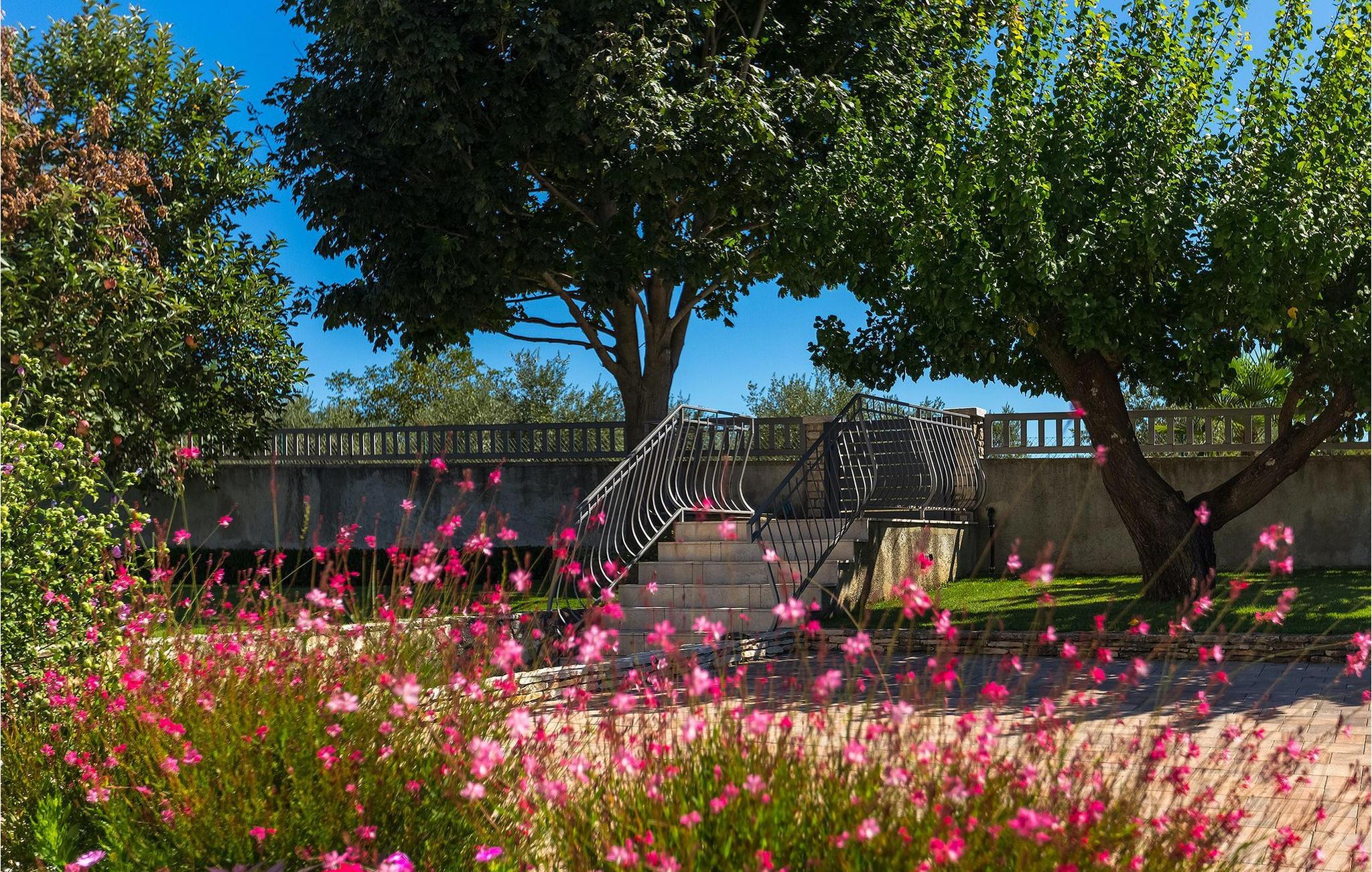 Villa Allegra er en dejlig familievilla beliggende i hjertet af Istrien. Villaen er velegnet til at rumme 6 gæster i sine 3 smagfuldt indrettede soveværelser. Villaen byder på alt til en fuldstændig fornøjelig ferie - en privat pool, et wellness-område med en infrarød sauna samt et fitnessrum til at holde sig i form under dine feriedage. En indendørs jacuzzi er også tilgængelig. Børnene kan lege på legepladsen og trampolinen, eller hygge sig med cykler, mens forældrene tilbereder nogle lækre måltider på grillen på den overdækkede terrasse eller bare slapper af på liggestolene ved siden af poolen. Bordtennis, dart og bordfodbold er også til din rådighed. Stueetagen af villaen består af wellness- og fitnessområdet, mens det fuldt udstyrede køkken med spiseplads, stue og 3 soveværelser ligger på øverste etage. Under dit ophold kan du plukke årstidens frugter og grøntsager fra villaens have og fuldt ud nyde din tid i Istrien i enhver forstand. Villaen er beliggende i den centrale del af Istrien-halvøen, nær den lille by Kanfanar. Den gamle arkitektur i byen og de omkringliggende landsbyer er velbevaret, og oliven dominerer dette område med varmt middelhavsklima. Kanfanar og dets omkringliggende landskab er velkendt, ikke kun for sin historiske og kulturelle arv, men for fremragende ægte istriske køkken. Udover det er denne placering et fantastisk udgangspunkt for at opdage det magiske Istrien - den romantiske by Rovinj er ca. 18 km fra villaen, centralt beliggende Pazin ca. 20 km, den historiske by Porec ca. 30 km, og Istriens største by, Pula, er kun omkring 37 km væk. Afhængigt af din interesse tilbyder denne placering virkelig alt. En bil anbefales.