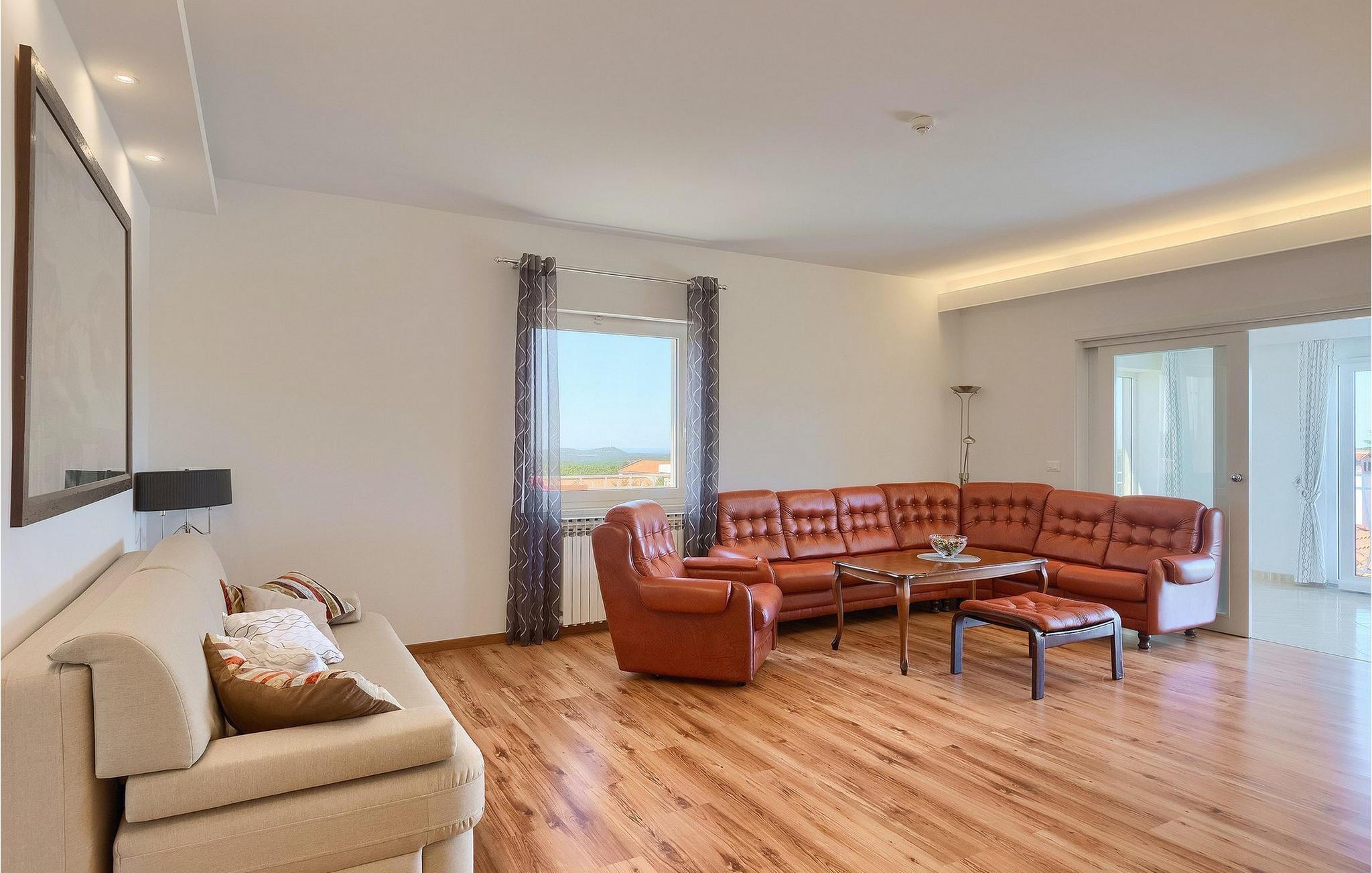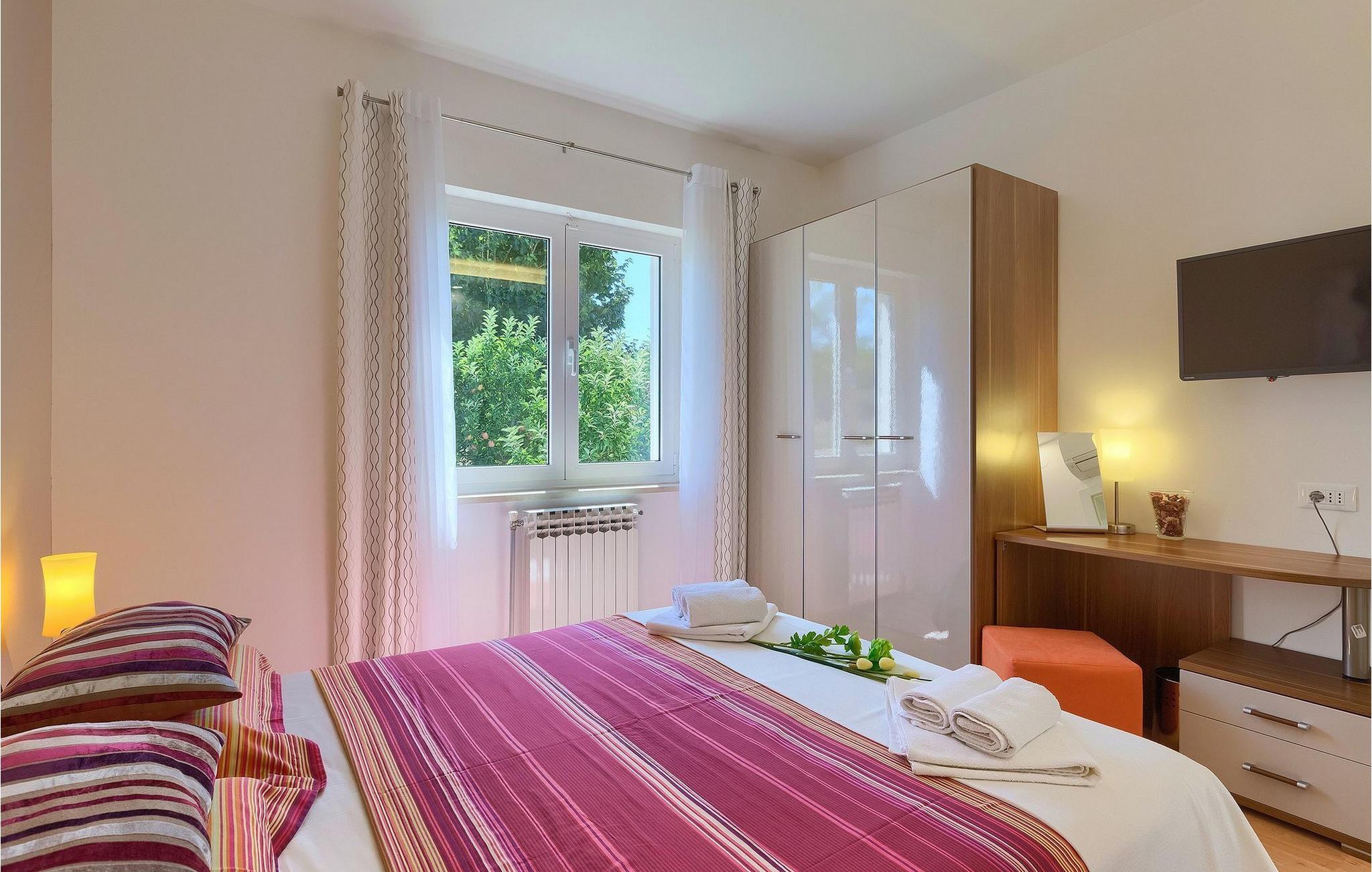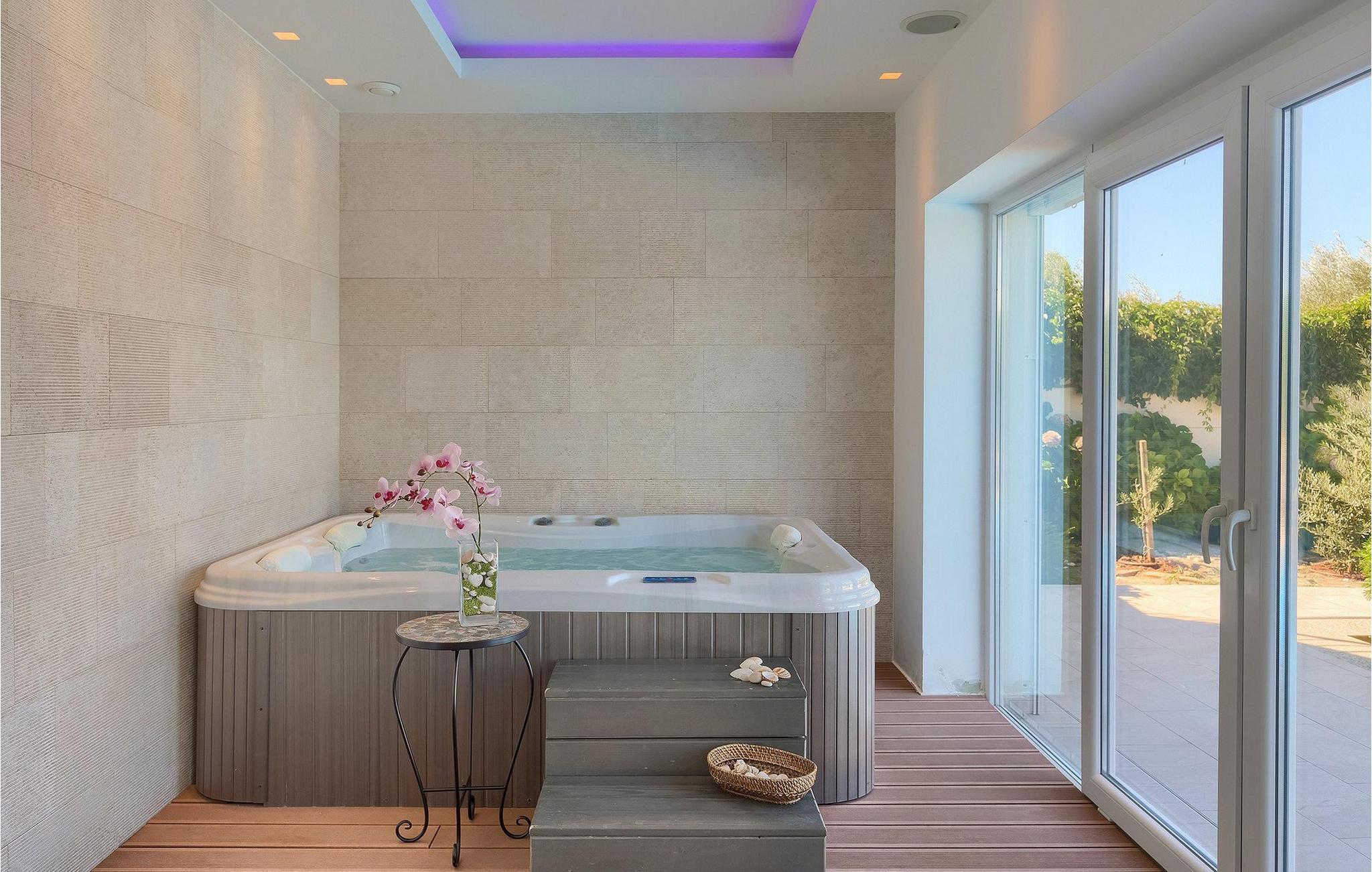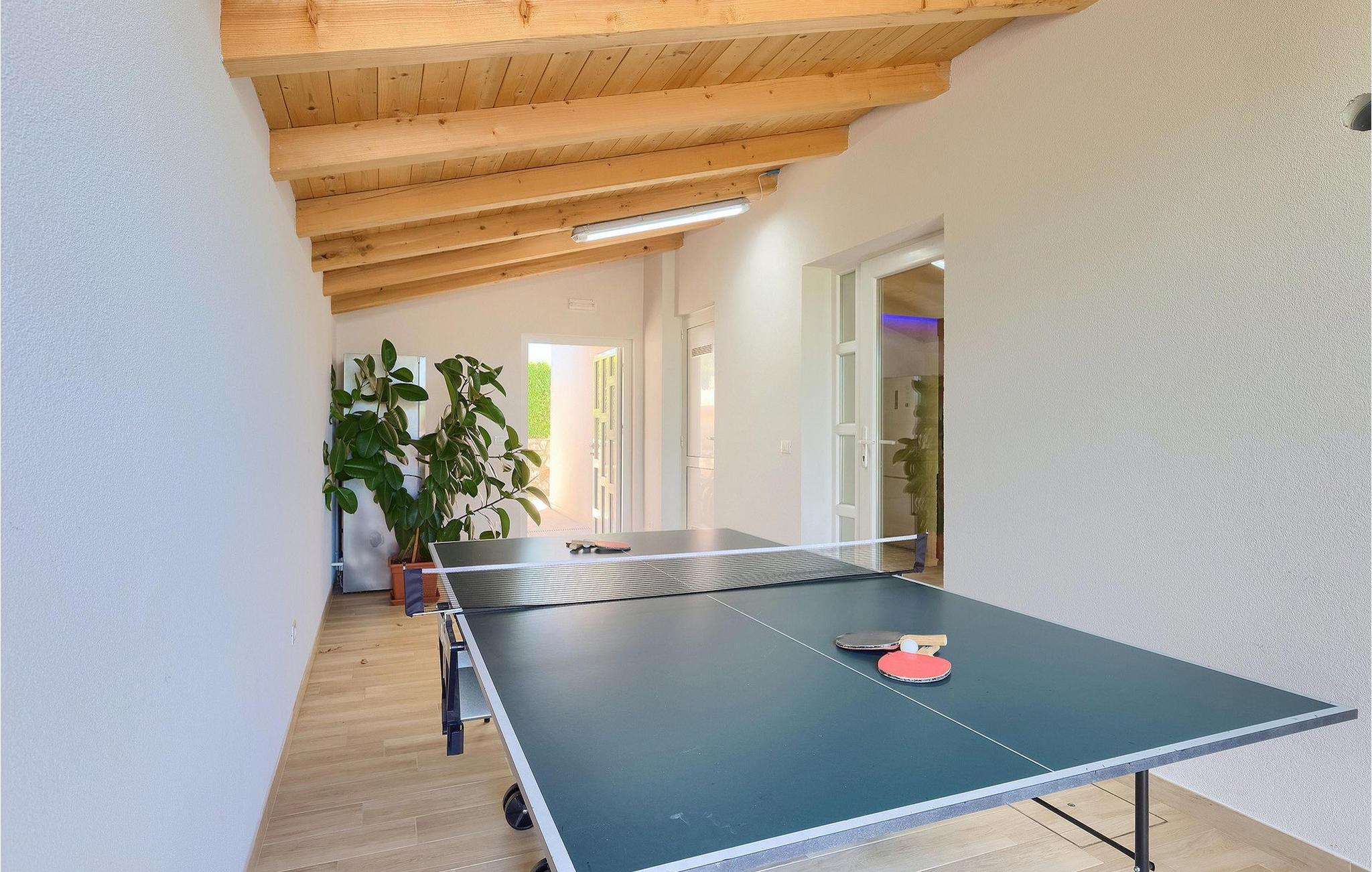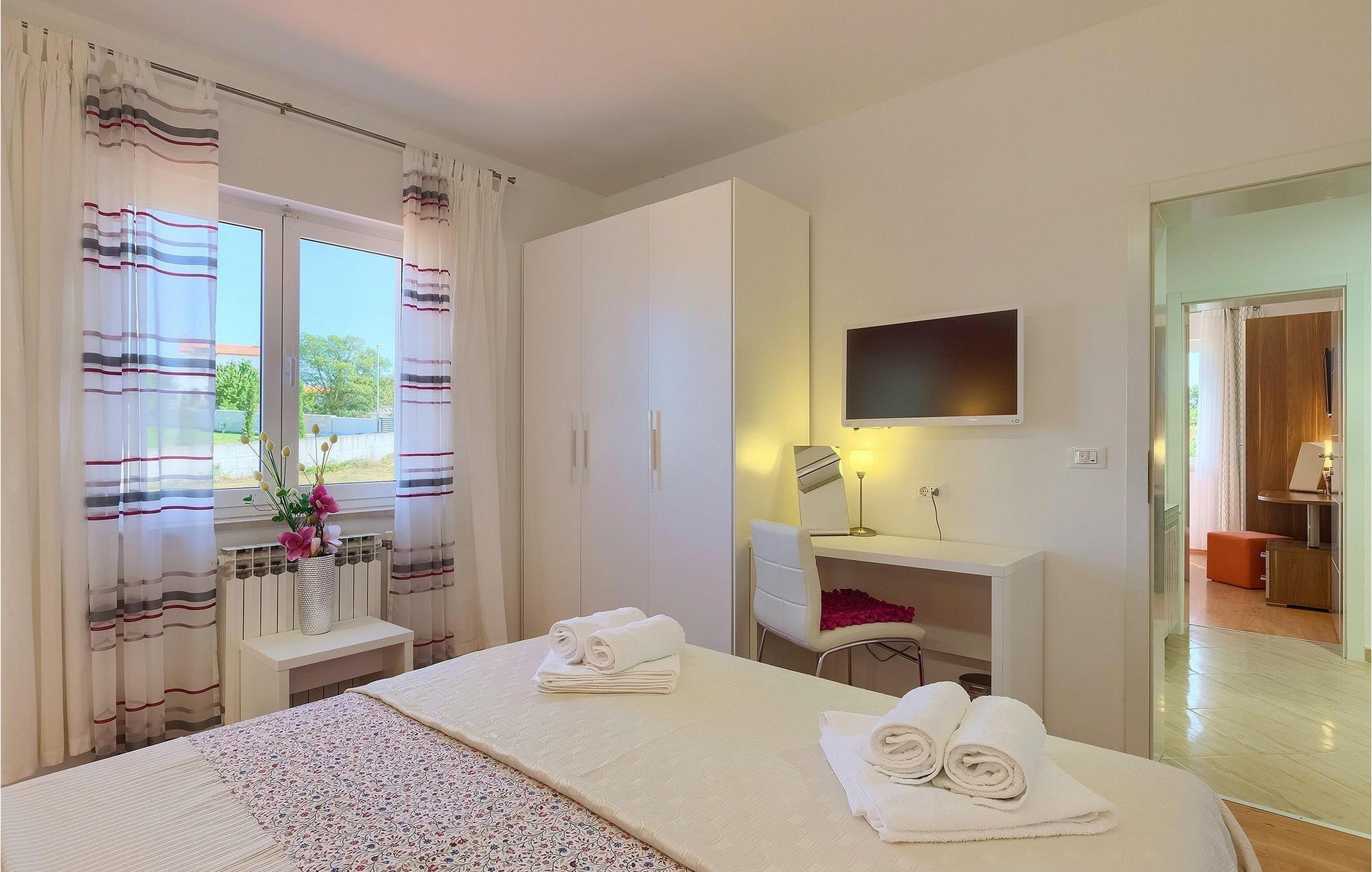 Villa Allegra er en dejlig familievilla beliggende i hjertet af Istrien. Villaen er velegnet til at rumme 6 gæster i sine 3 smagfuldt indrettede soveværelser. Villaen byder på alt til en fuldstændig fornøjelig ferie - en privat pool, et wellness-område med en infrarød sauna samt et fitnessrum til at holde sig i form under dine feriedage. En indendørs jacuzzi er også tilgængelig. Børnene kan lege på legepladsen og trampolinen, eller hygge sig med cykler, mens forældrene tilbereder nogle lækre måltider på grillen på den overdækkede terrasse eller bare slapper af på liggestolene ved siden af poolen. Bordtennis, dart og bordfodbold er også til din rådighed. Stueetagen af villaen består af wellness- og fitnessområdet, mens det fuldt udstyrede køkken med spiseplads, stue og 3 soveværelser ligger på øverste etage. Under dit ophold kan du plukke årstidens frugter og grøntsager fra villaens have og fuldt ud nyde din tid i Istrien i enhver forstand. Villaen er beliggende i den centrale del af Istrien-halvøen, nær den lille by Kanfanar. Den gamle arkitektur i byen og de omkringliggende landsbyer er velbevaret, og oliven dominerer dette område med varmt middelhavsklima. Kanfanar og dets omkringliggende landskab er velkendt, ikke kun for sin historiske og kulturelle arv, men for fremragende ægte istriske køkken. Udover det er denne placering et fantastisk udgangspunkt for at opdage det magiske Istrien - den romantiske by Rovinj er ca. 18 km fra villaen, centralt beliggende Pazin ca. 20 km, den historiske by Porec ca. 30 km, og Istriens største by, Pula, er kun omkring 37 km væk. Afhængigt af din interesse tilbyder denne placering virkelig alt. En bil anbefales.