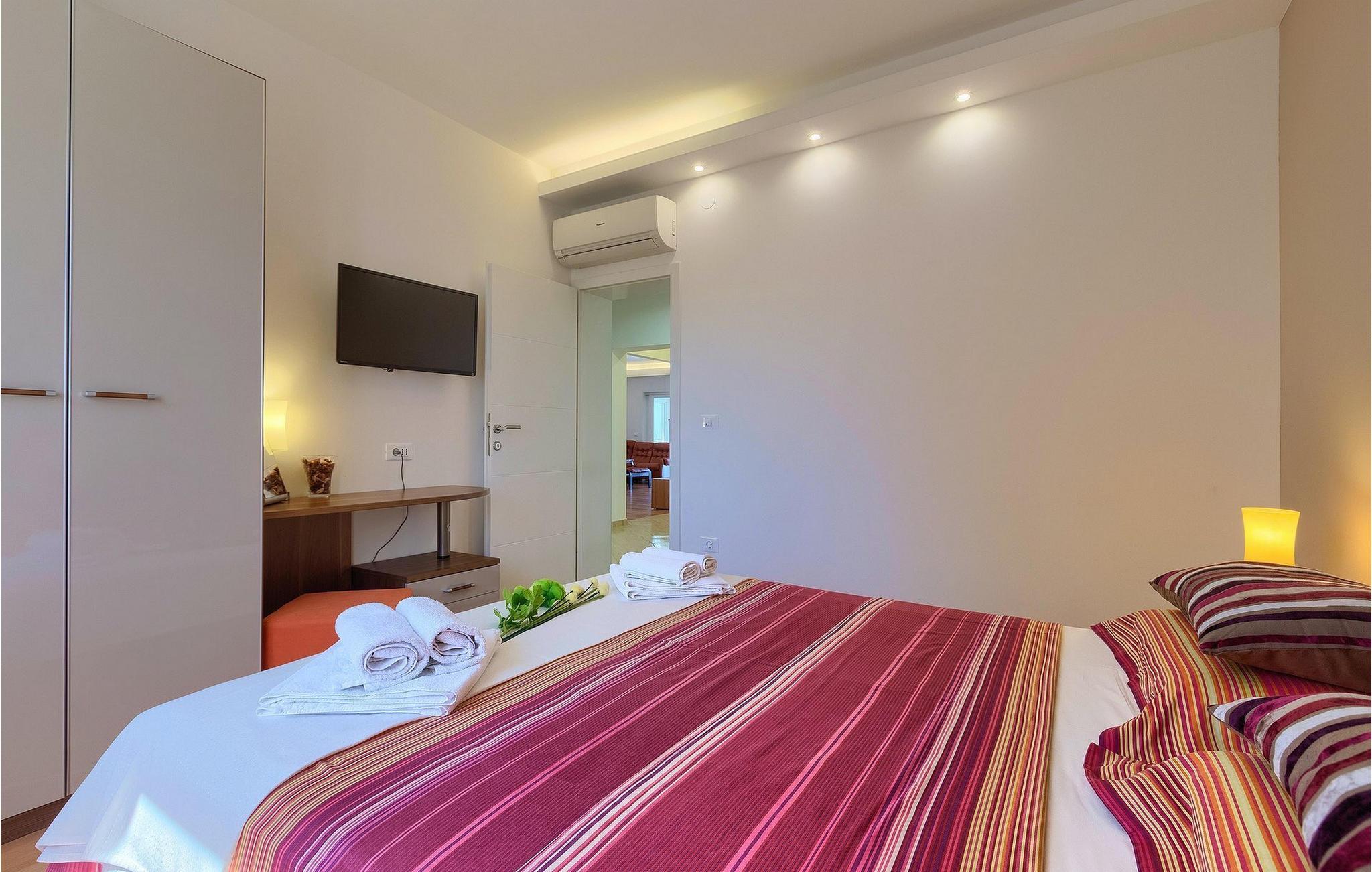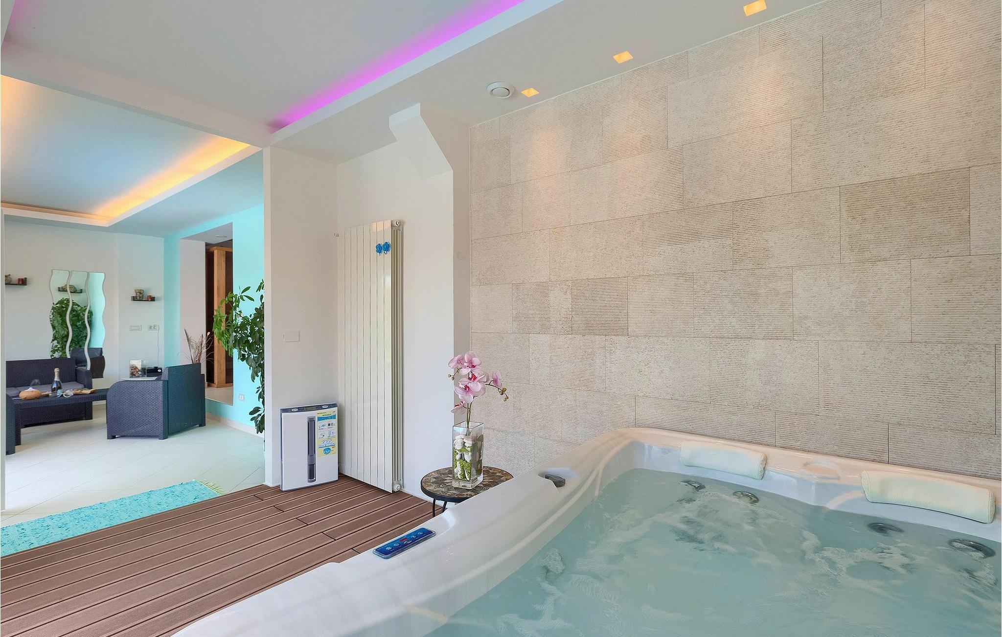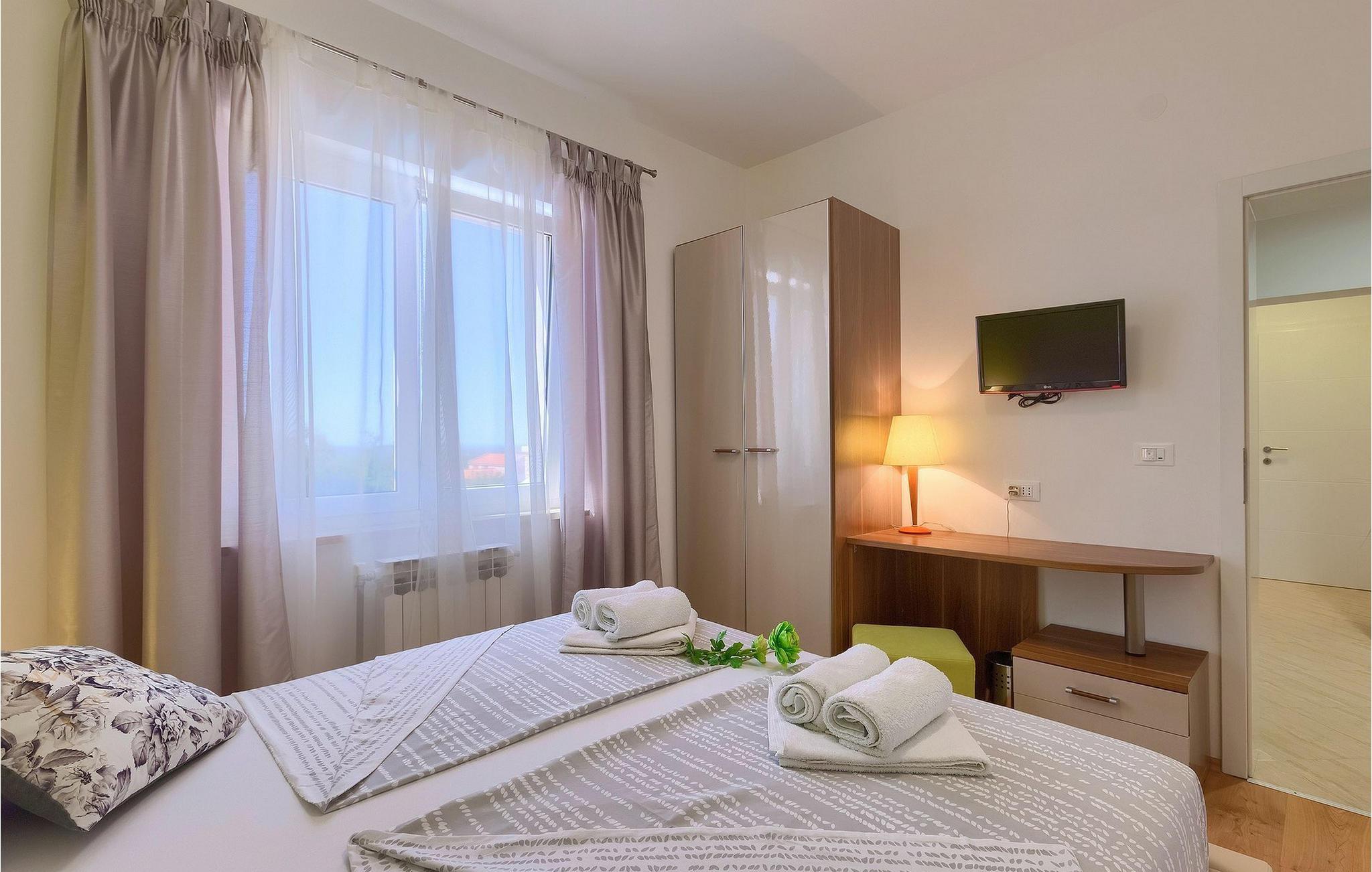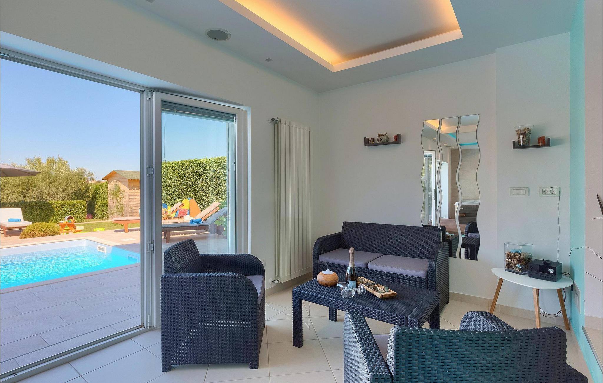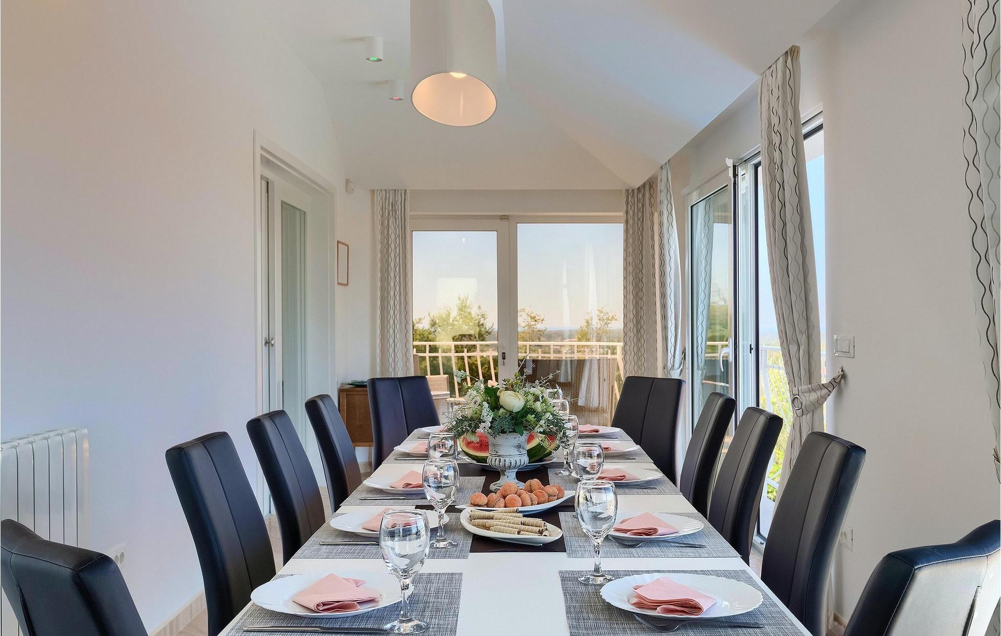 Villa Allegra er en dejlig familievilla beliggende i hjertet af Istrien. Villaen er velegnet til at rumme 6 gæster i sine 3 smagfuldt indrettede soveværelser. Villaen byder på alt til en fuldstændig fornøjelig ferie - en privat pool, et wellness-område med en infrarød sauna samt et fitnessrum til at holde sig i form under dine feriedage. En indendørs jacuzzi er også tilgængelig. Børnene kan lege på legepladsen og trampolinen, eller hygge sig med cykler, mens forældrene tilbereder nogle lækre måltider på grillen på den overdækkede terrasse eller bare slapper af på liggestolene ved siden af poolen. Bordtennis, dart og bordfodbold er også til din rådighed. Stueetagen af villaen består af wellness- og fitnessområdet, mens det fuldt udstyrede køkken med spiseplads, stue og 3 soveværelser ligger på øverste etage. Under dit ophold kan du plukke årstidens frugter og grøntsager fra villaens have og fuldt ud nyde din tid i Istrien i enhver forstand. Villaen er beliggende i den centrale del af Istrien-halvøen, nær den lille by Kanfanar. Den gamle arkitektur i byen og de omkringliggende landsbyer er velbevaret, og oliven dominerer dette område med varmt middelhavsklima. Kanfanar og dets omkringliggende landskab er velkendt, ikke kun for sin historiske og kulturelle arv, men for fremragende ægte istriske køkken. Udover det er denne placering et fantastisk udgangspunkt for at opdage det magiske Istrien - den romantiske by Rovinj er ca. 18 km fra villaen, centralt beliggende Pazin ca. 20 km, den historiske by Porec ca. 30 km, og Istriens største by, Pula, er kun omkring 37 km væk. Afhængigt af din interesse tilbyder denne placering virkelig alt. En bil anbefales.