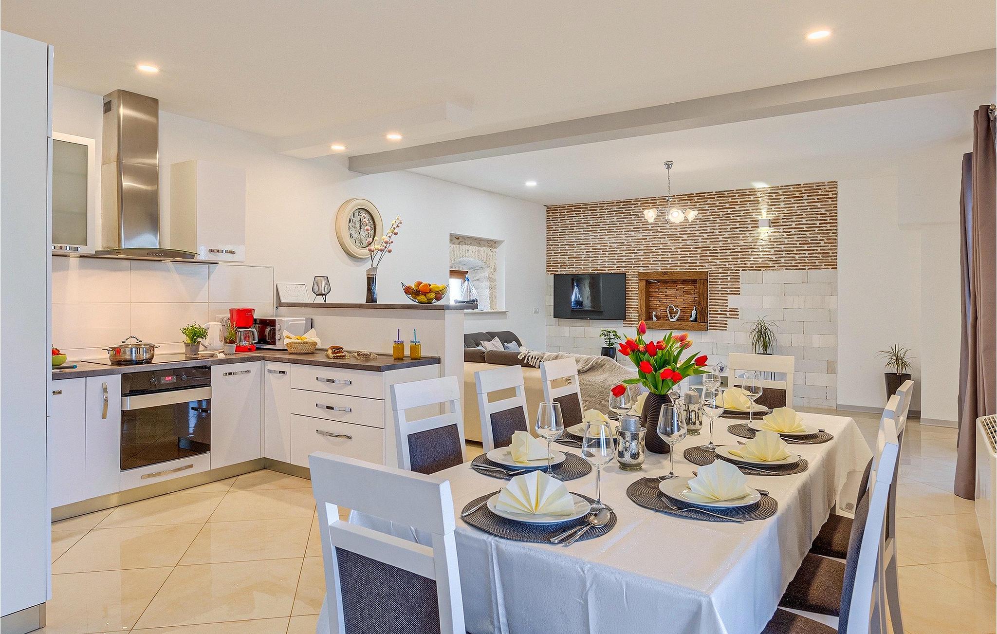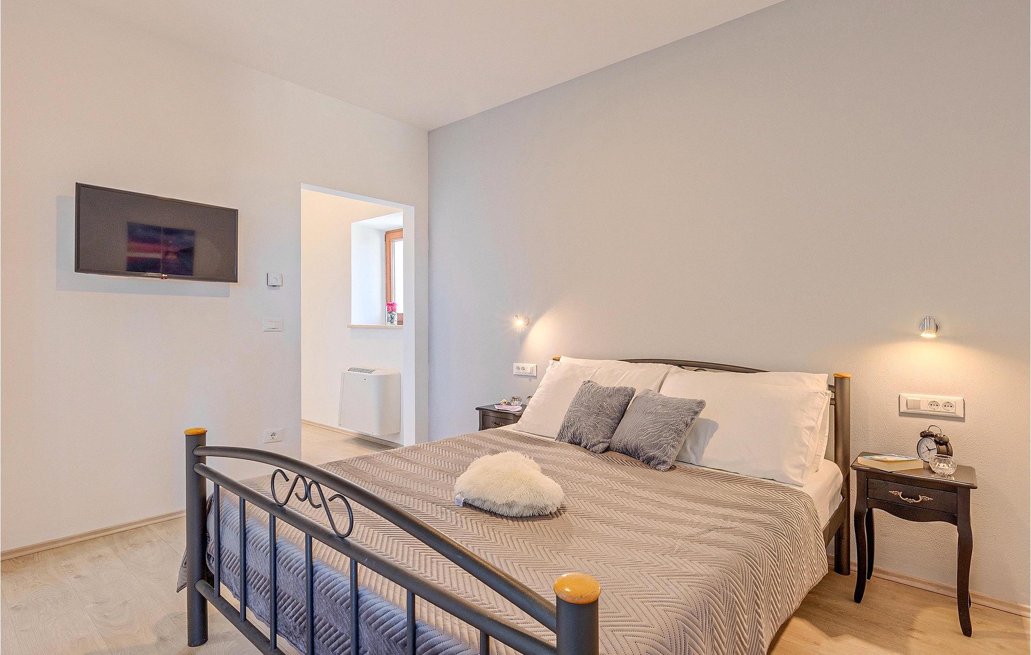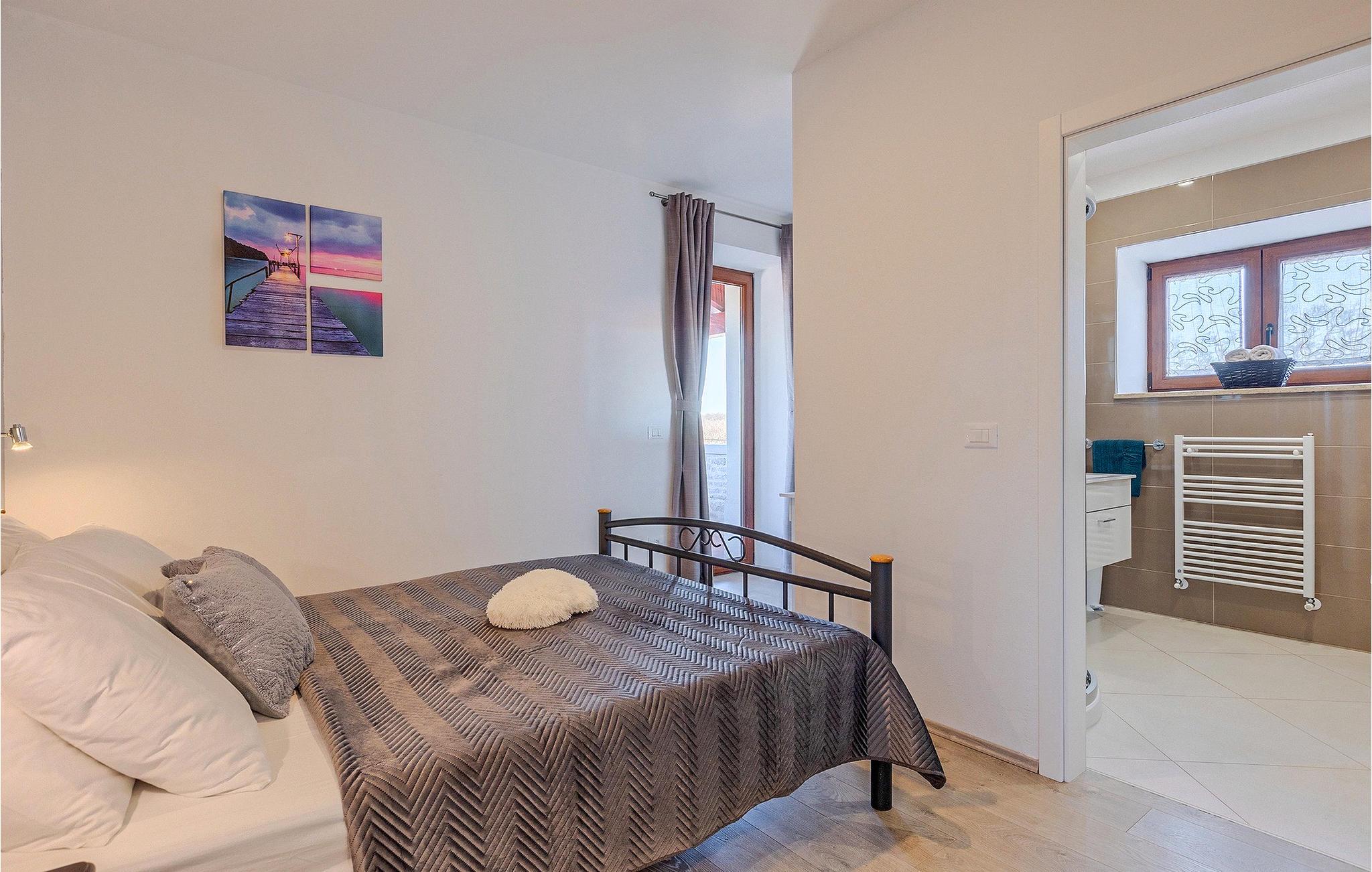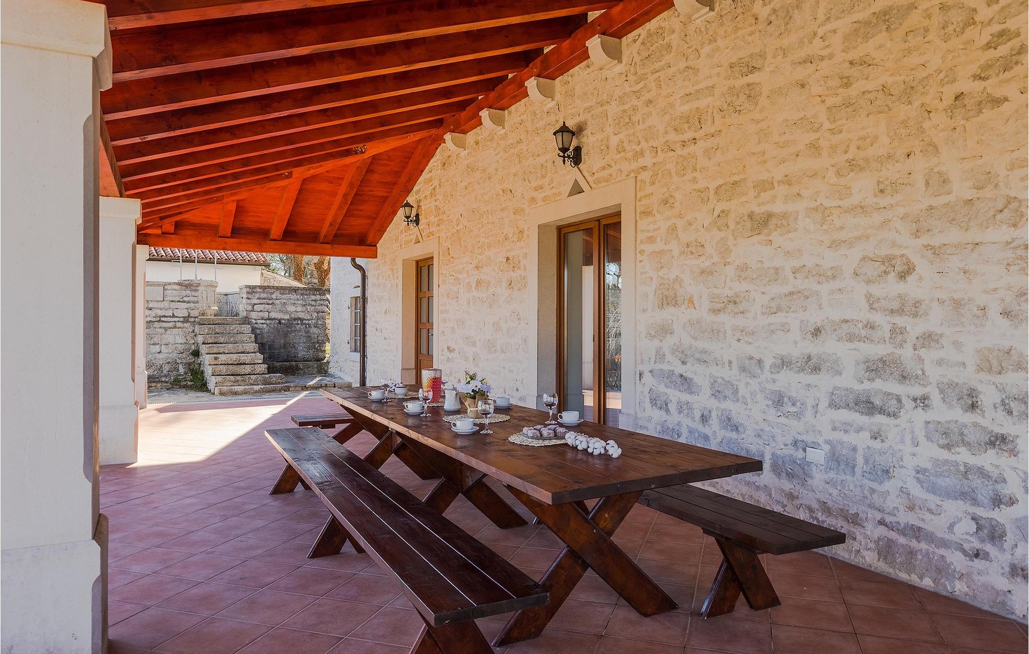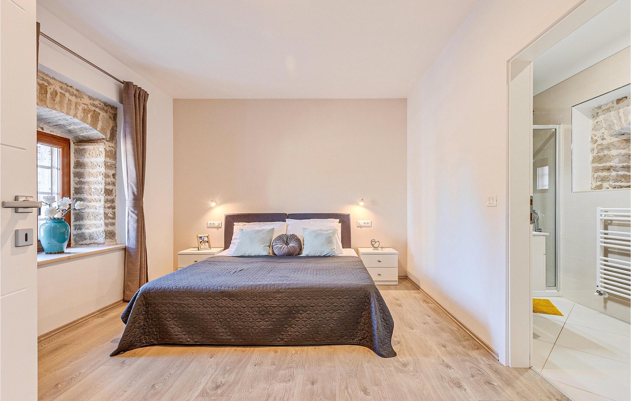 Om dagen vil du helt sikkert nyde det dejlige store udendørsområde mest. Varme sommerdage er en perfekt mulighed for at forfriske dig selv i poolen eller nyde et familiemåltid i den udendørs spiseplads. Poolen har to lavvandede dele med hydromassage, hvilket er fantastisk til mindre børn. Villaen er beliggende i landsbyen Korenici nær Kanfanar og er kun en kort køretur fra Lim Bay. Lim-bugten, der er cirka 13 km lang, ligger på Istriens vestkyst og er blevet erklæret et naturreservat, hvilket gør det til et perfekt rejsemål for alle naturelskere. Bugten er især berømt for sine muslinger og østers, som kan smages på stedet. Vi anbefaler dig klart at besøge den smukke maleriske kystby Rovinj, der ligger på en lille halvø. I dag er de fleste af bygningerne i centrum af byen stadig i deres oprindelige tilstand og tager dig tilbage i tiden. Gå en tur gennem de romantiske gyder og smag typiske lokale specialiteter i restauranterne. Middelalderbyer som Motovun, Groznjan og Buzet er også inden for rækkevidde og et besøg værd. For familier med børn anbefaler vi en tur til vandlandet i Porec. Hvis du er mere en ivrig strandgænger, kan du udforske de vidunderlige strande i og omkring Rovinj, Porec og Novigrad.