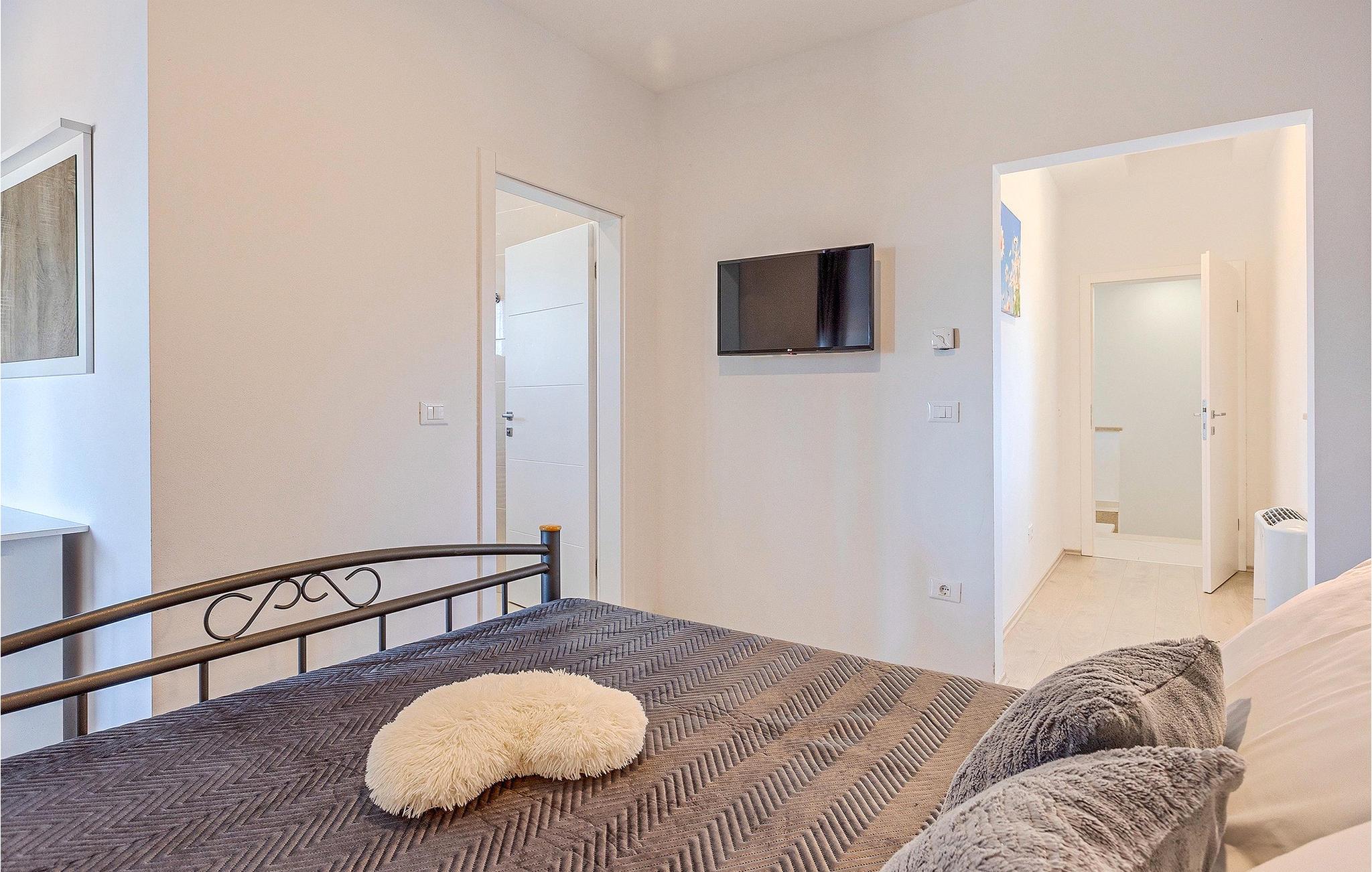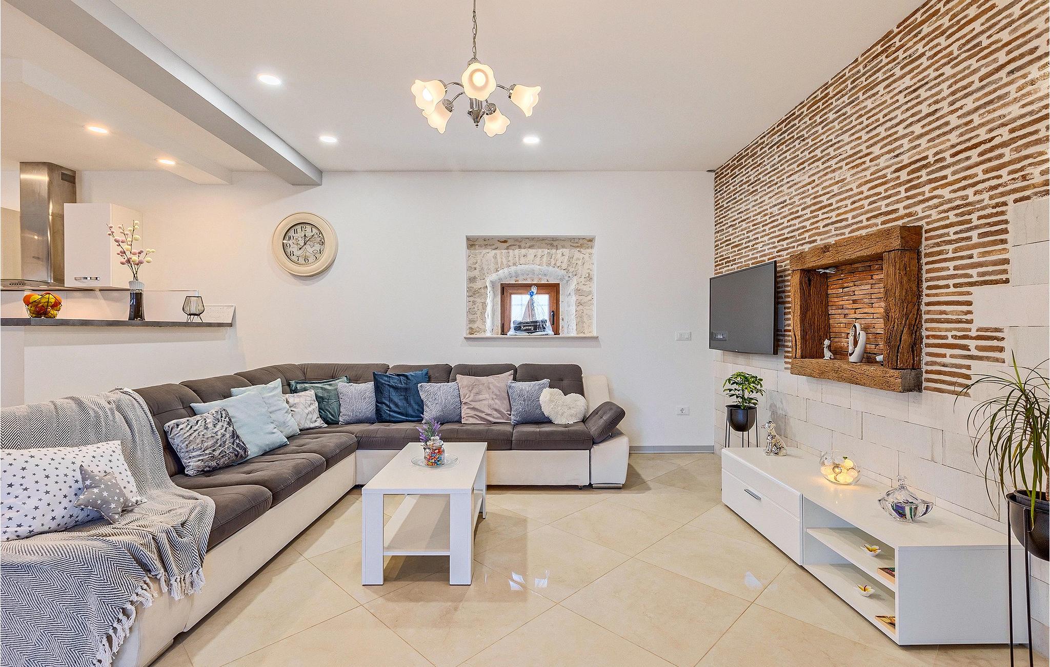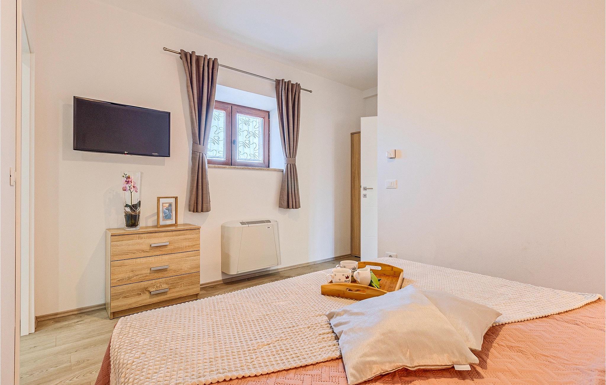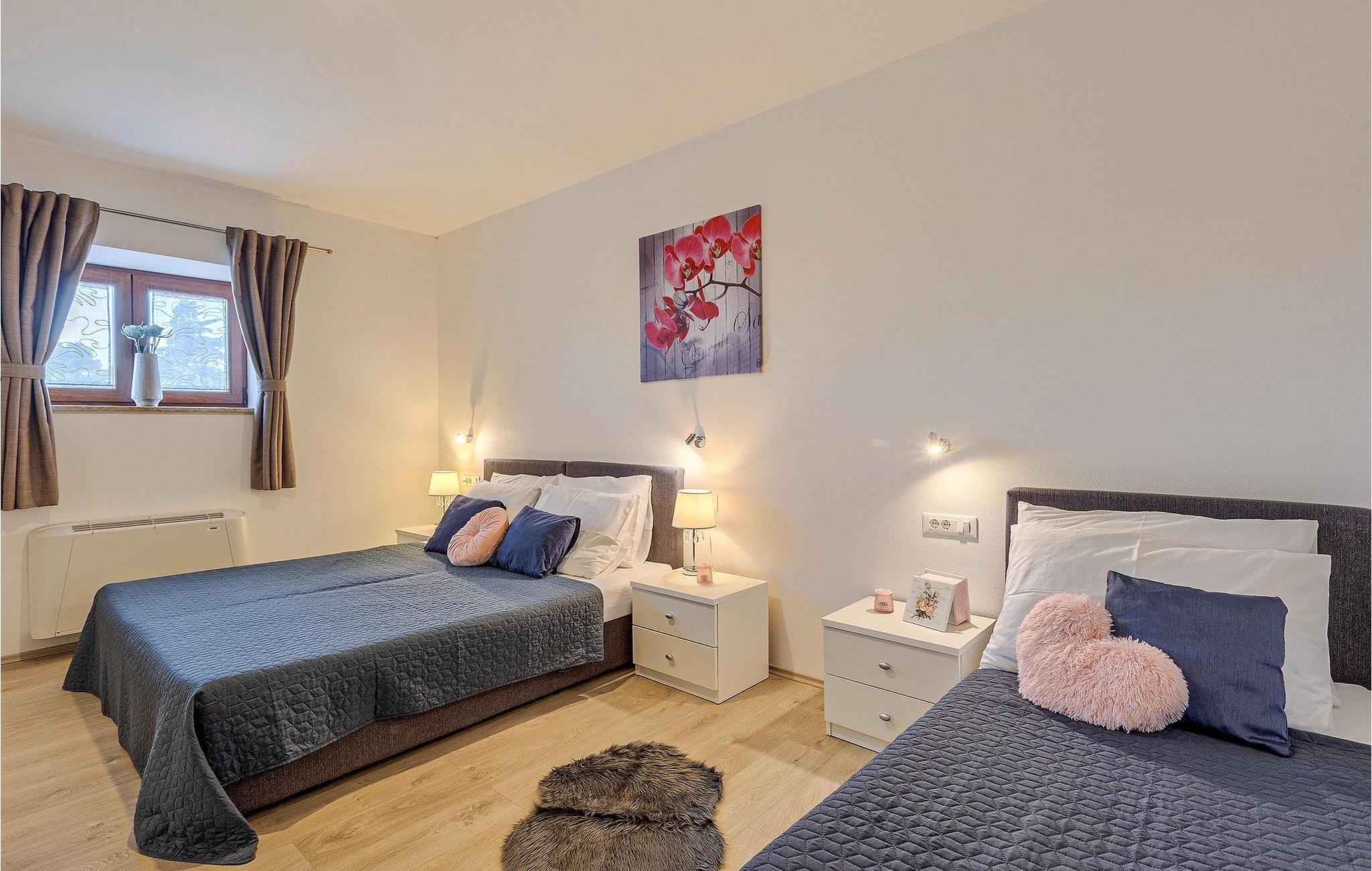 Om dagen vil du helt sikkert nyde det dejlige store udendørsområde mest. Varme sommerdage er en perfekt mulighed for at forfriske dig selv i poolen eller nyde et familiemåltid i den udendørs spiseplads. Poolen har to lavvandede dele med hydromassage, hvilket er fantastisk til mindre børn. Villaen er beliggende i landsbyen Korenici nær Kanfanar og er kun en kort køretur fra Lim Bay. Lim-bugten, der er cirka 13 km lang, ligger på Istriens vestkyst og er blevet erklæret et naturreservat, hvilket gør det til et perfekt rejsemål for alle naturelskere. Bugten er især berømt for sine muslinger og østers, som kan smages på stedet. Vi anbefaler dig klart at besøge den smukke maleriske kystby Rovinj, der ligger på en lille halvø. I dag er de fleste af bygningerne i centrum af byen stadig i deres oprindelige tilstand og tager dig tilbage i tiden. Gå en tur gennem de romantiske gyder og smag typiske lokale specialiteter i restauranterne. Middelalderbyer som Motovun, Groznjan og Buzet er også inden for rækkevidde og et besøg værd. For familier med børn anbefaler vi en tur til vandlandet i Porec. Hvis du er mere en ivrig strandgænger, kan du udforske de vidunderlige strande i og omkring Rovinj, Porec og Novigrad.