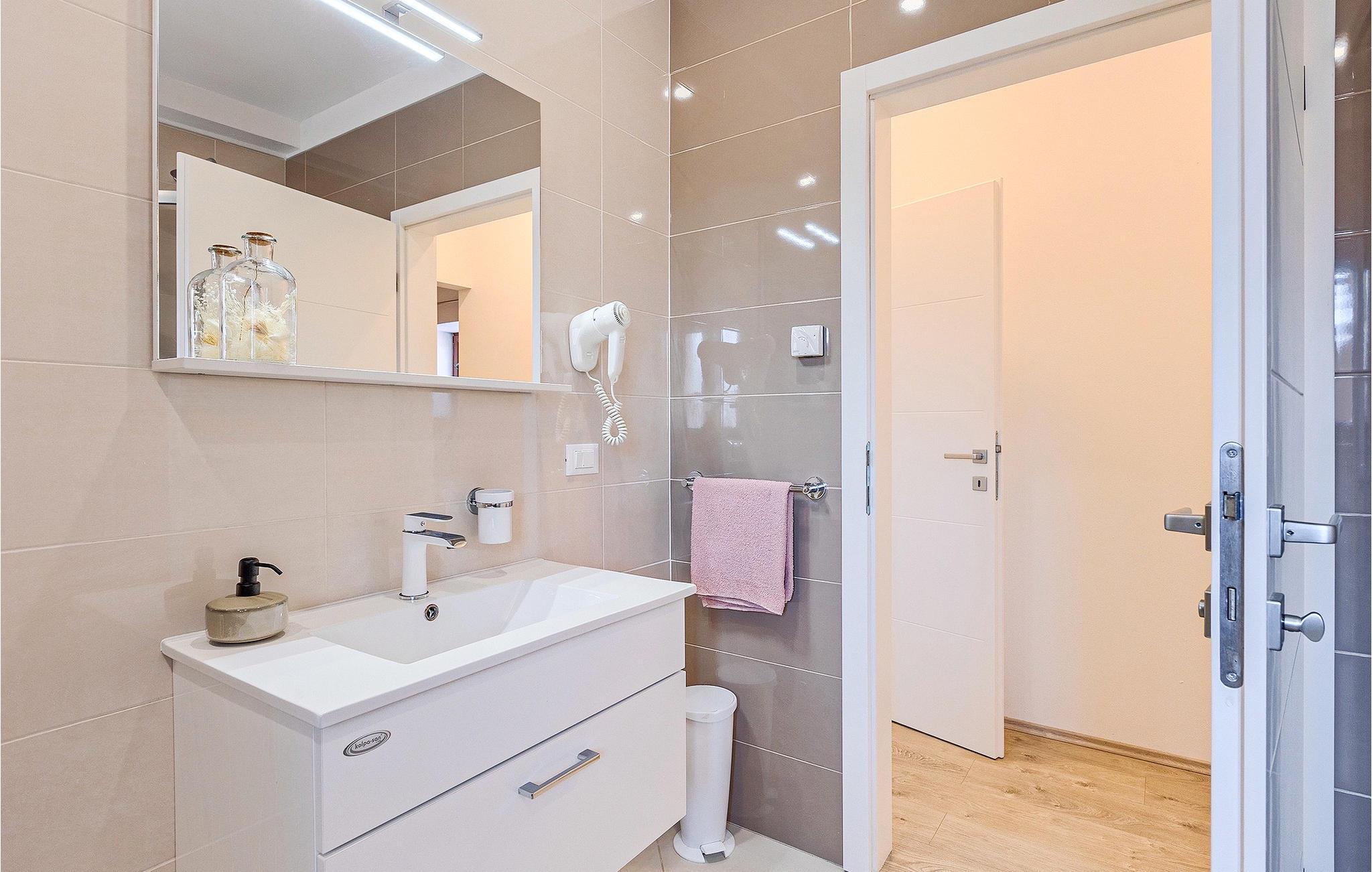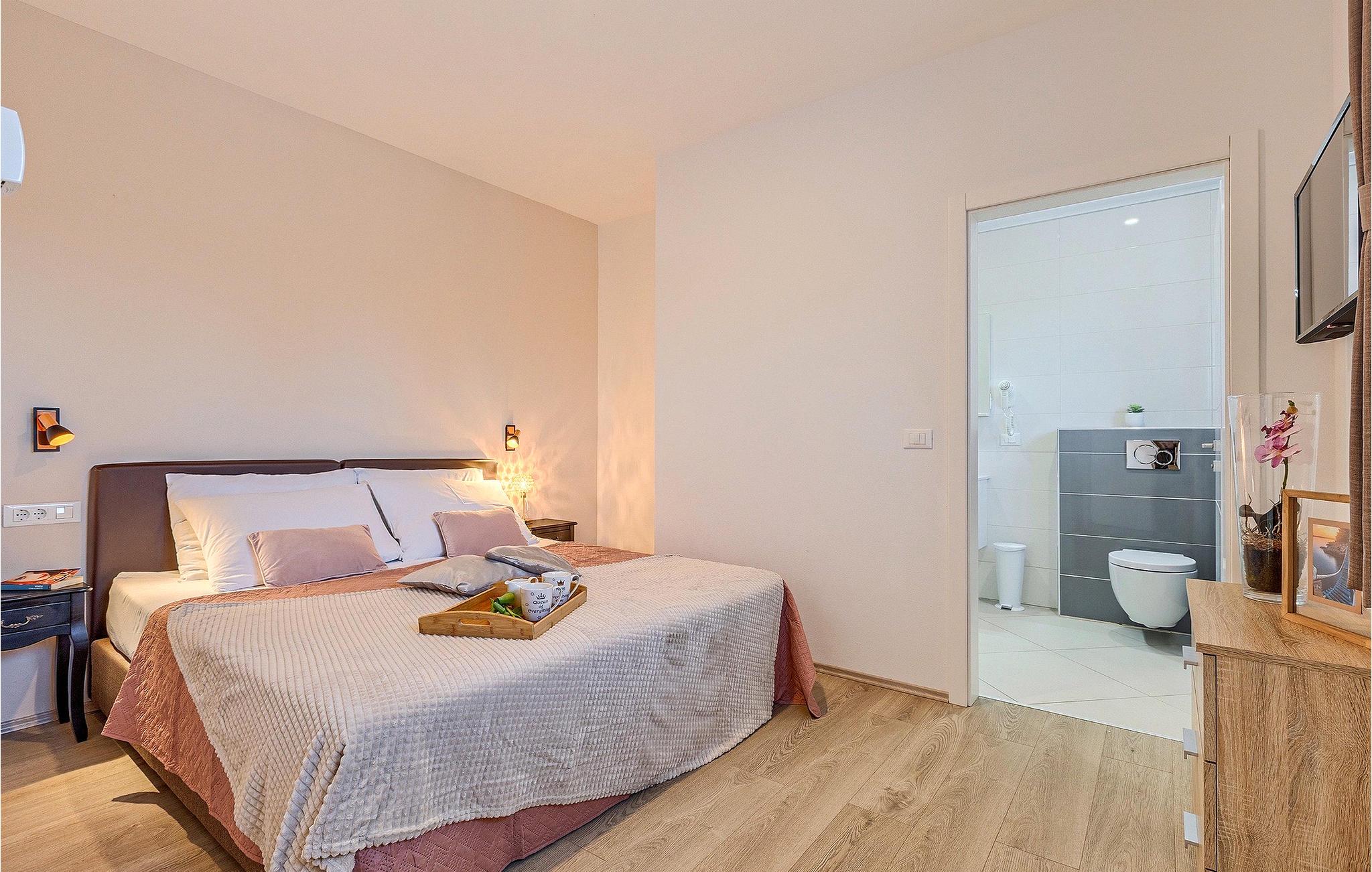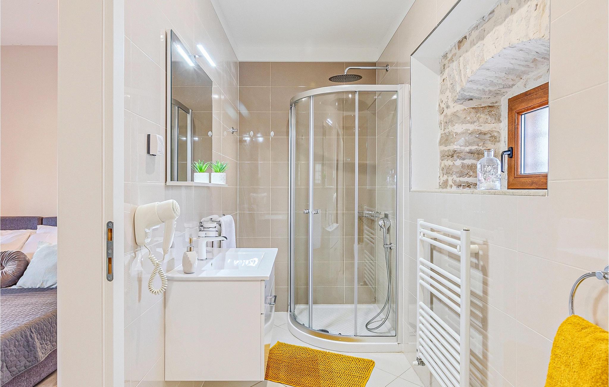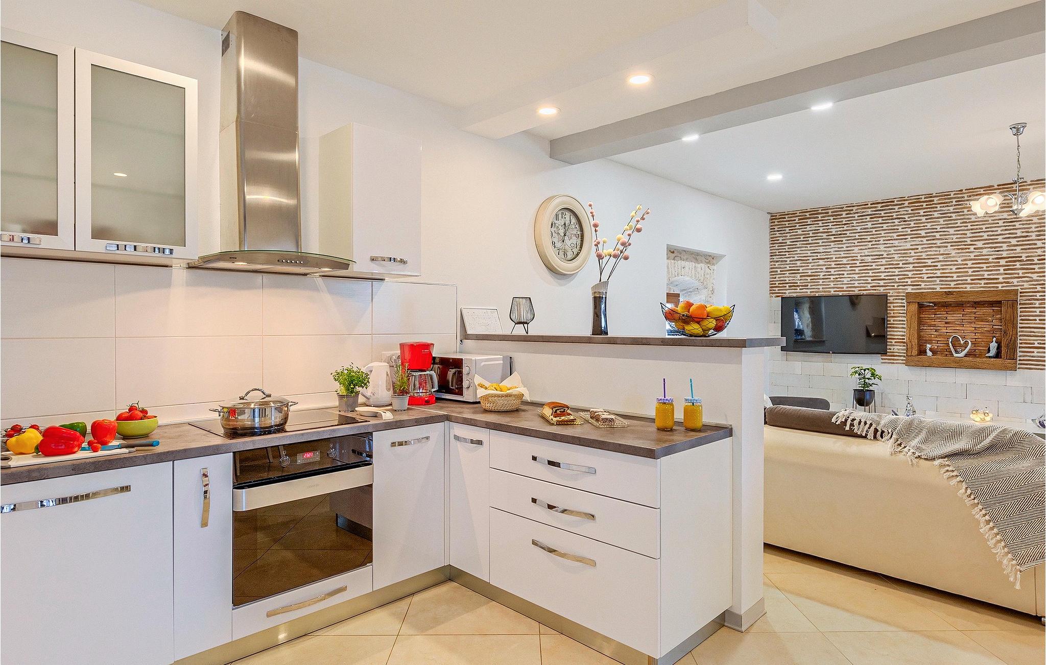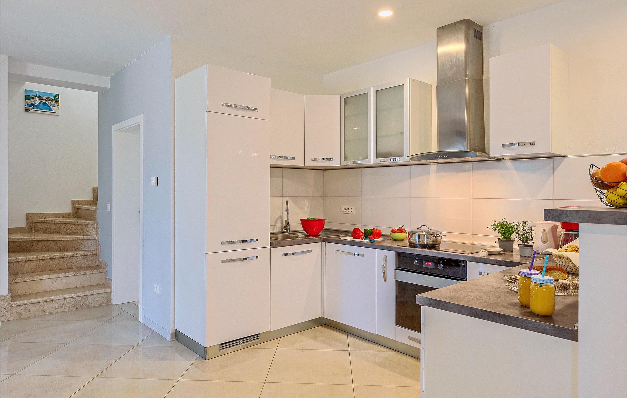 Om dagen vil du helt sikkert nyde det dejlige store udendørsområde mest. Varme sommerdage er en perfekt mulighed for at forfriske dig selv i poolen eller nyde et familiemåltid i den udendørs spiseplads. Poolen har to lavvandede dele med hydromassage, hvilket er fantastisk til mindre børn. Villaen er beliggende i landsbyen Korenici nær Kanfanar og er kun en kort køretur fra Lim Bay. Lim-bugten, der er cirka 13 km lang, ligger på Istriens vestkyst og er blevet erklæret et naturreservat, hvilket gør det til et perfekt rejsemål for alle naturelskere. Bugten er især berømt for sine muslinger og østers, som kan smages på stedet. Vi anbefaler dig klart at besøge den smukke maleriske kystby Rovinj, der ligger på en lille halvø. I dag er de fleste af bygningerne i centrum af byen stadig i deres oprindelige tilstand og tager dig tilbage i tiden. Gå en tur gennem de romantiske gyder og smag typiske lokale specialiteter i restauranterne. Middelalderbyer som Motovun, Groznjan og Buzet er også inden for rækkevidde og et besøg værd. For familier med børn anbefaler vi en tur til vandlandet i Porec. Hvis du er mere en ivrig strandgænger, kan du udforske de vidunderlige strande i og omkring Rovinj, Porec og Novigrad.
