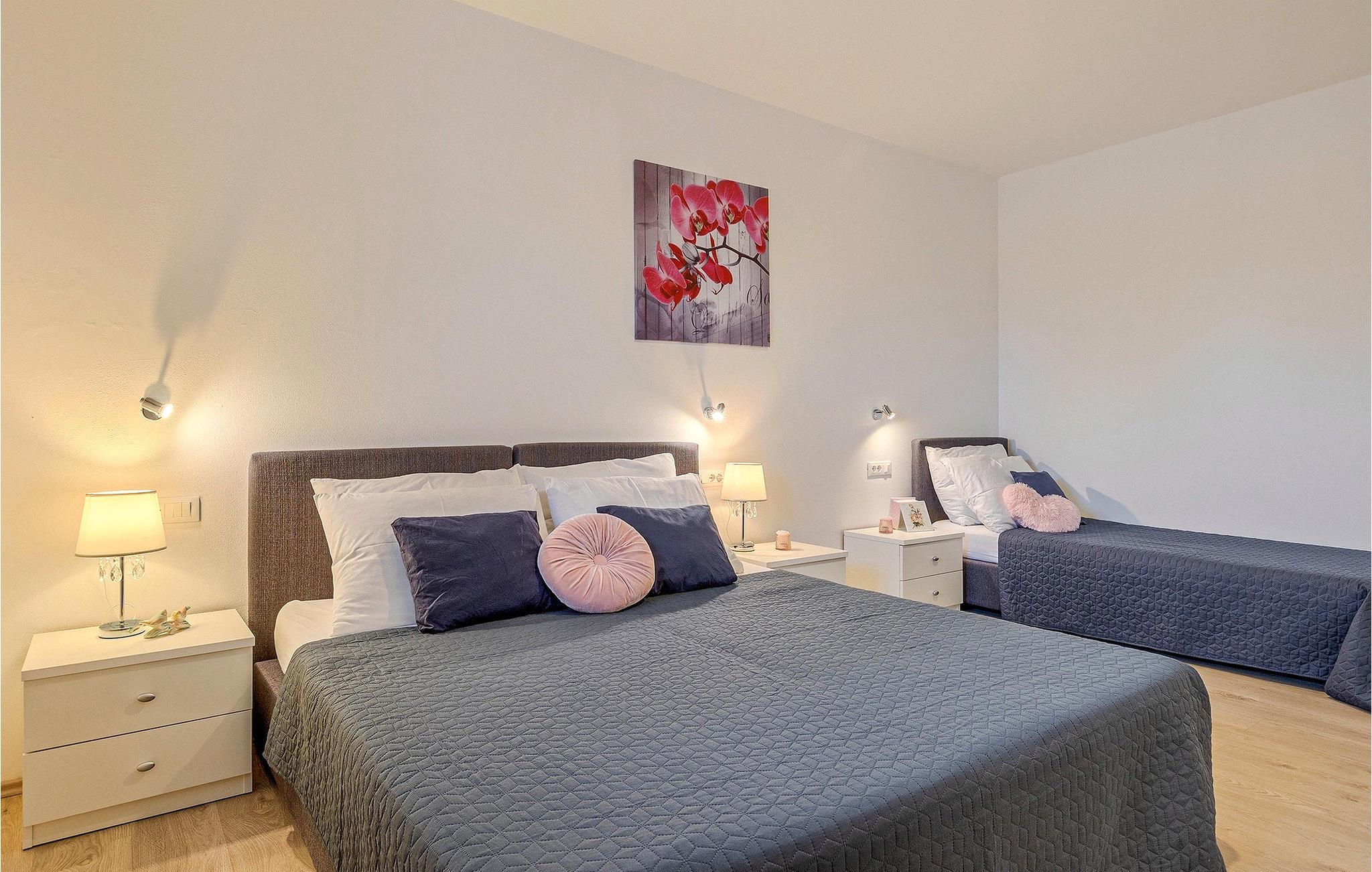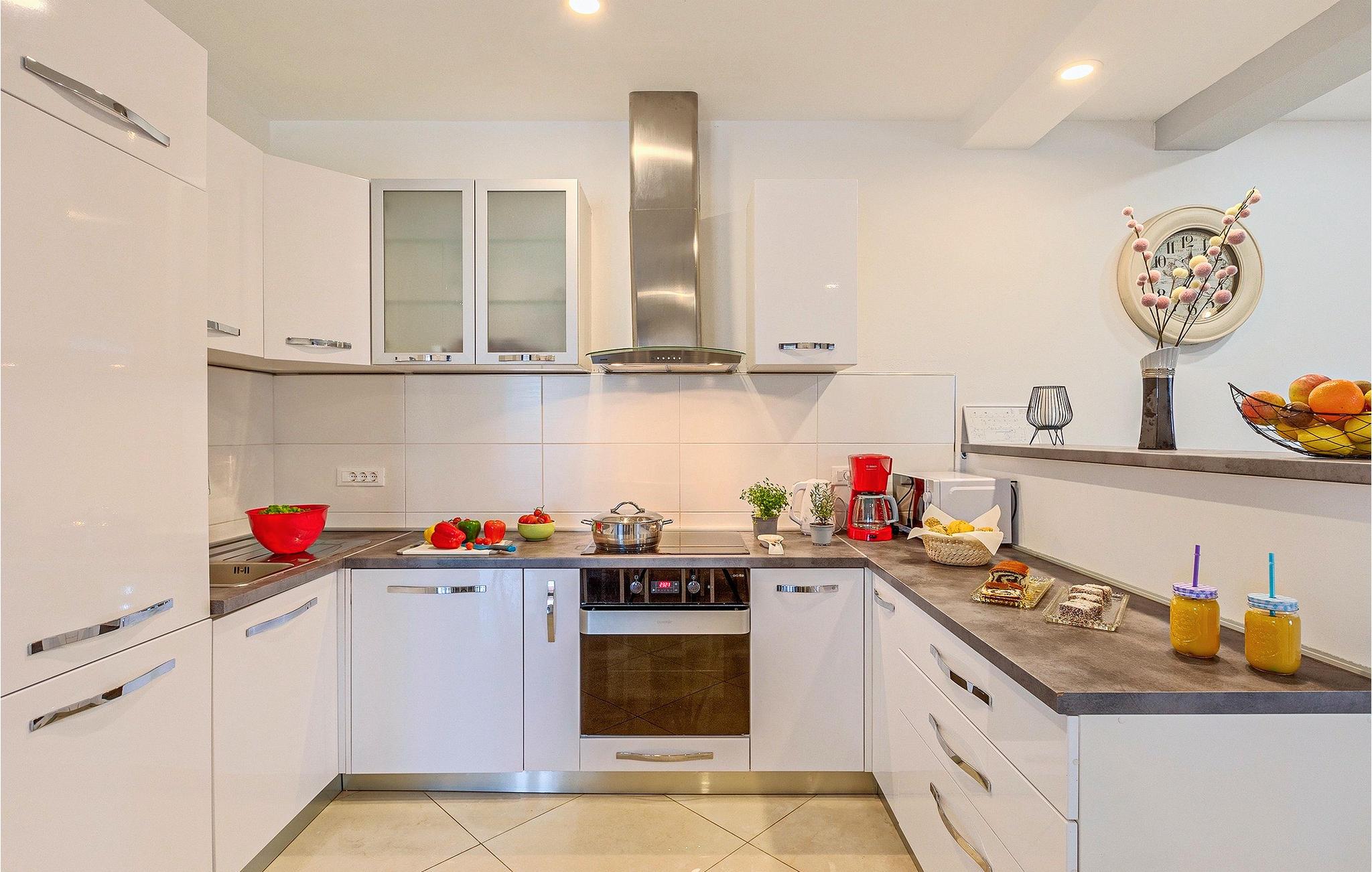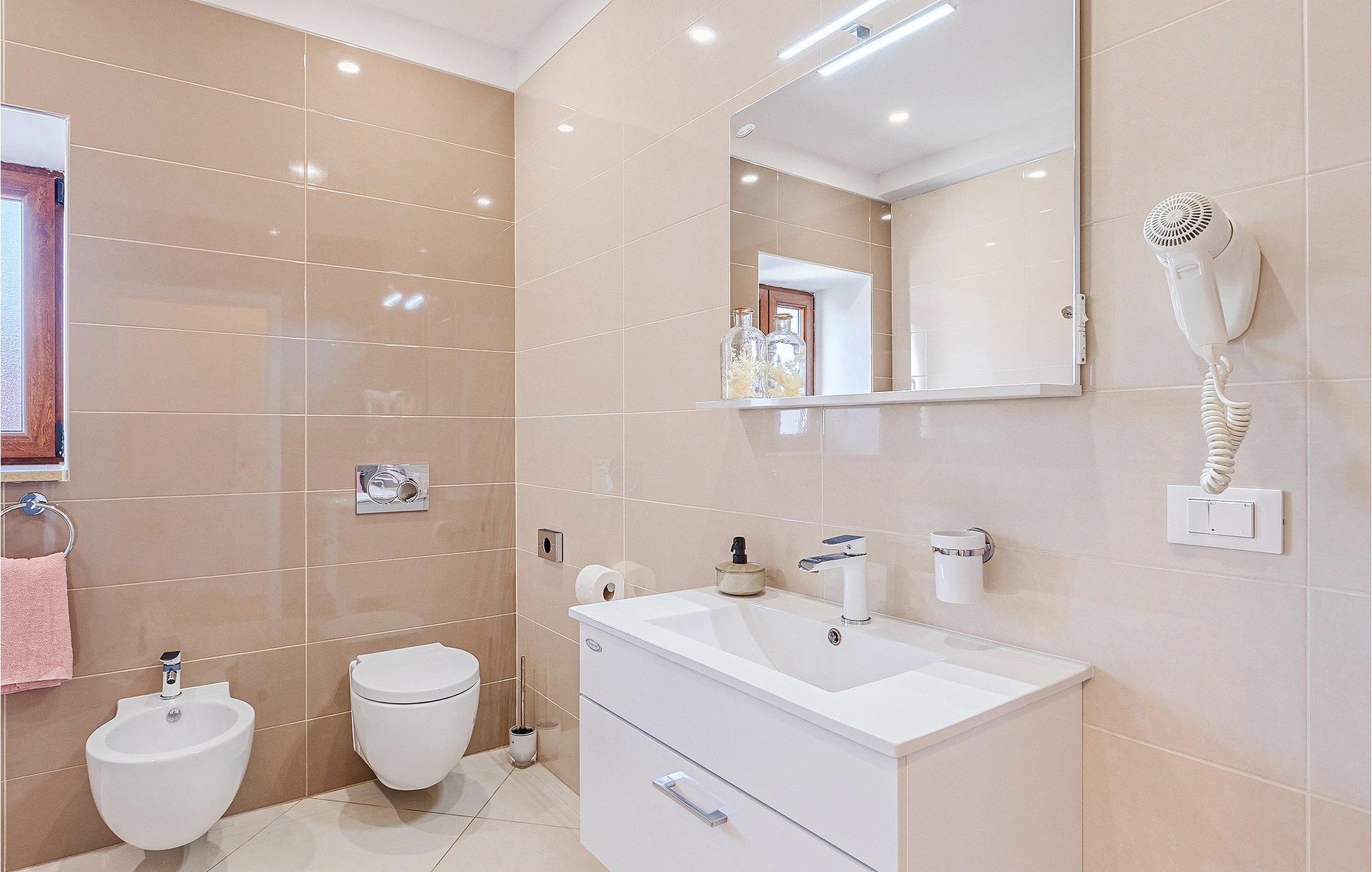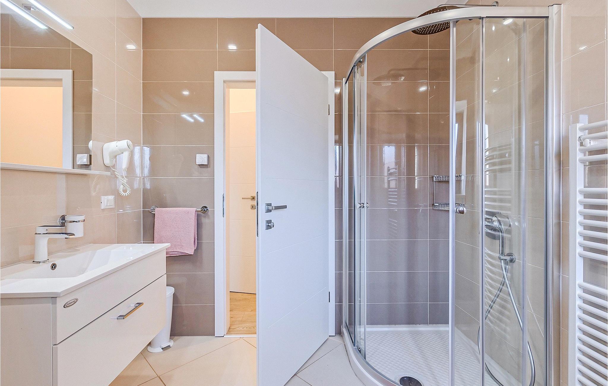 Om dagen vil du helt sikkert nyde det dejlige store udendørsområde mest. Varme sommerdage er en perfekt mulighed for at forfriske dig selv i poolen eller nyde et familiemåltid i den udendørs spiseplads. Poolen har to lavvandede dele med hydromassage, hvilket er fantastisk til mindre børn. Villaen er beliggende i landsbyen Korenici nær Kanfanar og er kun en kort køretur fra Lim Bay. Lim-bugten, der er cirka 13 km lang, ligger på Istriens vestkyst og er blevet erklæret et naturreservat, hvilket gør det til et perfekt rejsemål for alle naturelskere. Bugten er især berømt for sine muslinger og østers, som kan smages på stedet. Vi anbefaler dig klart at besøge den smukke maleriske kystby Rovinj, der ligger på en lille halvø. I dag er de fleste af bygningerne i centrum af byen stadig i deres oprindelige tilstand og tager dig tilbage i tiden. Gå en tur gennem de romantiske gyder og smag typiske lokale specialiteter i restauranterne. Middelalderbyer som Motovun, Groznjan og Buzet er også inden for rækkevidde og et besøg værd. For familier med børn anbefaler vi en tur til vandlandet i Porec. Hvis du er mere en ivrig strandgænger, kan du udforske de vidunderlige strande i og omkring Rovinj, Porec og Novigrad.