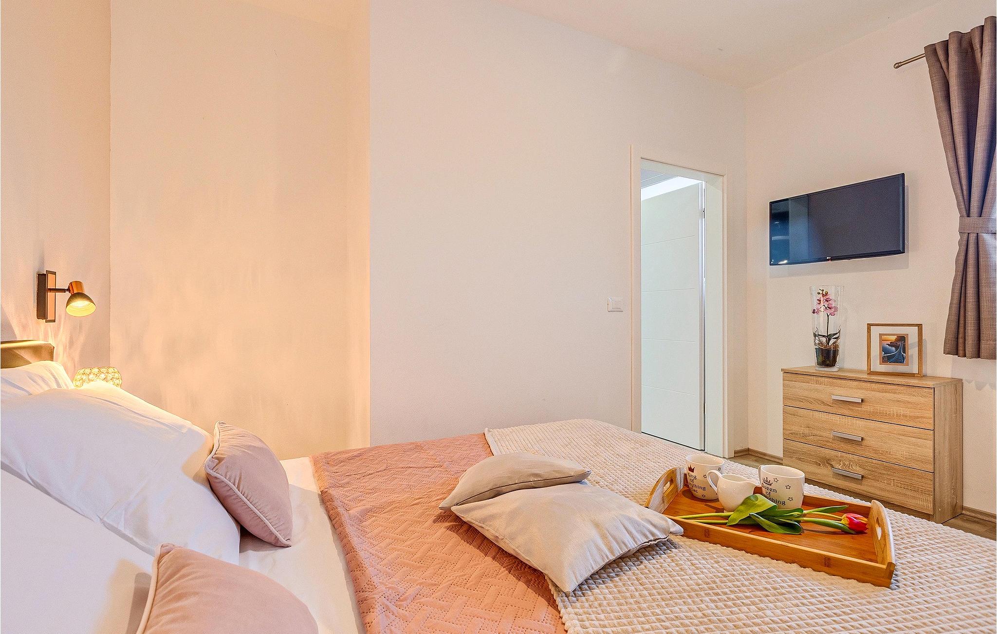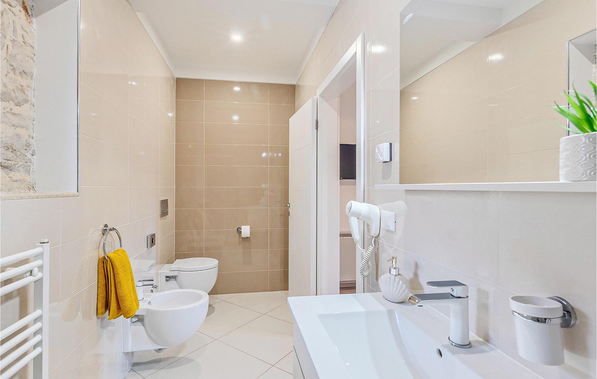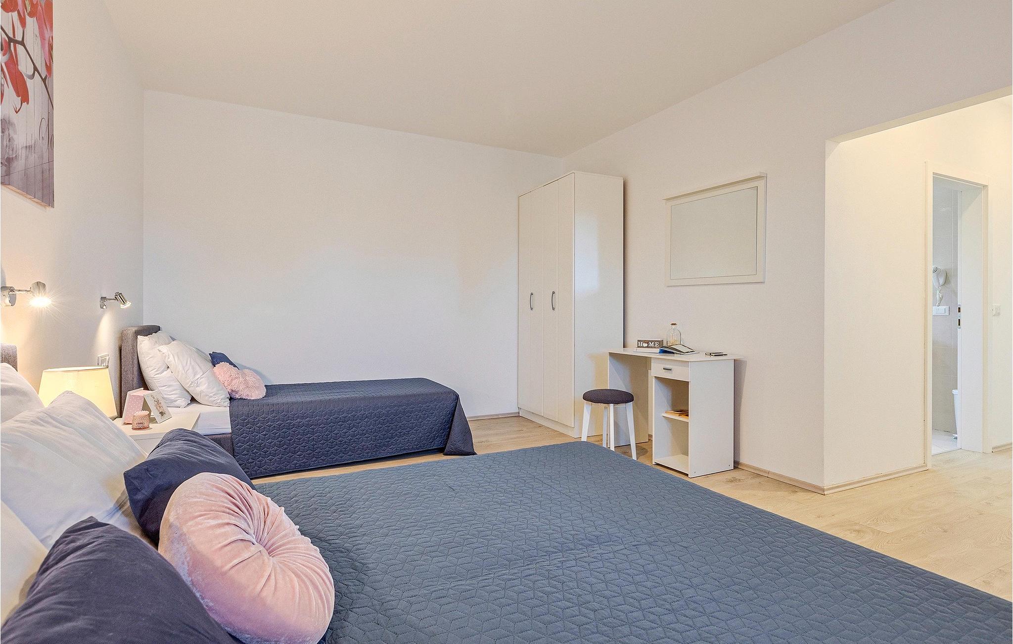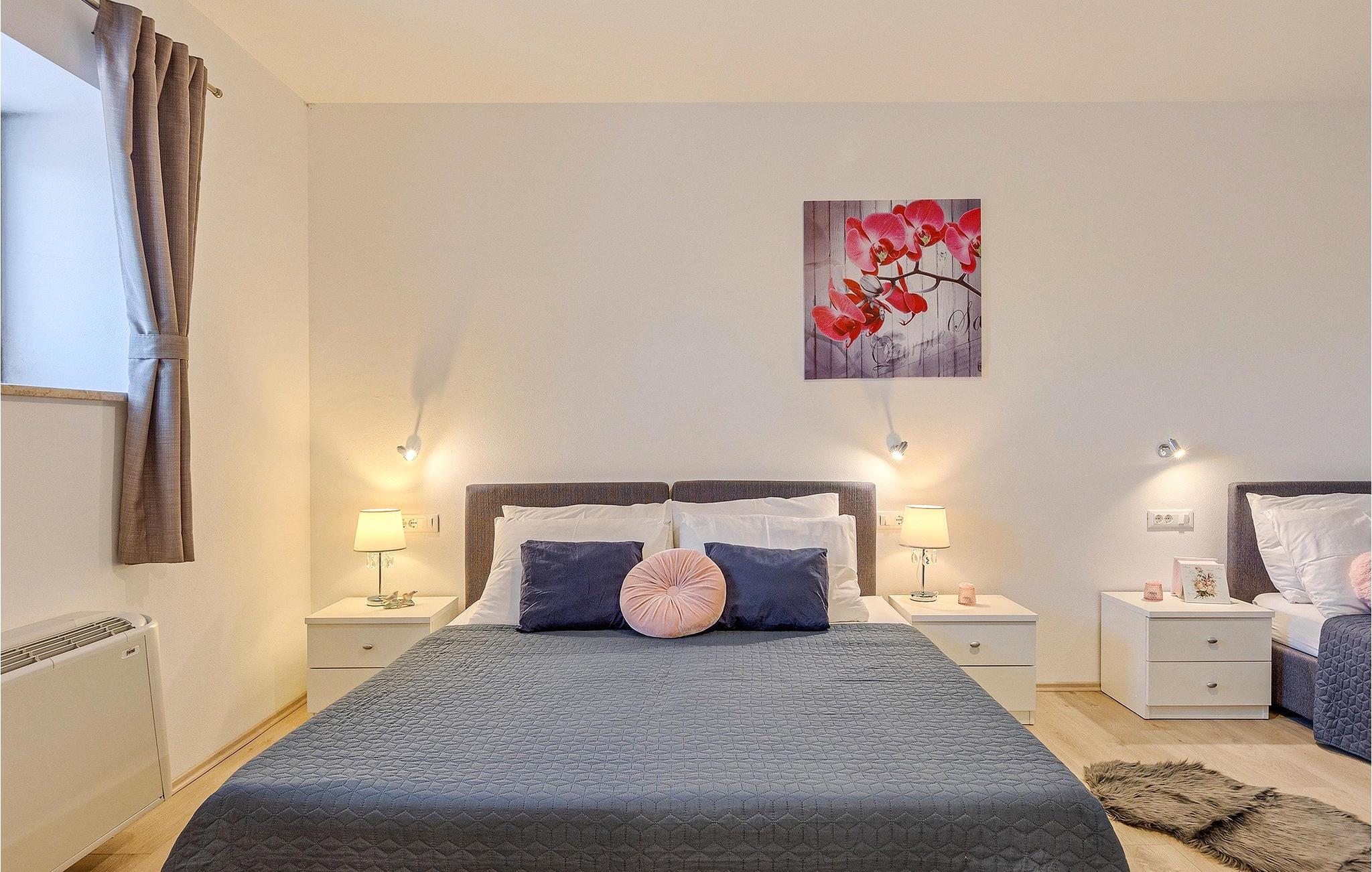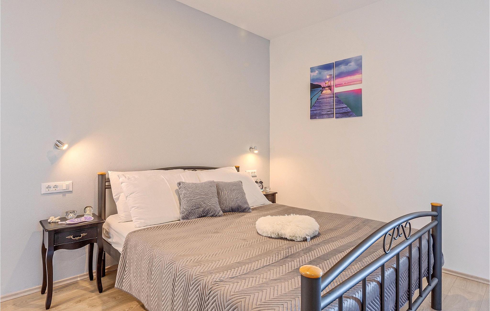Om dagen vil du helt sikkert nyde det dejlige store udendørsområde mest. Varme sommerdage er en perfekt mulighed for at forfriske dig selv i poolen eller nyde et familiemåltid i den udendørs spiseplads. Poolen har to lavvandede dele med hydromassage, hvilket er fantastisk til mindre børn. Villaen er beliggende i landsbyen Korenici nær Kanfanar og er kun en kort køretur fra Lim Bay. Lim-bugten, der er cirka 13 km lang, ligger på Istriens vestkyst og er blevet erklæret et naturreservat, hvilket gør det til et perfekt rejsemål for alle naturelskere. Bugten er især berømt for sine muslinger og østers, som kan smages på stedet. Vi anbefaler dig klart at besøge den smukke maleriske kystby Rovinj, der ligger på en lille halvø. I dag er de fleste af bygningerne i centrum af byen stadig i deres oprindelige tilstand og tager dig tilbage i tiden. Gå en tur gennem de romantiske gyder og smag typiske lokale specialiteter i restauranterne. Middelalderbyer som Motovun, Groznjan og Buzet er også inden for rækkevidde og et besøg værd. For familier med børn anbefaler vi en tur til vandlandet i Porec. Hvis du er mere en ivrig strandgænger, kan du udforske de vidunderlige strande i og omkring Rovinj, Porec og Novigrad.