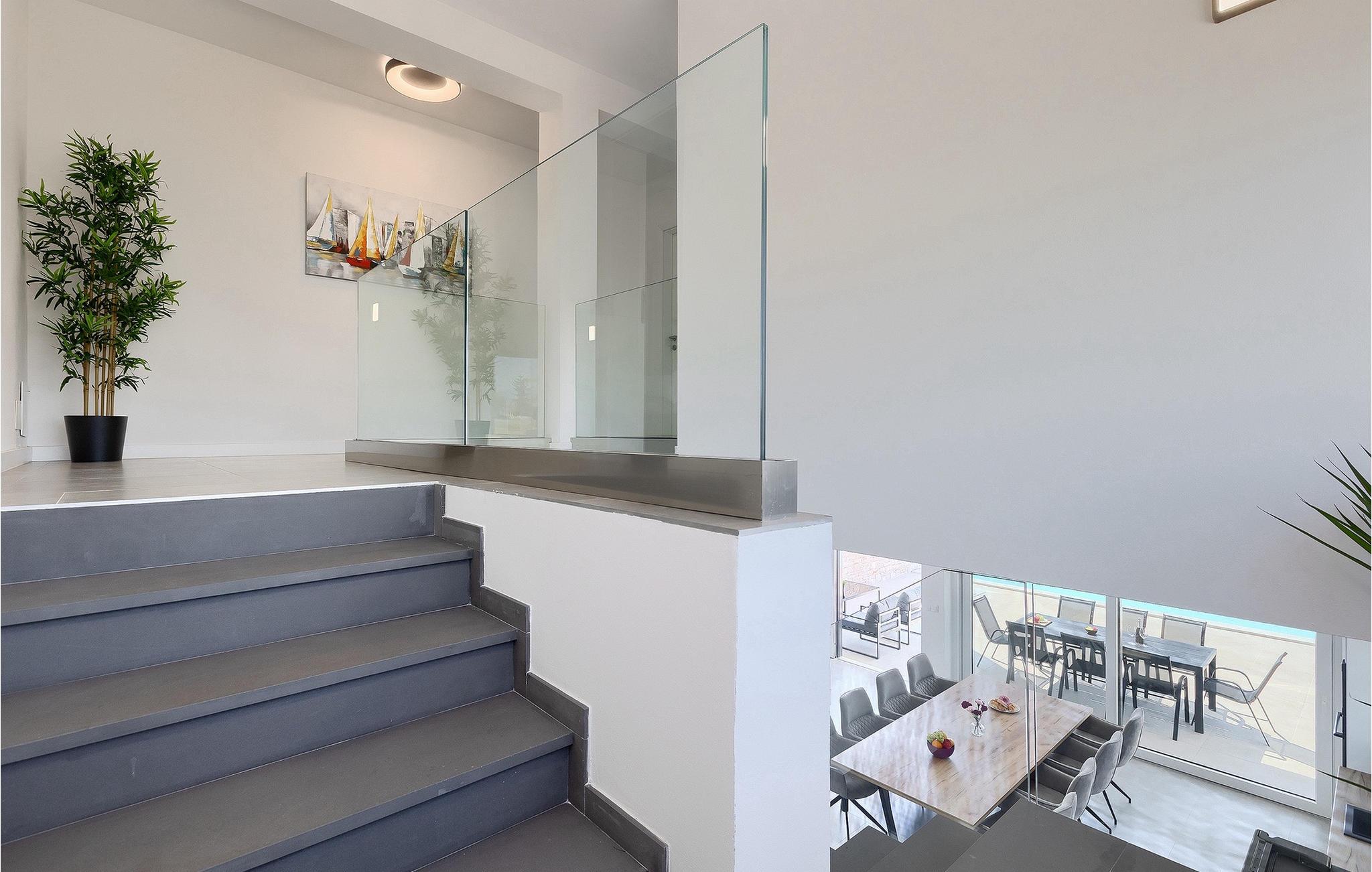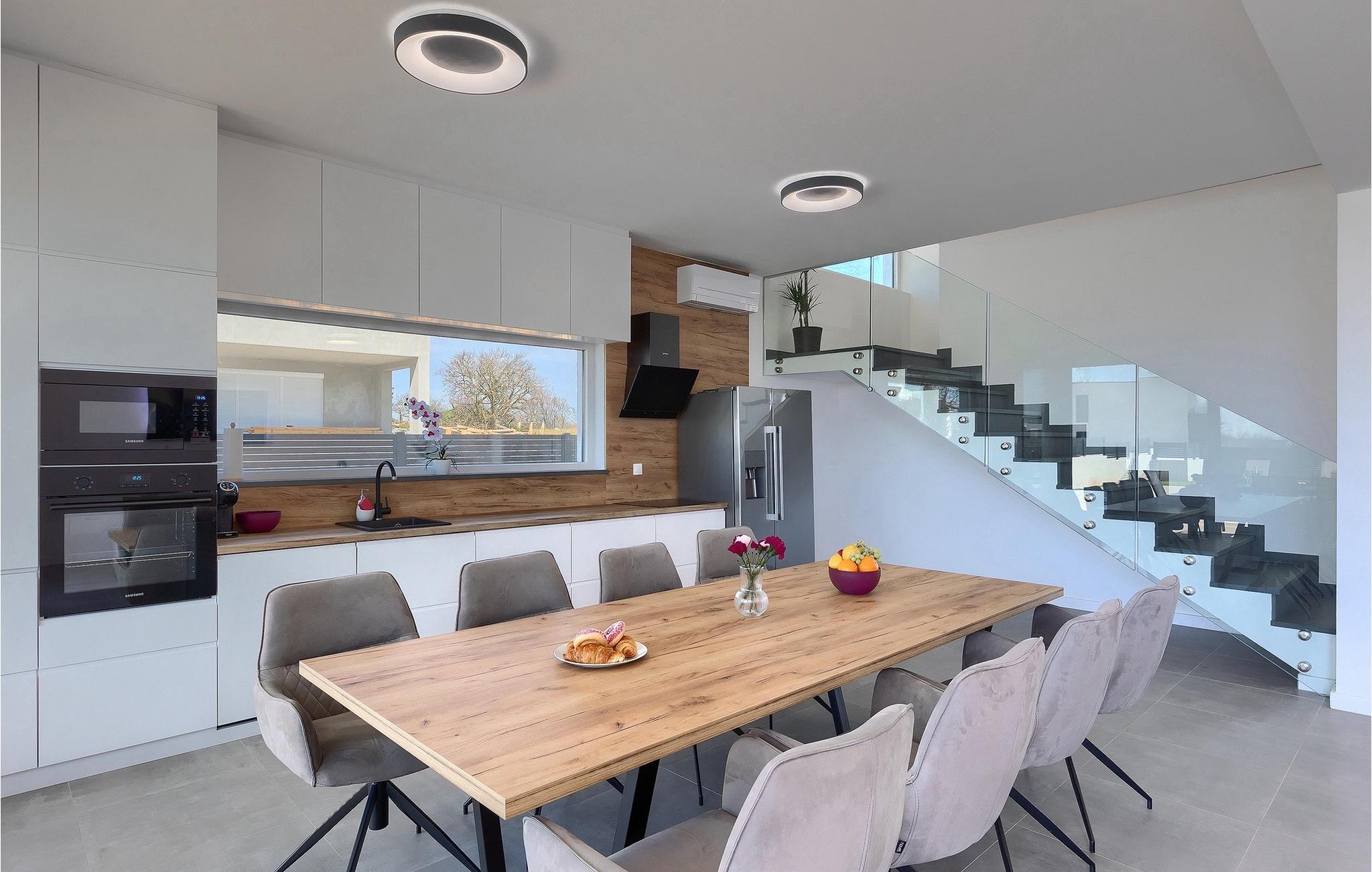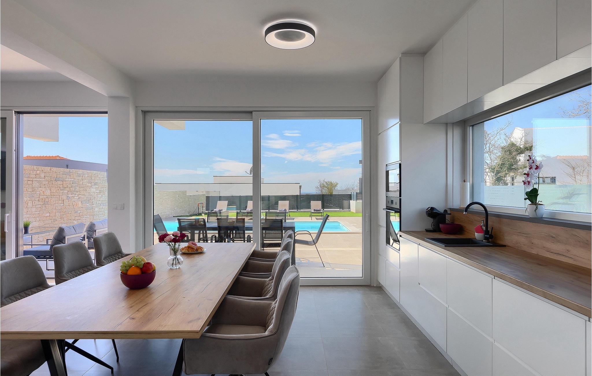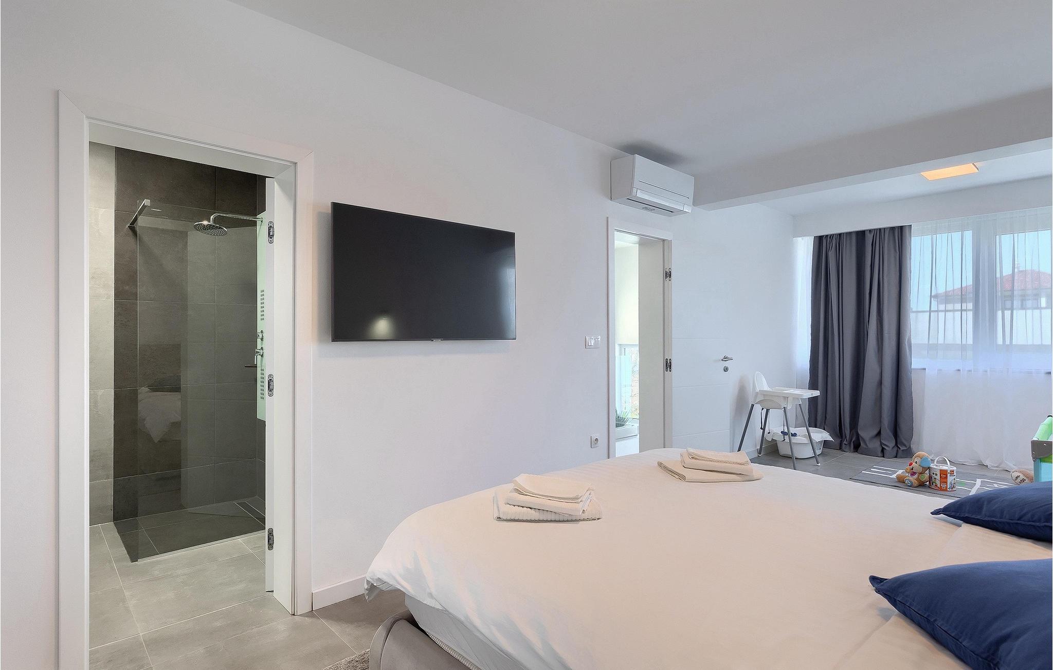 Det moderne designede interiør i Villa Elena Rovinj er perfekt udstyret med alt hvad du behøver for at føle dig helt komfortabel. Stueetagen byder dig velkommen med et opholdsområde med aircondition og en stor, komfortabel sofa - ideel til filmaftener sammen. Ved spisebordet i det fuldt udstyrede køkken kan frokosten bedre nydes væk fra sommervarmen. På samme niveau kan en del af familien tilbringe fredelige nætter i et af dobbeltværelserne med eget badeværelse. Yderligere 3 dobbeltværelser er på etagen ovenover. Igen har hvert af soveværelserne sit eget ensuite badeværelse med bruser. To af værelserne har direkte udgang til den overdækkede altan, hvor du i ro og mag kan nyde din første morgenkaffe, inden du begiver dig ud for at udforske området.