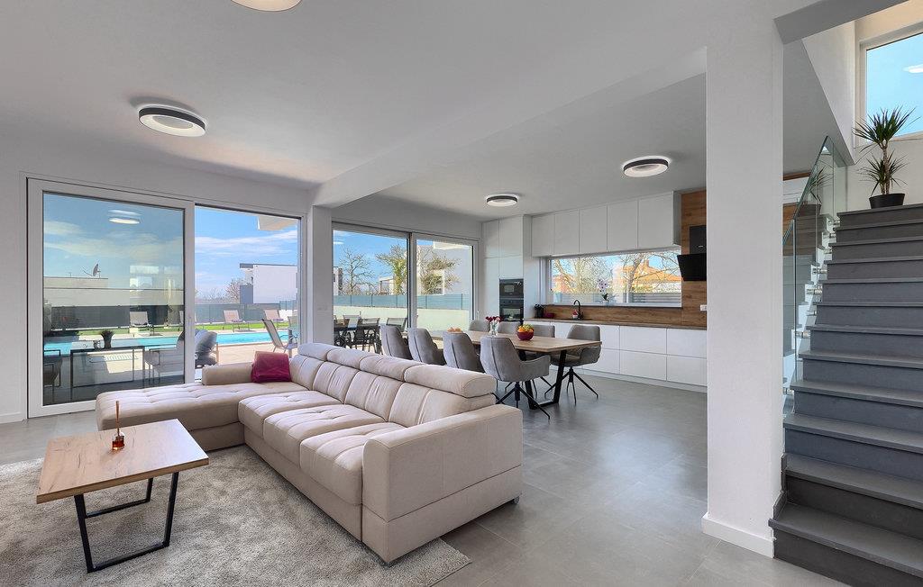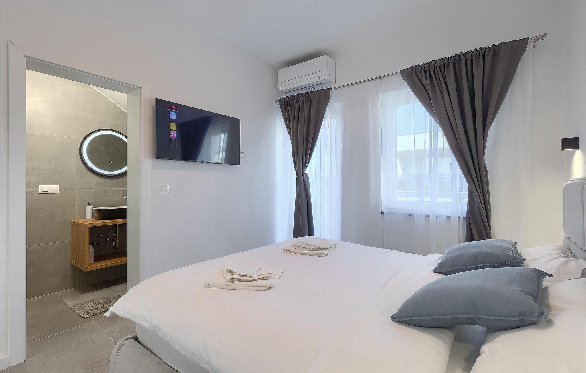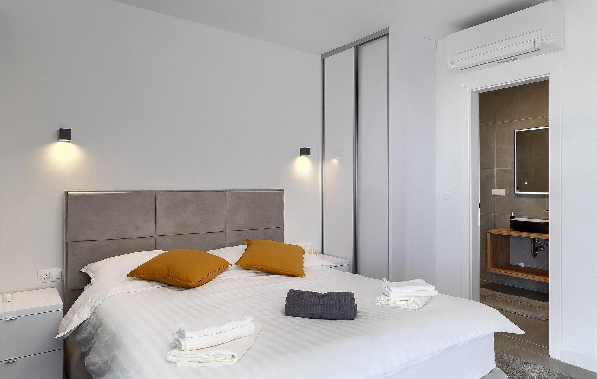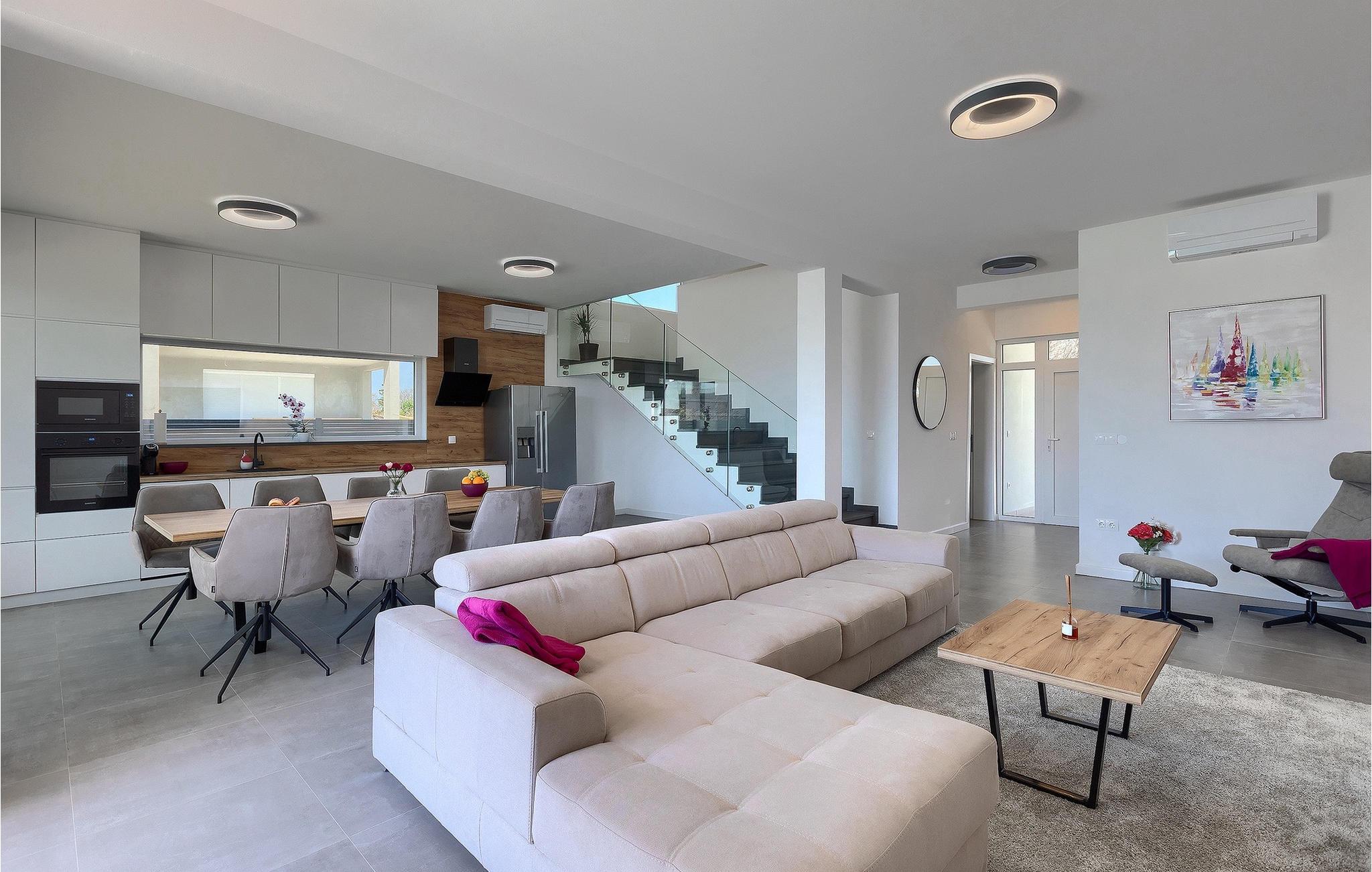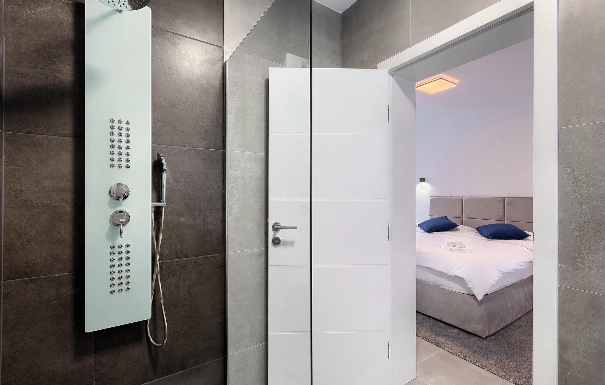Det moderne designede interiør i Villa Elena Rovinj er perfekt udstyret med alt hvad du behøver for at føle dig helt komfortabel. Stueetagen byder dig velkommen med et opholdsområde med aircondition og en stor, komfortabel sofa - ideel til filmaftener sammen. Ved spisebordet i det fuldt udstyrede køkken kan frokosten bedre nydes væk fra sommervarmen. På samme niveau kan en del af familien tilbringe fredelige nætter i et af dobbeltværelserne med eget badeværelse. Yderligere 3 dobbeltværelser er på etagen ovenover. Igen har hvert af soveværelserne sit eget ensuite badeværelse med bruser. To af værelserne har direkte udgang til den overdækkede altan, hvor du i ro og mag kan nyde din første morgenkaffe, inden du begiver dig ud for at udforske området.