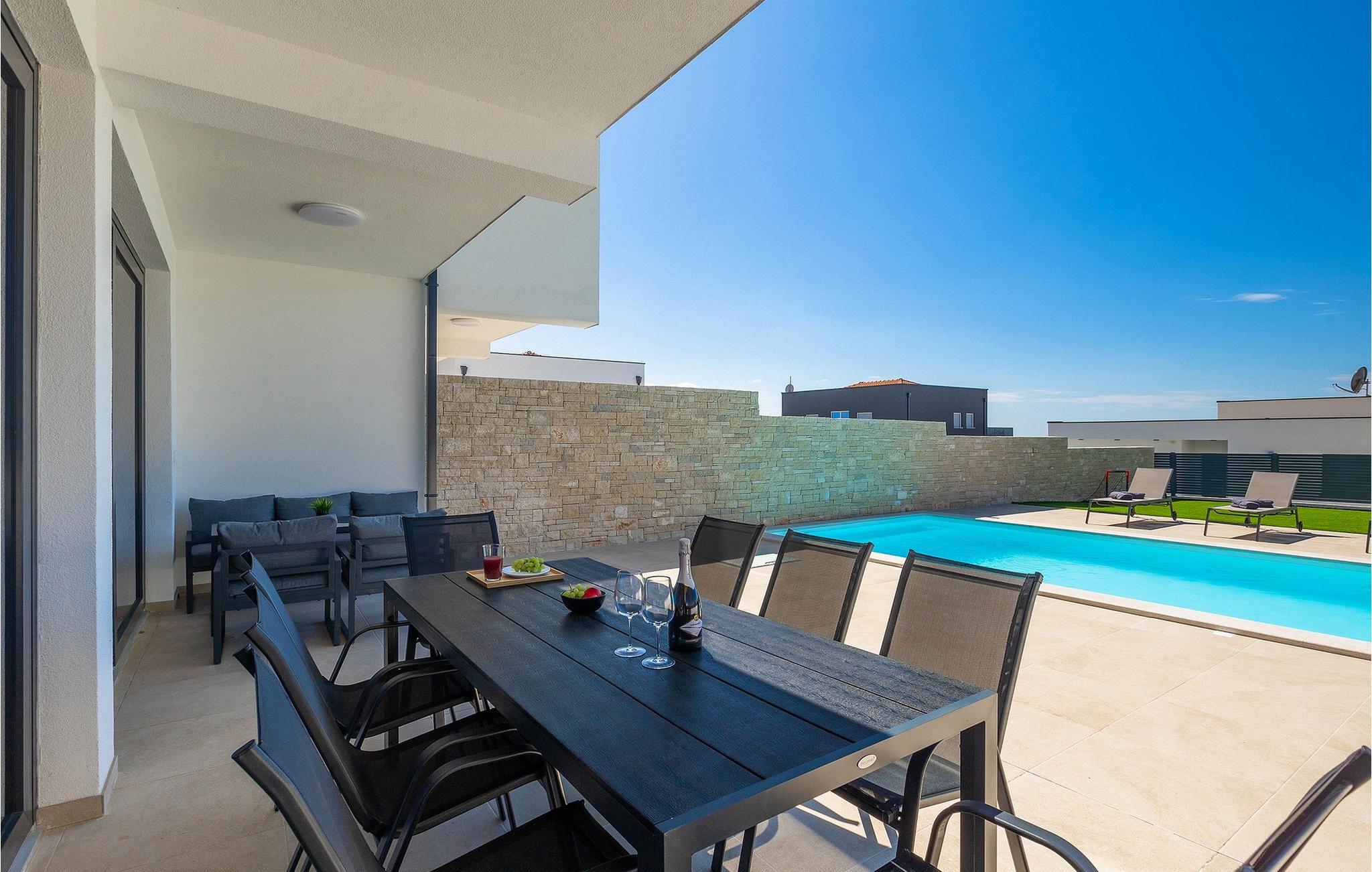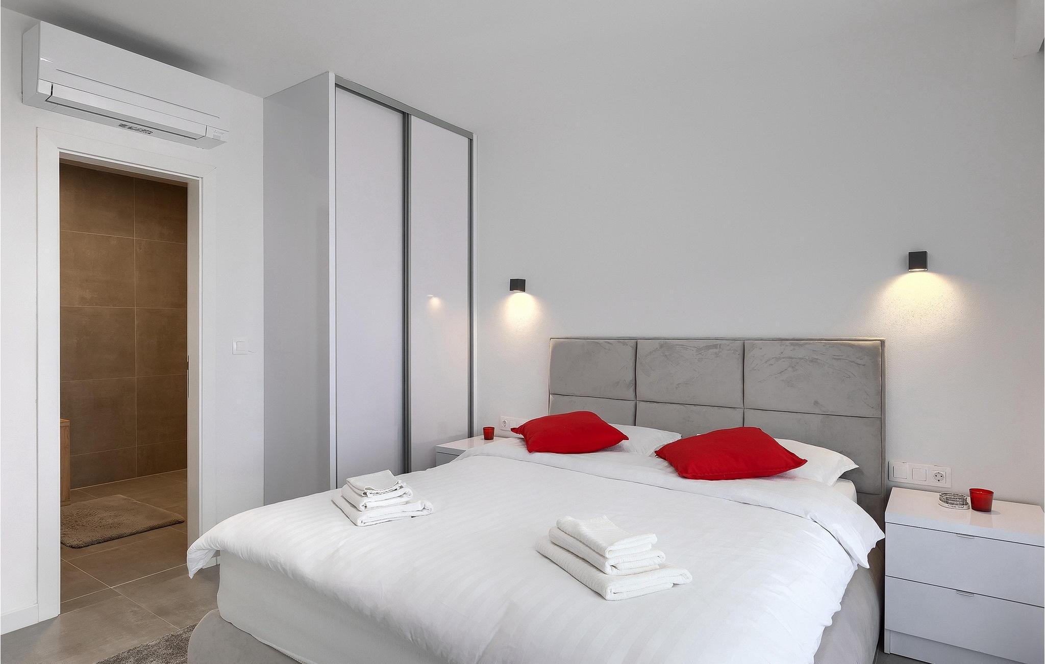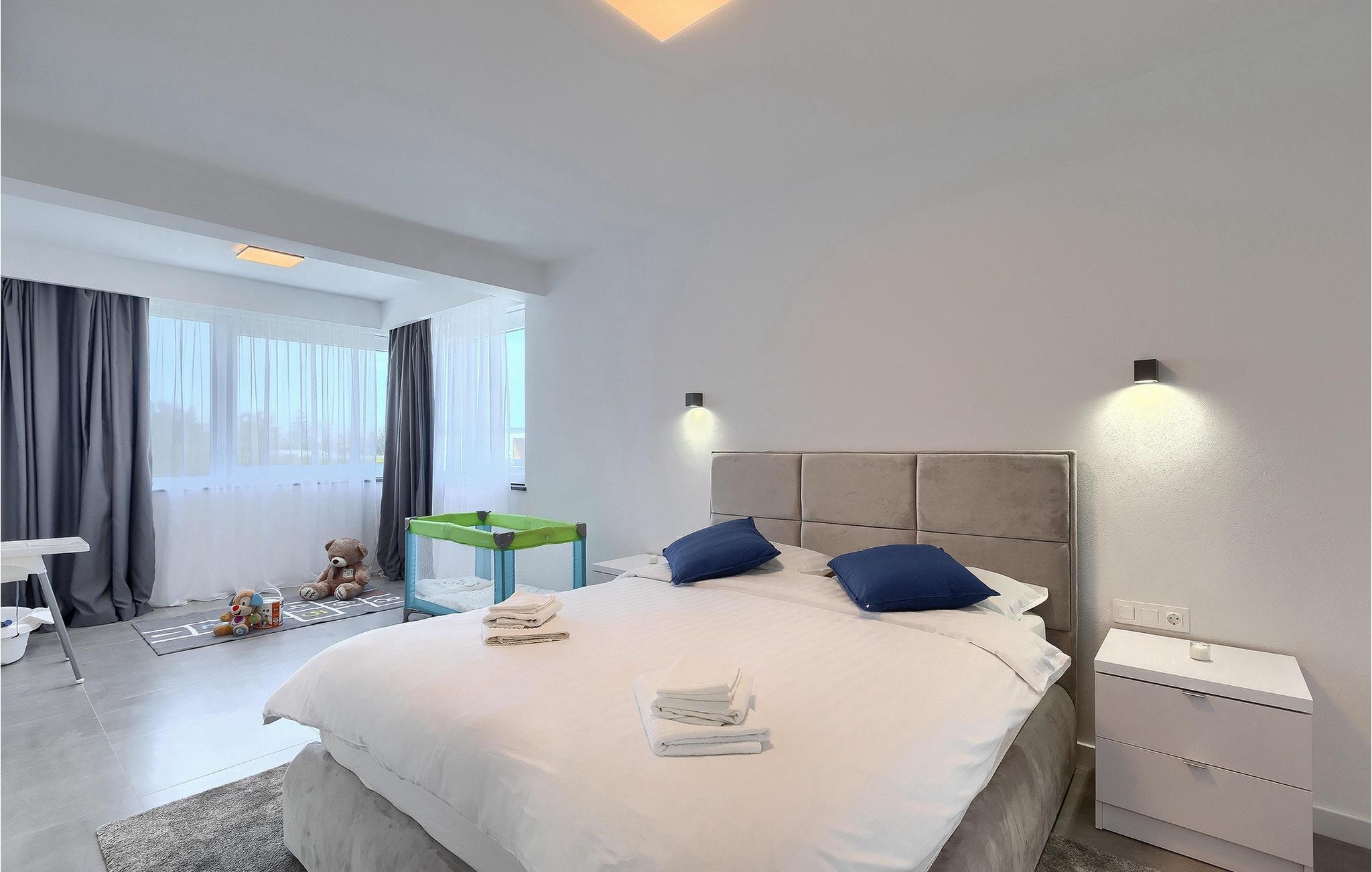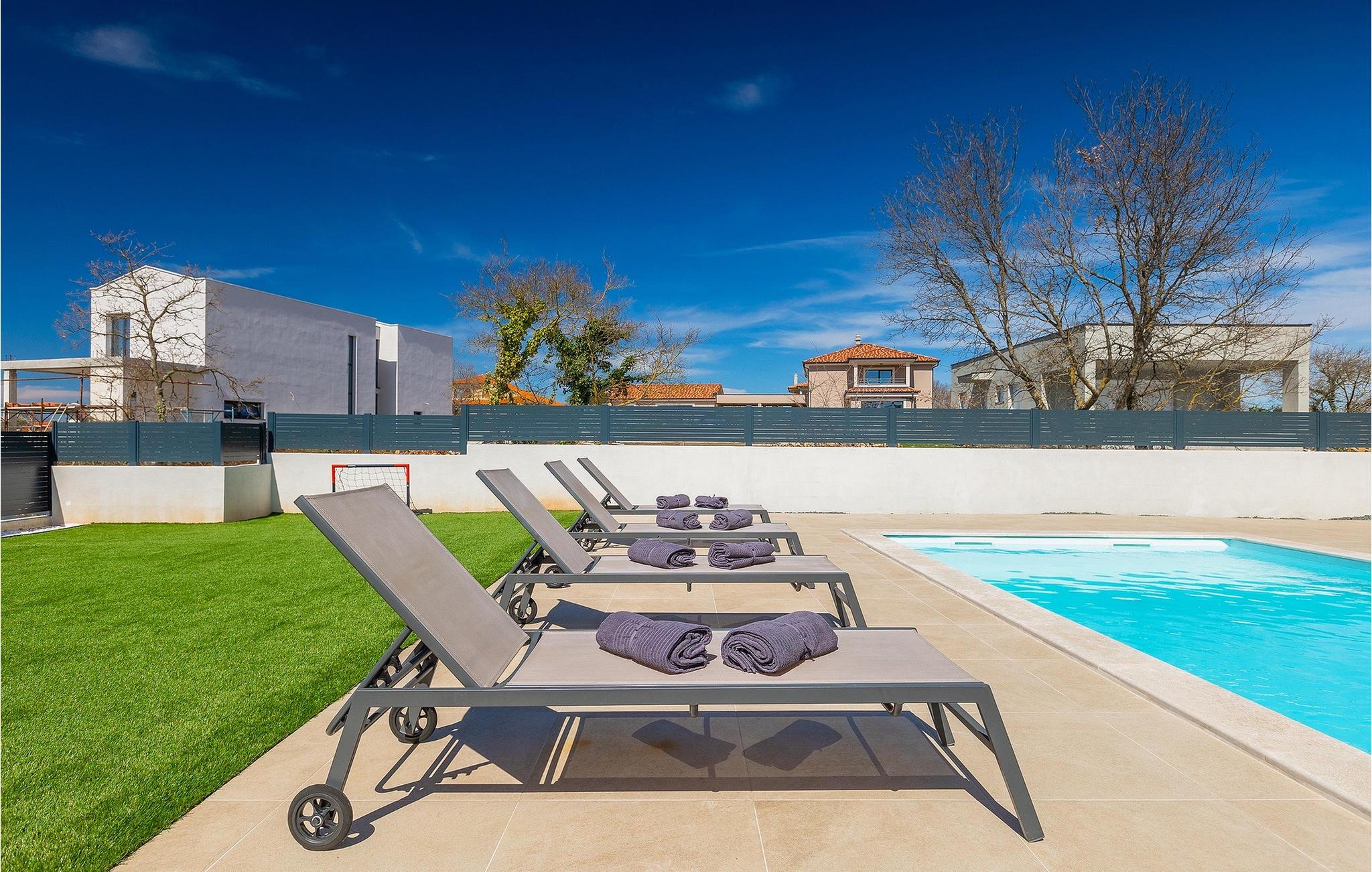 Det moderne designede interiør i Villa Elena Rovinj er perfekt udstyret med alt hvad du behøver for at føle dig helt komfortabel. Stueetagen byder dig velkommen med et opholdsområde med aircondition og en stor, komfortabel sofa - ideel til filmaftener sammen. Ved spisebordet i det fuldt udstyrede køkken kan frokosten bedre nydes væk fra sommervarmen. På samme niveau kan en del af familien tilbringe fredelige nætter i et af dobbeltværelserne med eget badeværelse. Yderligere 3 dobbeltværelser er på etagen ovenover. Igen har hvert af soveværelserne sit eget ensuite badeværelse med bruser. To af værelserne har direkte udgang til den overdækkede altan, hvor du i ro og mag kan nyde din første morgenkaffe, inden du begiver dig ud for at udforske området.