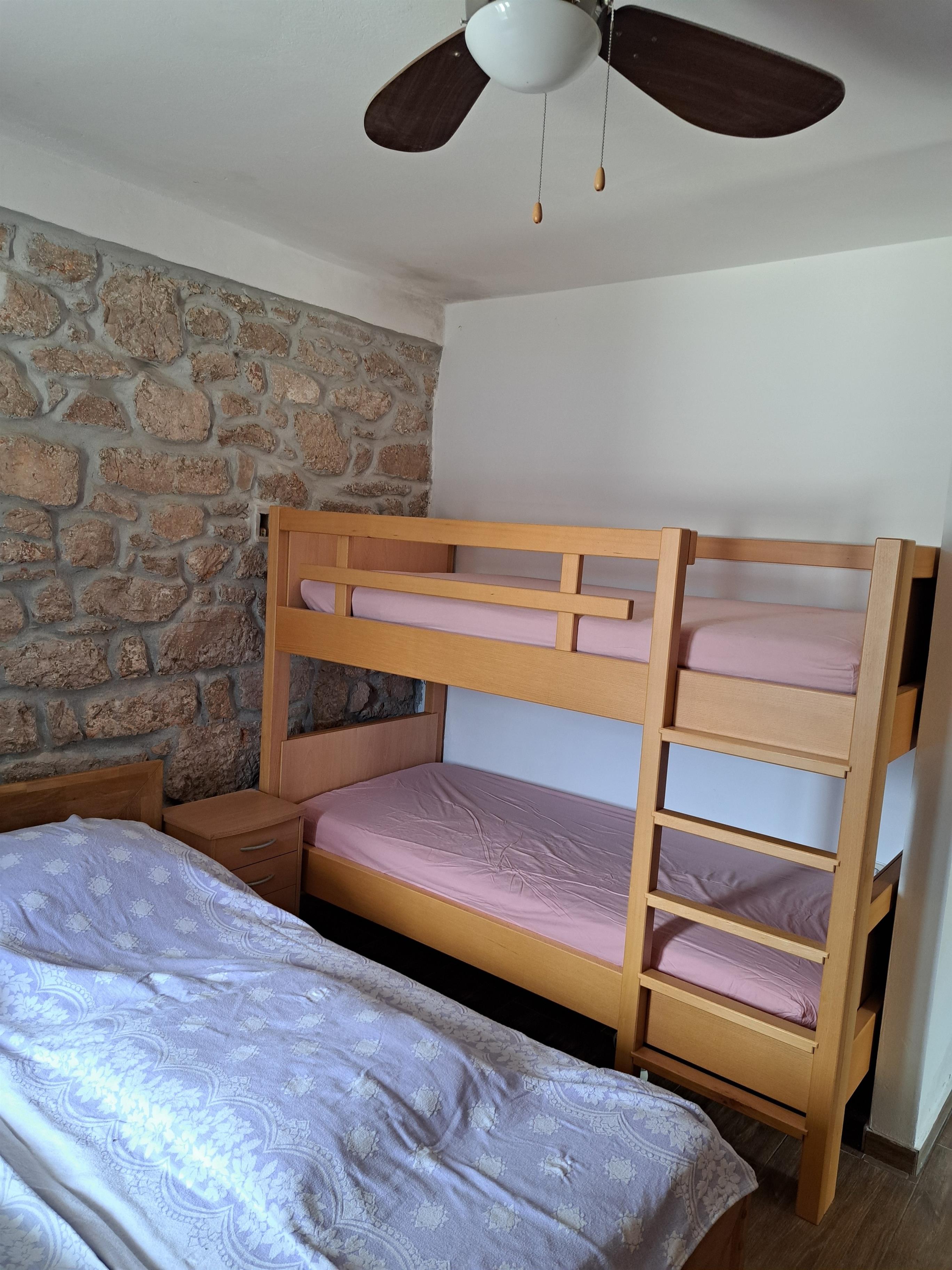 Schlafzimmer mit Doppelbett und Stockbett