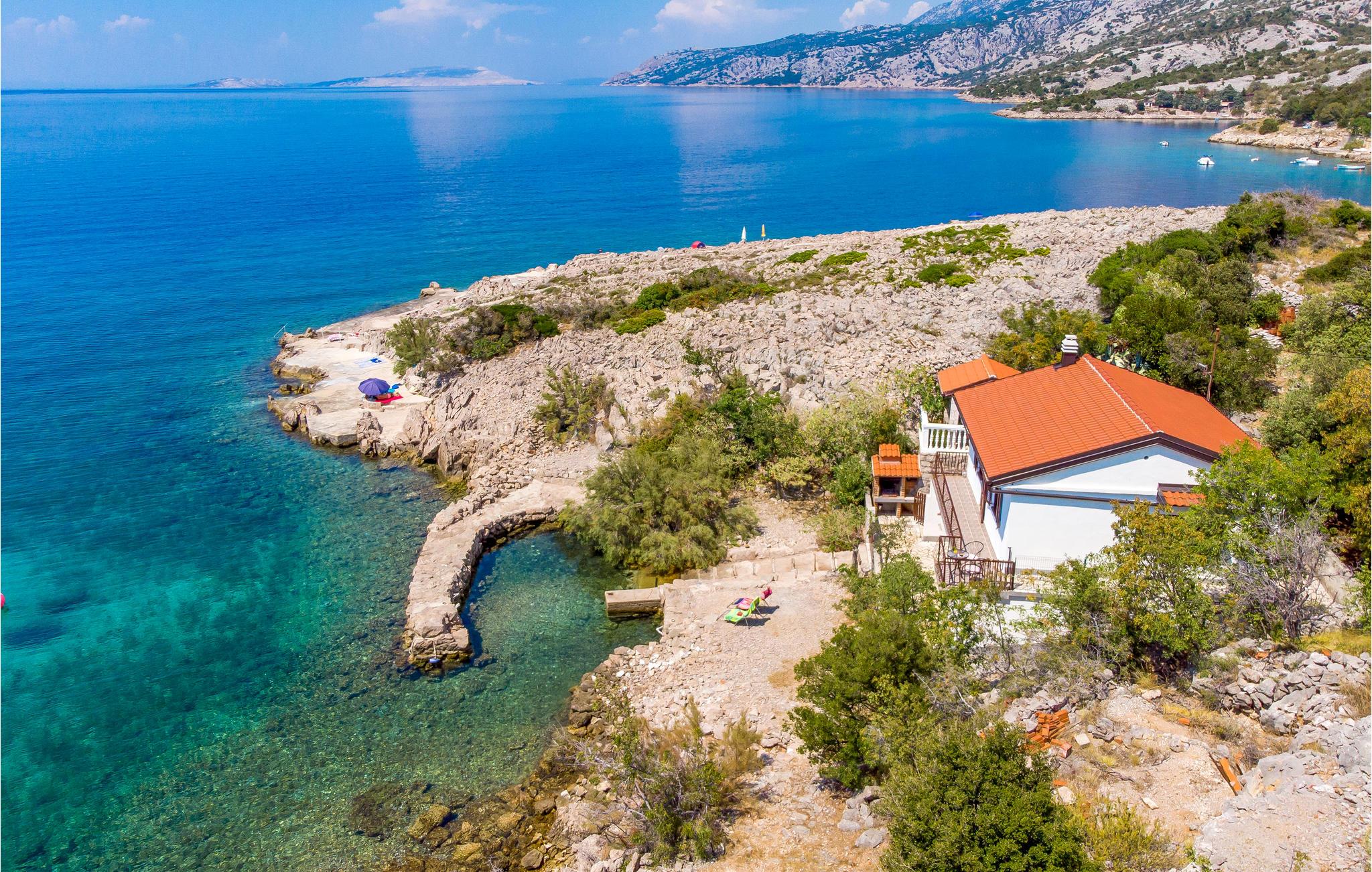 Husets beliggenhed er ideelt for jer, der foretrækker fred og ro i løbet af deres ferie, og som holder af at bade. Nyd morgenkaffen på husets altan, hvorfra I har en fantastisk udsigt over det smukke blå hav. Huset ligger lige ned til vandet, så I kan hoppe i det klare hav, lige når I vil.