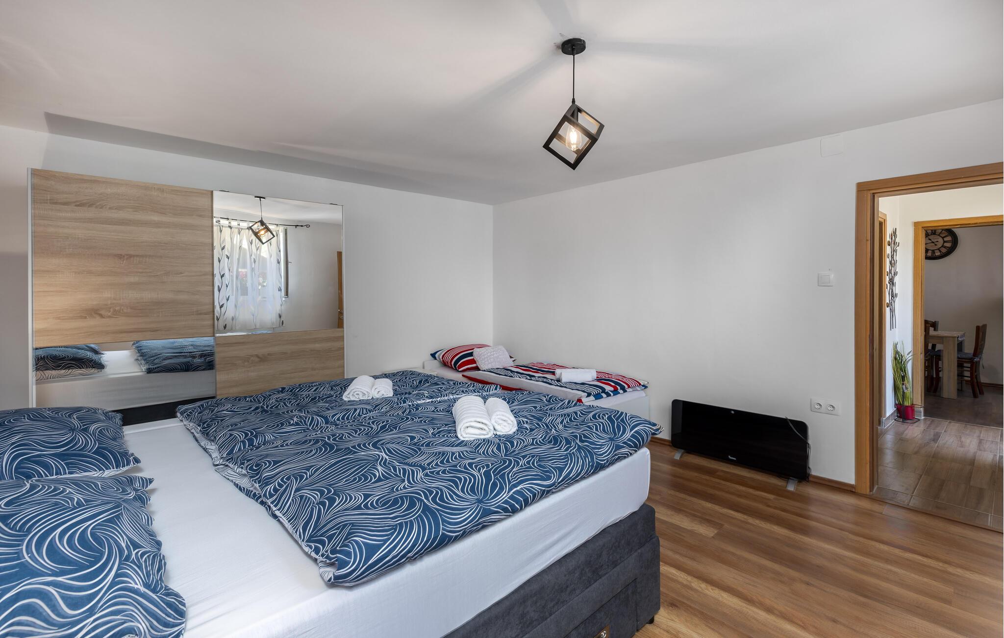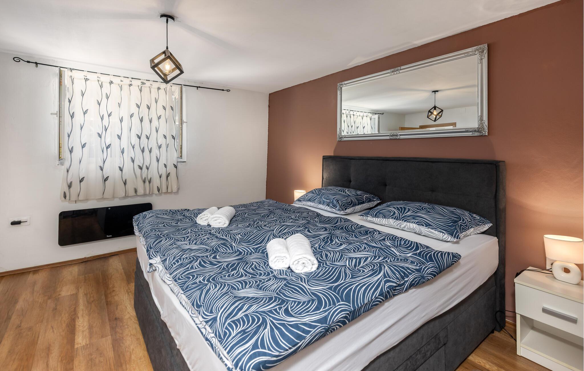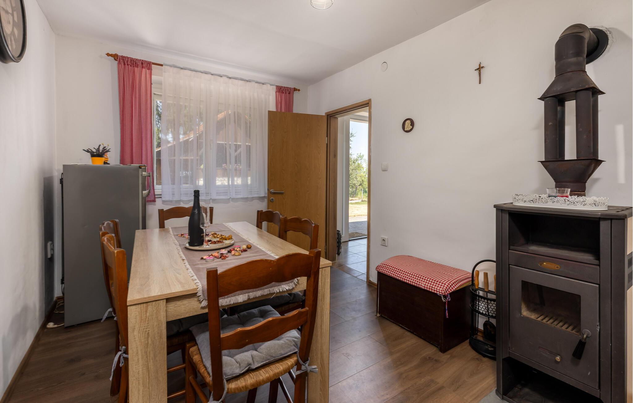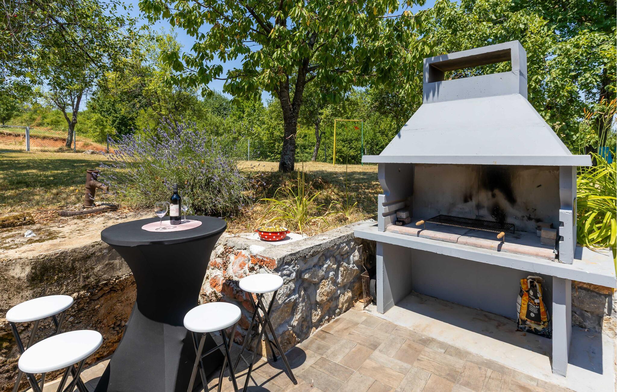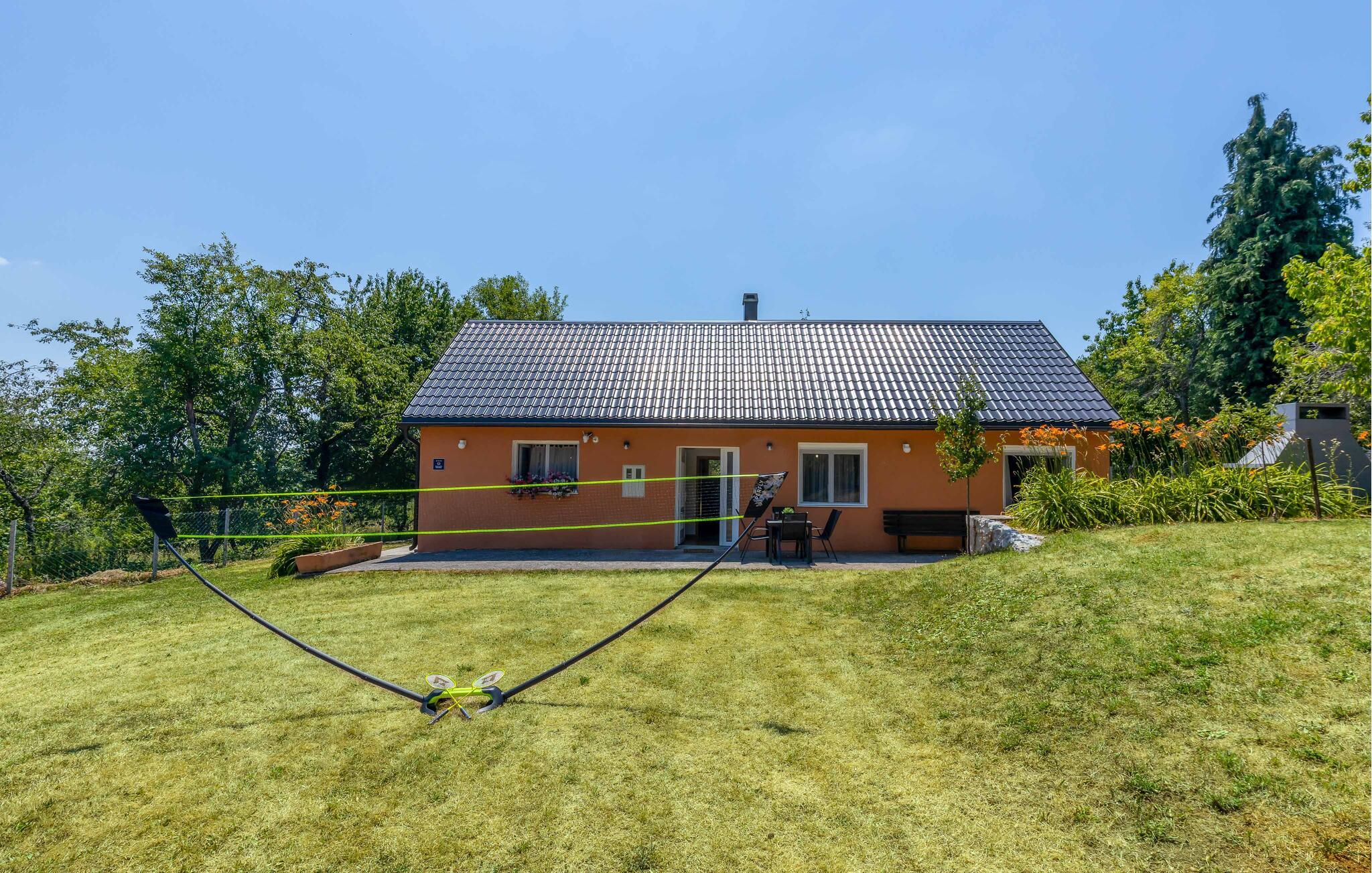 Nyd jeres ferie i dette idyllisk beliggende feriehus med spabad og en stor have. En rustik stemning og modernitet kombineres på en behagelig afslappende måde i dette feriehus. Natursten, træbjælker og diskrete farver skaber en atmosfære, hvor I kan slappe af og lade op. Fordyb jer i en god bog i den behagelige sofa, lyt til jeres yndlingspodcast, eller tilbered friske måltider i det moderne køkken. Start dagen på terrassen med en let morgenmad og en dejlig kop kaffe. Slap af i skyggen af træerne i den store have eller nyd et solbad. For at forfriske jer kan I blot hoppe i spabadet, som er placeret i et komfortabelt møbleret wellnessrum mellem vægge af natursten. Det grønne flodlandskab omkring Karlovac og Ozalj inviterer jer til at opdage naturen mellem bakker og vandløb, mens I ror i kano eller padler. Det middelalderlige Ozalj Slot fortæller historien om regionen og tilbyder en storslået udsigt over Kupa-dalen. Nyd autentisk kroatisk mad og regionale specialiteter i traditionelle taverner. Tag en dagstur til stranden og oplev Adriaterhavet med dets smukke bugter og krystalklare vand.