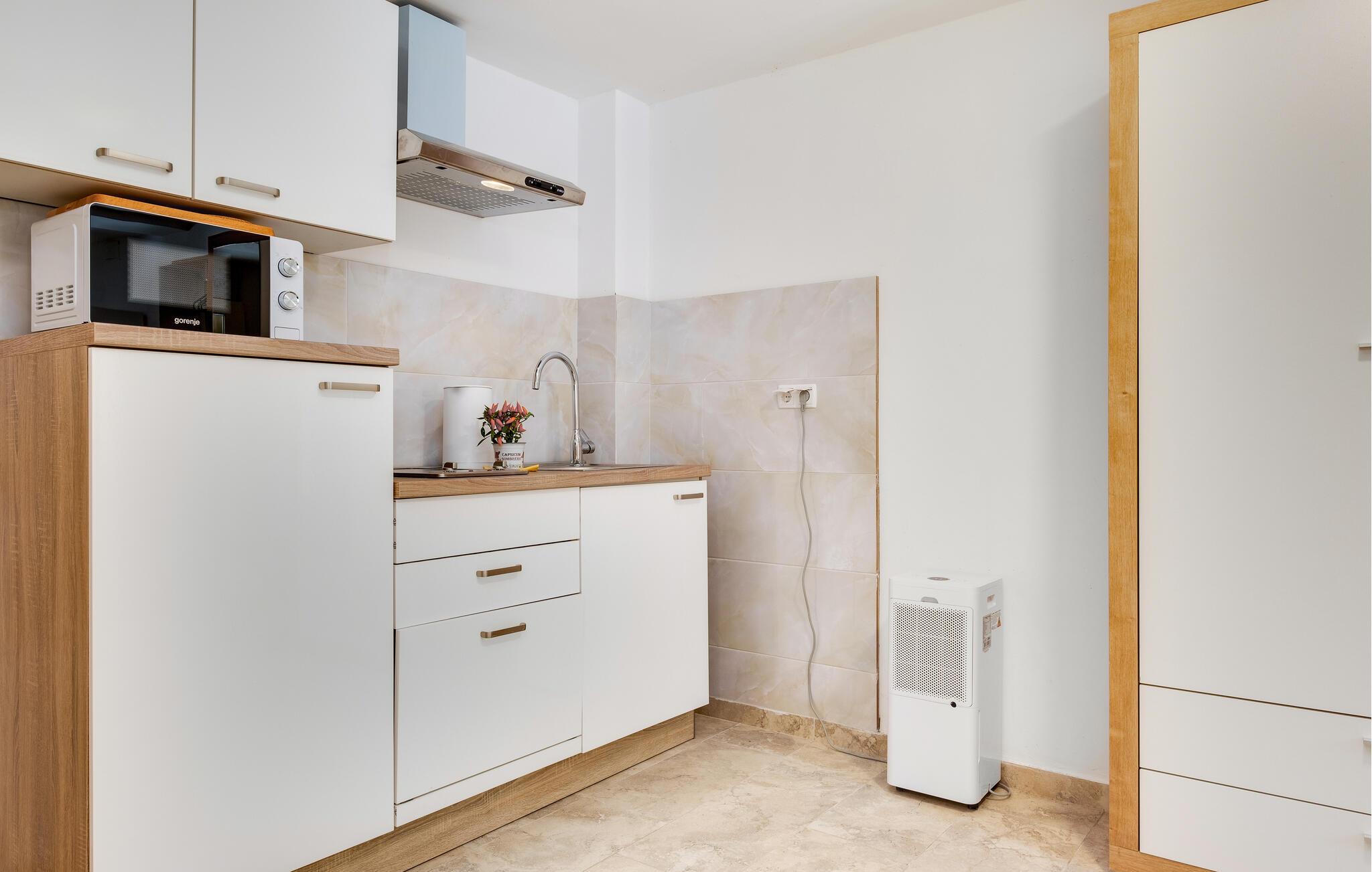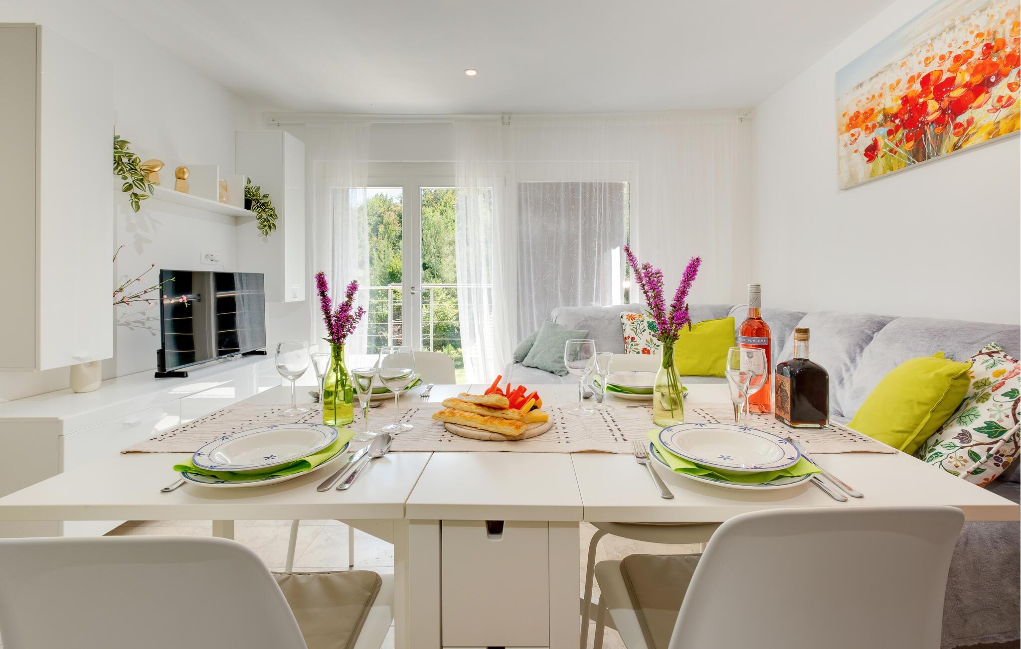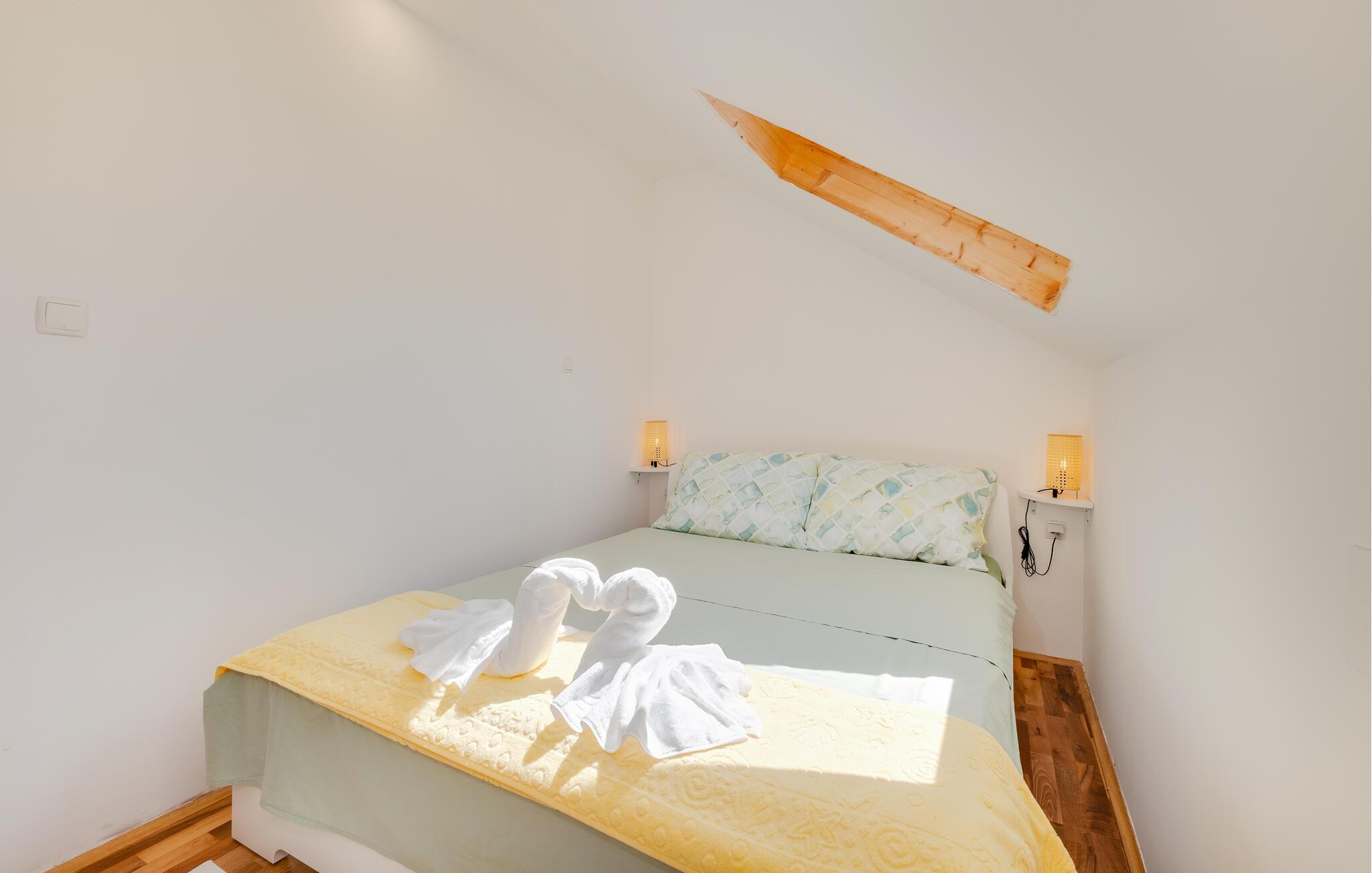Jeres feriehus i Koranski Brijeg ligger idyllisk på en lille bakke nær floden Korana. Huset består af to separate enheder. I stueetagen finder I en hyggelig lejlighed til to personer, mens der på første sal er en rummelig bolig med to soveværelser til fire personer. Nyd den fantastiske udsigt over det grønne landskab, de blide bakker og de omkringliggende skove. Lad jer inspirere af naturens ro og start dagen med en afslappet morgenmad på terrassen. Et hop i poolen giver en forfriskende afkøling og energi til dagen.