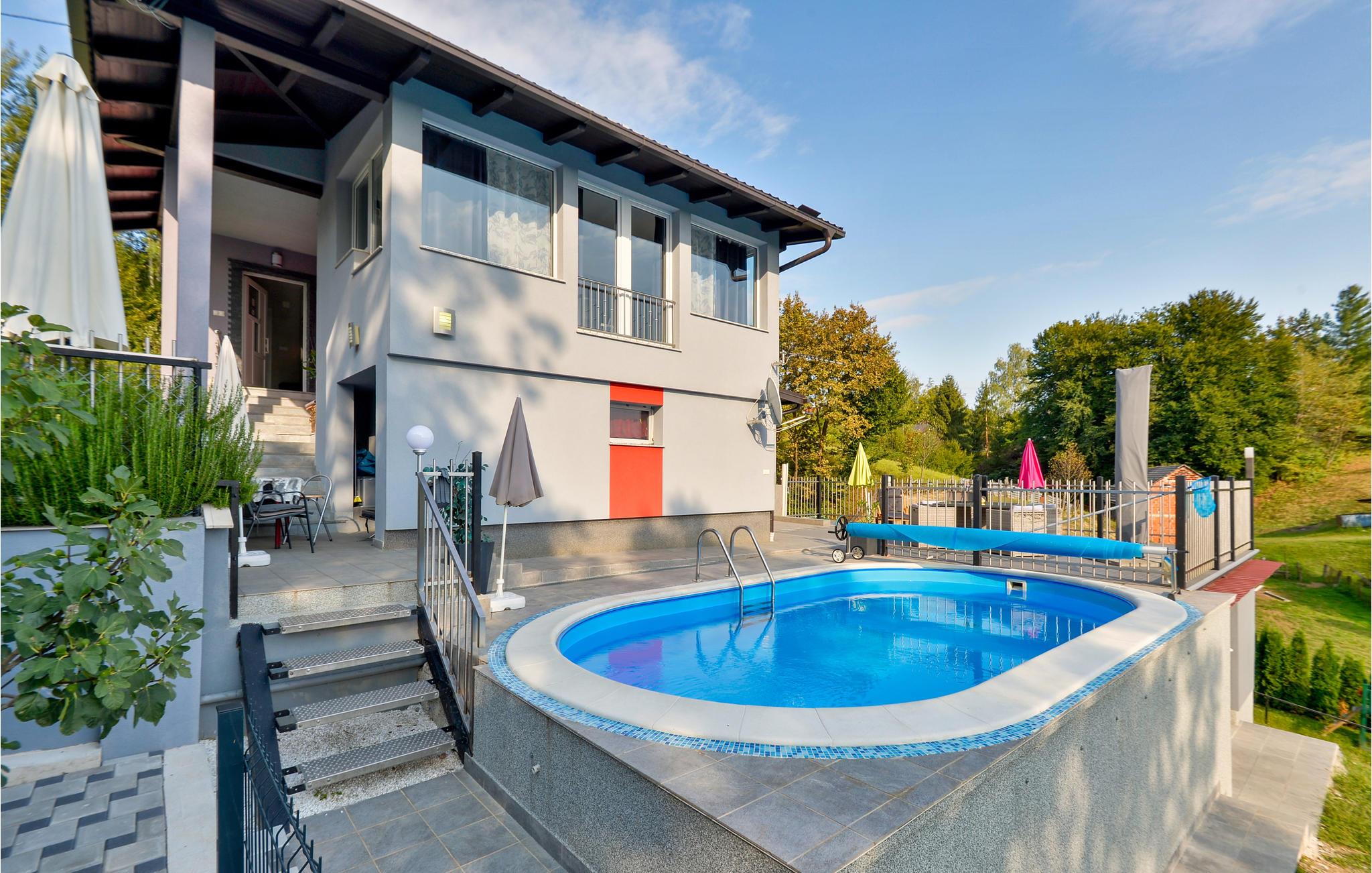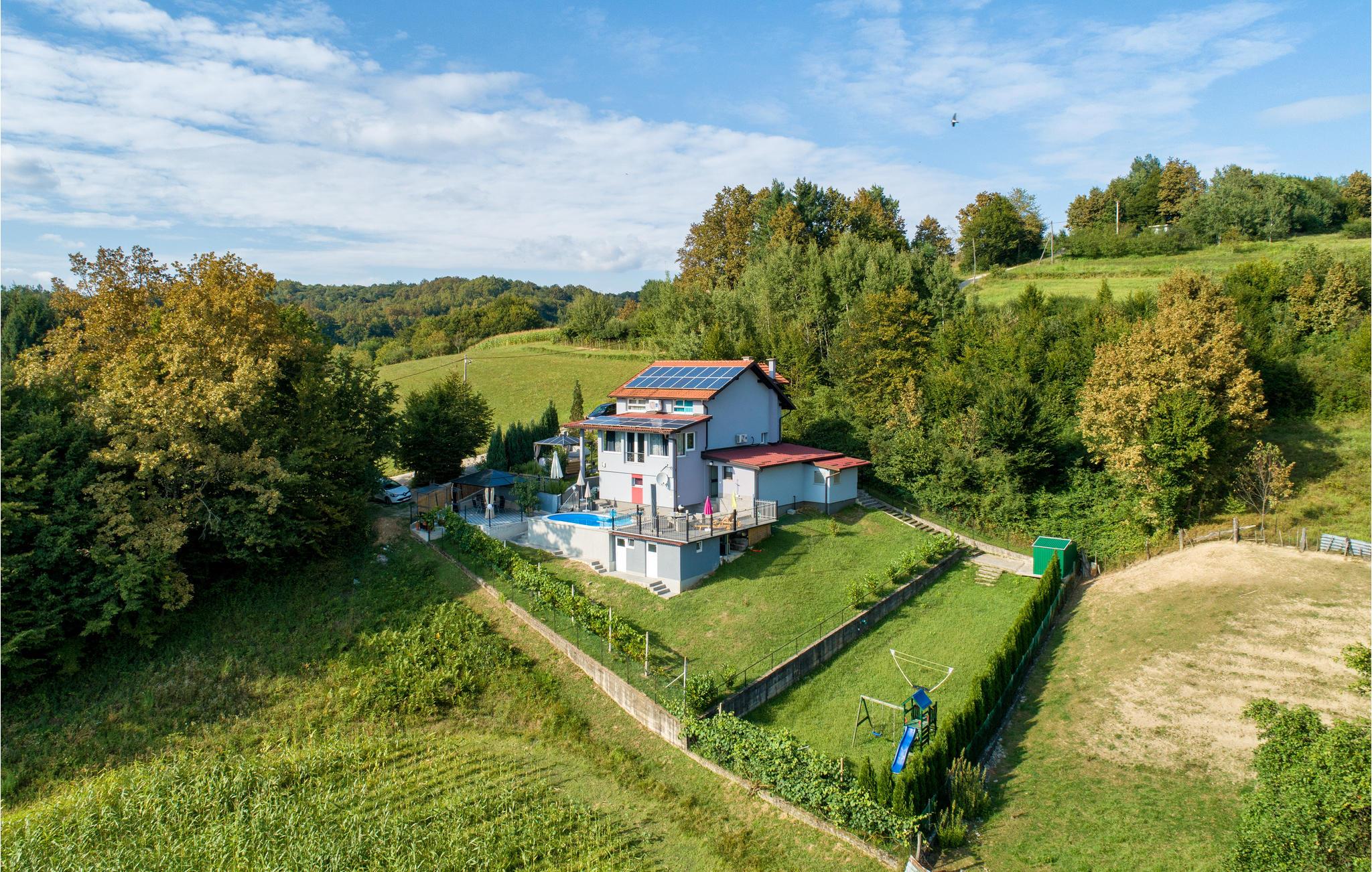 Ikke langt fra Karlovac, på en lille bakke omgivet af skøn natur, ligger dette indbydende feriehus. Til huset hører en privat opvarmet pool og ved siden af den er der en terrasse med grill. Der er også et aktivitetsrum med bordfodbold og dart, så I ikke behøver kede jer. Der er også en legeplads til de små, med mange former for legeredskaber. Foran huset kan i slappe af i en lille pavillon med whirlpool, fx med en god bog. Karlovac er byen kendt for sine fire floder, her kan I gå dejlige ture og nyde den skønne natur. Det kan også anbefales at besøge hovedstaden Zagreb, hvor der uanset årstid er noget at se og opleve.