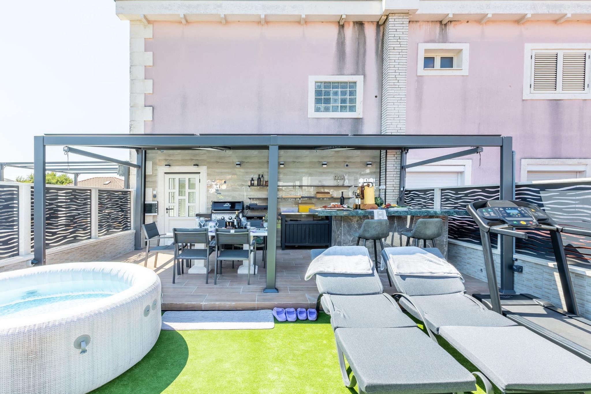 Apartment Merita, located in Kaštel Kambelovac, Split-Dalmatia County, Croatia, offers modern accommodations with amenities like free Wi-Fi, air conditioning, and parking. It provides a comfortable base for exploring the Dalmatian coast, with nearby activities including beach outings, historic site visits, and day trips to Split and Trogir. Ideal for families and couples, it ensures a relaxing and convenient stay. Note: Private parking is available, and reservation is required. Baggage drop-off is available before check-in. Wi-Fi is available throughout the property. Pets are not allowed. Baby cot is available on request. This studio villa can accommodate up to five guests. It features SAT/ internet-enabled TV and is combined with a seating area, sofa, safety deposit box, and kitchen. The private bathroom is equipped with a shower and toilet. Thanks to its excellent location, everything you'll need for your vacation is just a short walk away from the property. Grocery stores, cafes, restaurants—everything is within a 100 m radius. The airport is 11 km away from the property.