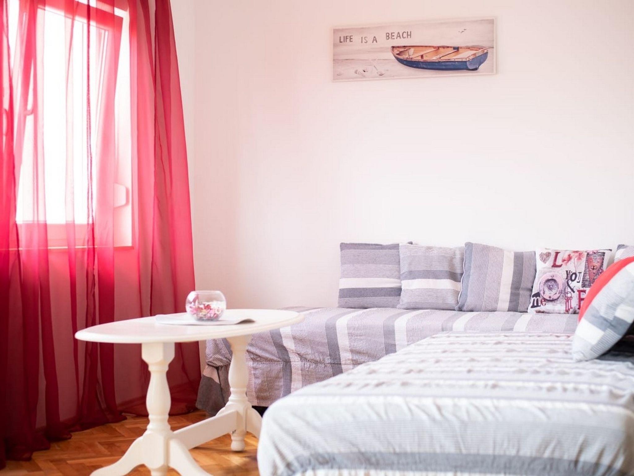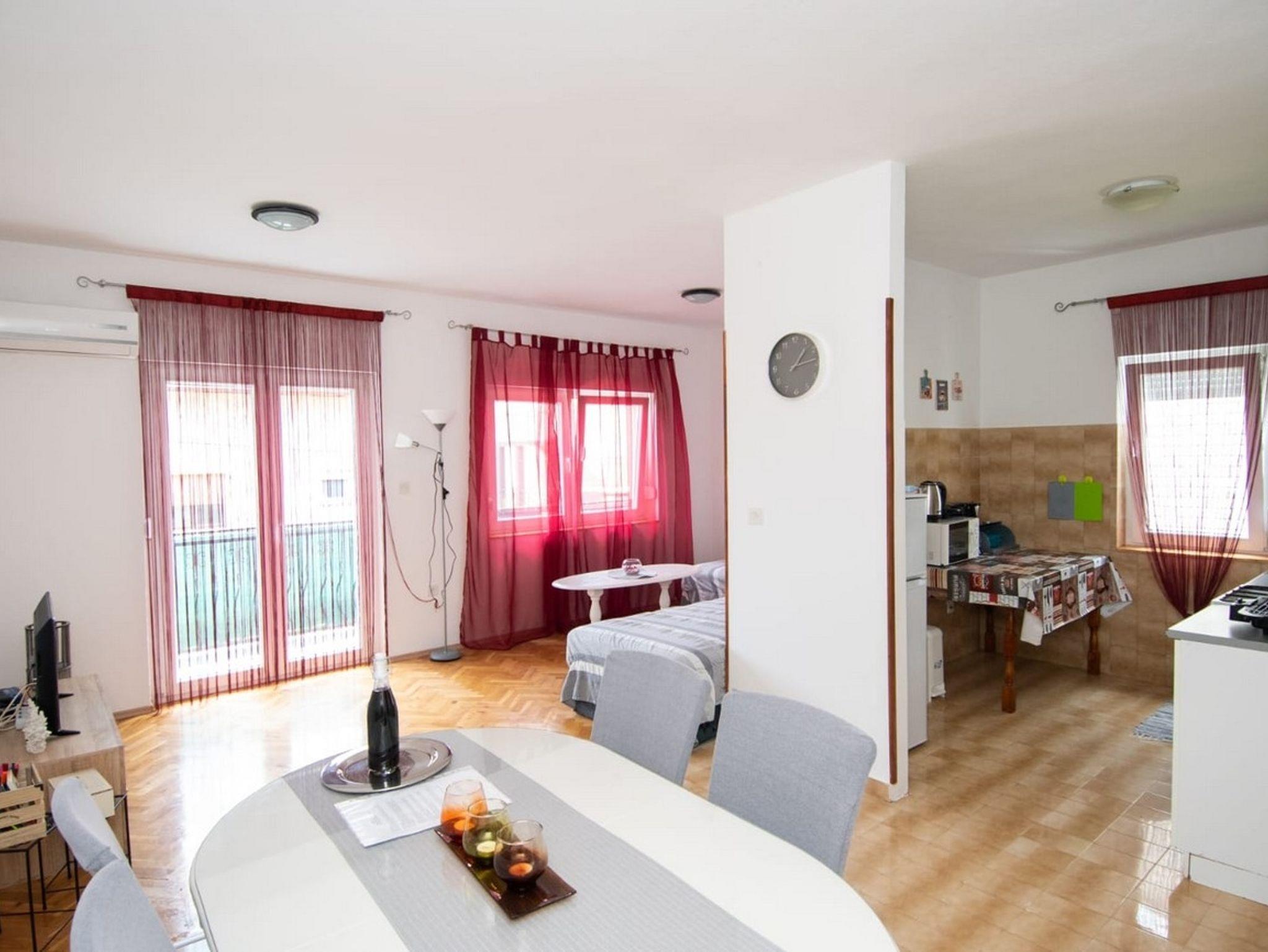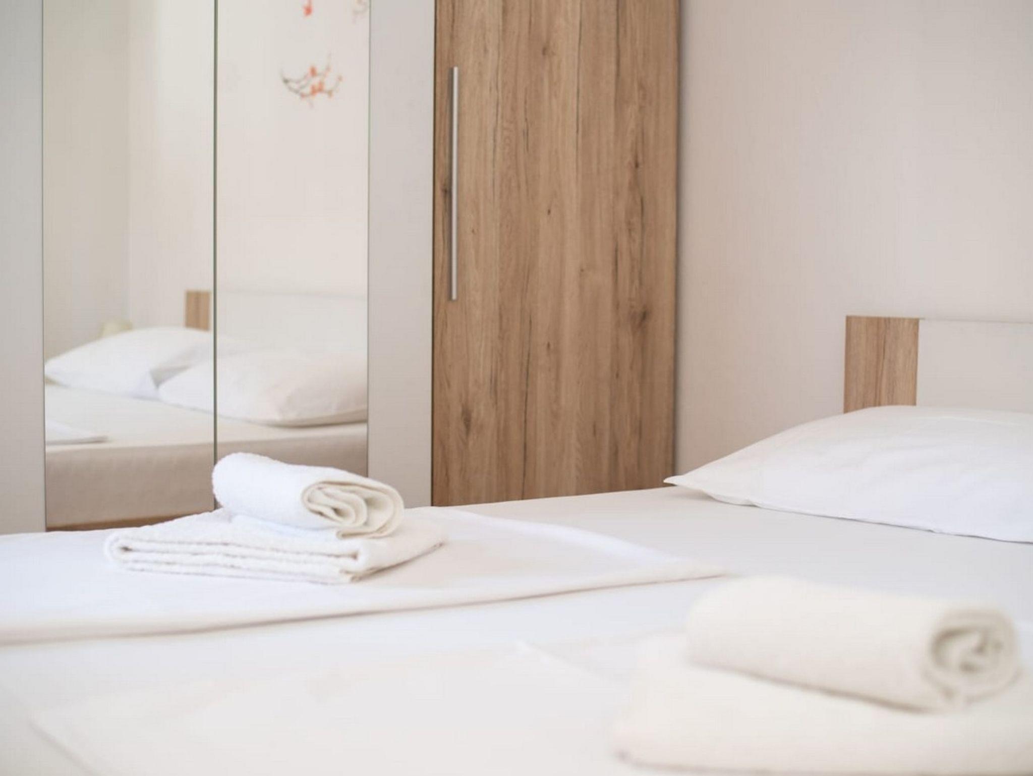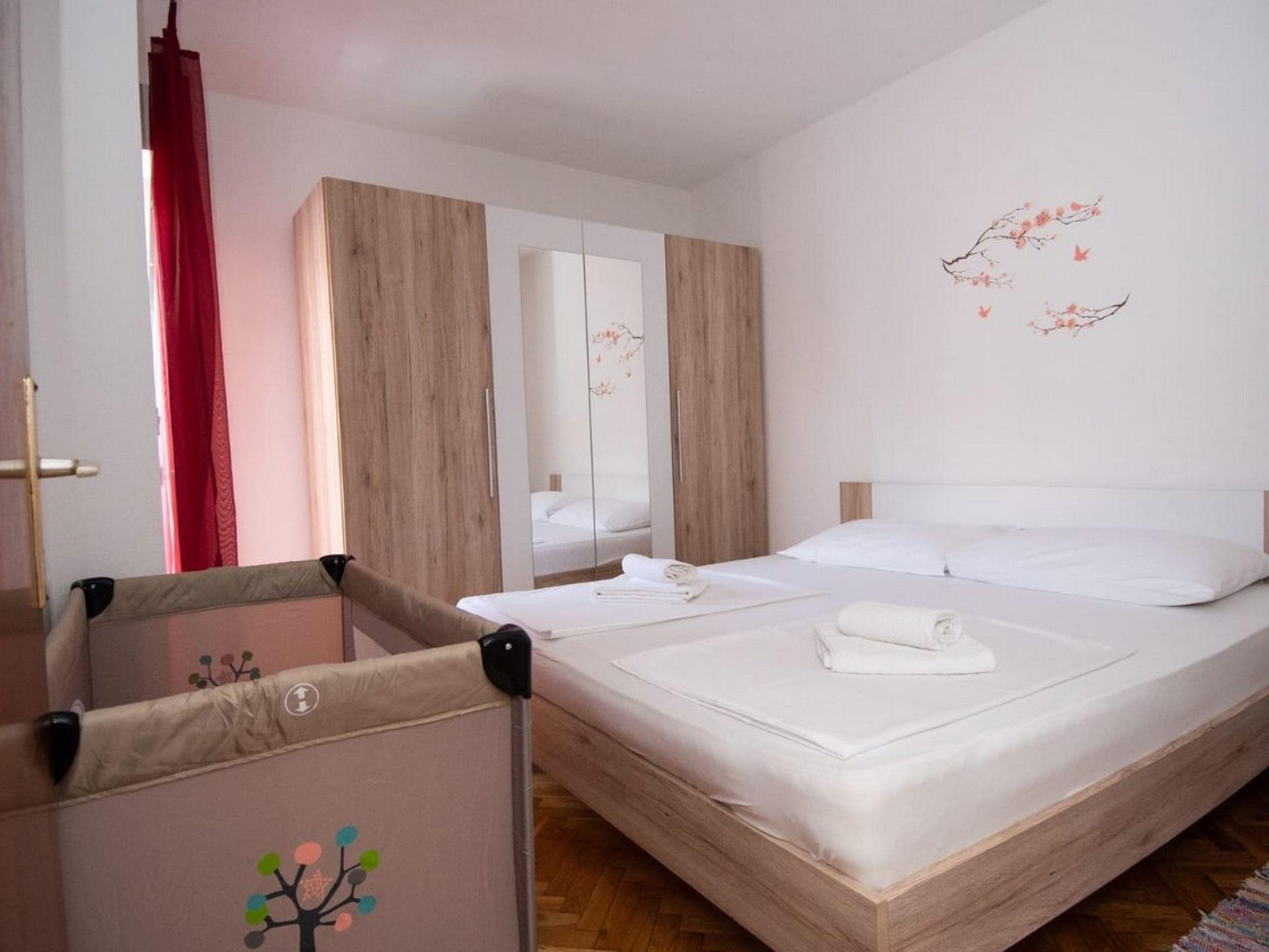 Ferienwohnung bietet Platz für 6 Gäste. Die Betten sind in Schlafzimmern, die es 2 gibt, und in Wohnzimmer, innerhalb einer Gesamtfläche von 60m2, angeordnet. Die Gäste haben einen eigenen Balkon zur Verfügung, auf der sie in warmen Sommernächten genießen können. Es ist erlaubt, Speisen auf dem Gemeinschafts-Grill vorzubereiten. IM PREIS INBEGRIFFEN: Kurtaxe, Endreinigung, Klimatisierung, Parkplatz, Internet, Kinderbett, Bügeleisen, Bügelbrett, Föhn. VERBINDLICHE ZUSÄTZLICHE KOSTEN: Aufzahlung für Kurzaufenthalte (prozentualer Zuschlag pro Nächtigungsanzahl: 30% - 1, 20% - 2, 10% - 3). Die Verfügbarkeit zusätzlicher Dienstleistungen in Ihrem reservierten Termin und die Preise derselben (falls nicht aufgeführt) müssen im Voraus überprüft werden. Zusätzliche Dienstleistungen die in der Zahlungsaufforderung nicht aufgeführt sind werden direkt beim Vermieter bezahlt, angenommen der Gast nutzt auch diese.