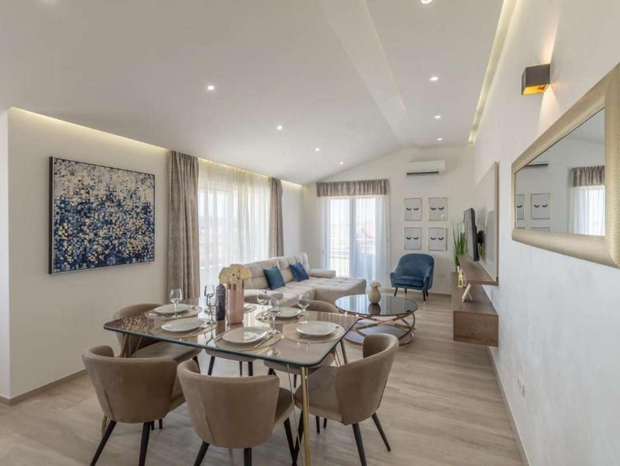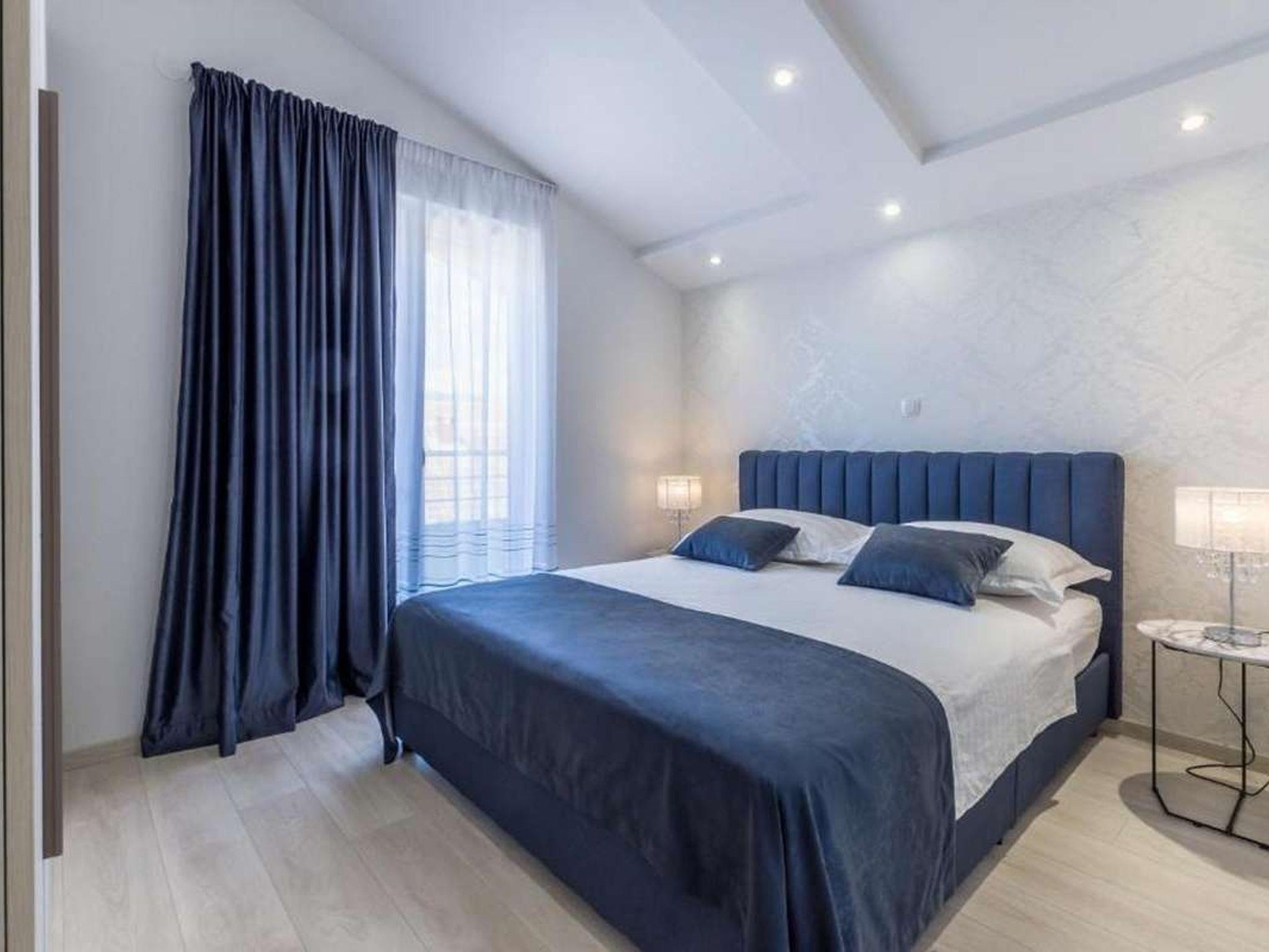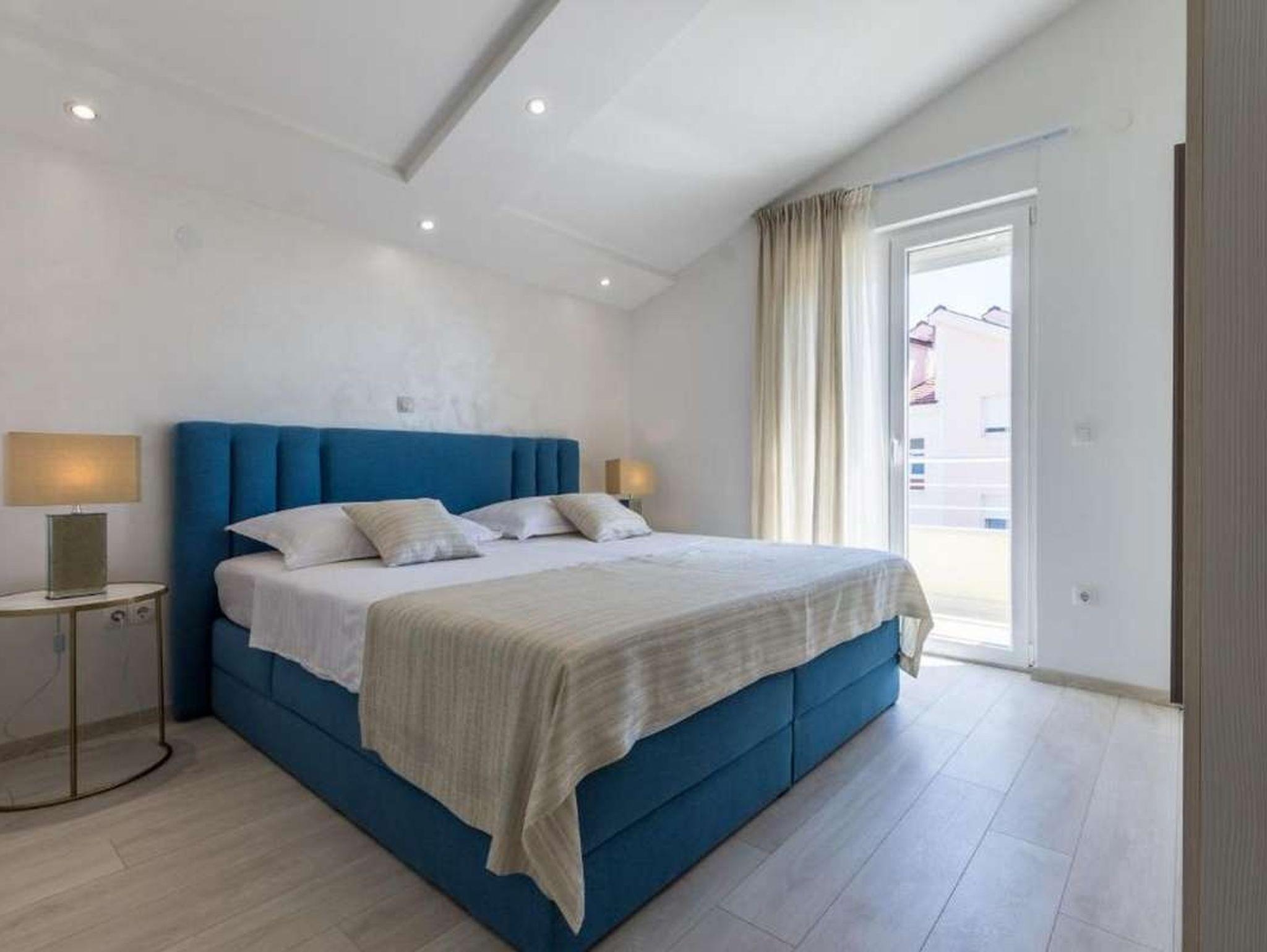 Ferienwohnung bietet Platz für 6 Gäste. Die Betten sind in Schlafzimmern, die es 2 gibt, und in Wohnzimmer, innerhalb einer Gesamtfläche von 85m2, angeordnet. Die Gäste haben einen eigenen Balkon zur Verfügung, auf der sie in warmen Sommernächten genießen können. Das Apartment bietet Meerblick. IM PREIS INBEGRIFFEN: Kurtaxe, Endreinigung, Klimatisierung, Parkplatz, Internet, Bügeleisen, Bügelbrett, Föhn. VERBINDLICHE ZUSÄTZLICHE KOSTEN: Aufzahlung für Kurzaufenthalte (prozentualer Zuschlag pro Nächtigungsanzahl: 30% - 1, 20% - 2, 10% - 3). Die Verfügbarkeit zusätzlicher Dienstleistungen in Ihrem reservierten Termin und die Preise derselben (falls nicht aufgeführt) müssen im Voraus überprüft werden. Zusätzliche Dienstleistungen die in der Zahlungsaufforderung nicht aufgeführt sind werden direkt beim Vermieter bezahlt, angenommen der Gast nutzt auch diese. Ermäßigung auf den Grundpreis: Gratistag 14=13 (bei einem Aufenthalt von 14 Tagen oder mehr erhalten Sie einen Gratistag für den Aufenthalt bis 31.12.26).