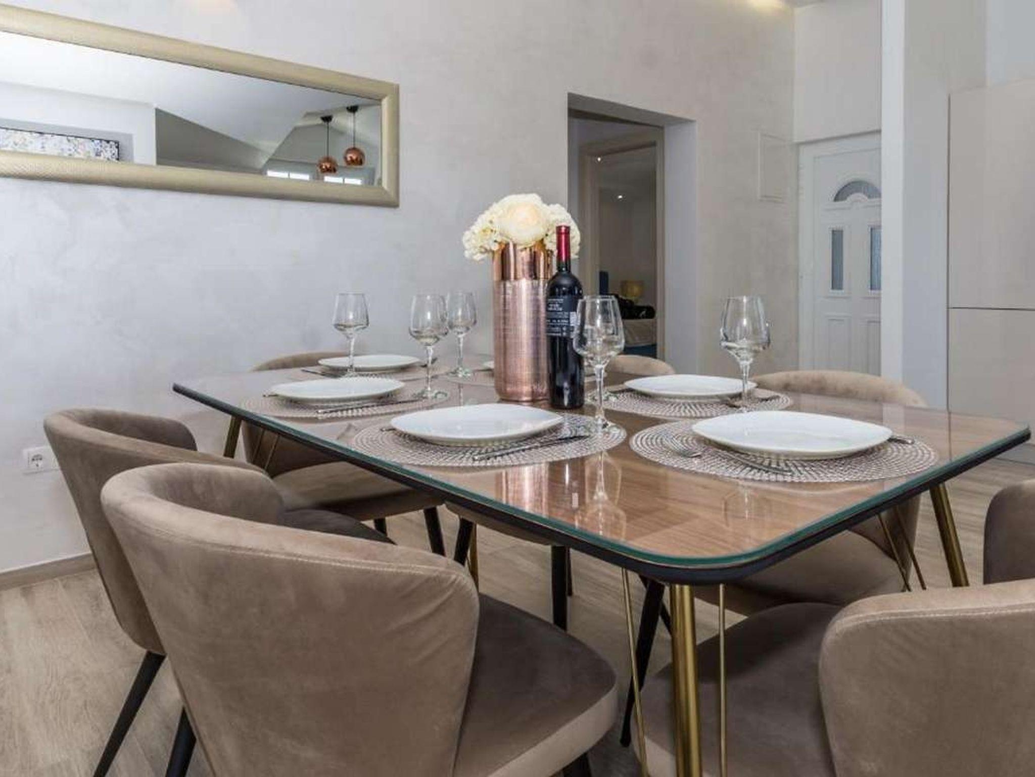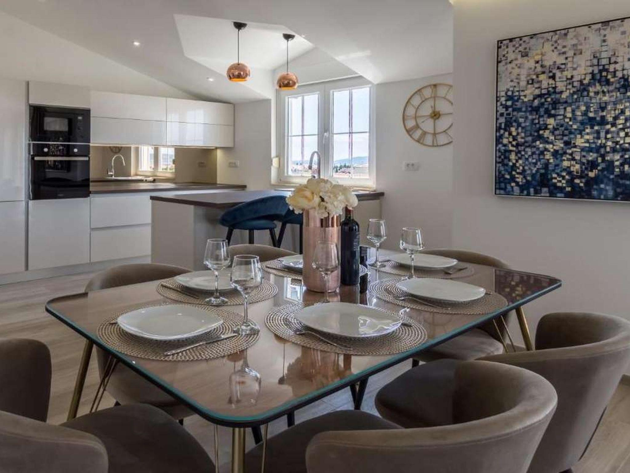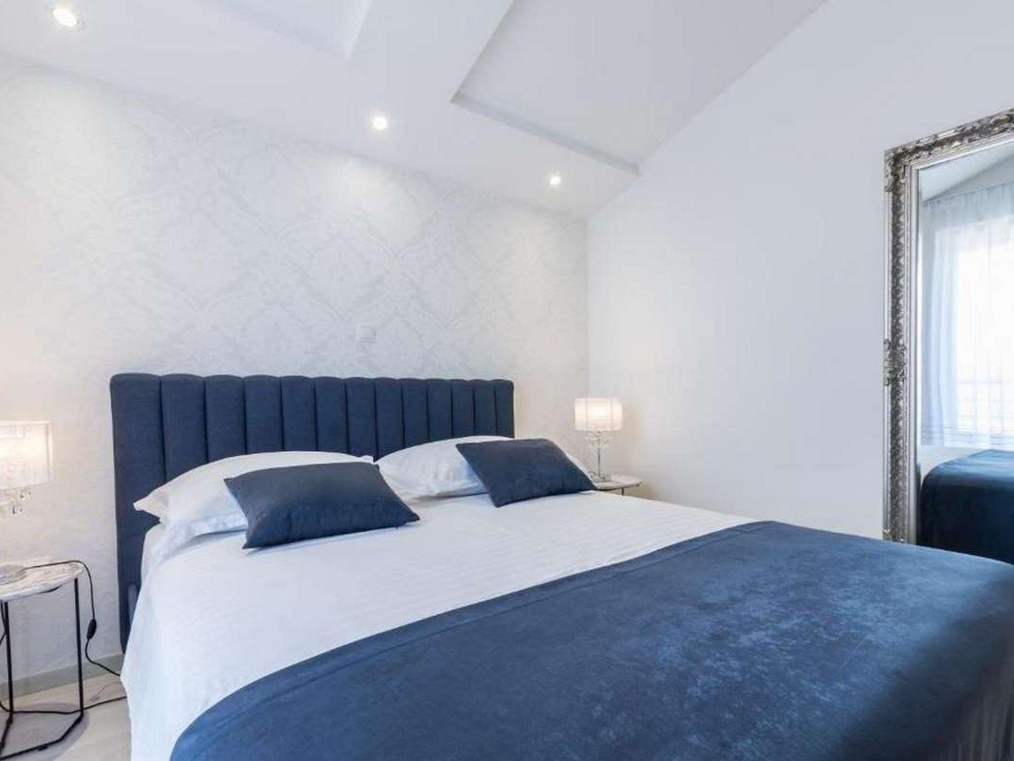 Ferienwohnung bietet Platz für 6 Gäste. Die Betten sind in Schlafzimmern, die es 2 gibt, und in Wohnzimmer, innerhalb einer Gesamtfläche von 85m2, angeordnet. Die Gäste haben einen eigenen Balkon zur Verfügung, auf der sie in warmen Sommernächten genießen können. Das Apartment bietet Meerblick. IM PREIS INBEGRIFFEN: Kurtaxe, Endreinigung, Klimatisierung, Parkplatz, Internet, Bügeleisen, Bügelbrett, Föhn. VERBINDLICHE ZUSÄTZLICHE KOSTEN: Aufzahlung für Kurzaufenthalte (prozentualer Zuschlag pro Nächtigungsanzahl: 30% - 1, 20% - 2, 10% - 3). Die Verfügbarkeit zusätzlicher Dienstleistungen in Ihrem reservierten Termin und die Preise derselben (falls nicht aufgeführt) müssen im Voraus überprüft werden. Zusätzliche Dienstleistungen die in der Zahlungsaufforderung nicht aufgeführt sind werden direkt beim Vermieter bezahlt, angenommen der Gast nutzt auch diese. Ermäßigung auf den Grundpreis: Gratistag 14=13 (bei einem Aufenthalt von 14 Tagen oder mehr erhalten Sie einen Gratistag für den Aufenthalt bis 31.12.26).