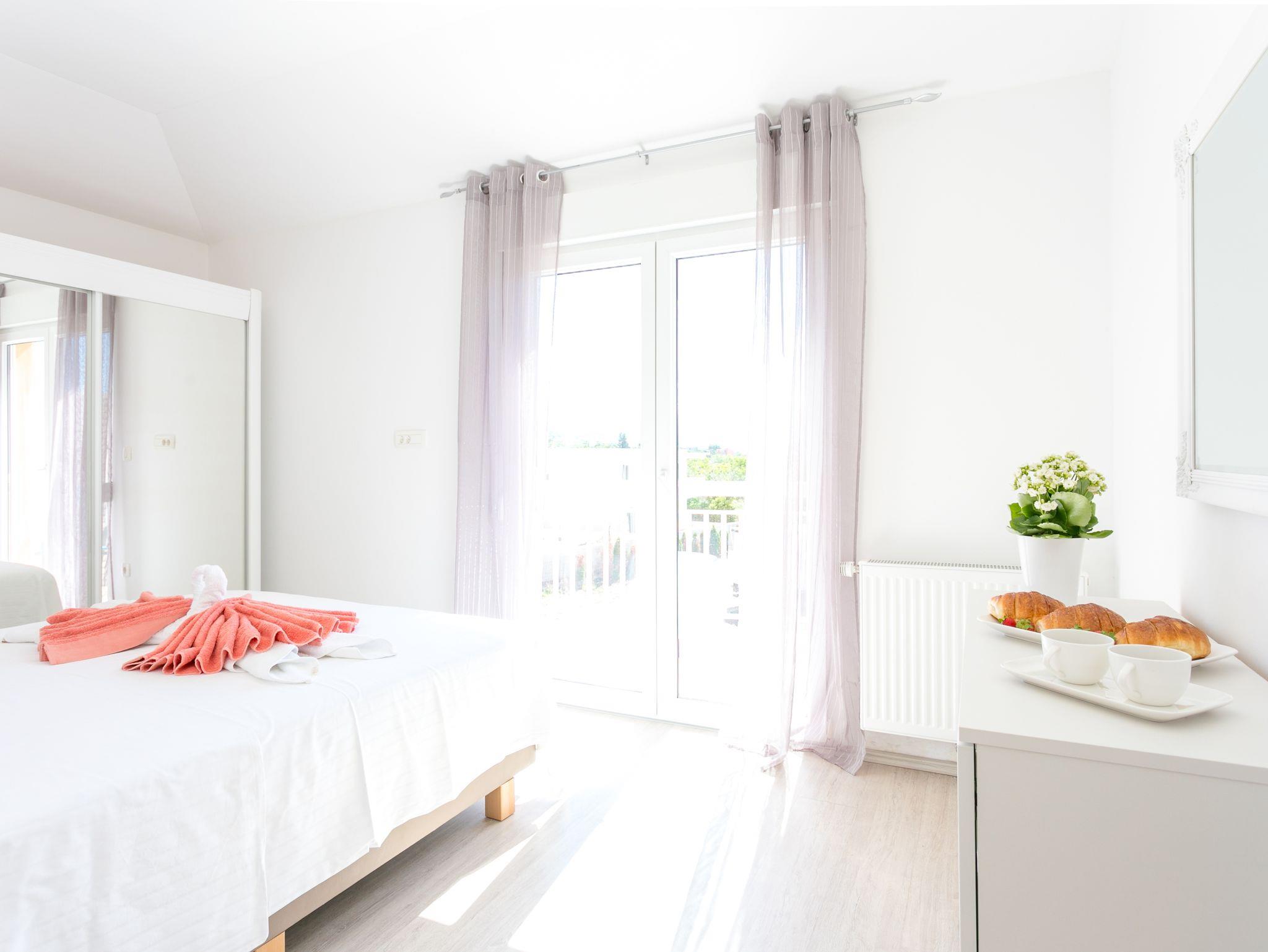 Ferienwohnung bietet Platz für 6 Gäste. Die Betten sind in Schlafzimmern, die es 2 gibt, und in Wohnzimmer, innerhalb einer Gesamtfläche von 66m2, angeordnet. Die Gäste haben eine eigene Terrasse zur Verfügung, auf der sie in warmen Sommernächten genießen können. Das Apartment bietet Meerblick. Es ist erlaubt, Speisen auf dem Gemeinschafts-Grill vorzubereiten. Während ihres Aufenthalts können Gäste das gemeinsam zur Nutzung stehende Schwimmbad benutzen. IM PREIS INBEGRIFFEN: Kurtaxe, Endreinigung, Klimatisierung, Pool, Parkplatz, Internet, Kinderbett, Bügeleisen, Bügelbrett, Föhn. Die Verfügbarkeit zusätzlicher Dienstleistungen in Ihrem reservierten Termin und die Preise derselben (falls nicht aufgeführt) müssen im Voraus überprüft werden. Zusätzliche Dienstleistungen die in der Zahlungsaufforderung nicht aufgeführt sind werden direkt beim Vermieter bezahlt, angenommen der Gast nutzt auch diese.