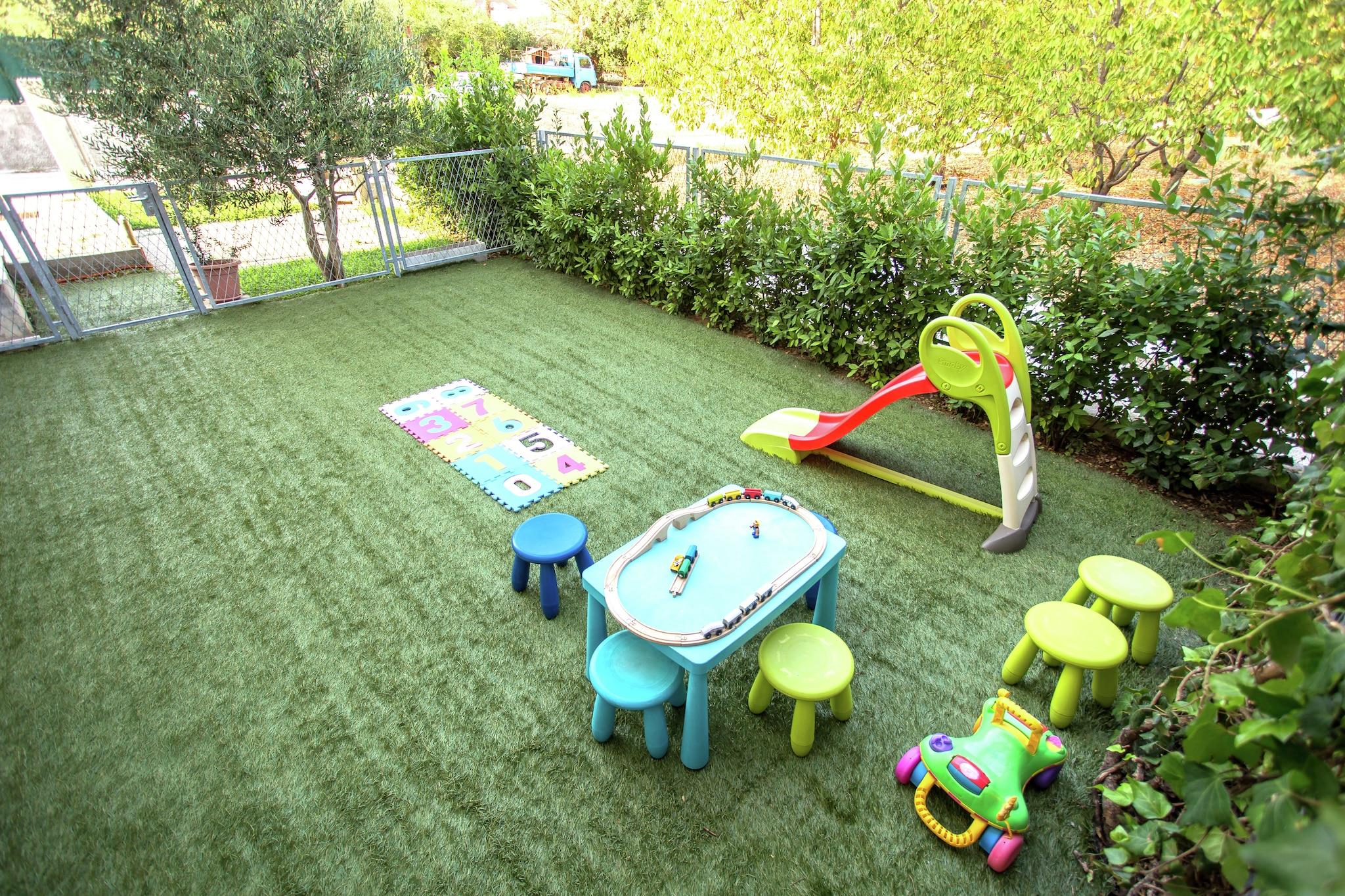 Denne charmerende villa ligger mellem to Unesco-beskyttede byer Split og Trogir. Beliggende i den lille by Kastel Stafilic, mindre end 100 meter fra havet, tilbyder det moderne indkvartering til op til 11 personer. Dit sommerhus består af to etager forbundet med hinanden ved indvendige trapper. 4 soveværelser, 2 badeværelser og 2 små køkkener ligger på øverste etage, mens stueetagen består af en rummelig stue / spisestue, et fuldt udstyret køkken, et badeværelse, et soveværelse og det har direkte adgang til den hyggelige overdækkede terrasse . Der er en stor indhegnet have foran huset, der har grillplads, legeplads og en stor swimmingpool. Cykler er gratis tilgængelige, og der er parkeringspladser til gæsterne. Med en kort gåafstand kan du finde restauranter, cafeer og en købmand.Det er også praktisk at den nærmeste strand ligger lige ned ad gaden.Denne villa kan være et perfekt udgangspunkt for at udforske resten af Split riviera som Split International lufthavn er kun 4 km væk, og der er direkte adgang til motorvejen.