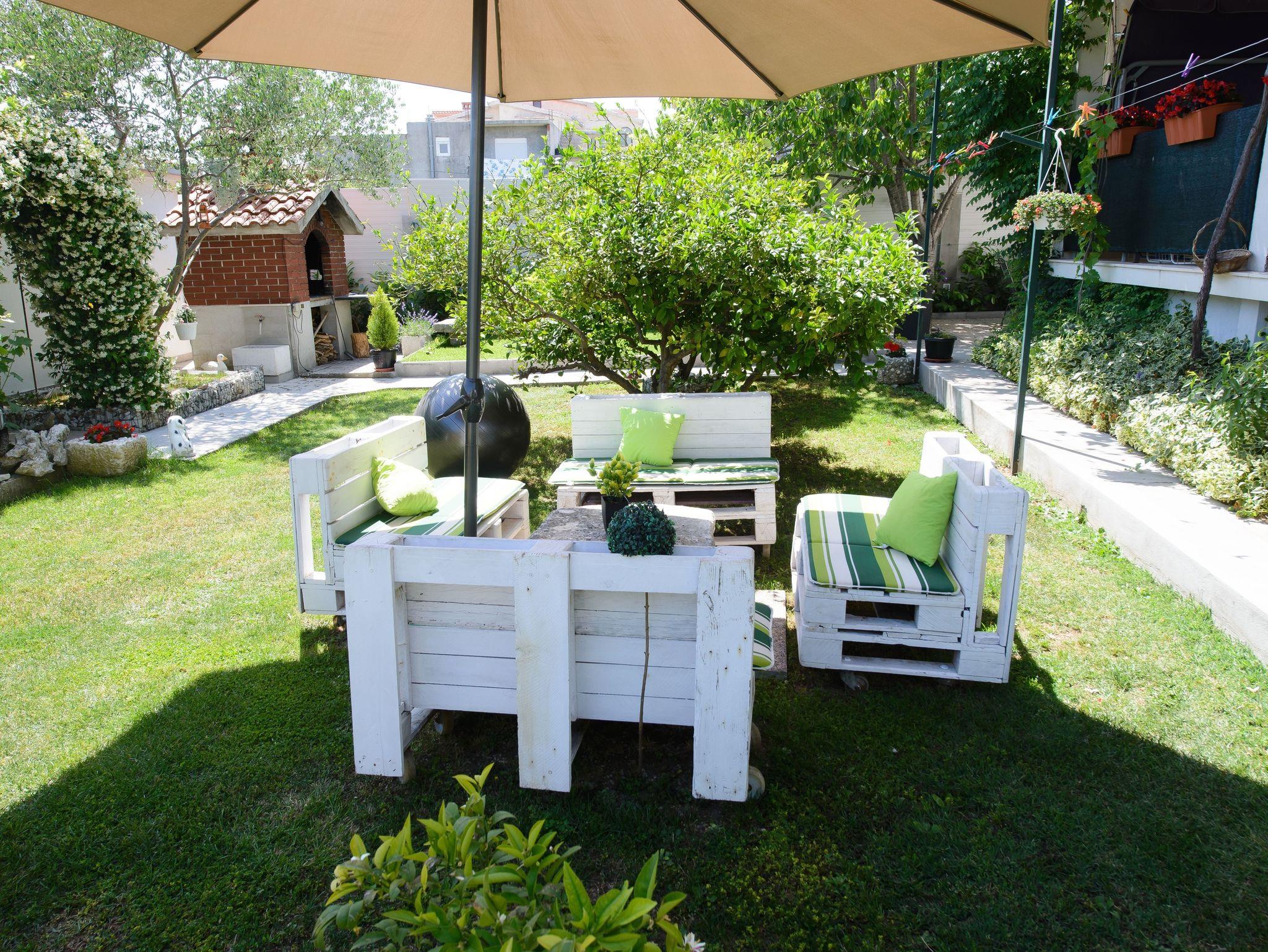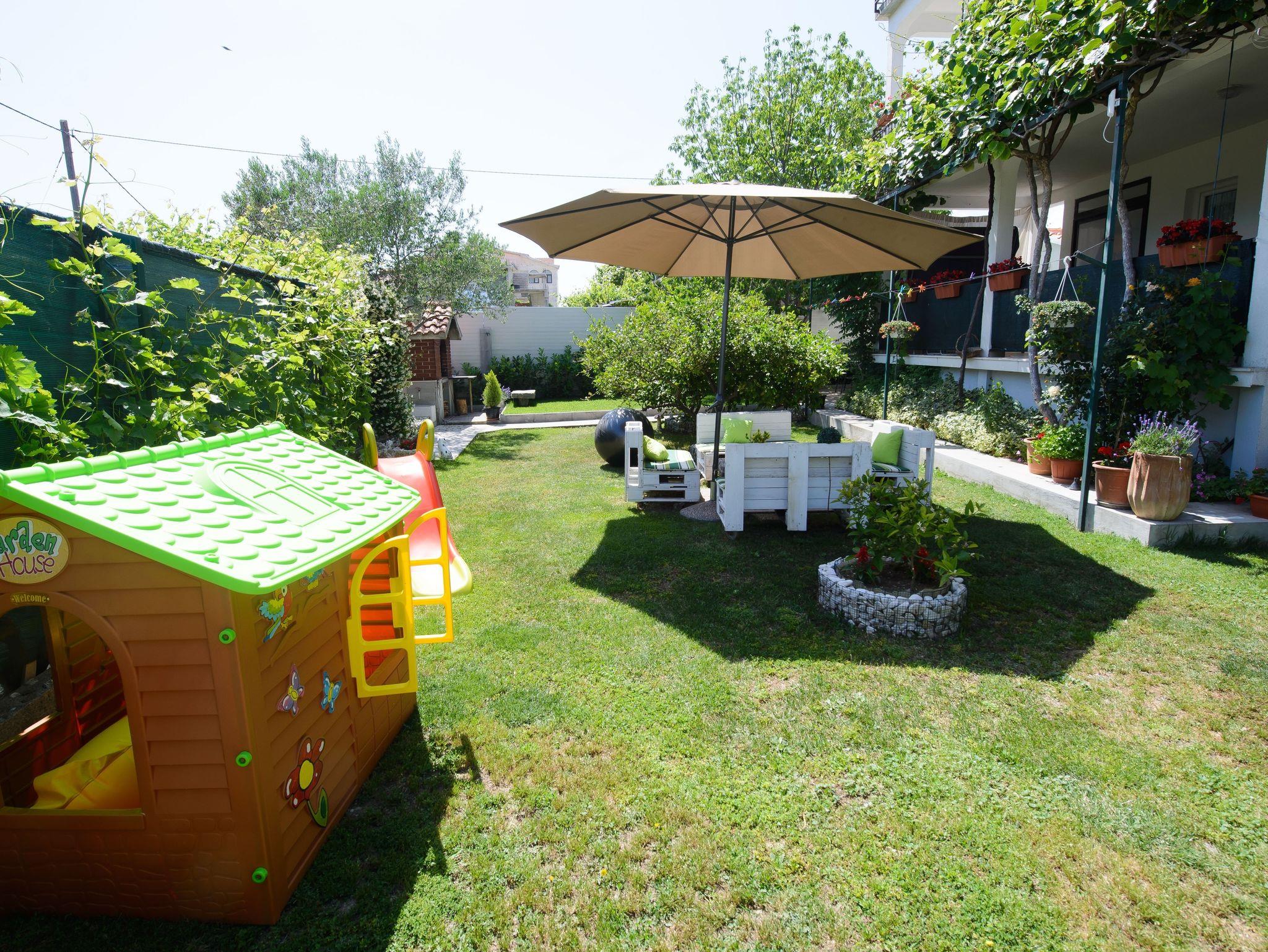 Umgebung des Objekts (Eingerichtet), Hof (300m2, Kinderbereich, Sitzbereich), Parkplatz (Anzahl der Parkplätze: 5, Entfernung vom Objekt: im Hof), Grill: gemeinsam, WiFi Internet, Föhn, Kinderbett