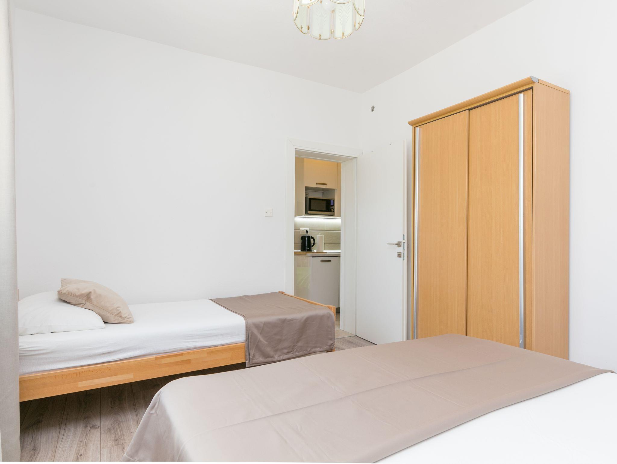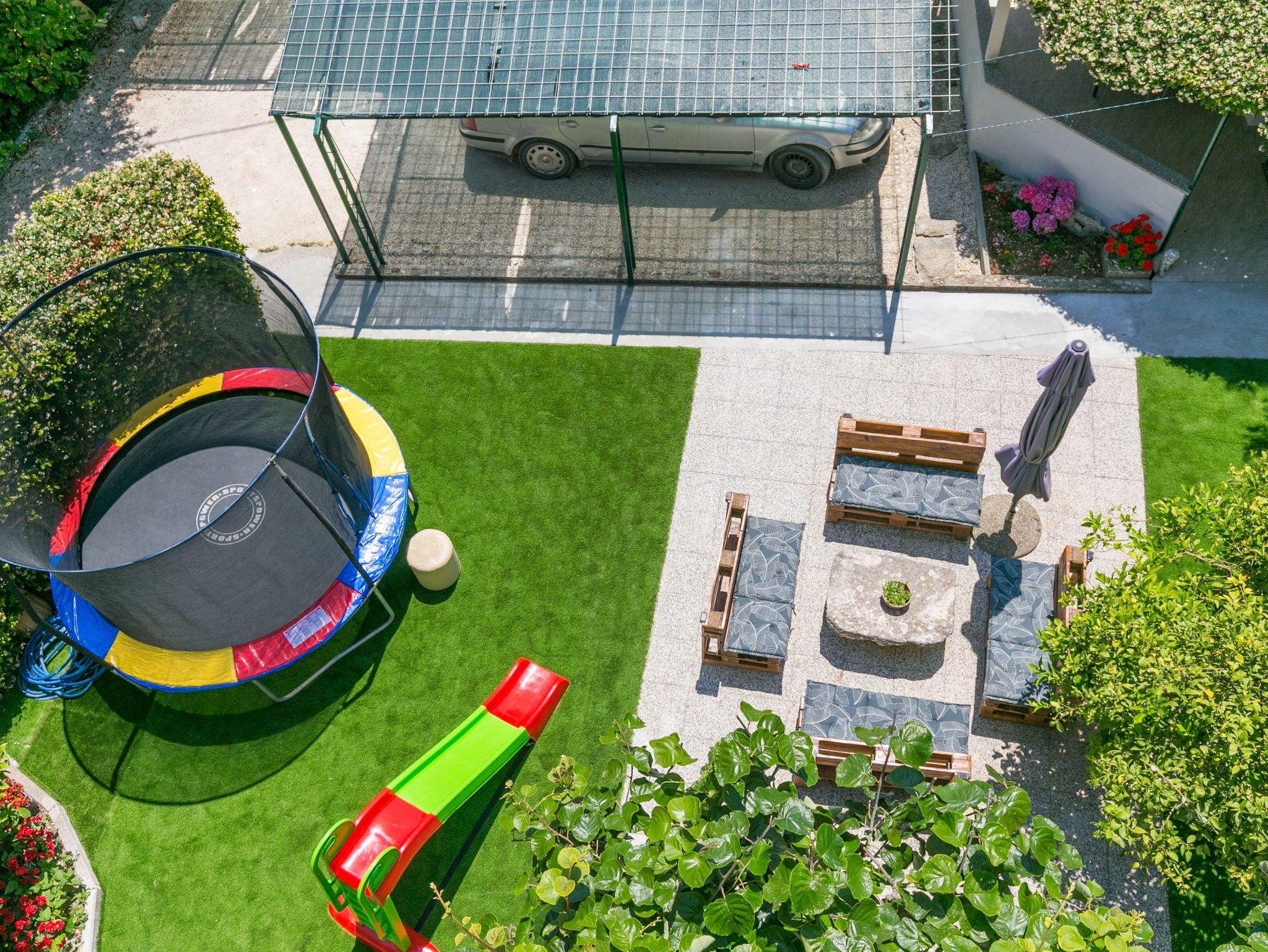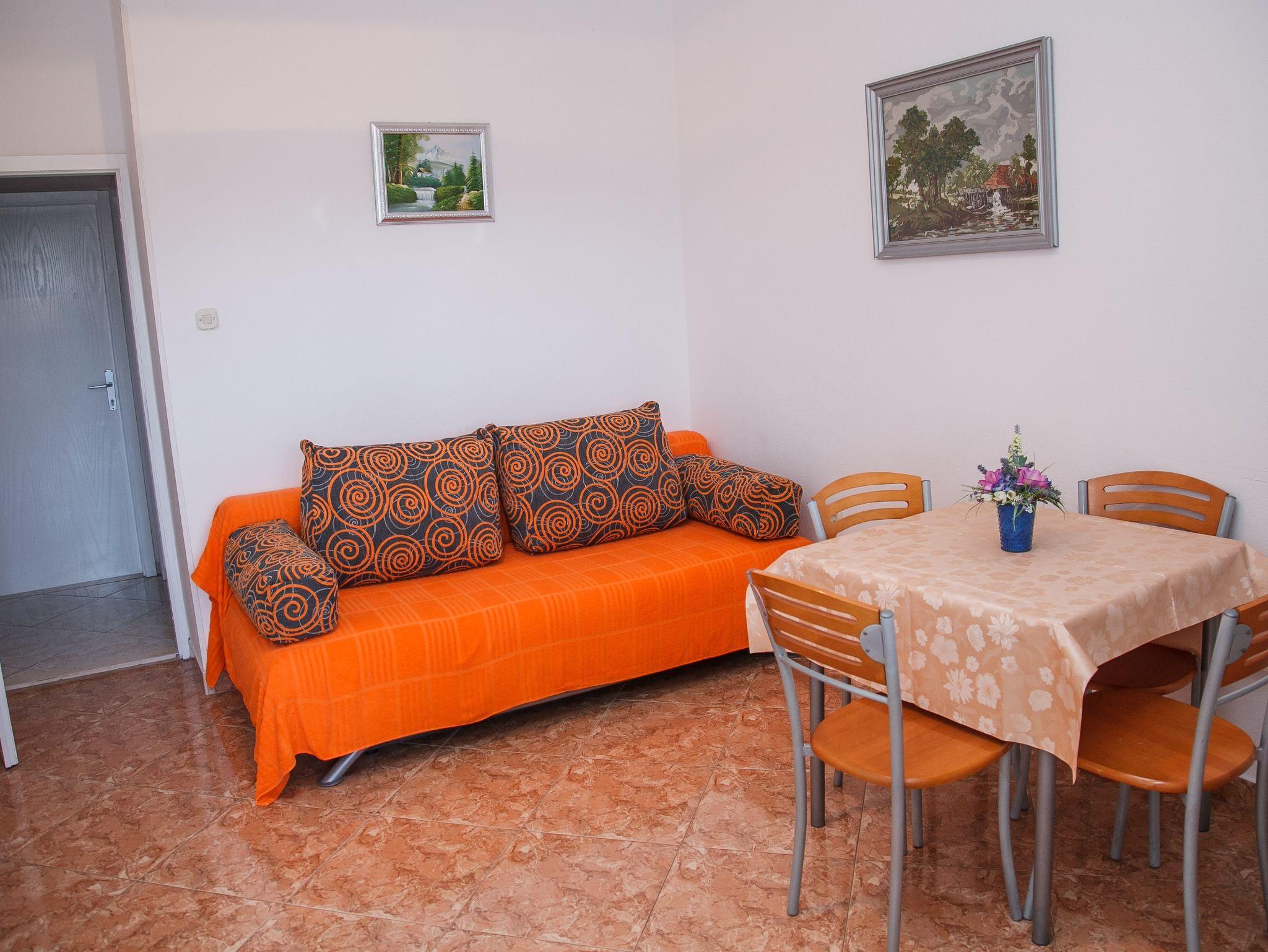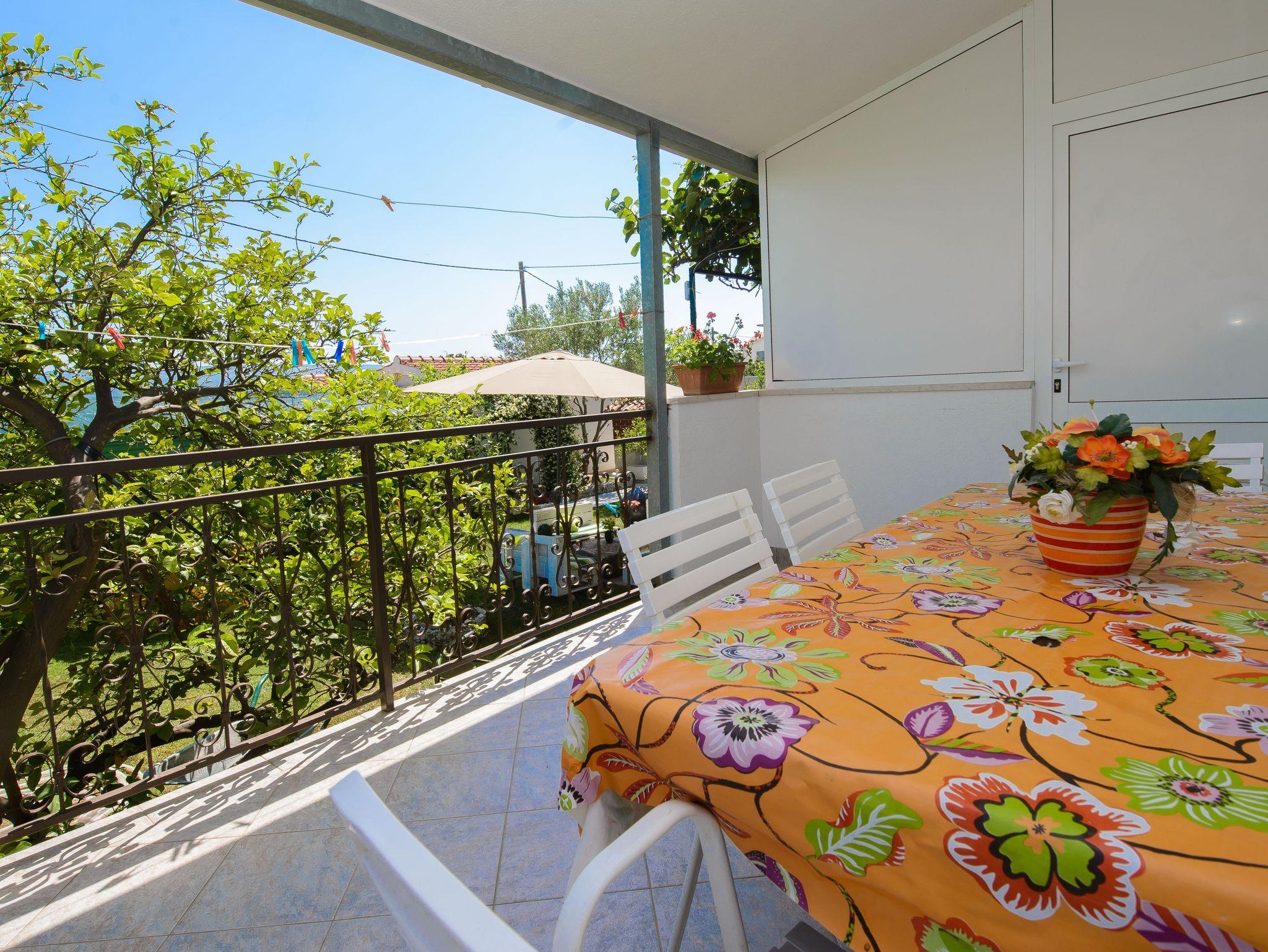 Ferienwohnung bietet Platz für 5 Gäste. Die Betten sind in Schlafzimmern, die es 1 gibt, und in Wohnzimmer, innerhalb einer Gesamtfläche von 32m2, angeordnet. Die Gäste haben eine eigene Terrasse zur Verfügung, auf der sie in warmen Sommernächten genießen können. Das Apartment bietet Meerblick. Es ist erlaubt, Speisen auf dem Gemeinschafts-Grill vorzubereiten. IM PREIS INBEGRIFFEN: Kurtaxe, Endreinigung, Klimatisierung, Zentralheizung, Parkplatz, Internet, Kinderbett, Föhn. VERBINDLICHE ZUSÄTZLICHE KOSTEN: Aufzahlung für Kurzaufenthalte (prozentualer Zuschlag pro Nächtigungsanzahl: 30% - 1, 20% - 2, 10% - 3). Die Verfügbarkeit zusätzlicher Dienstleistungen in Ihrem reservierten Termin und die Preise derselben (falls nicht aufgeführt) müssen im Voraus überprüft werden. Zusätzliche Dienstleistungen die in der Zahlungsaufforderung nicht aufgeführt sind werden direkt beim Vermieter bezahlt, angenommen der Gast nutzt auch diese. Ermäßigung auf den Grundpreis: Gratistag 14=13 (bei einem Aufenthalt von 14 Tagen oder mehr erhalten Sie einen Gratistag für den Aufenthalt bis 31.12.26).