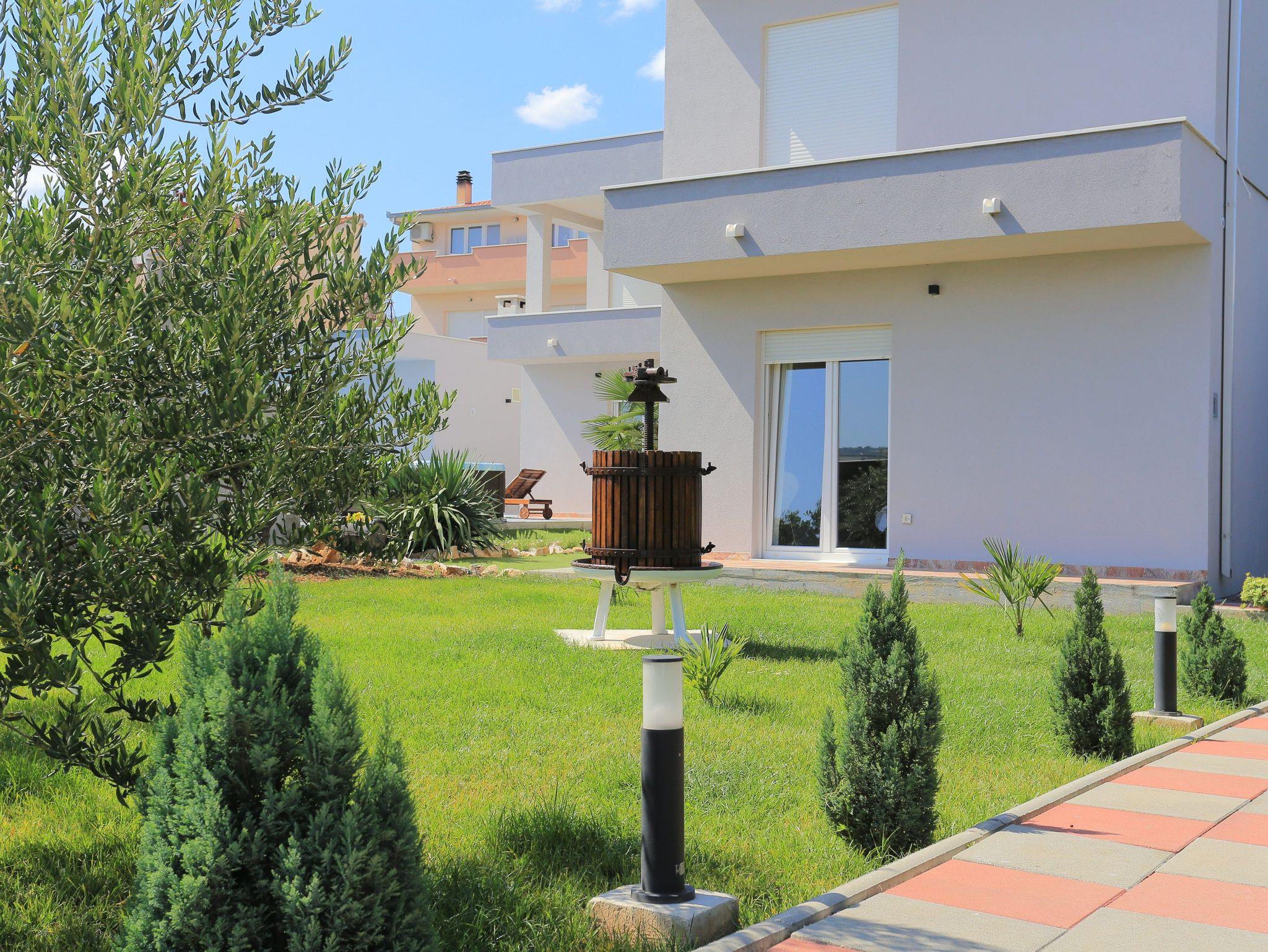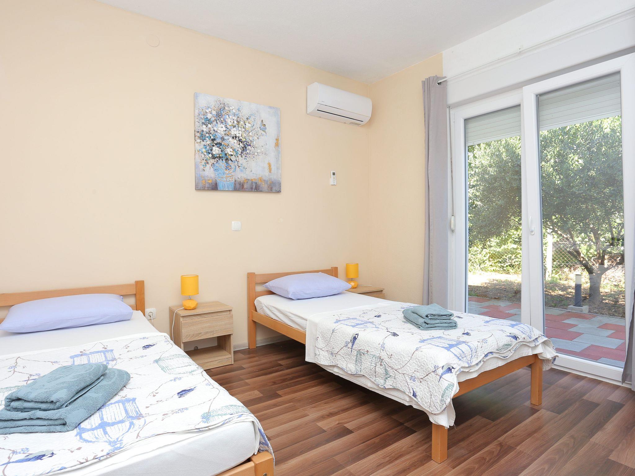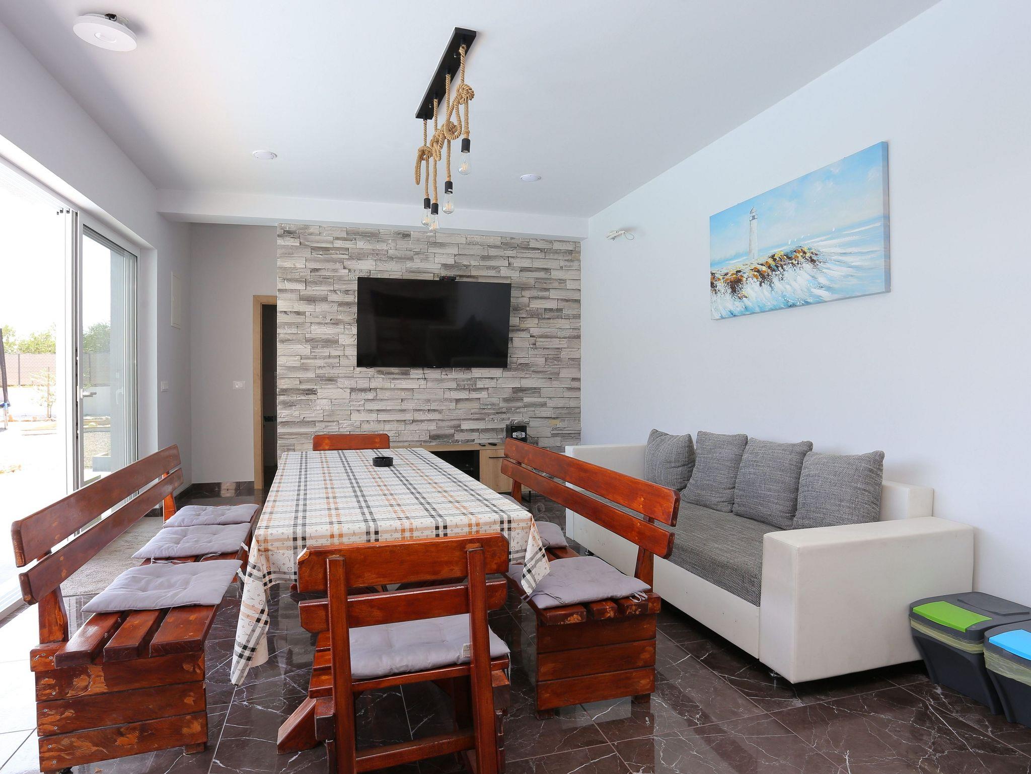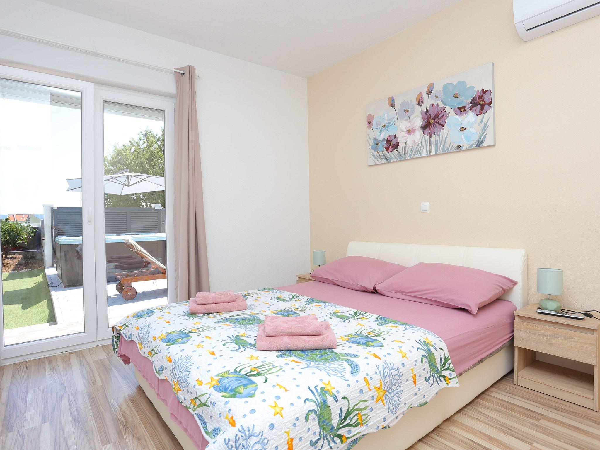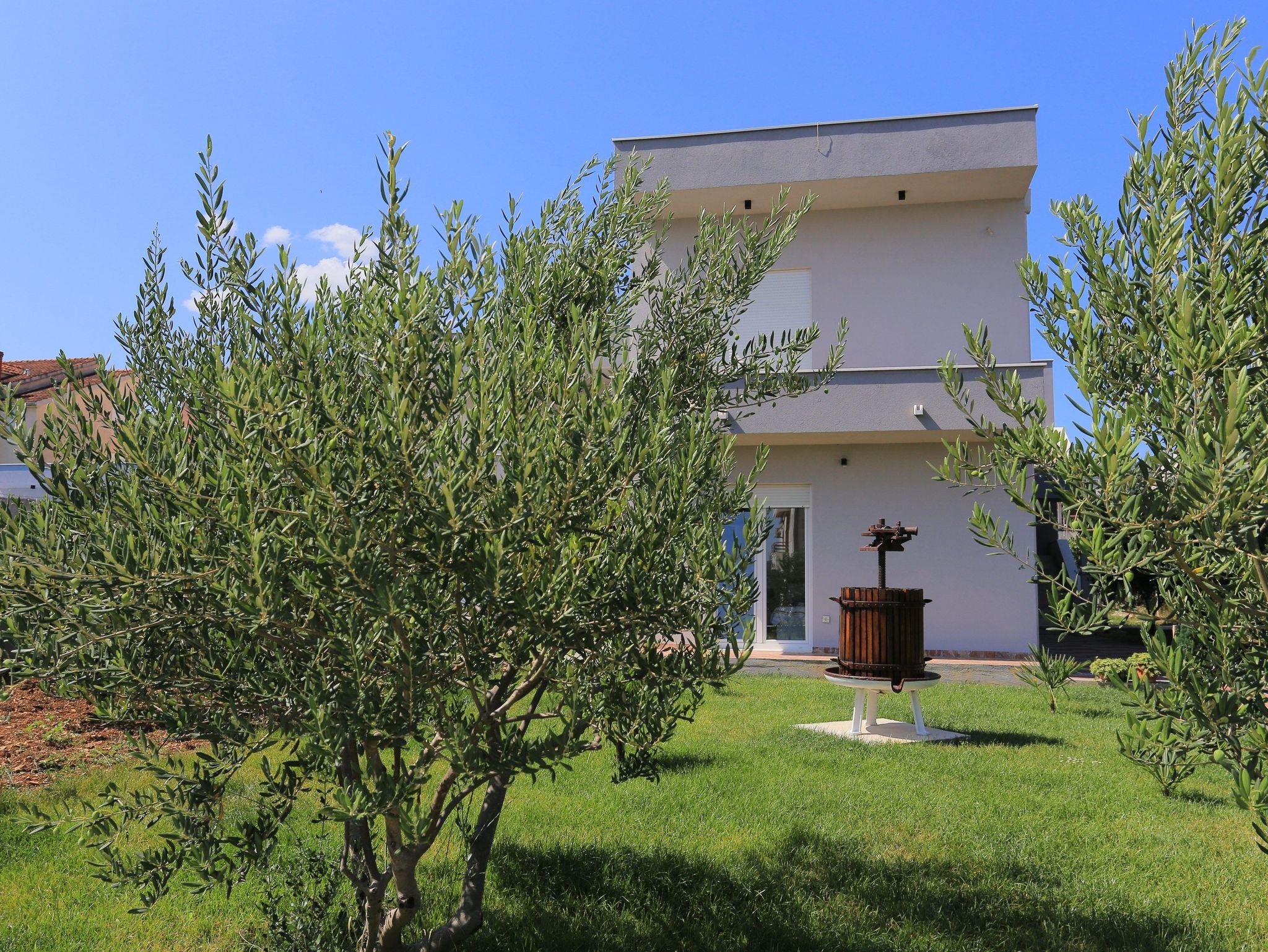 Haus bietet Platz für 8 Gäste. Die Betten sind in Schlafzimmern, die es 3 gibt, und in Wohnzimmer, innerhalb einer Gesamtfläche von 131m2, angeordnet. Die Gäste haben eine eigene Terrasse zur Verfügung, auf der sie in warmen Sommernächten genießen können. Für vollen Genuss und Entspannung gibt es einen privaten Grill für Gäste dieser Unterkunft. Während ihres Aufenthalts können sich Gäste im privaten Schwimmbad entspannen. Räume der gebuchten Unterkunftseinheit werden nicht in eine Ganze verbunden. Unterkunftseinheit hat Räume, die von dem Rest der Einheit abgetrennt werden. IM PREIS INBEGRIFFEN: Kurtaxe, Endreinigung, Klimatisierung, Pool, Parkplatz, Internet, Fahrrad, Kinderbett, Zusatzbett, Bügeleisen, Bügelbrett, Föhn, Sonnenschirm, Liegestühle. Die Verfügbarkeit zusätzlicher Dienstleistungen in Ihrem reservierten Termin und die Preise derselben (falls nicht aufgeführt) müssen im Voraus überprüft werden. Zusätzliche Dienstleistungen die in der Zahlungsaufforderung nicht aufgeführt sind werden direkt beim Vermieter bezahlt, angenommen der Gast nutzt auch diese.