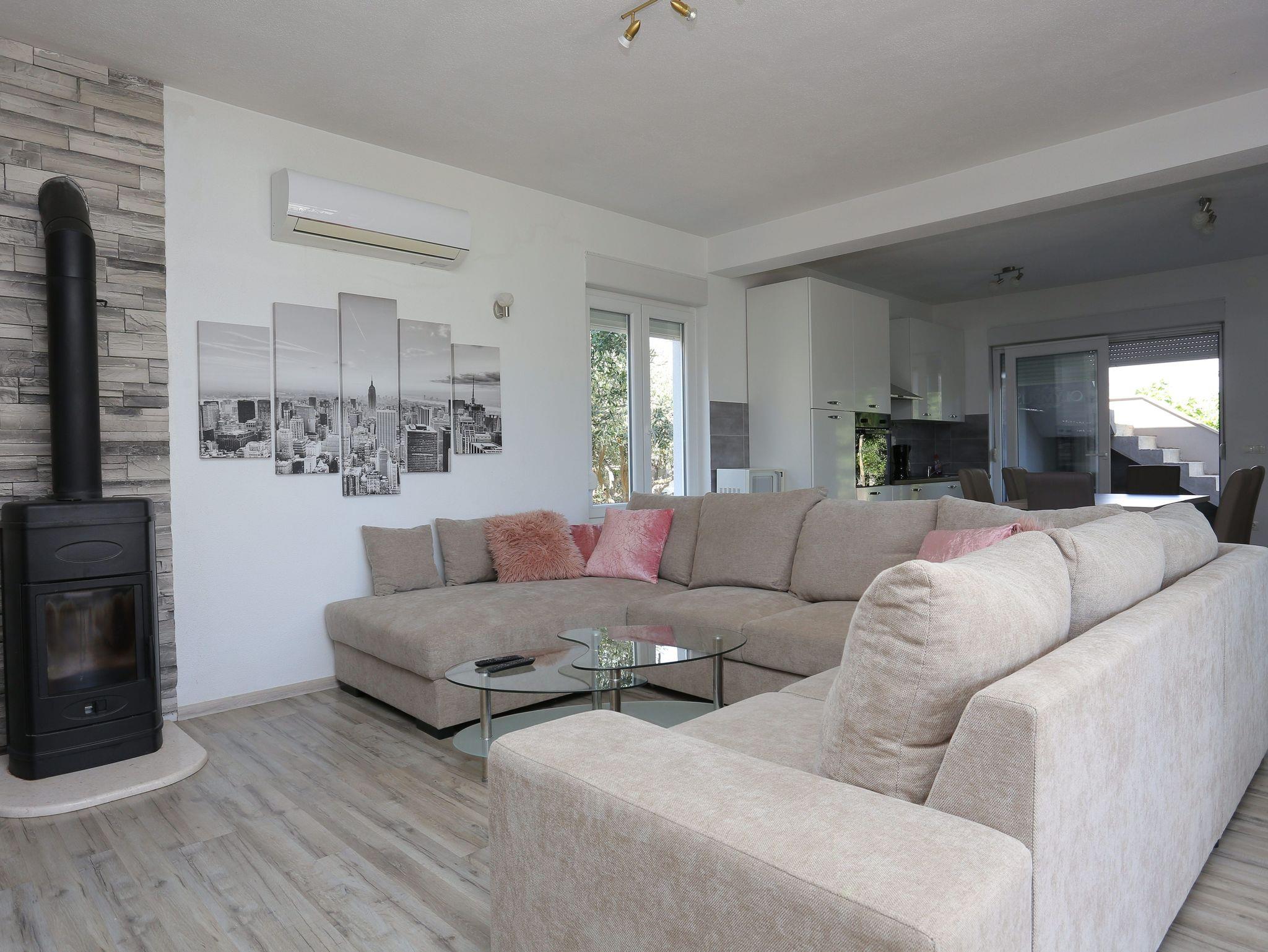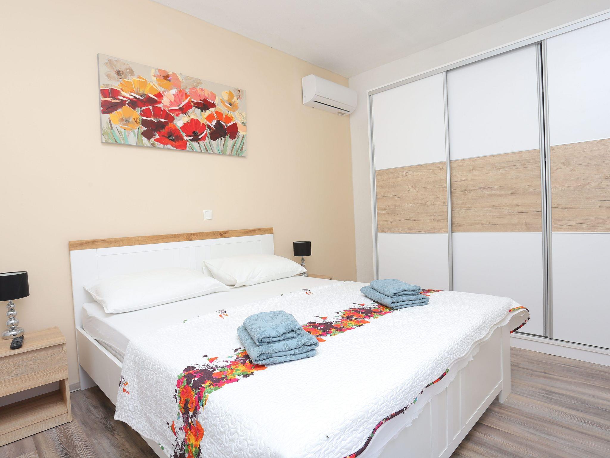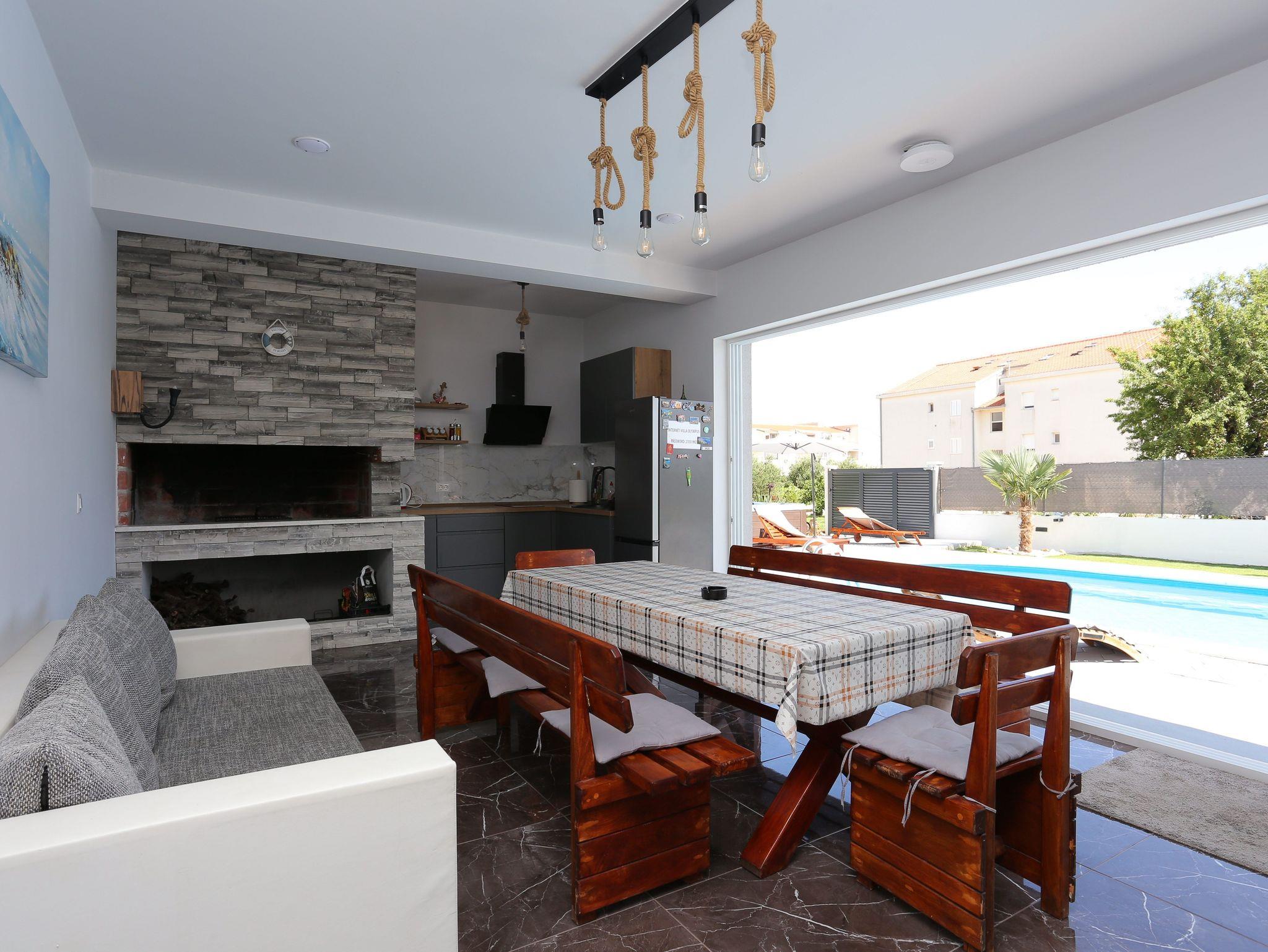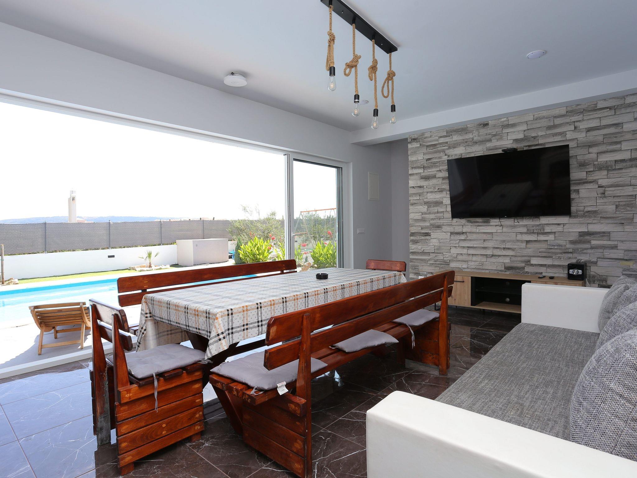 Haus bietet Platz für 8 Gäste. Die Betten sind in Schlafzimmern, die es 3 gibt, und in Wohnzimmer, innerhalb einer Gesamtfläche von 131m2, angeordnet. Die Gäste haben eine eigene Terrasse zur Verfügung, auf der sie in warmen Sommernächten genießen können. Für vollen Genuss und Entspannung gibt es einen privaten Grill für Gäste dieser Unterkunft. Während ihres Aufenthalts können sich Gäste im privaten Schwimmbad entspannen. Räume der gebuchten Unterkunftseinheit werden nicht in eine Ganze verbunden. Unterkunftseinheit hat Räume, die von dem Rest der Einheit abgetrennt werden. IM PREIS INBEGRIFFEN: Kurtaxe, Endreinigung, Klimatisierung, Pool, Parkplatz, Internet, Fahrrad, Kinderbett, Zusatzbett, Bügeleisen, Bügelbrett, Föhn, Sonnenschirm, Liegestühle. Die Verfügbarkeit zusätzlicher Dienstleistungen in Ihrem reservierten Termin und die Preise derselben (falls nicht aufgeführt) müssen im Voraus überprüft werden. Zusätzliche Dienstleistungen die in der Zahlungsaufforderung nicht aufgeführt sind werden direkt beim Vermieter bezahlt, angenommen der Gast nutzt auch diese.