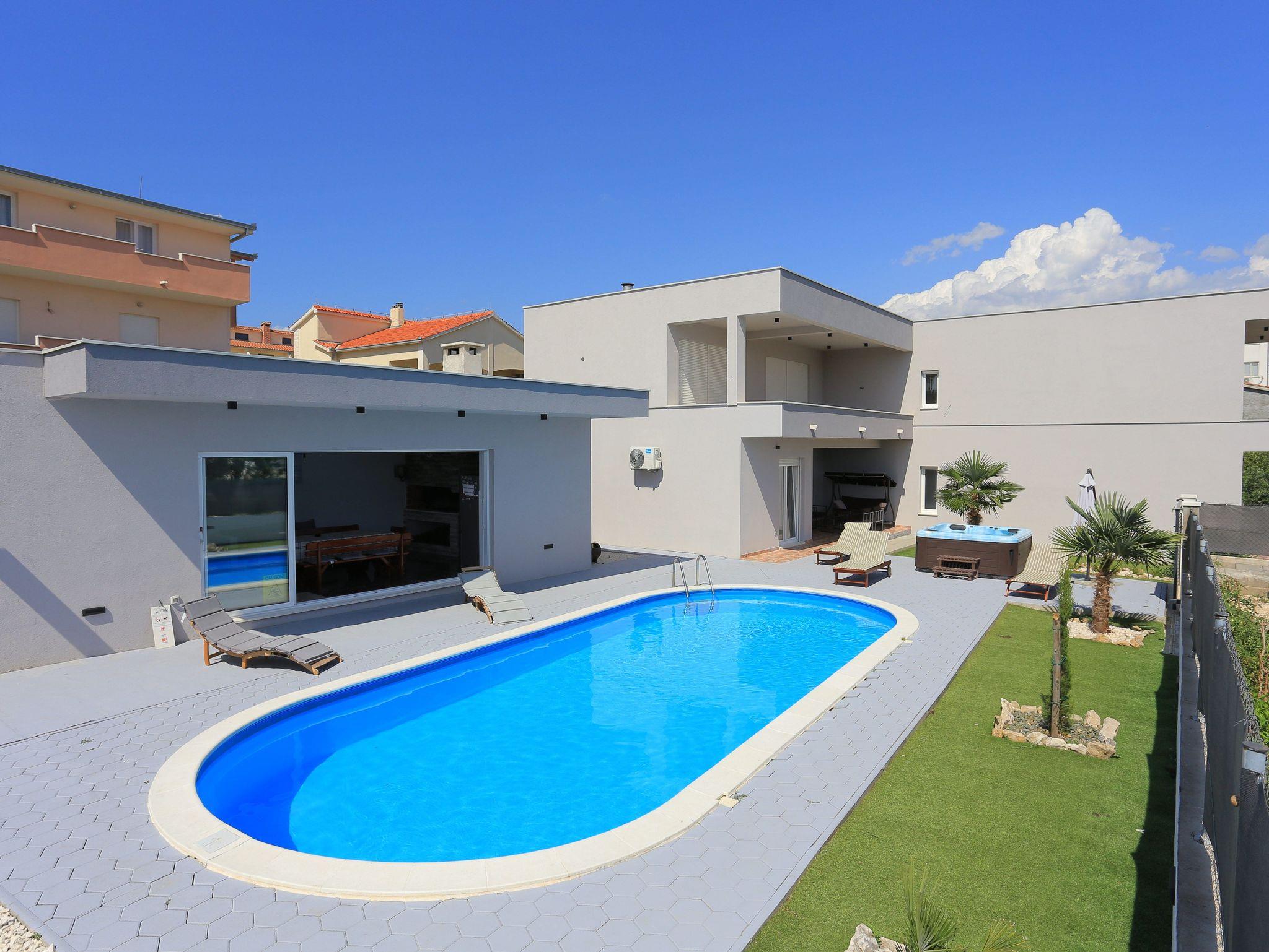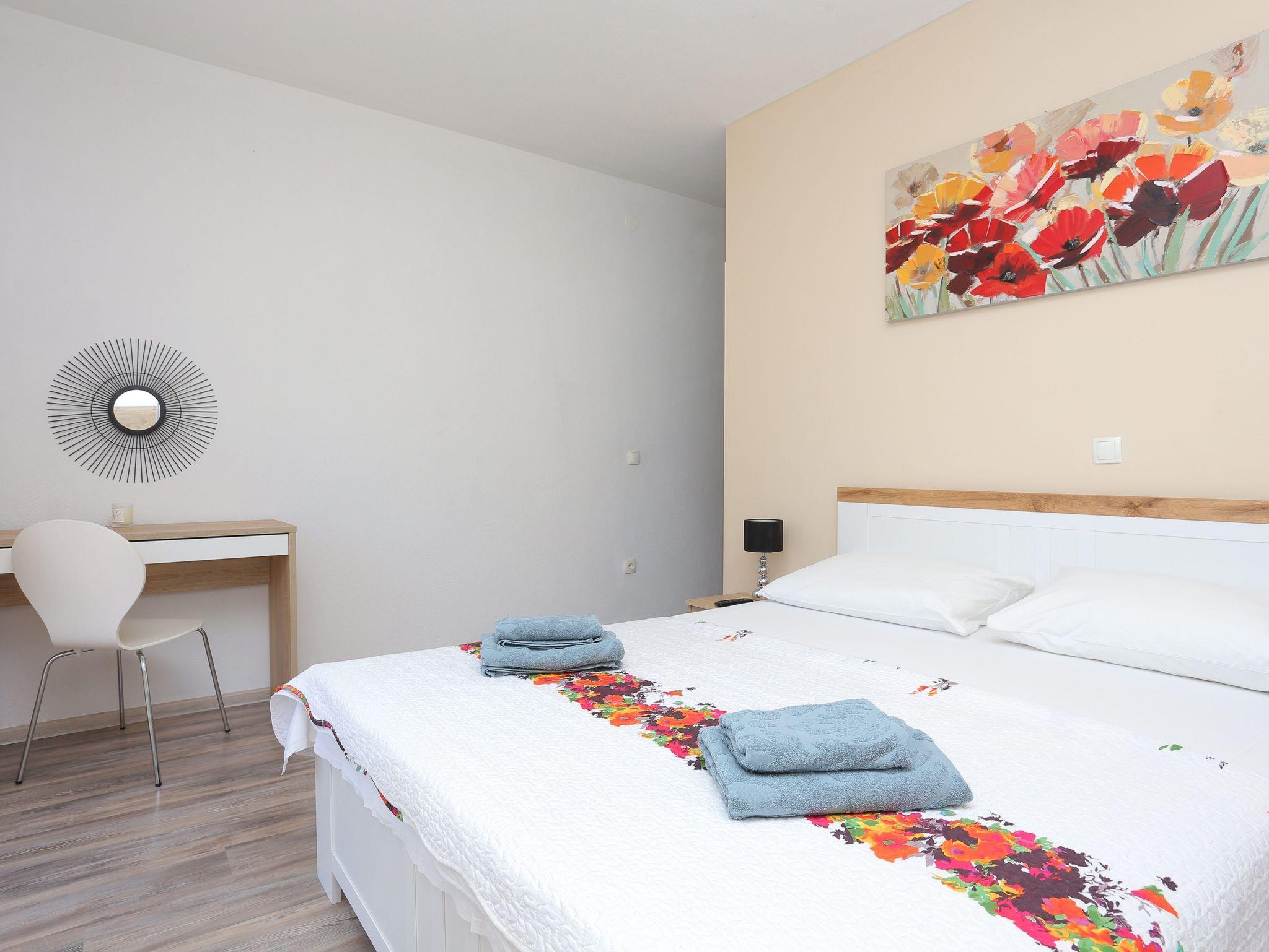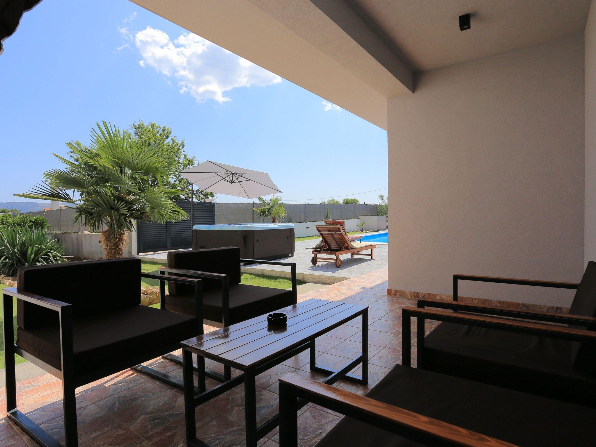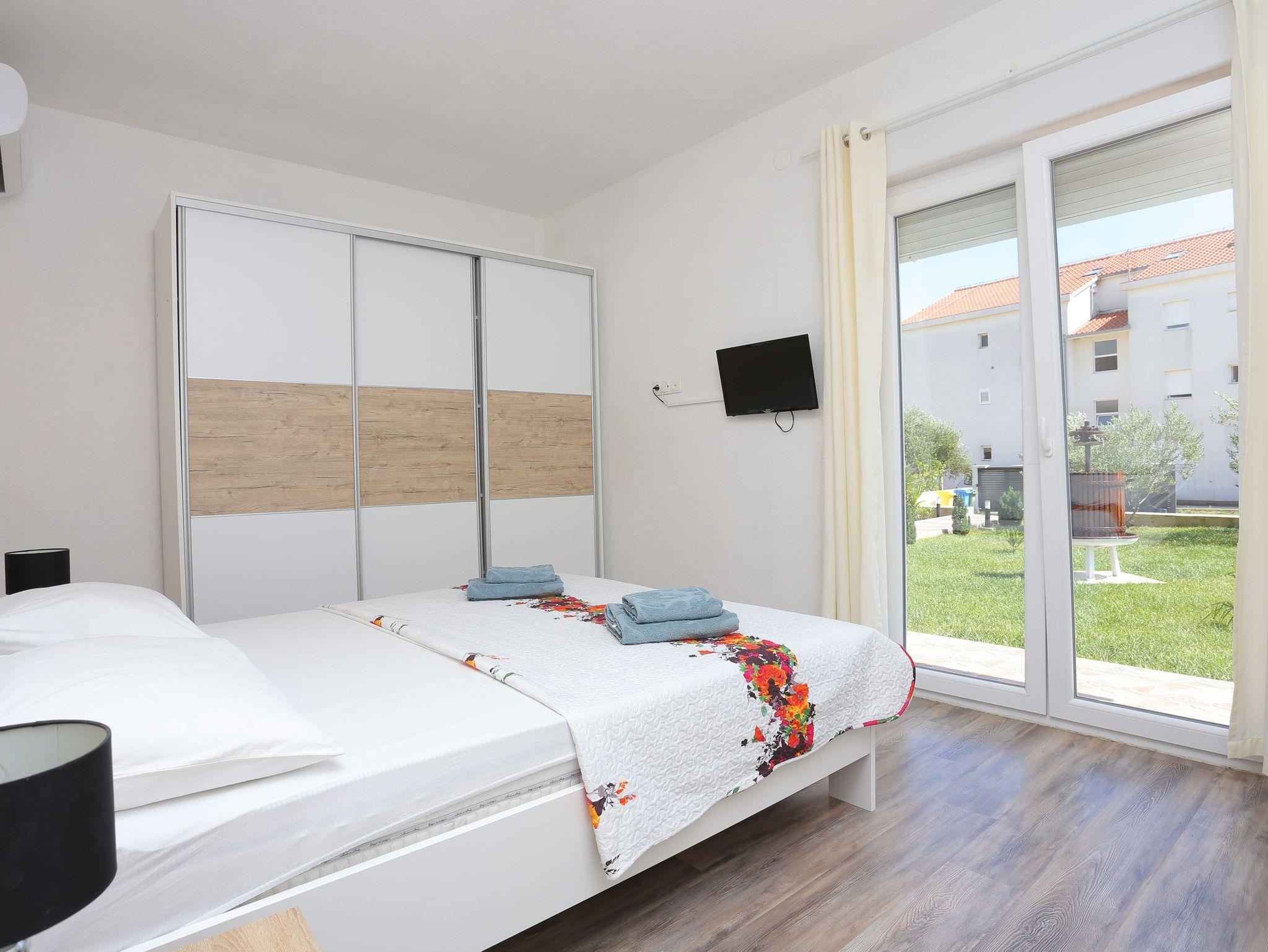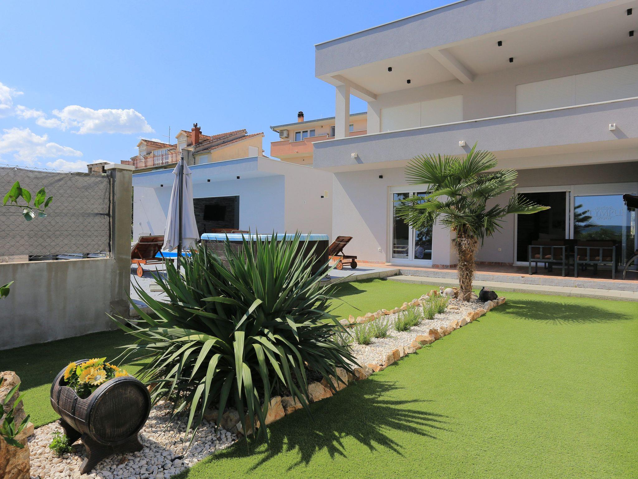 Haus bietet Platz für 8 Gäste. Die Betten sind in Schlafzimmern, die es 3 gibt, und in Wohnzimmer, innerhalb einer Gesamtfläche von 131m2, angeordnet. Die Gäste haben eine eigene Terrasse zur Verfügung, auf der sie in warmen Sommernächten genießen können. Für vollen Genuss und Entspannung gibt es einen privaten Grill für Gäste dieser Unterkunft. Während ihres Aufenthalts können sich Gäste im privaten Schwimmbad entspannen. Räume der gebuchten Unterkunftseinheit werden nicht in eine Ganze verbunden. Unterkunftseinheit hat Räume, die von dem Rest der Einheit abgetrennt werden. IM PREIS INBEGRIFFEN: Kurtaxe, Endreinigung, Klimatisierung, Pool, Parkplatz, Internet, Fahrrad, Kinderbett, Zusatzbett, Bügeleisen, Bügelbrett, Föhn, Sonnenschirm, Liegestühle. Die Verfügbarkeit zusätzlicher Dienstleistungen in Ihrem reservierten Termin und die Preise derselben (falls nicht aufgeführt) müssen im Voraus überprüft werden. Zusätzliche Dienstleistungen die in der Zahlungsaufforderung nicht aufgeführt sind werden direkt beim Vermieter bezahlt, angenommen der Gast nutzt auch diese.