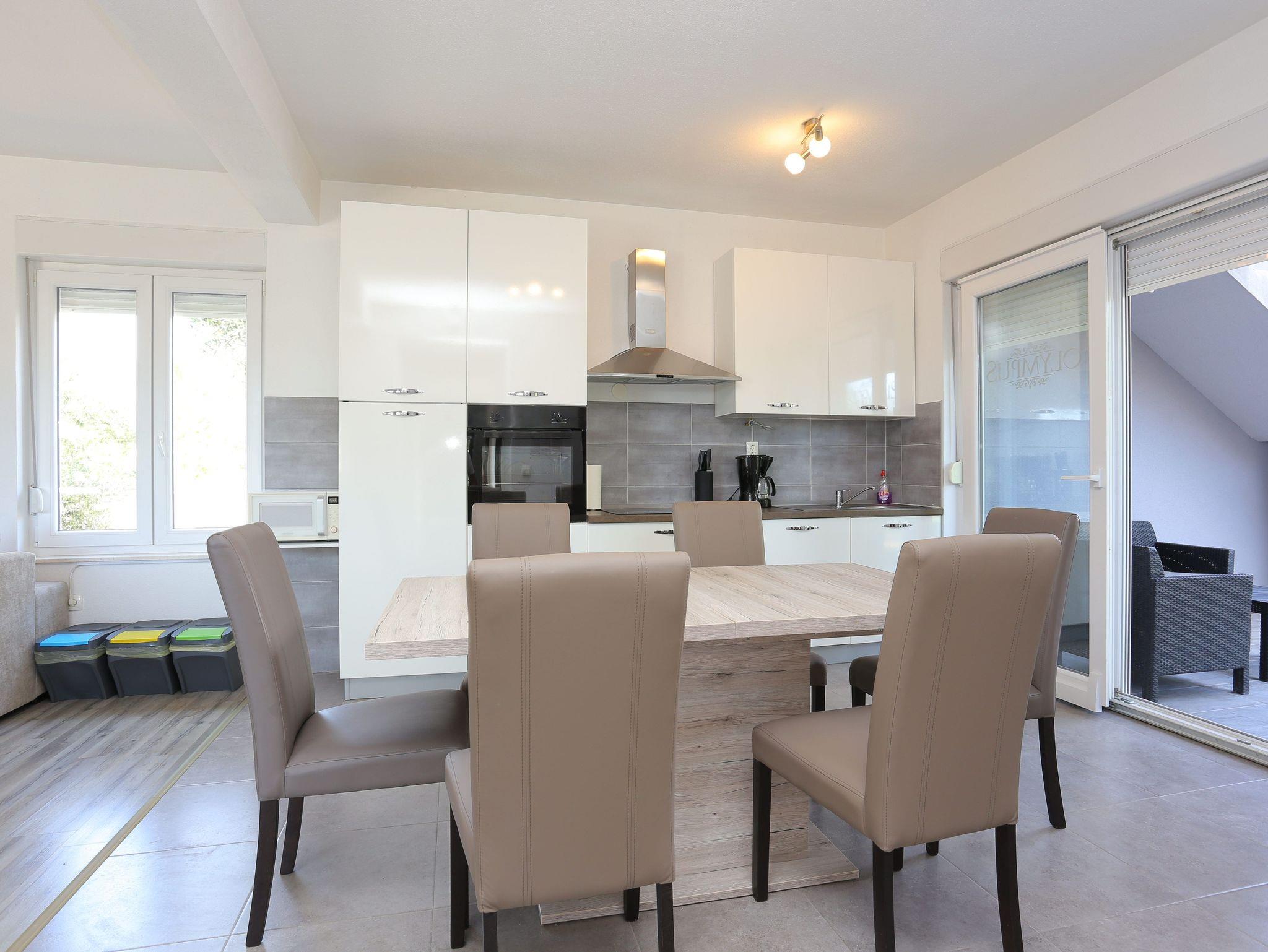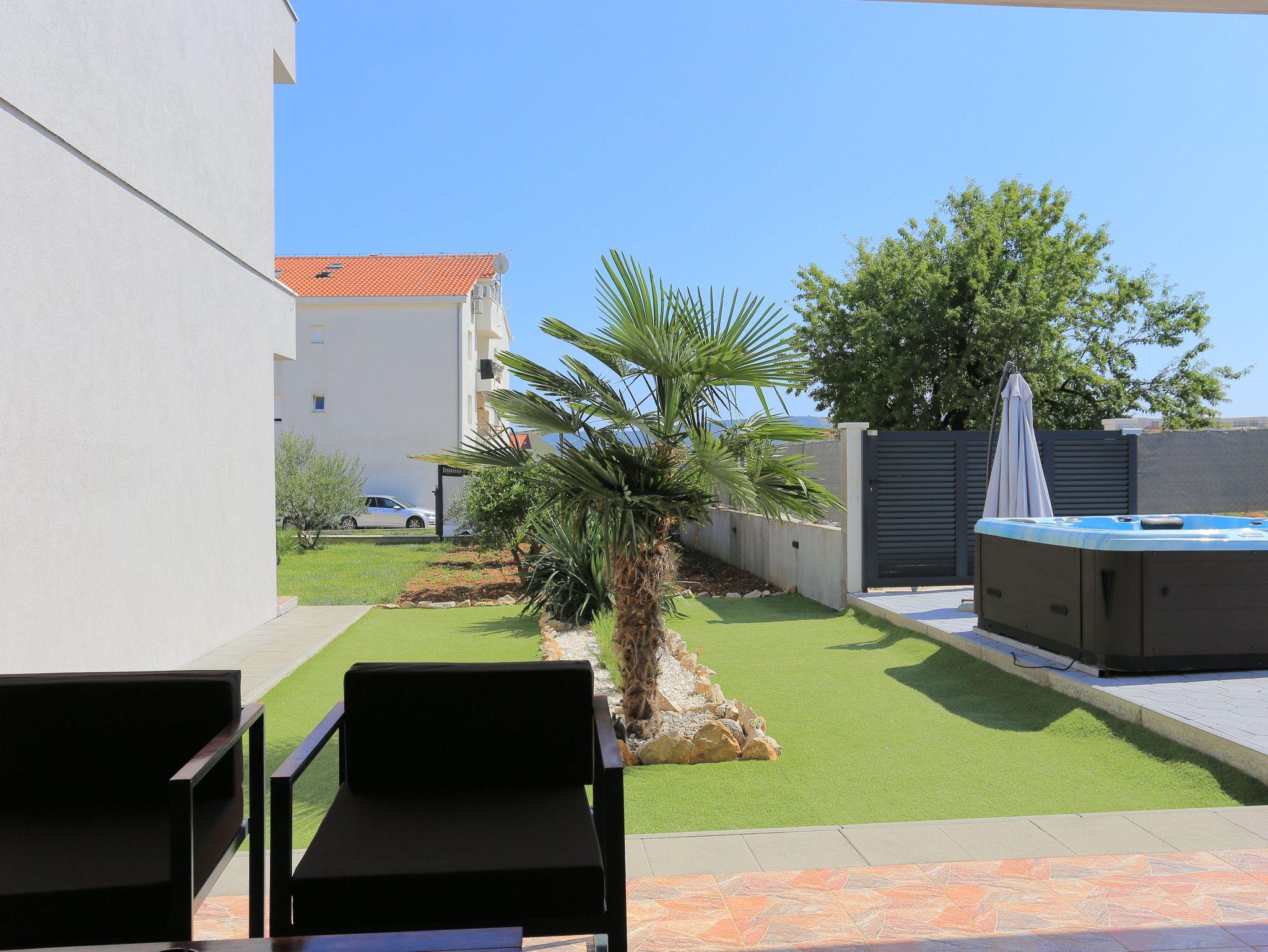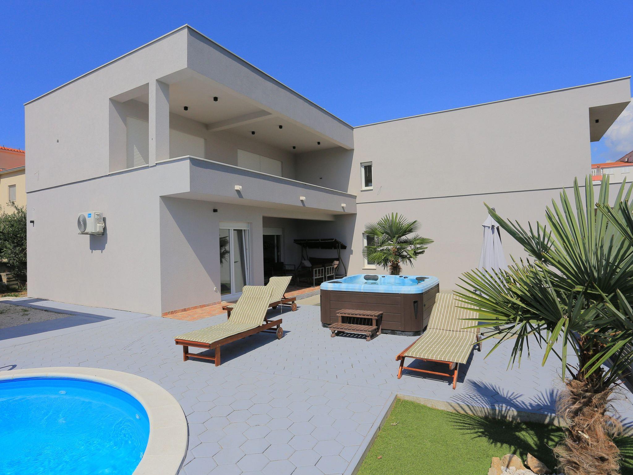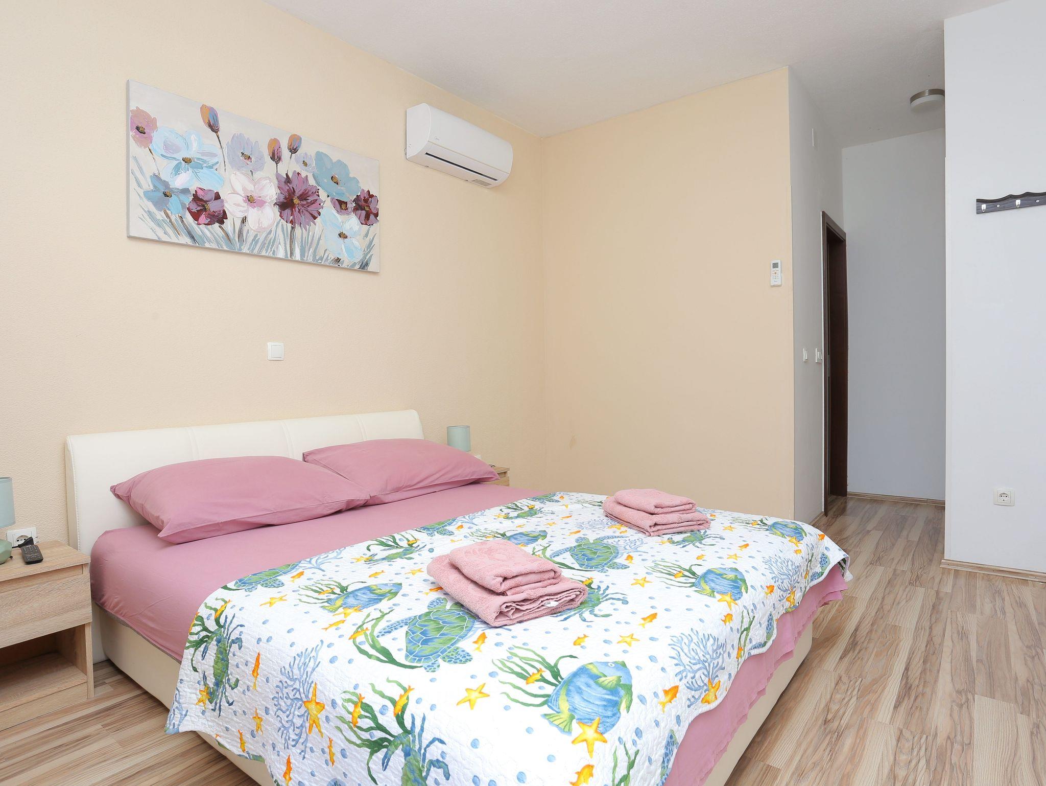 Haus bietet Platz für 8 Gäste. Die Betten sind in Schlafzimmern, die es 3 gibt, und in Wohnzimmer, innerhalb einer Gesamtfläche von 131m2, angeordnet. Die Gäste haben eine eigene Terrasse zur Verfügung, auf der sie in warmen Sommernächten genießen können. Für vollen Genuss und Entspannung gibt es einen privaten Grill für Gäste dieser Unterkunft. Während ihres Aufenthalts können sich Gäste im privaten Schwimmbad entspannen. Räume der gebuchten Unterkunftseinheit werden nicht in eine Ganze verbunden. Unterkunftseinheit hat Räume, die von dem Rest der Einheit abgetrennt werden. IM PREIS INBEGRIFFEN: Kurtaxe, Endreinigung, Klimatisierung, Pool, Parkplatz, Internet, Fahrrad, Kinderbett, Zusatzbett, Bügeleisen, Bügelbrett, Föhn, Sonnenschirm, Liegestühle. Die Verfügbarkeit zusätzlicher Dienstleistungen in Ihrem reservierten Termin und die Preise derselben (falls nicht aufgeführt) müssen im Voraus überprüft werden. Zusätzliche Dienstleistungen die in der Zahlungsaufforderung nicht aufgeführt sind werden direkt beim Vermieter bezahlt, angenommen der Gast nutzt auch diese.