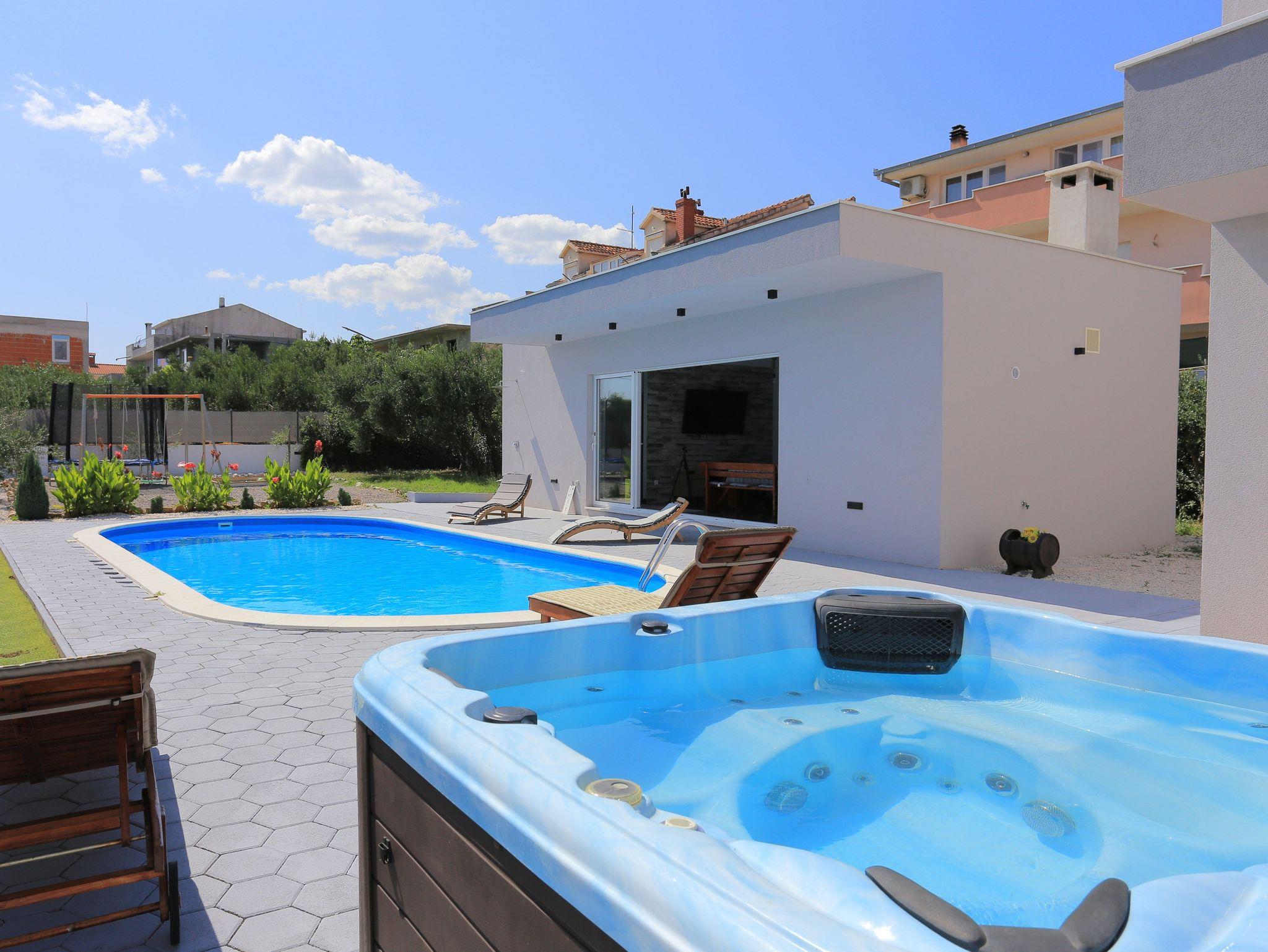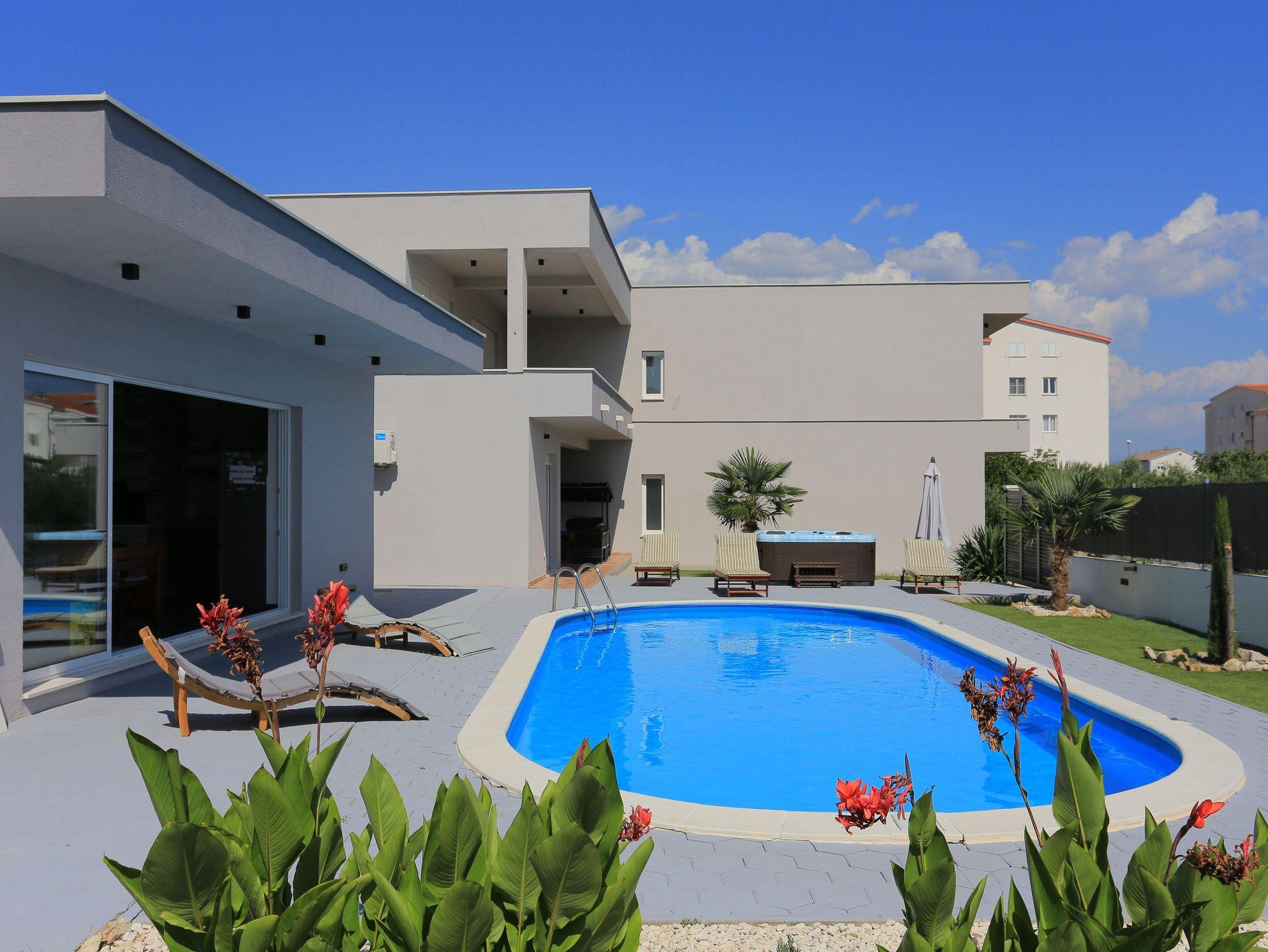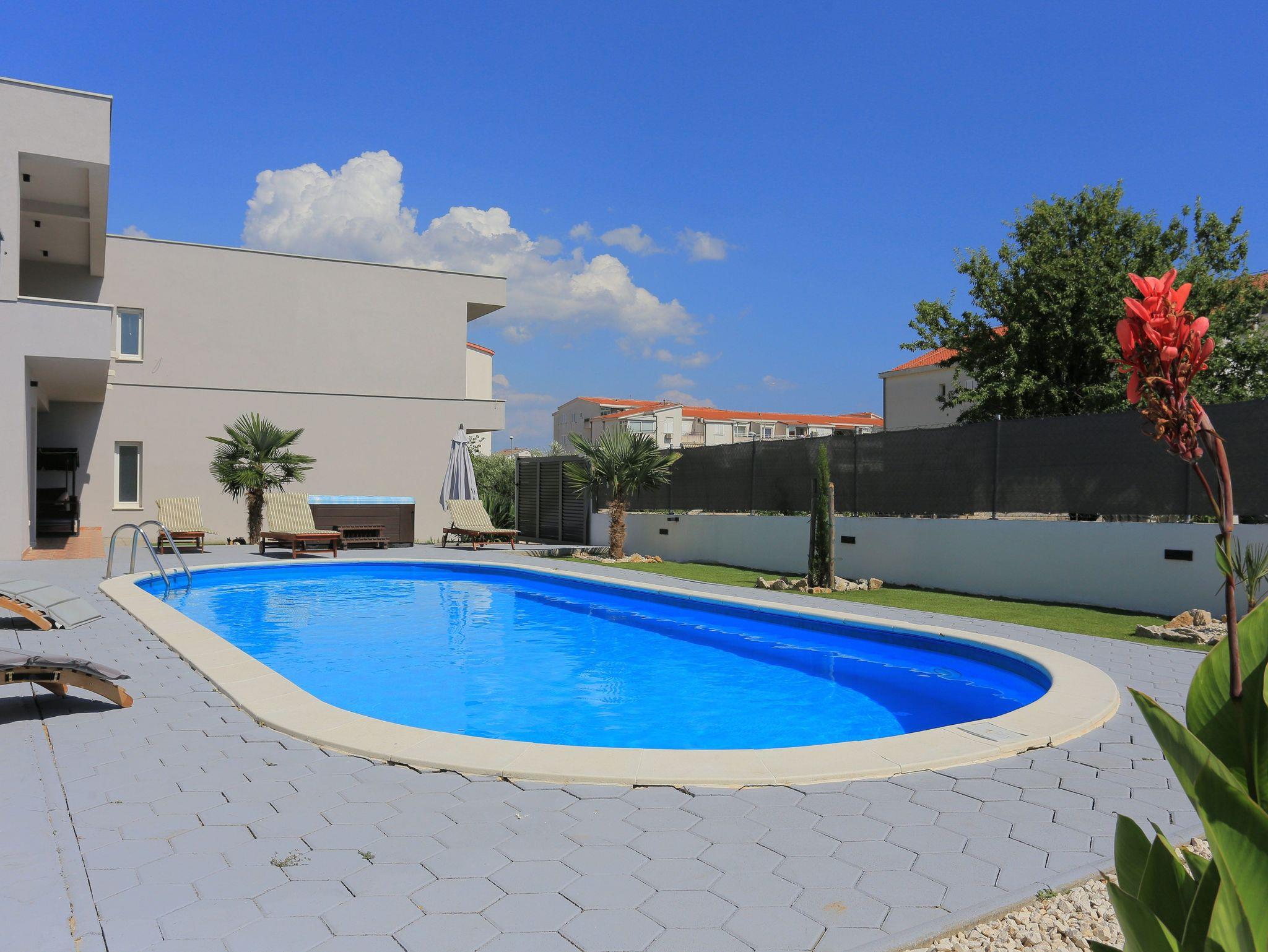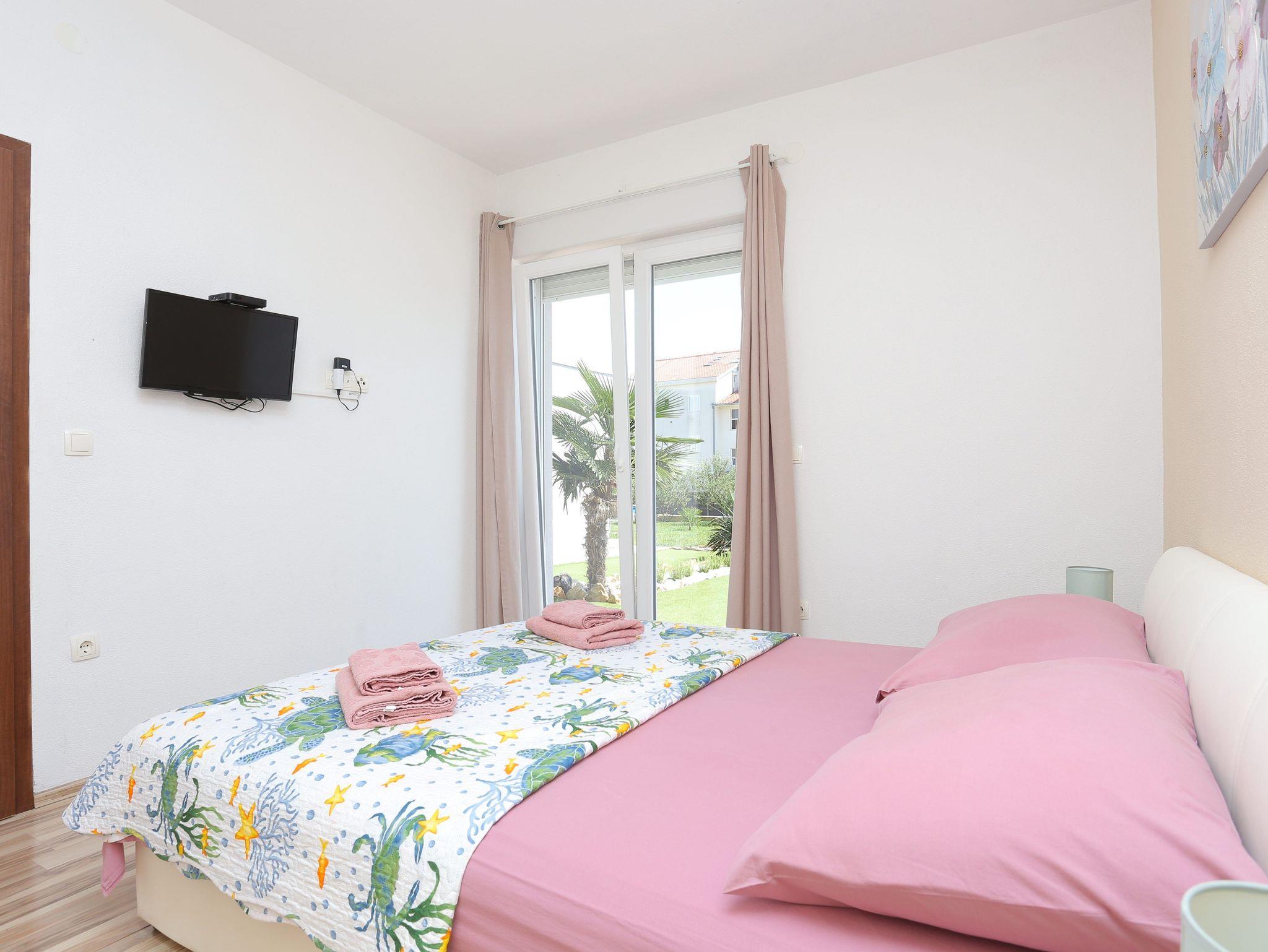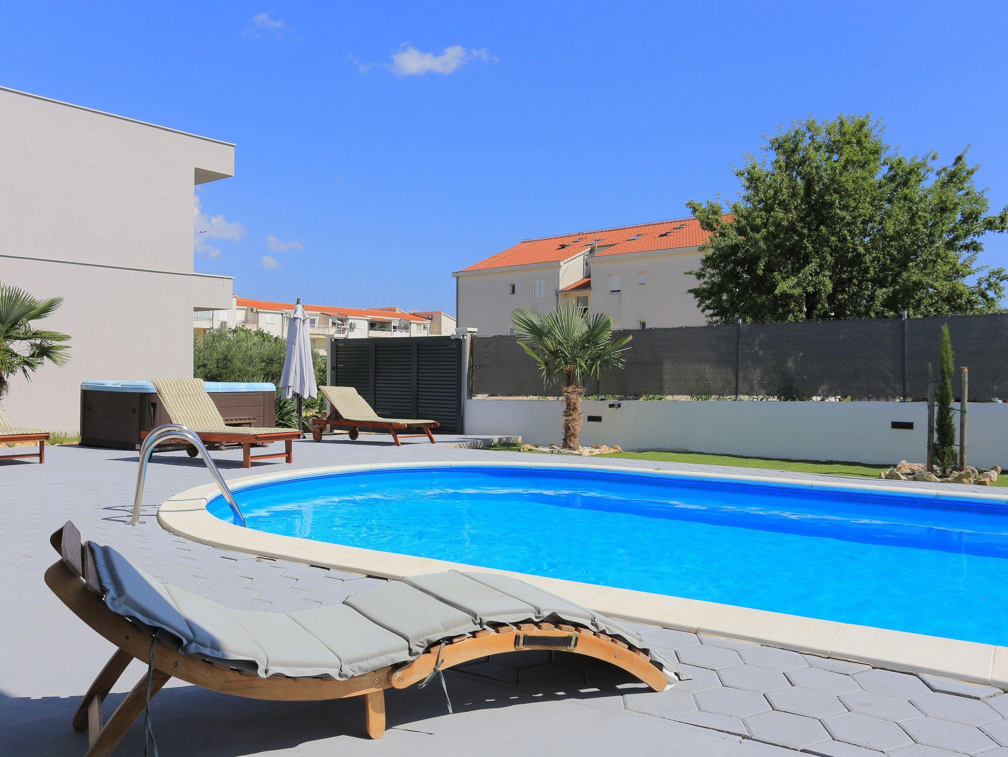 Haus bietet Platz für 8 Gäste. Die Betten sind in Schlafzimmern, die es 3 gibt, und in Wohnzimmer, innerhalb einer Gesamtfläche von 131m2, angeordnet. Die Gäste haben eine eigene Terrasse zur Verfügung, auf der sie in warmen Sommernächten genießen können. Für vollen Genuss und Entspannung gibt es einen privaten Grill für Gäste dieser Unterkunft. Während ihres Aufenthalts können sich Gäste im privaten Schwimmbad entspannen. Räume der gebuchten Unterkunftseinheit werden nicht in eine Ganze verbunden. Unterkunftseinheit hat Räume, die von dem Rest der Einheit abgetrennt werden. IM PREIS INBEGRIFFEN: Kurtaxe, Endreinigung, Klimatisierung, Pool, Parkplatz, Internet, Fahrrad, Kinderbett, Zusatzbett, Bügeleisen, Bügelbrett, Föhn, Sonnenschirm, Liegestühle. Die Verfügbarkeit zusätzlicher Dienstleistungen in Ihrem reservierten Termin und die Preise derselben (falls nicht aufgeführt) müssen im Voraus überprüft werden. Zusätzliche Dienstleistungen die in der Zahlungsaufforderung nicht aufgeführt sind werden direkt beim Vermieter bezahlt, angenommen der Gast nutzt auch diese.
